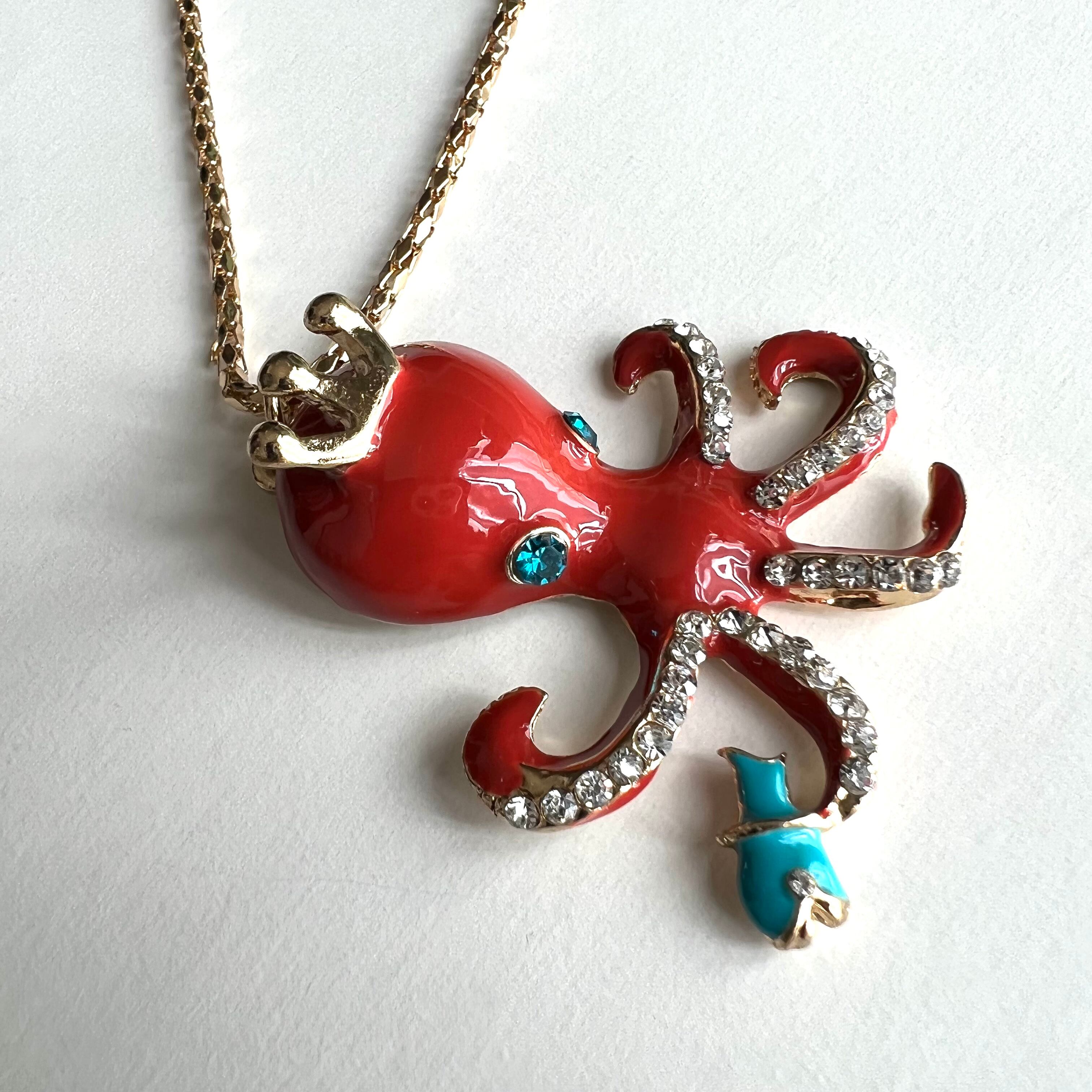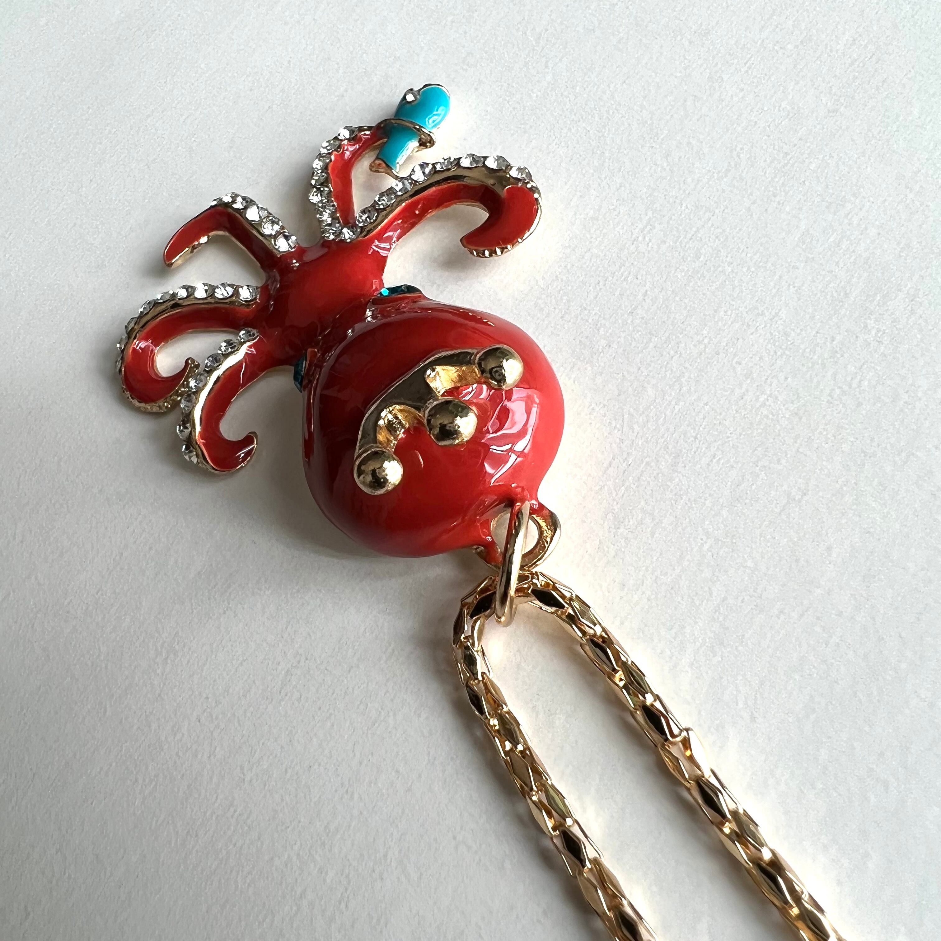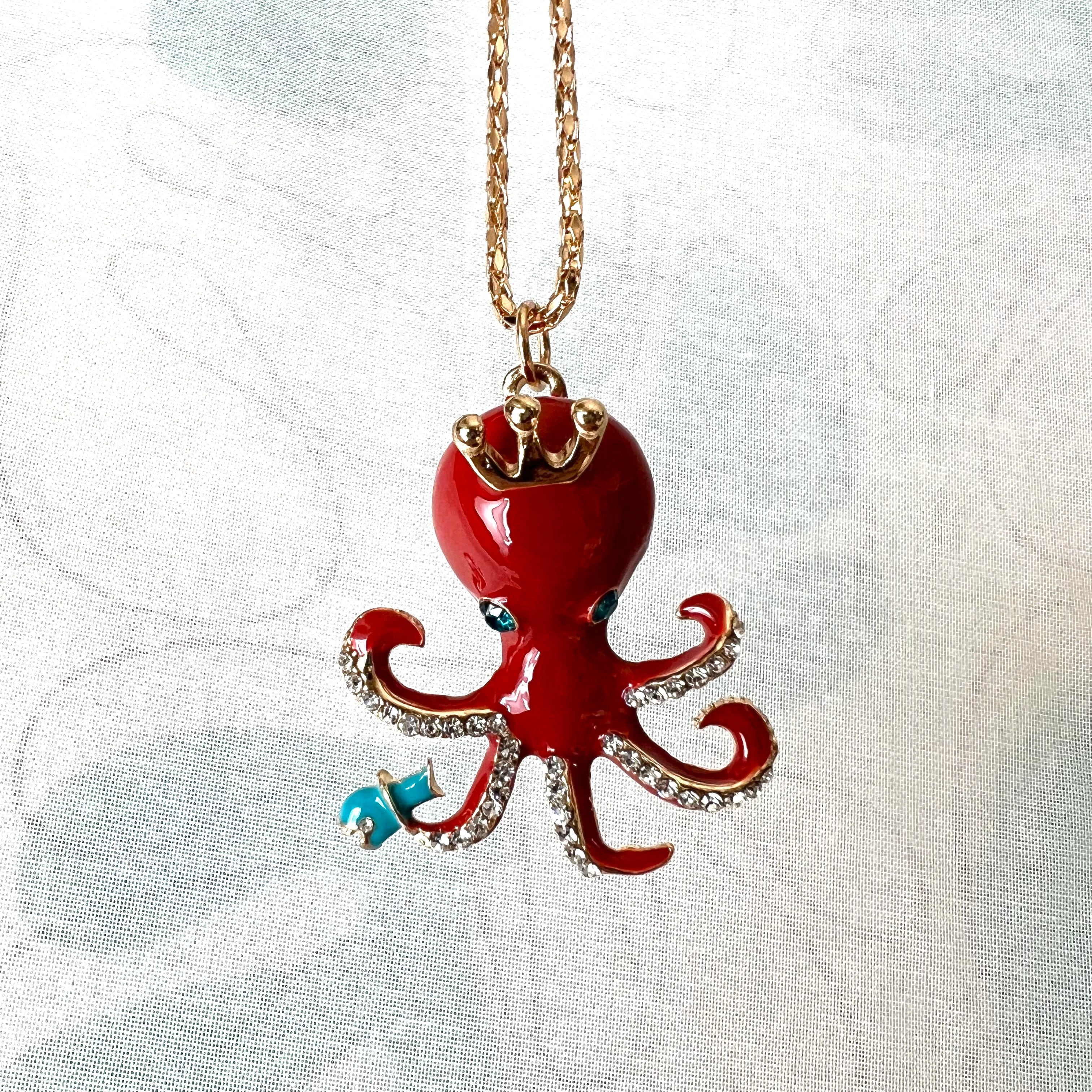 冠を被ったタコのモチーフ。お魚捕まえてます。