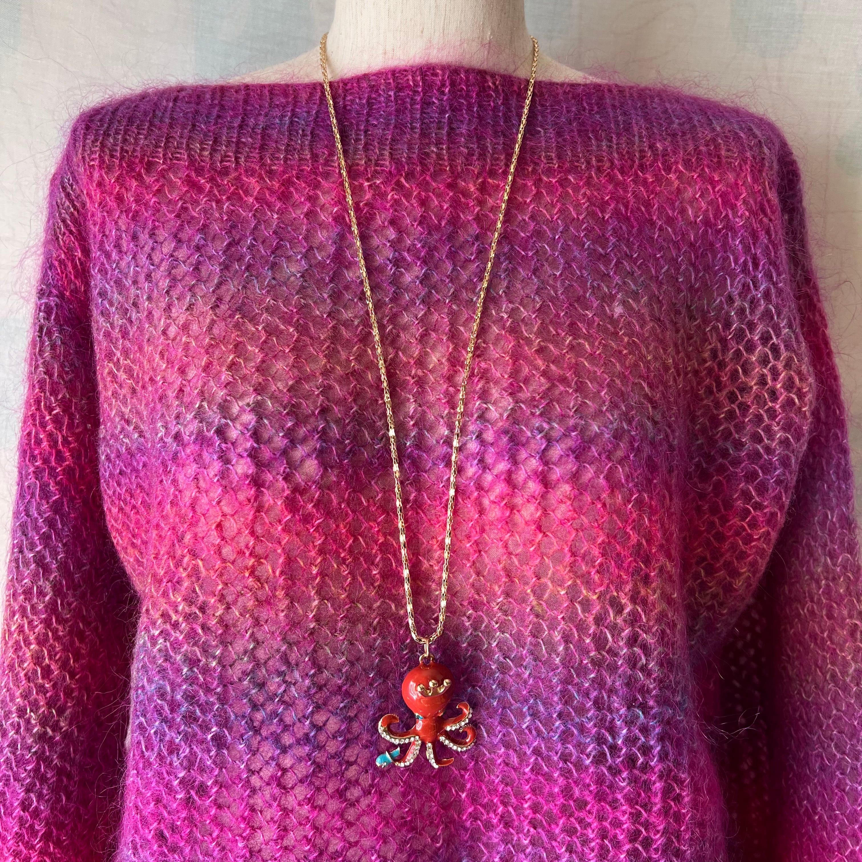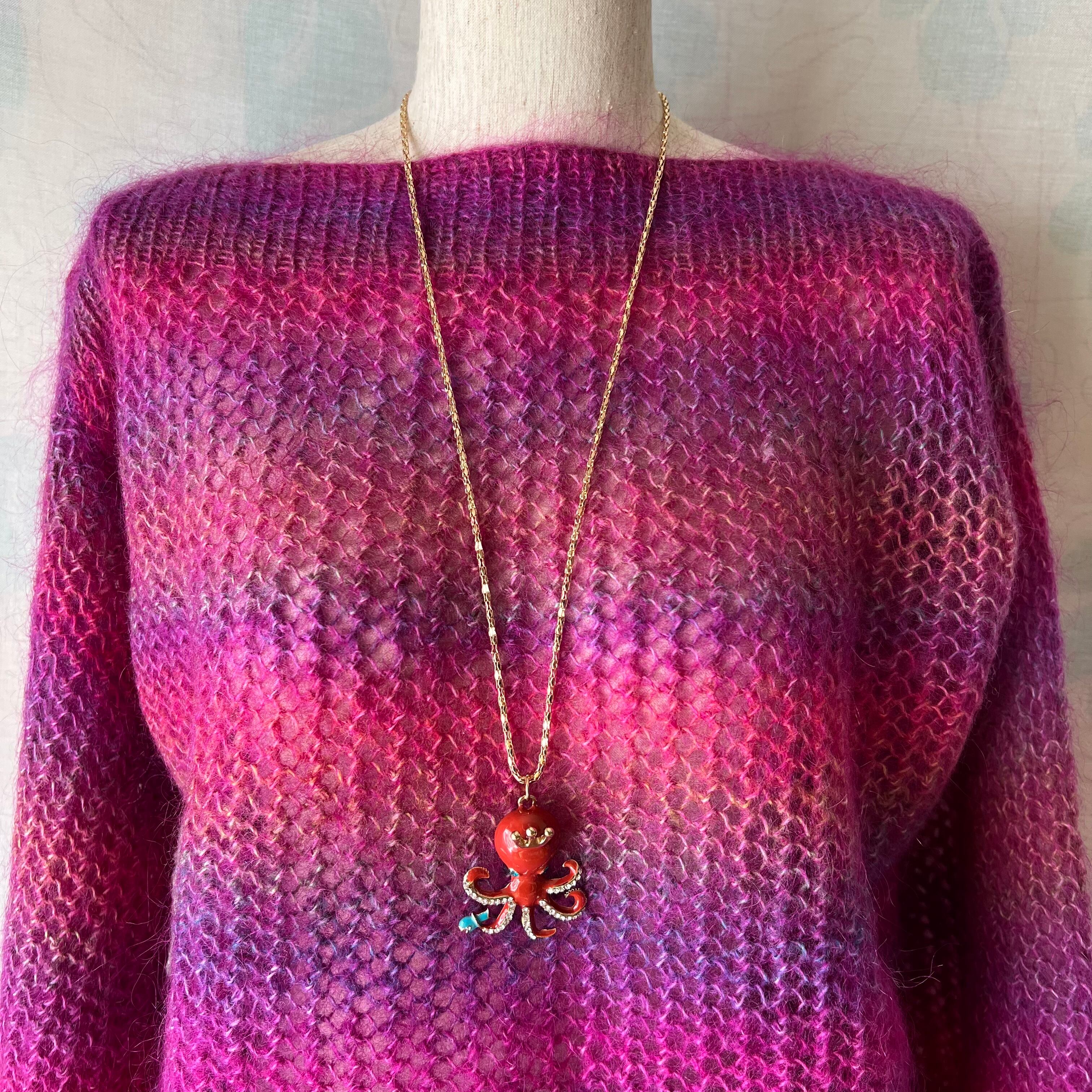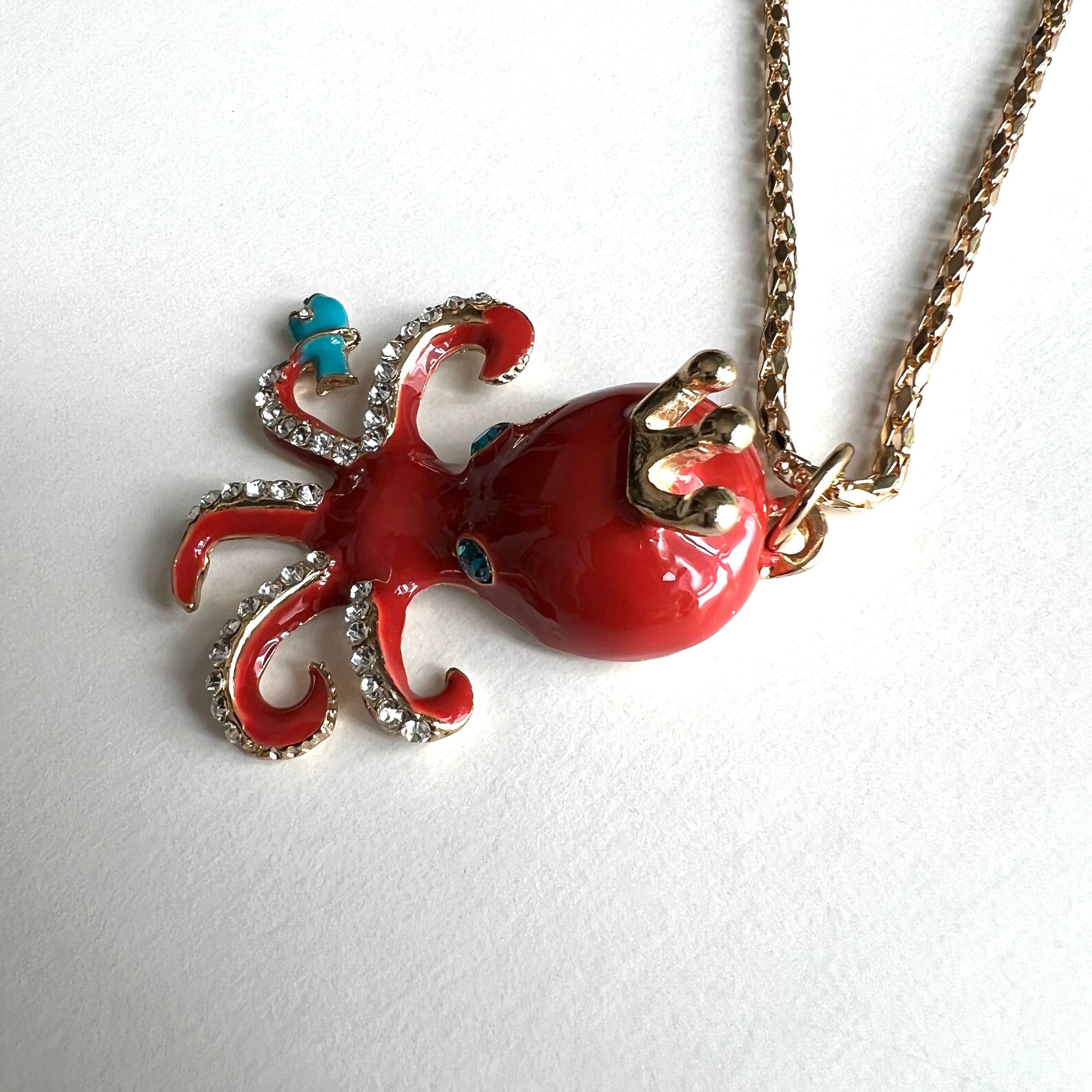 冠を被ったタコのモチーフ。お魚捕まえてます。