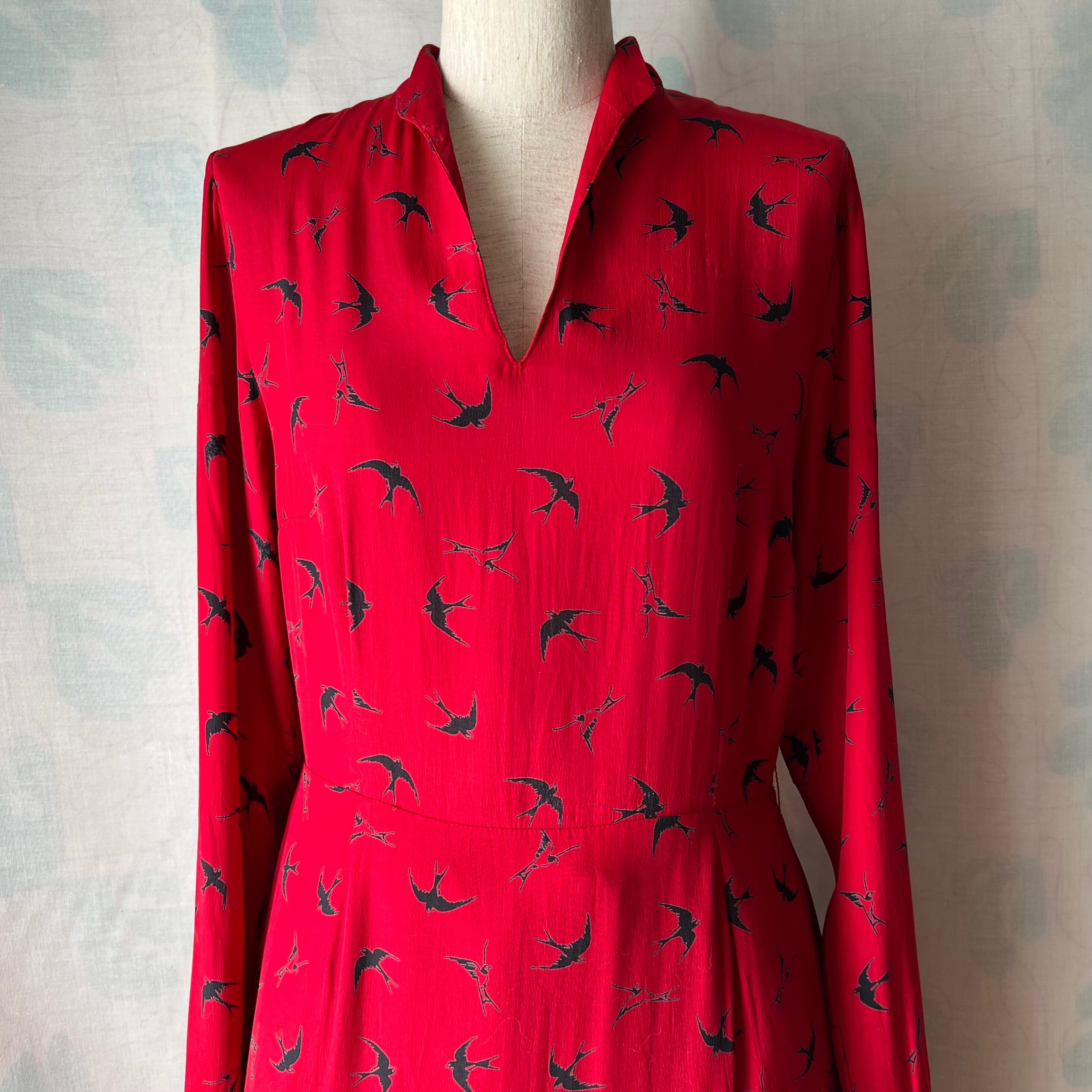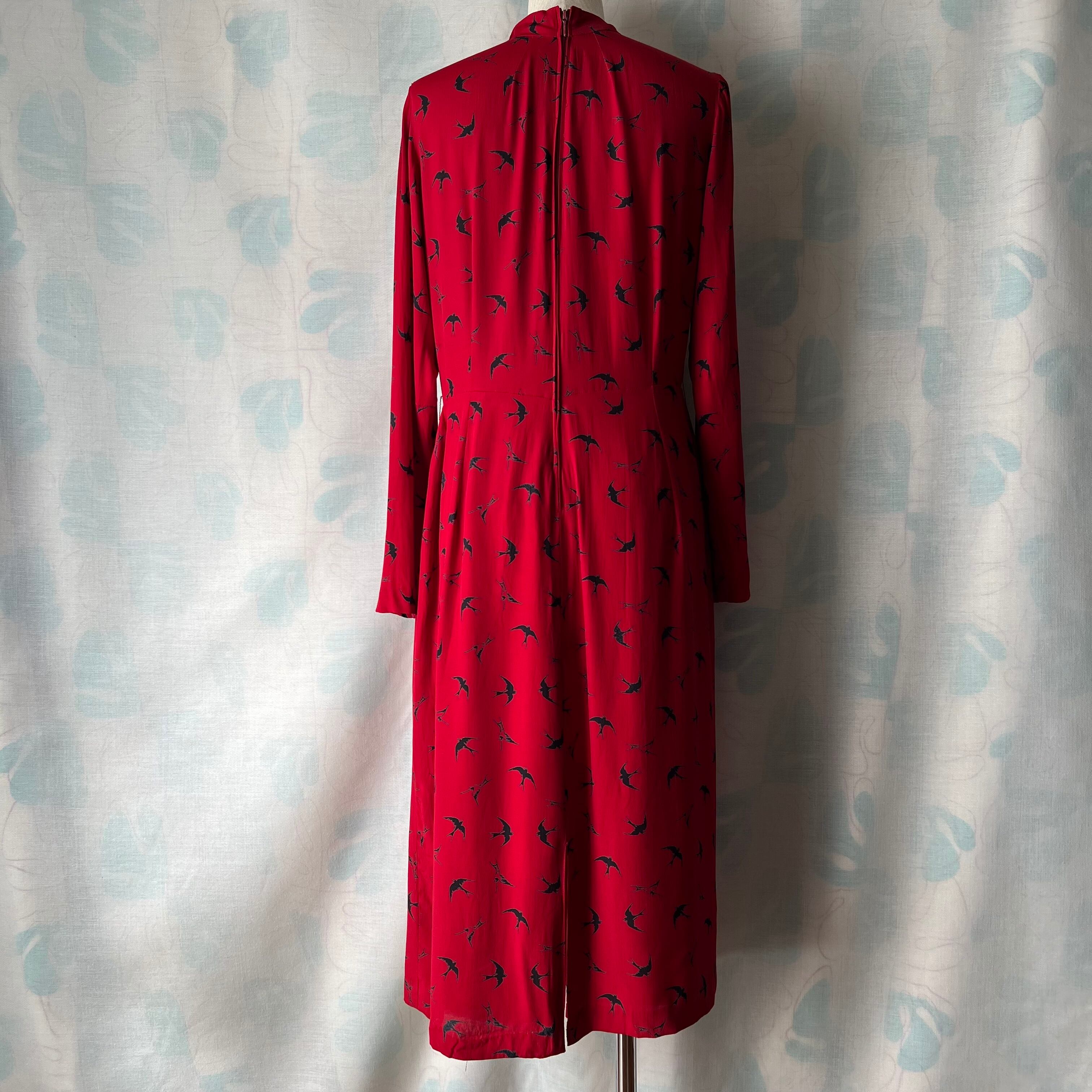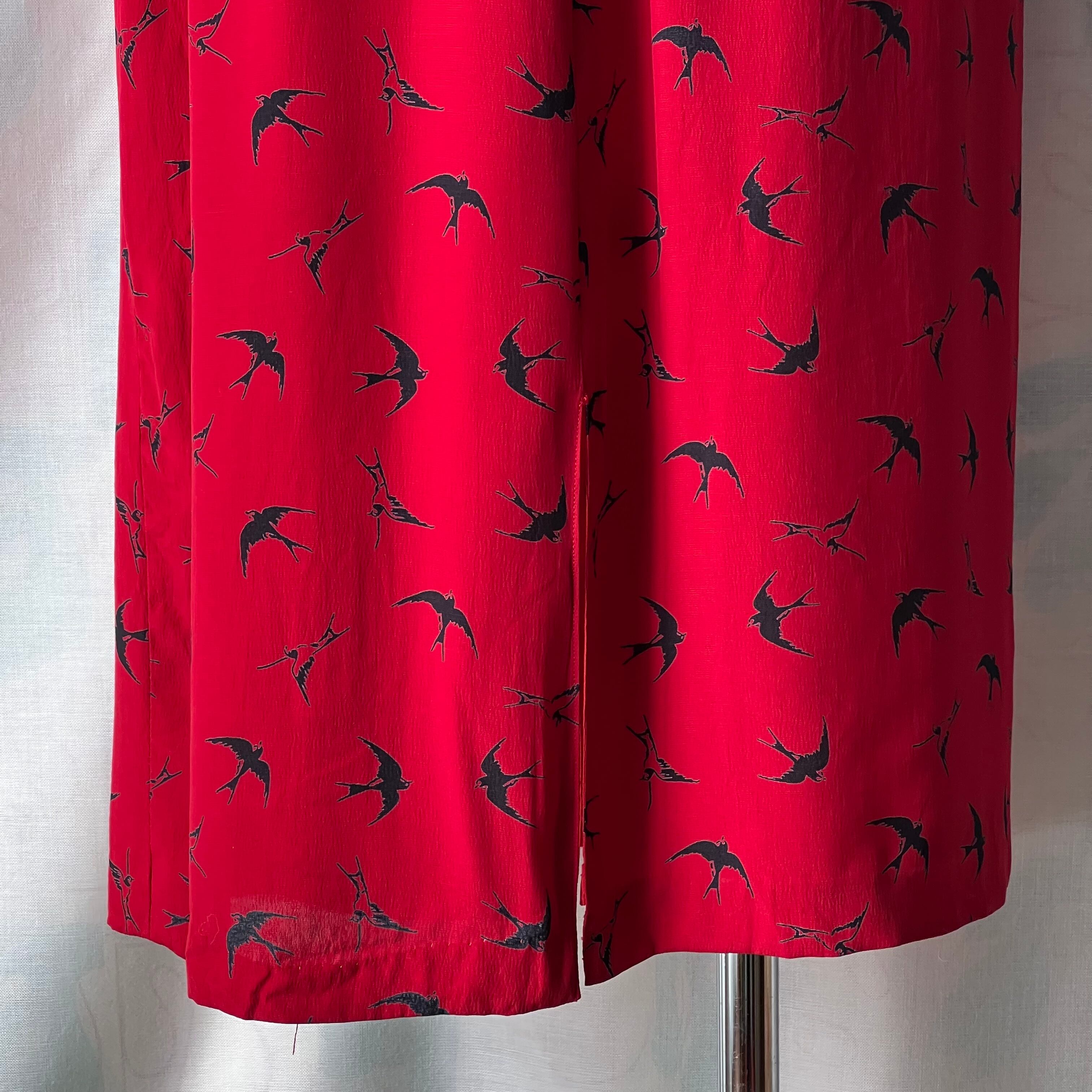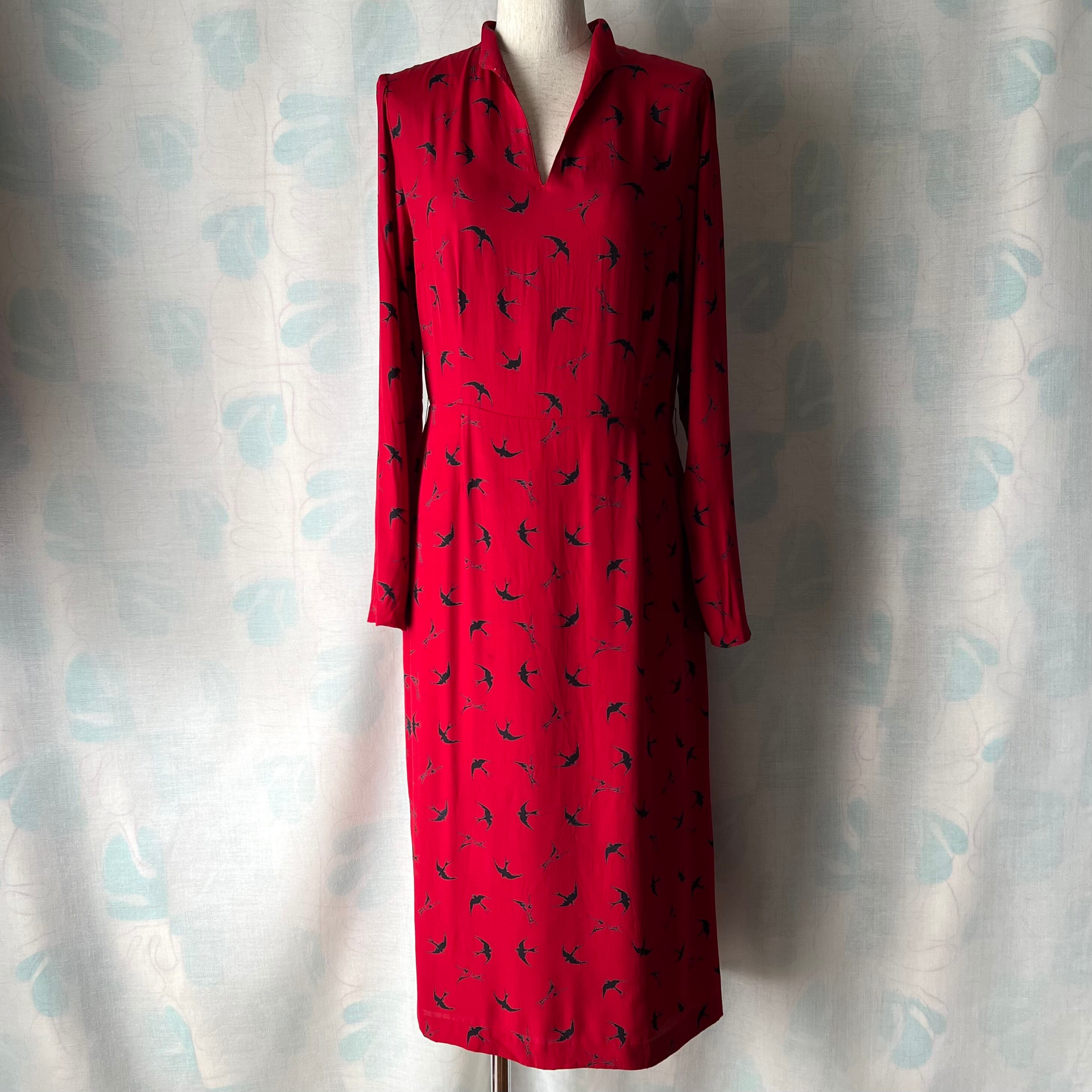 Vintage red×swallow pattern dress