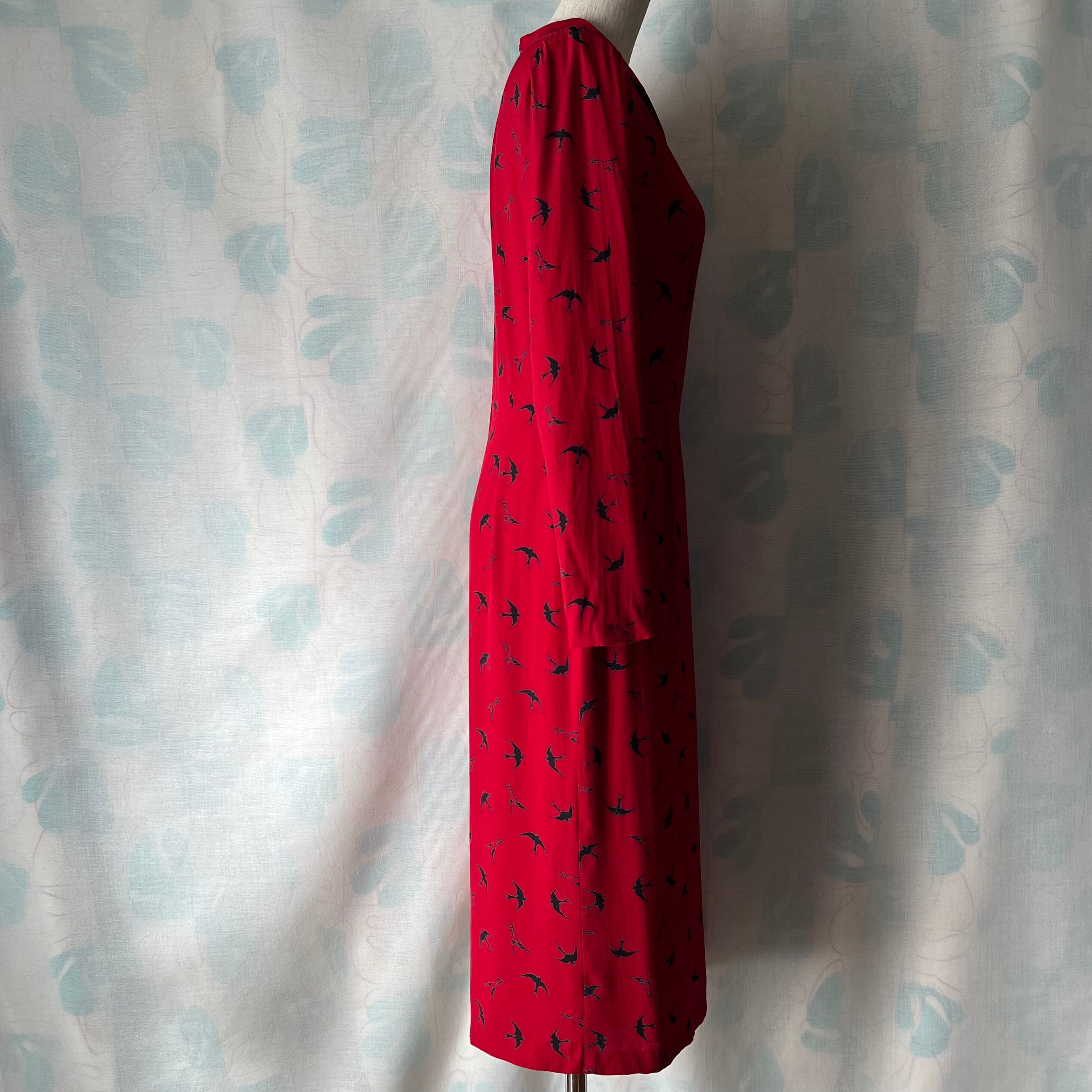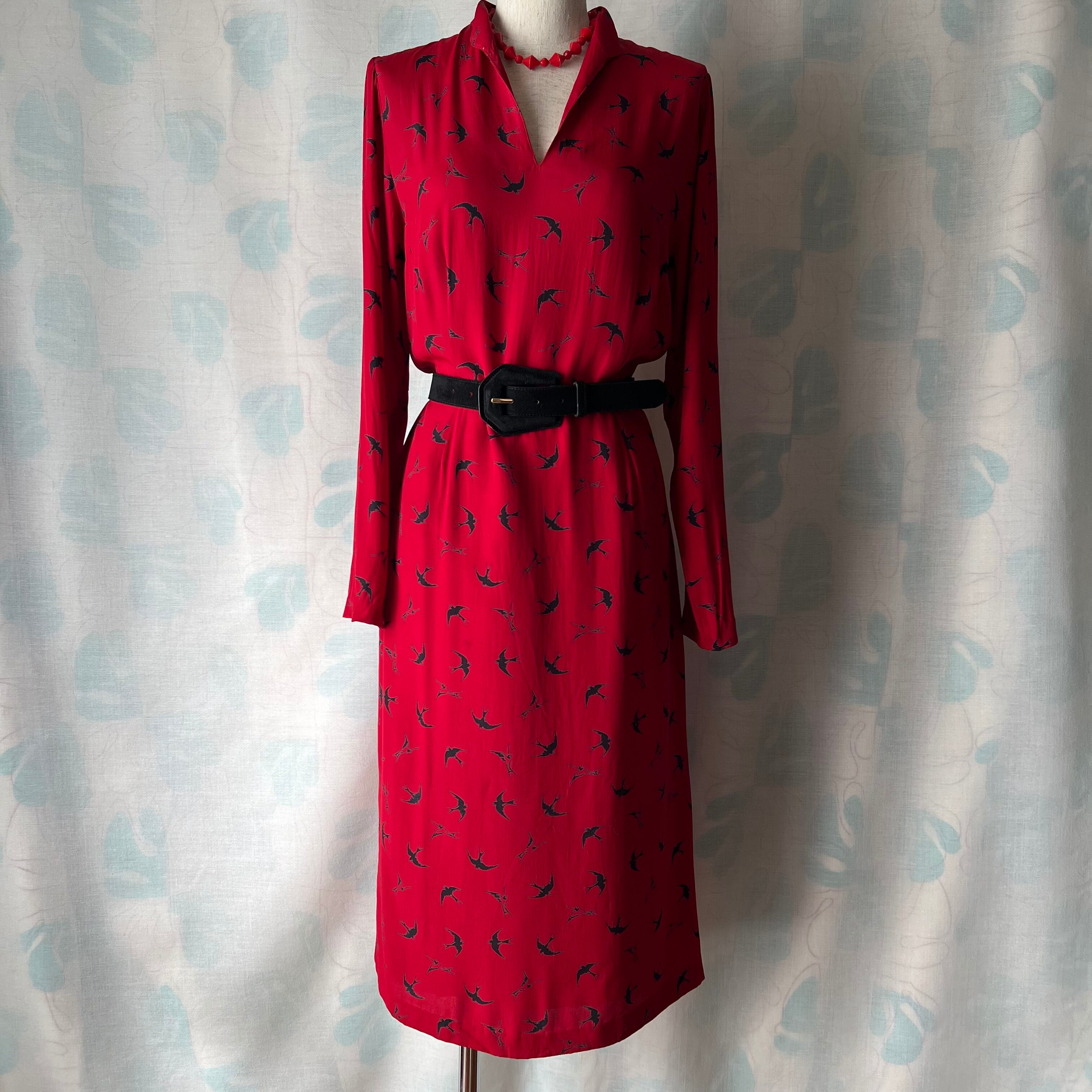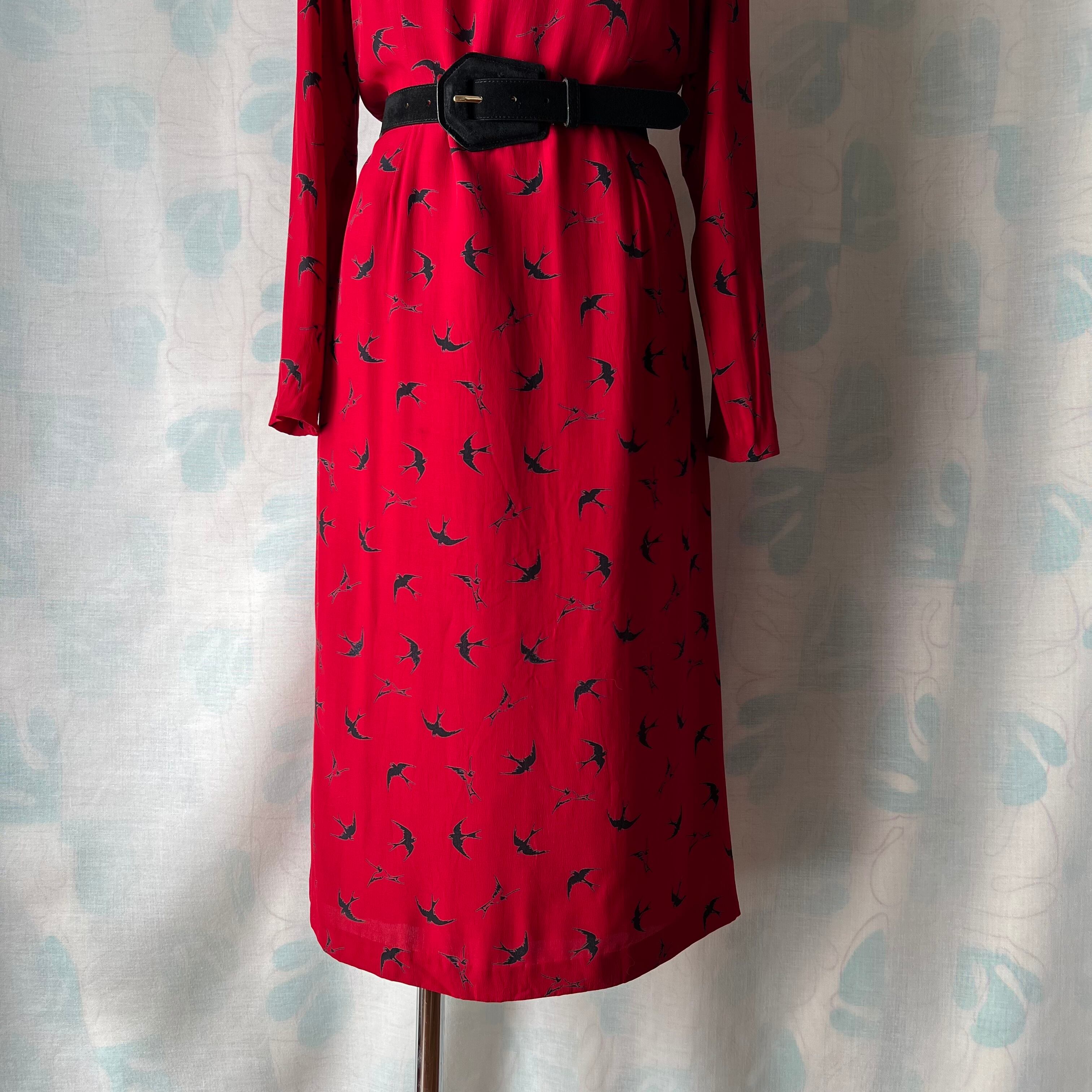 Vintage red×swallow pattern dress