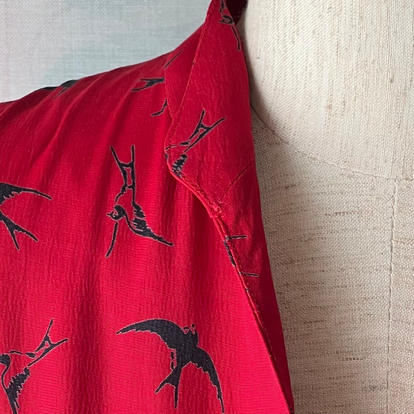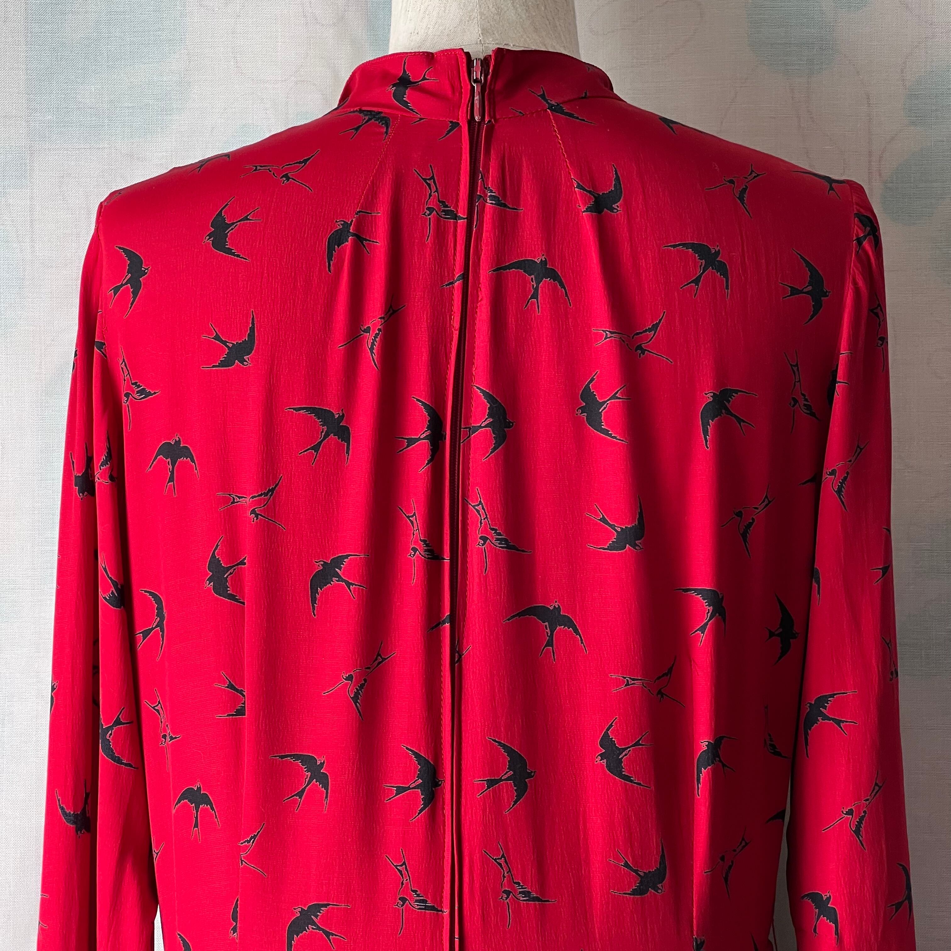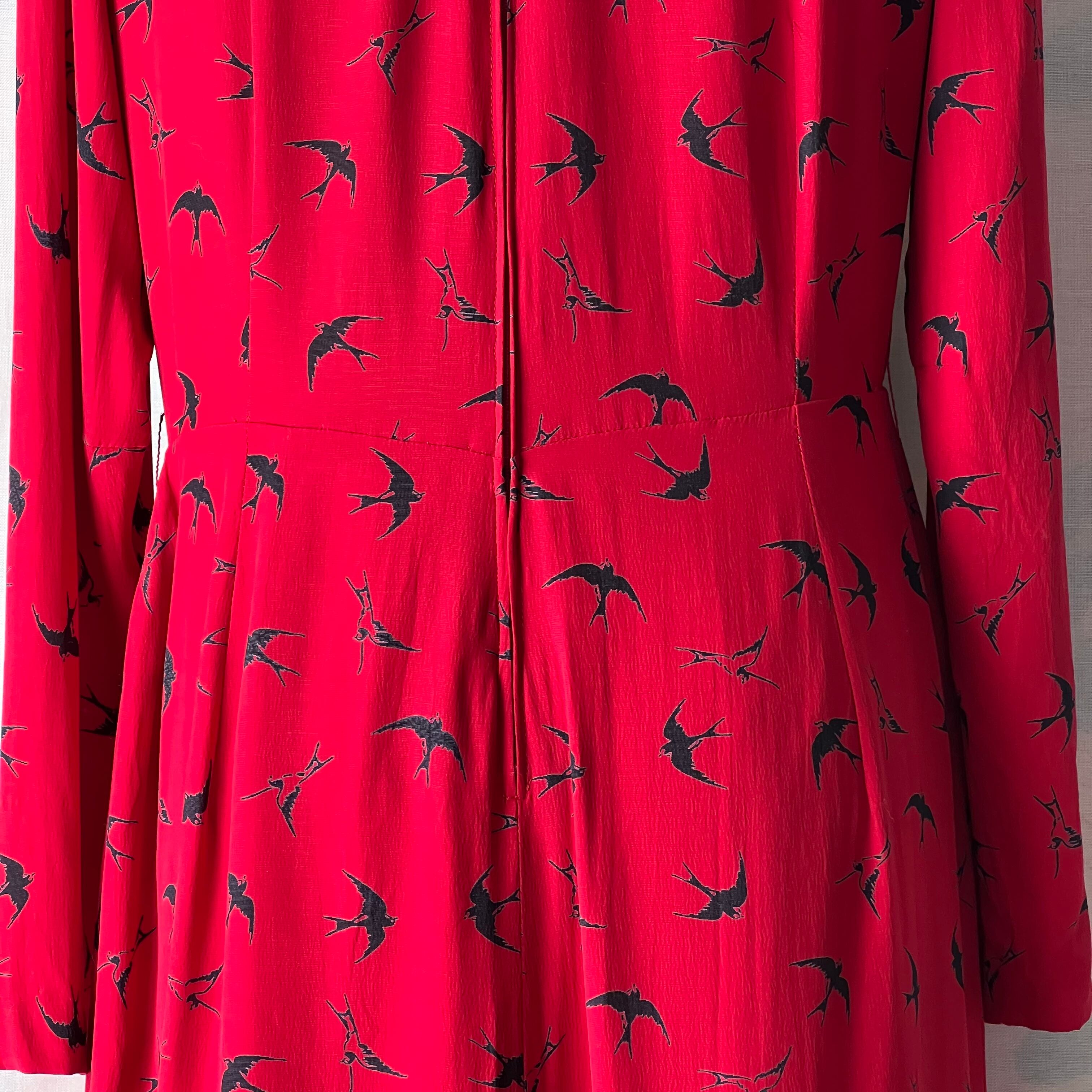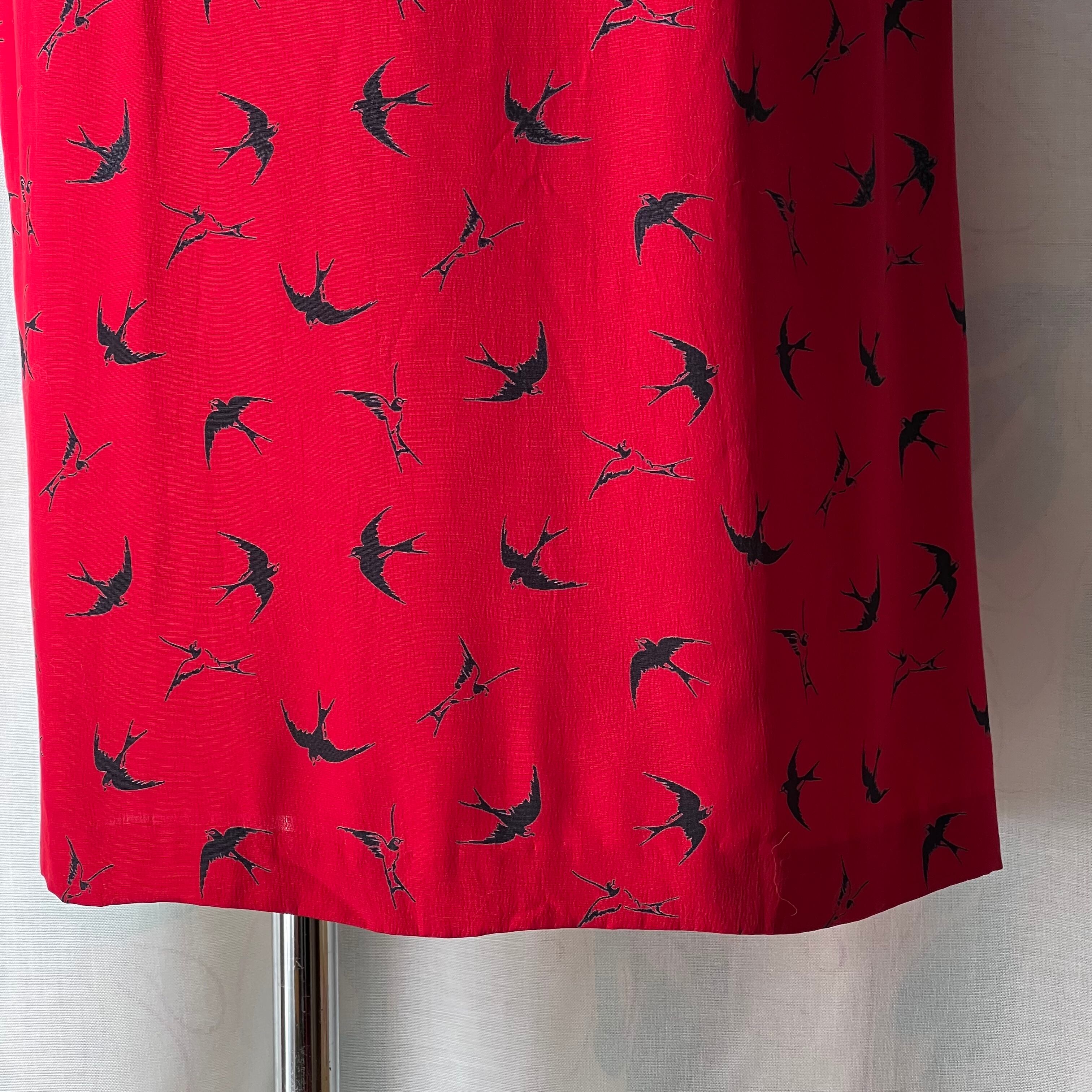 Vintage red×swallow pattern dress