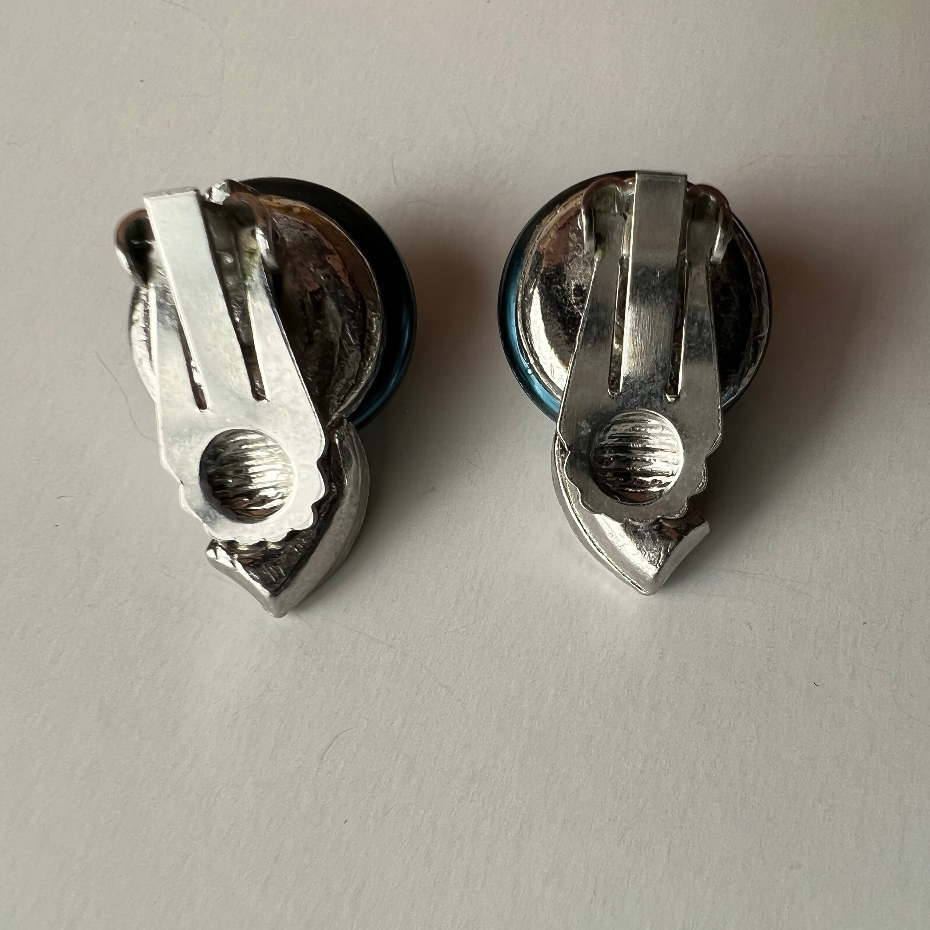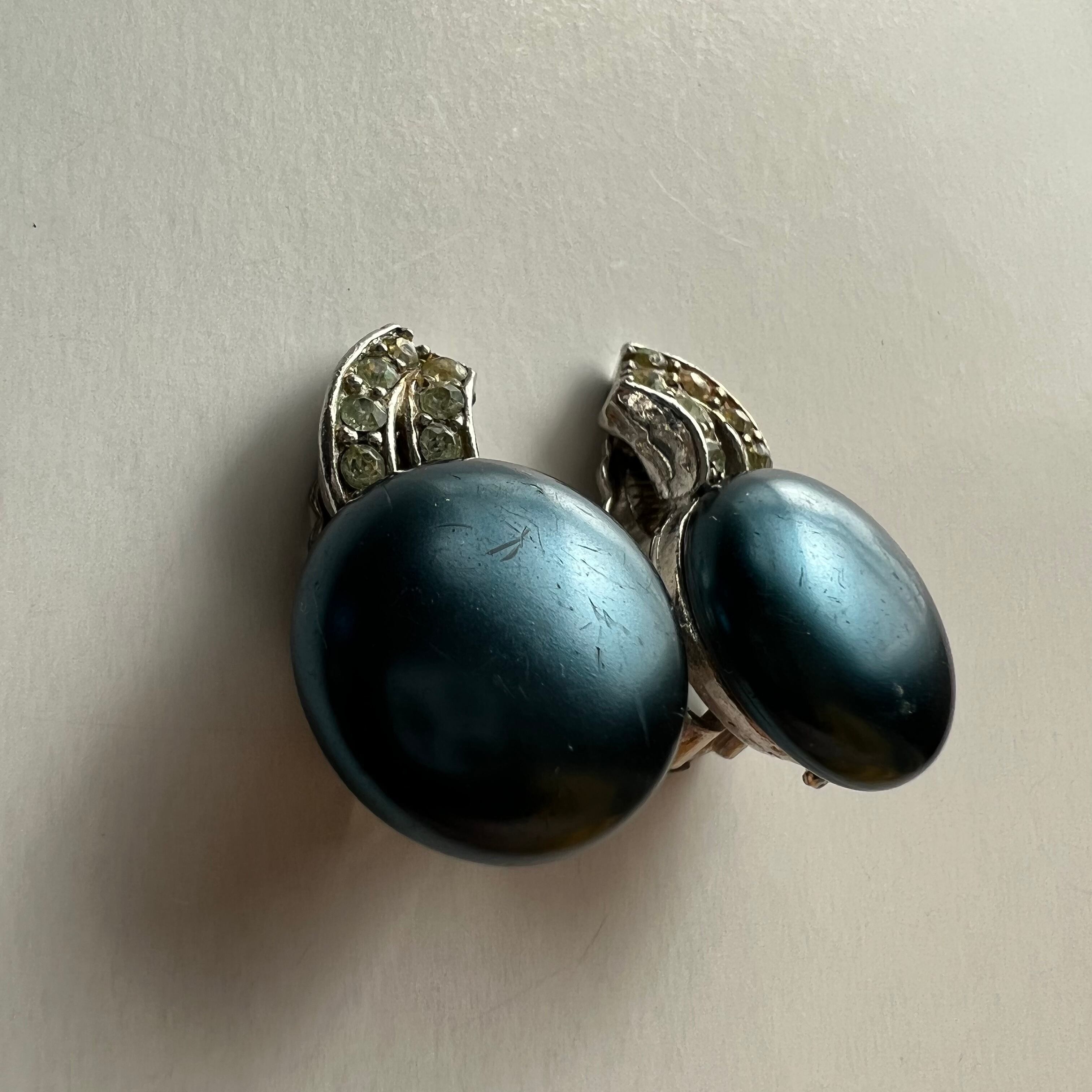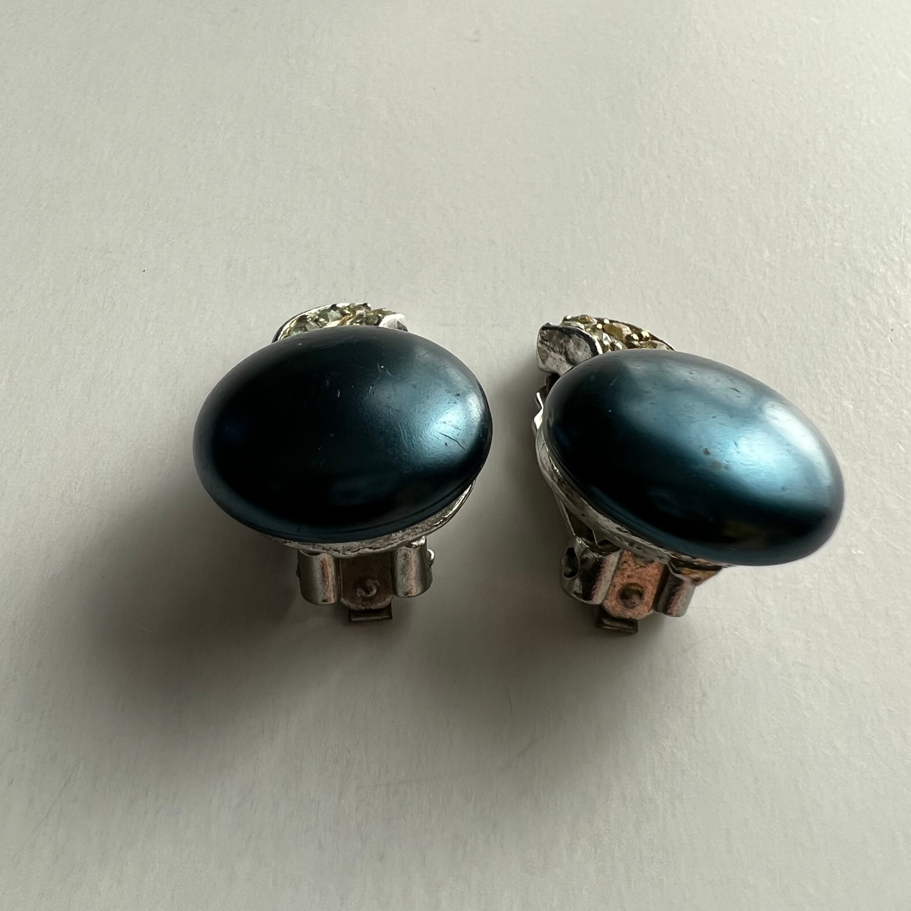 メタリックブルーのパーツからラインストーンが流れるデザインの聖夜を思わせるイヤリング。