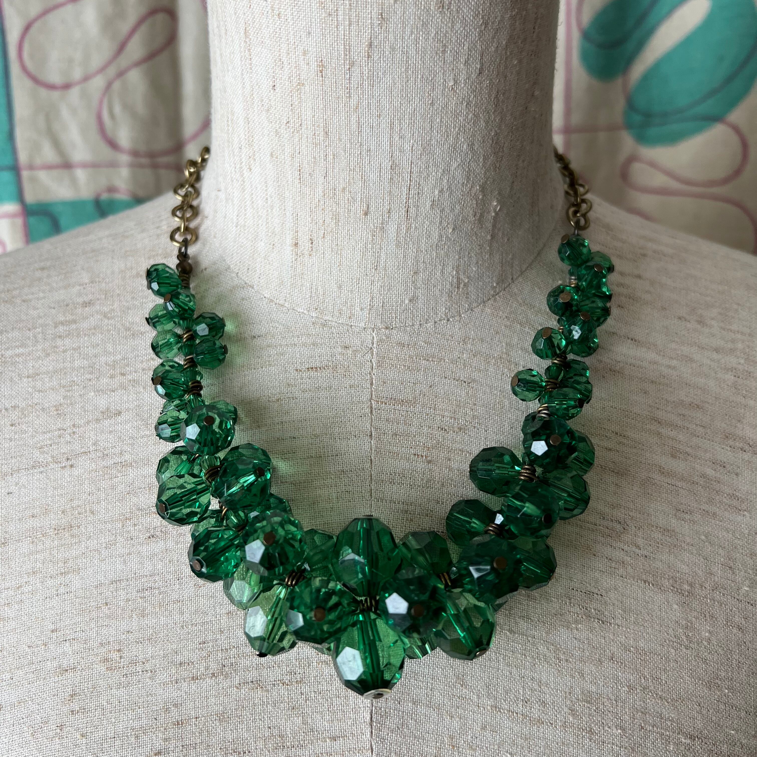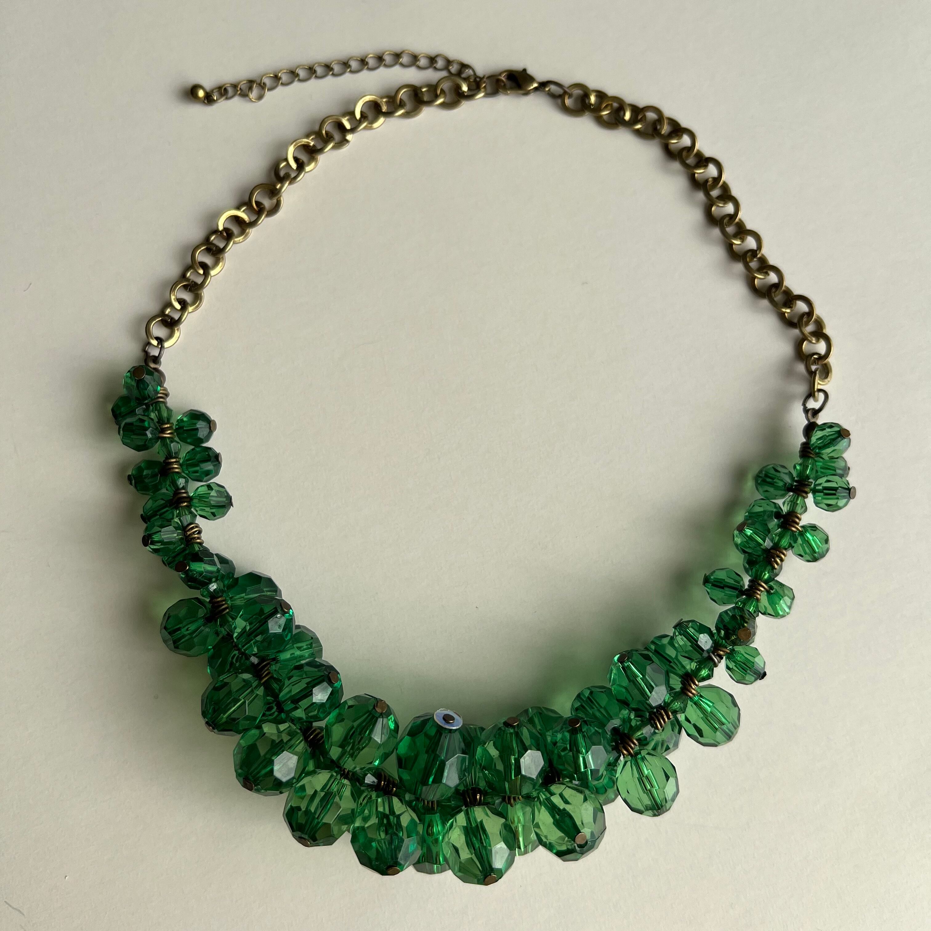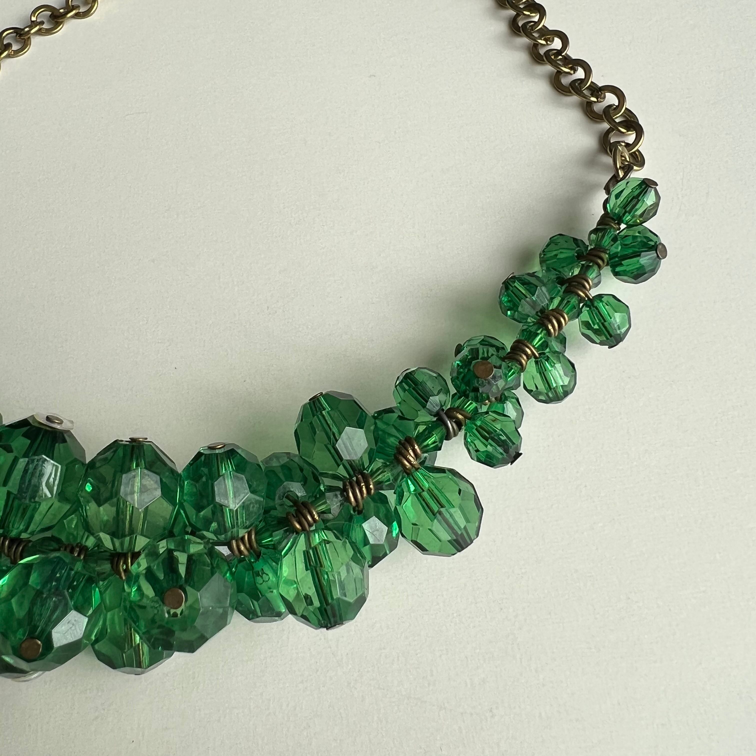 80's Clear green plastic bead necklace