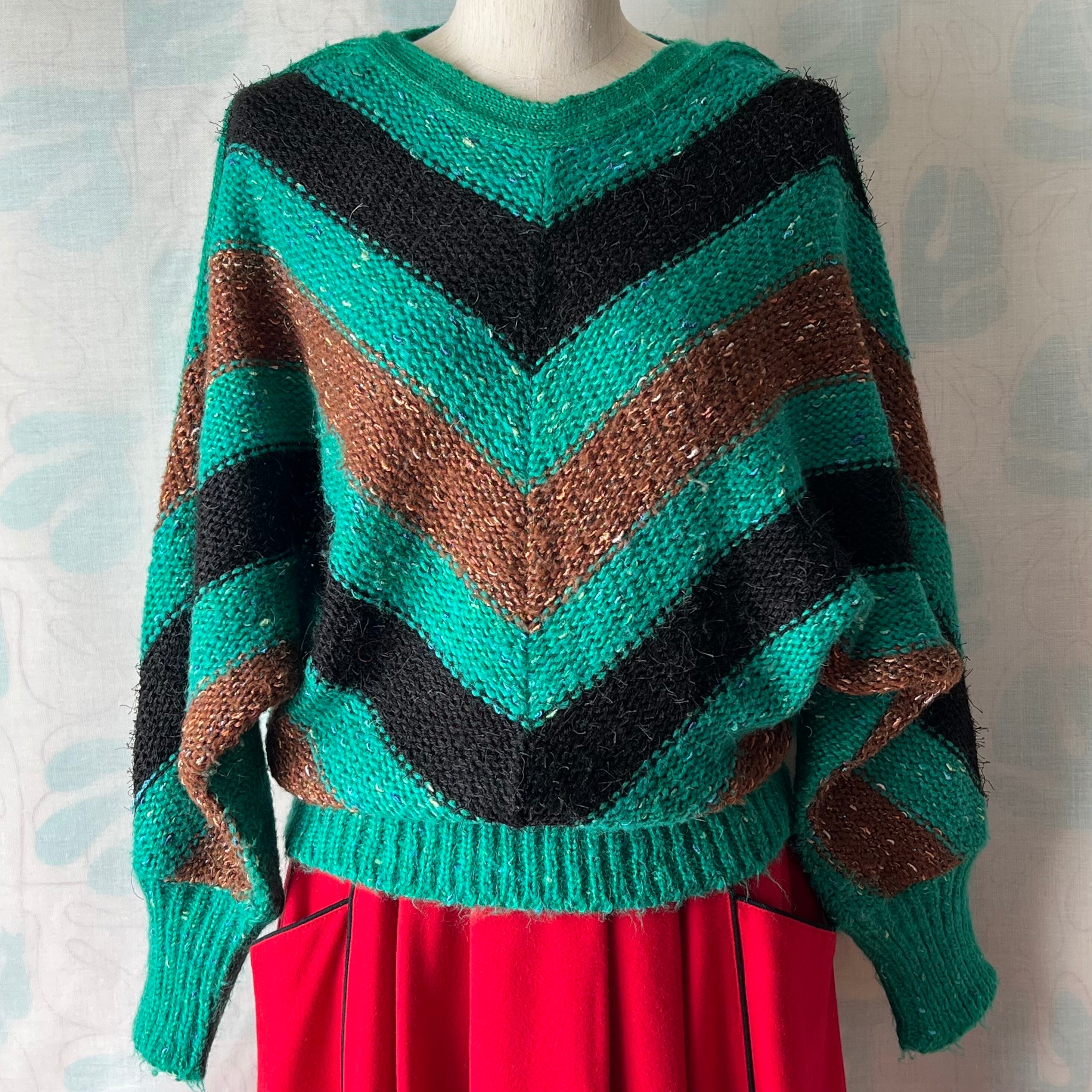 80's V-shaped border dolman sleeve sweater