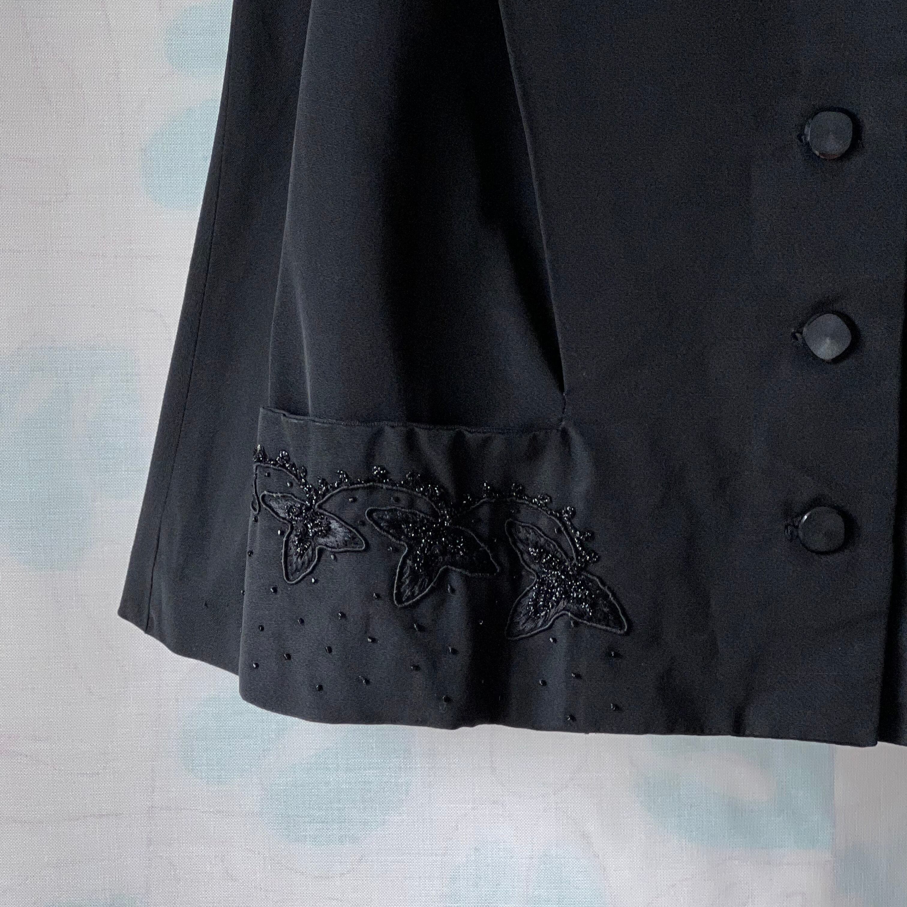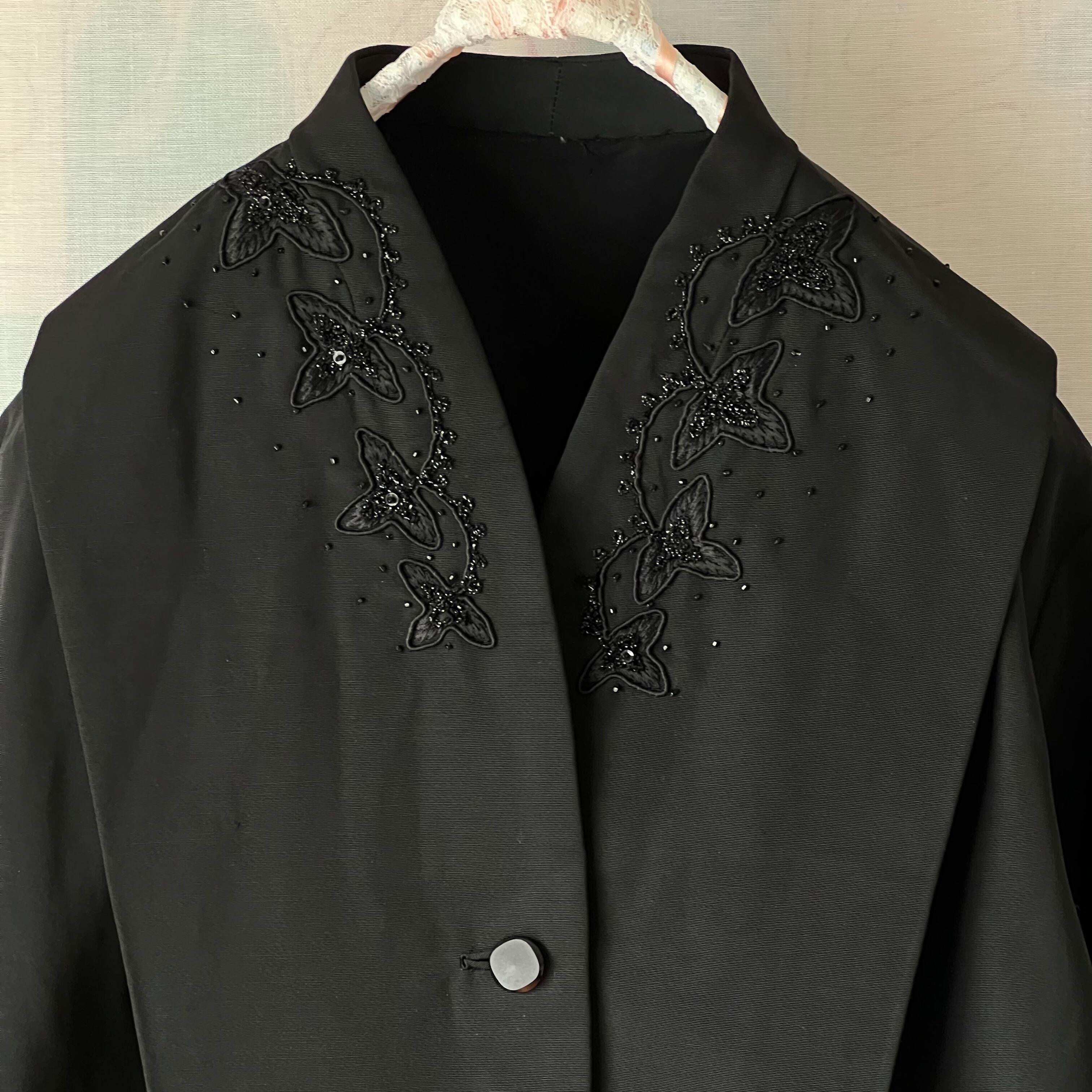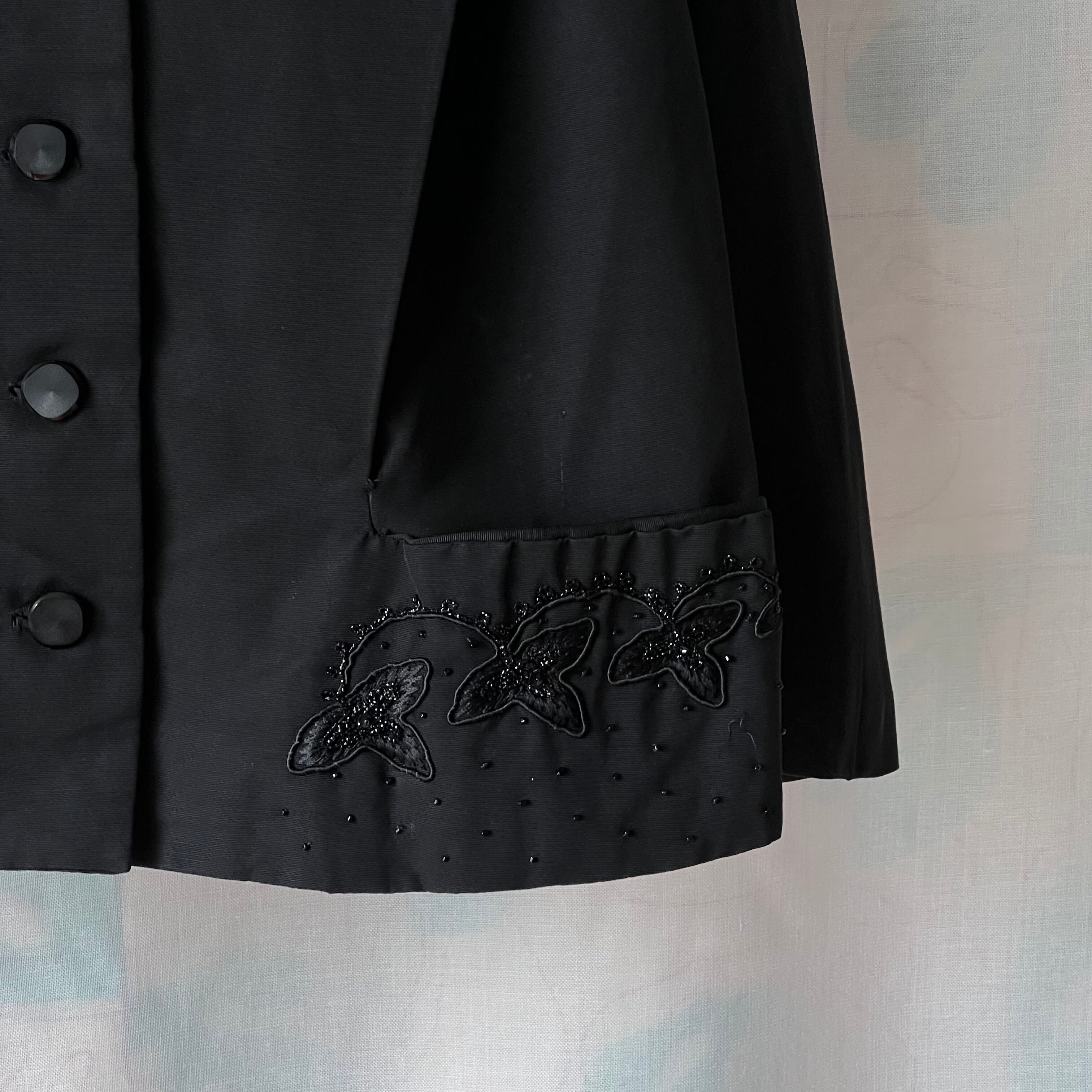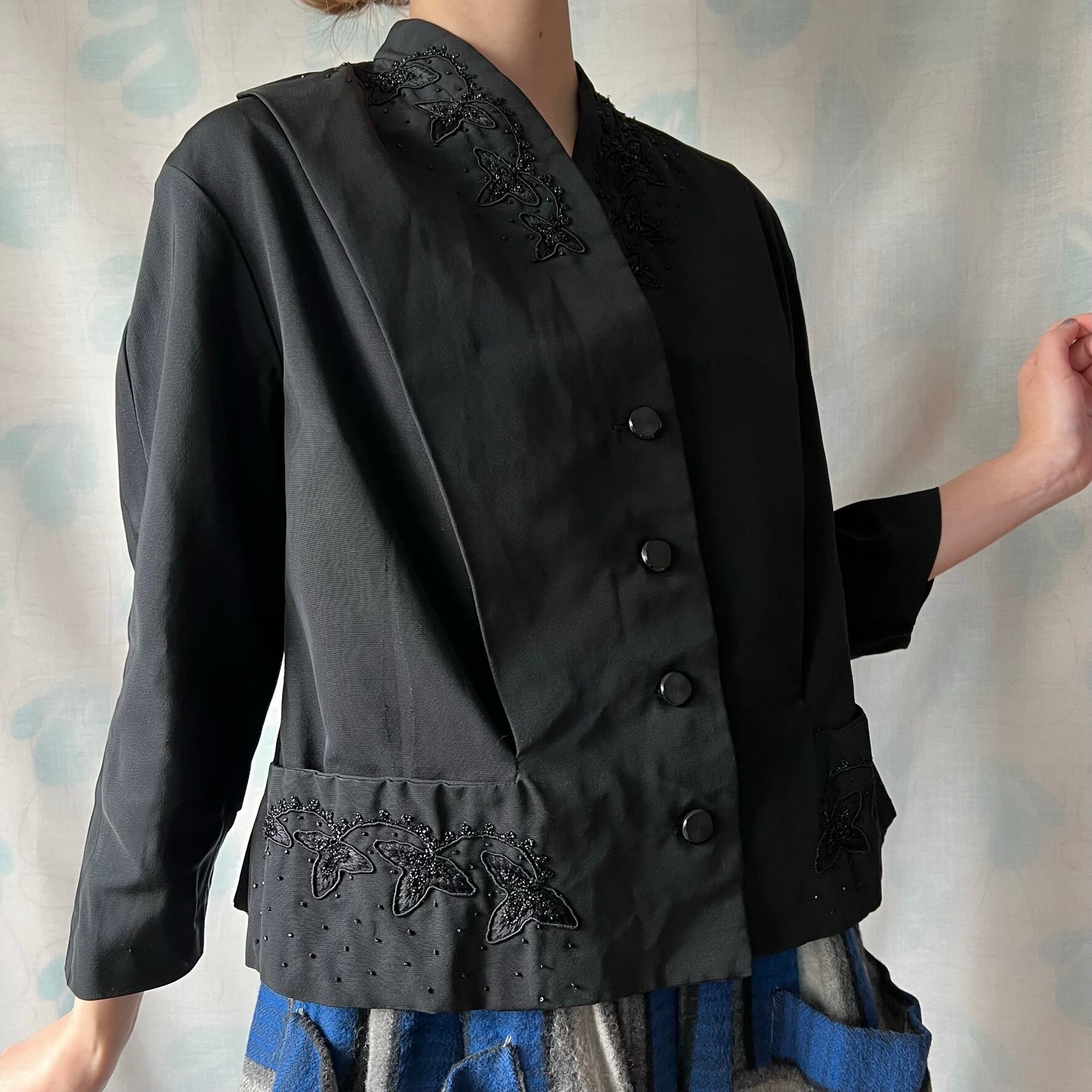 50's ビーズ刺繍が美しいブラックノーカラージャケット。