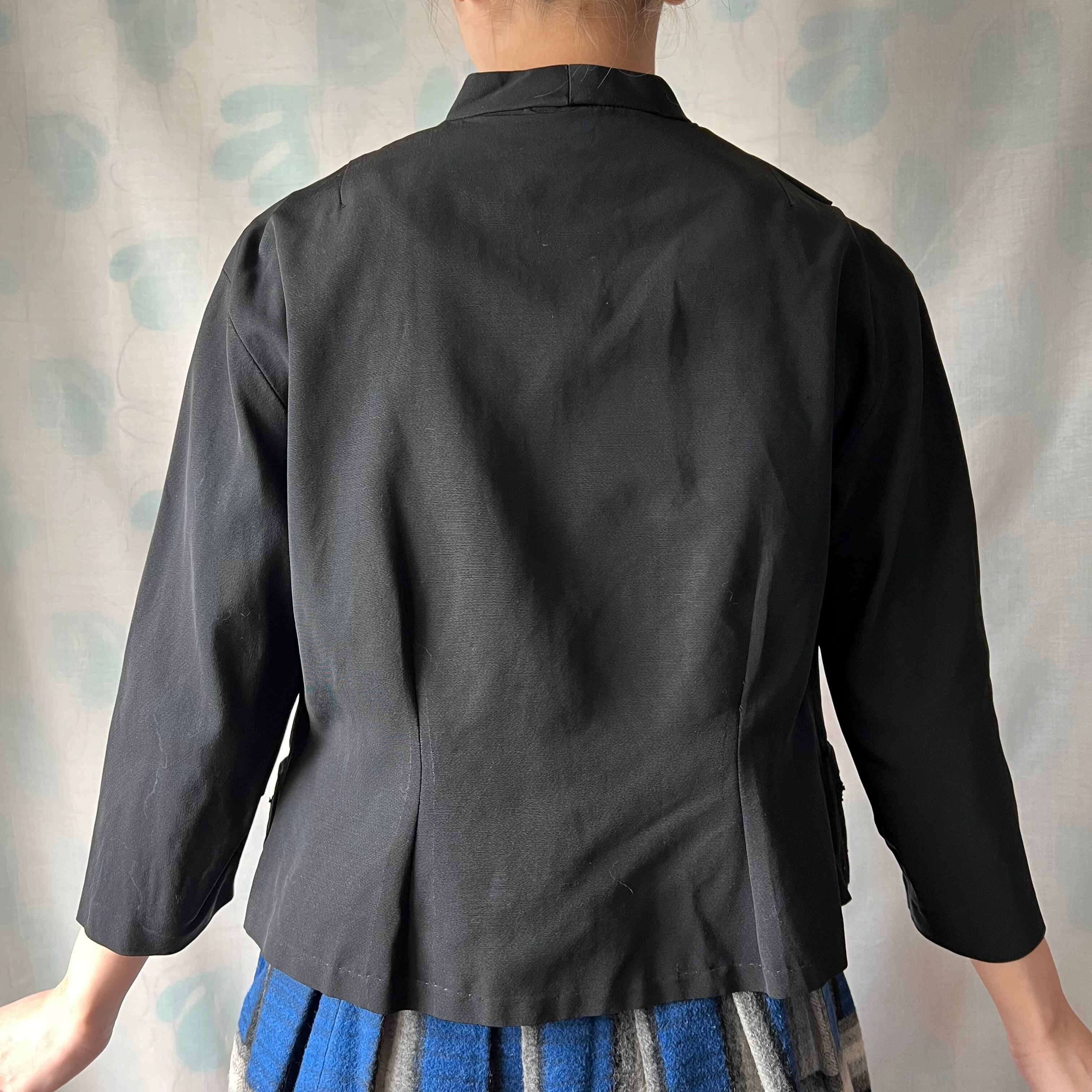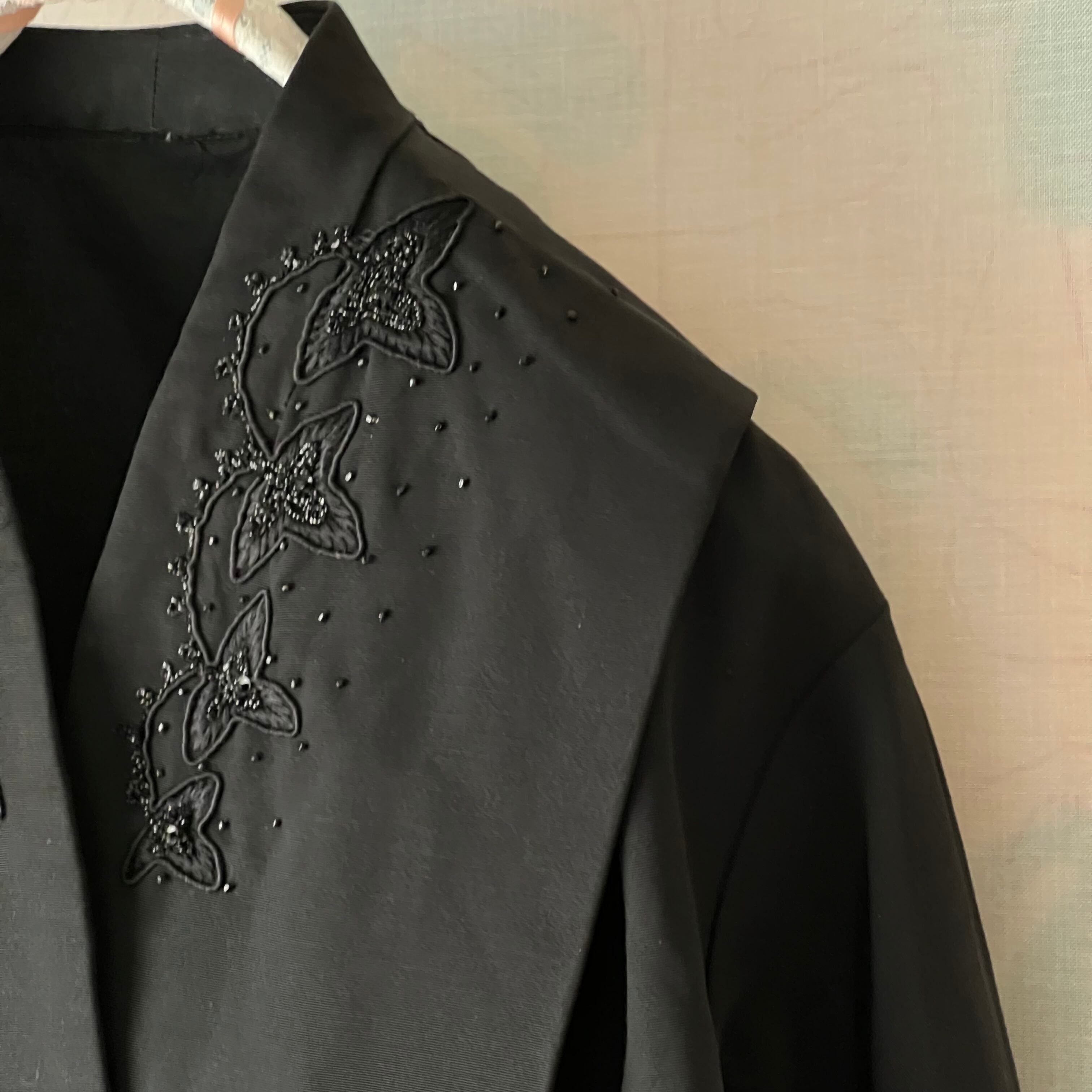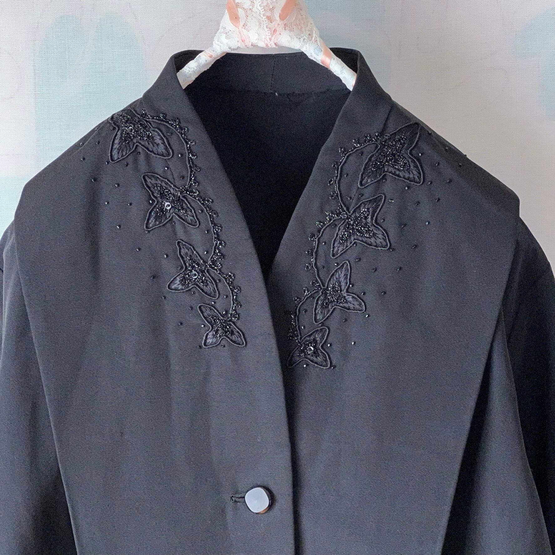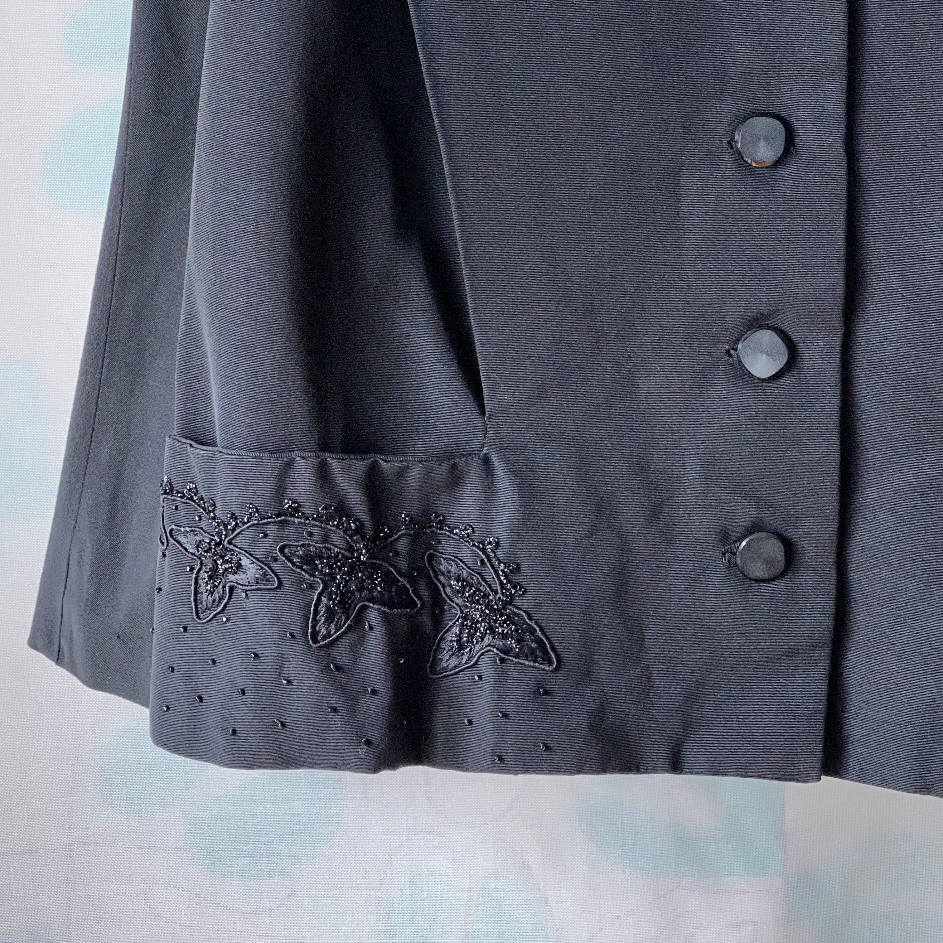 50's ビーズ刺繍が美しいブラックノーカラージャケット。