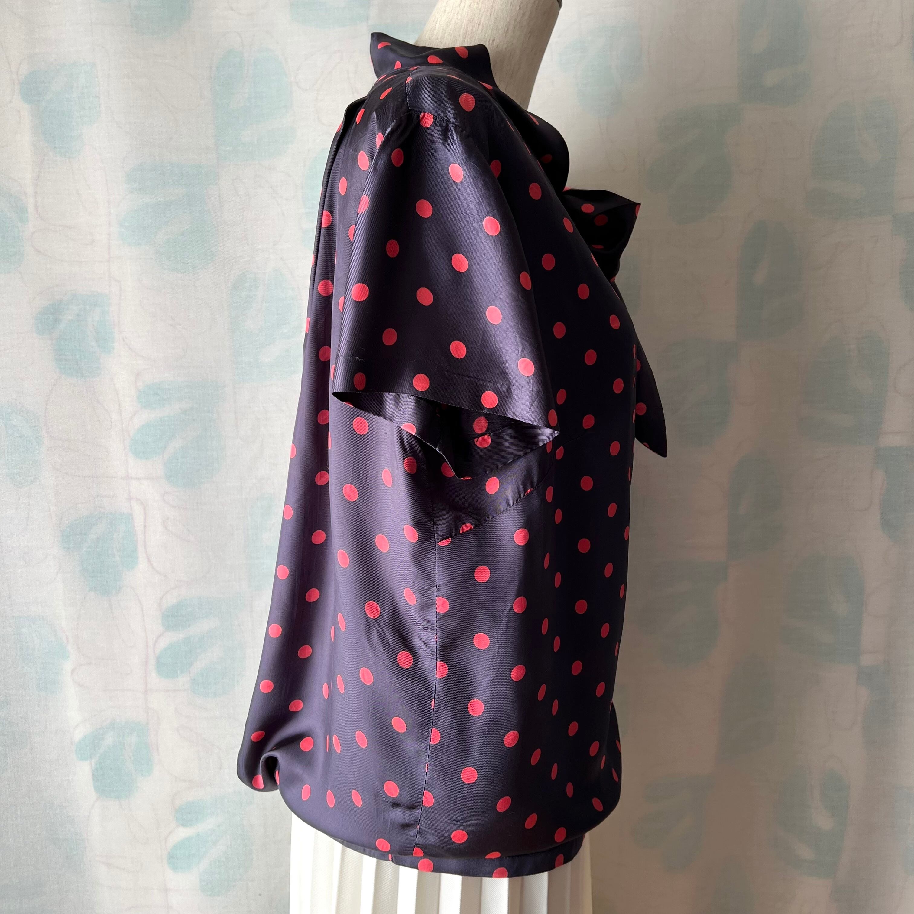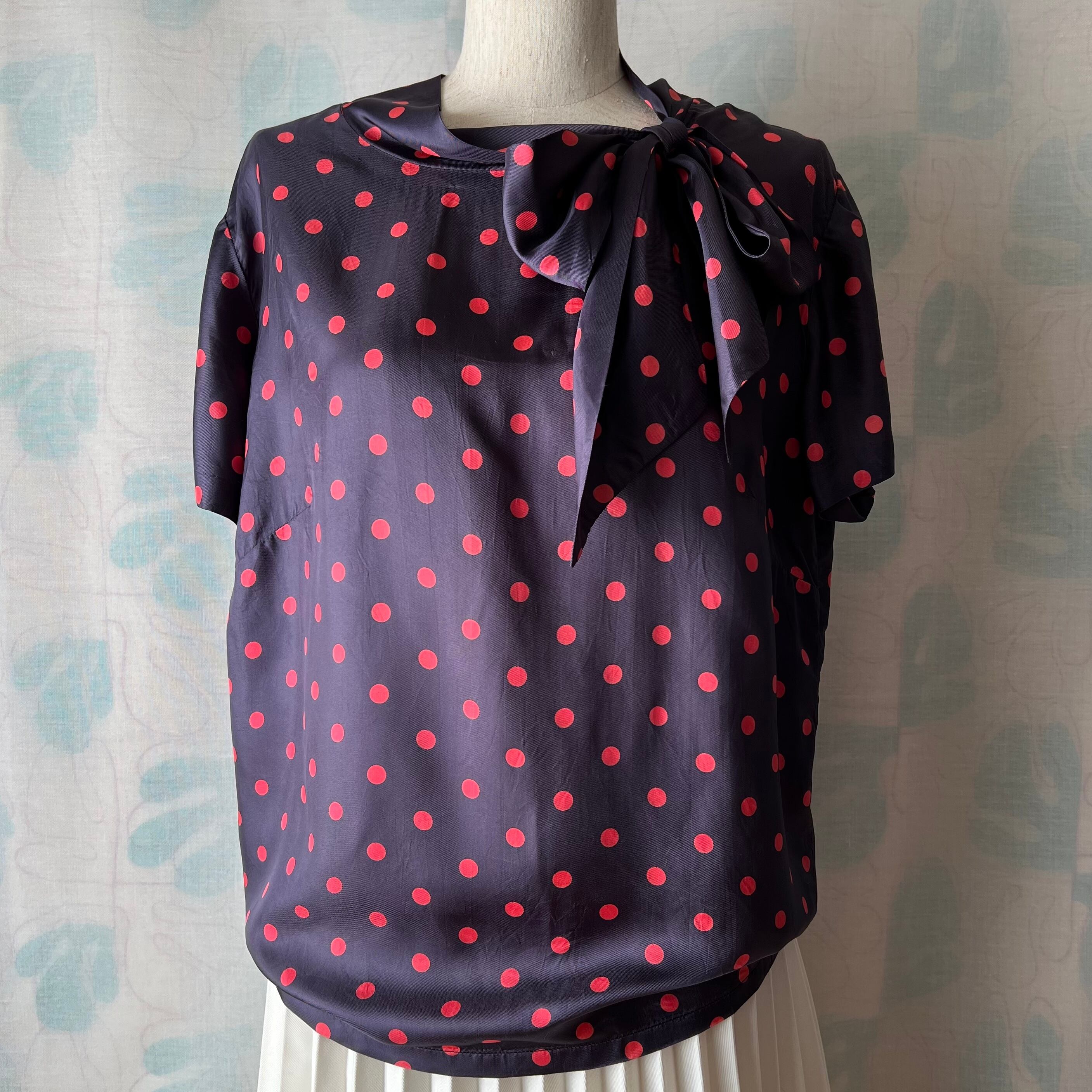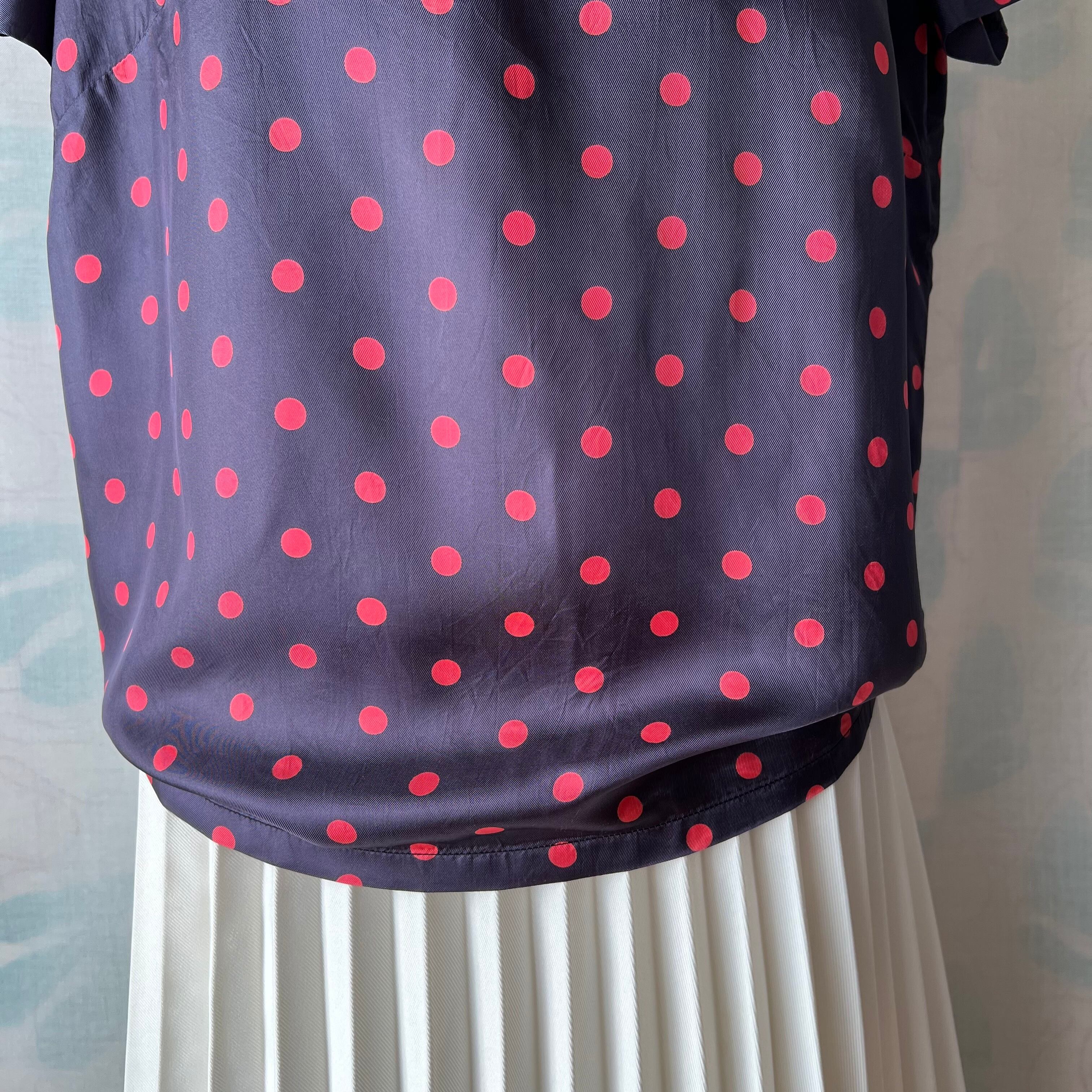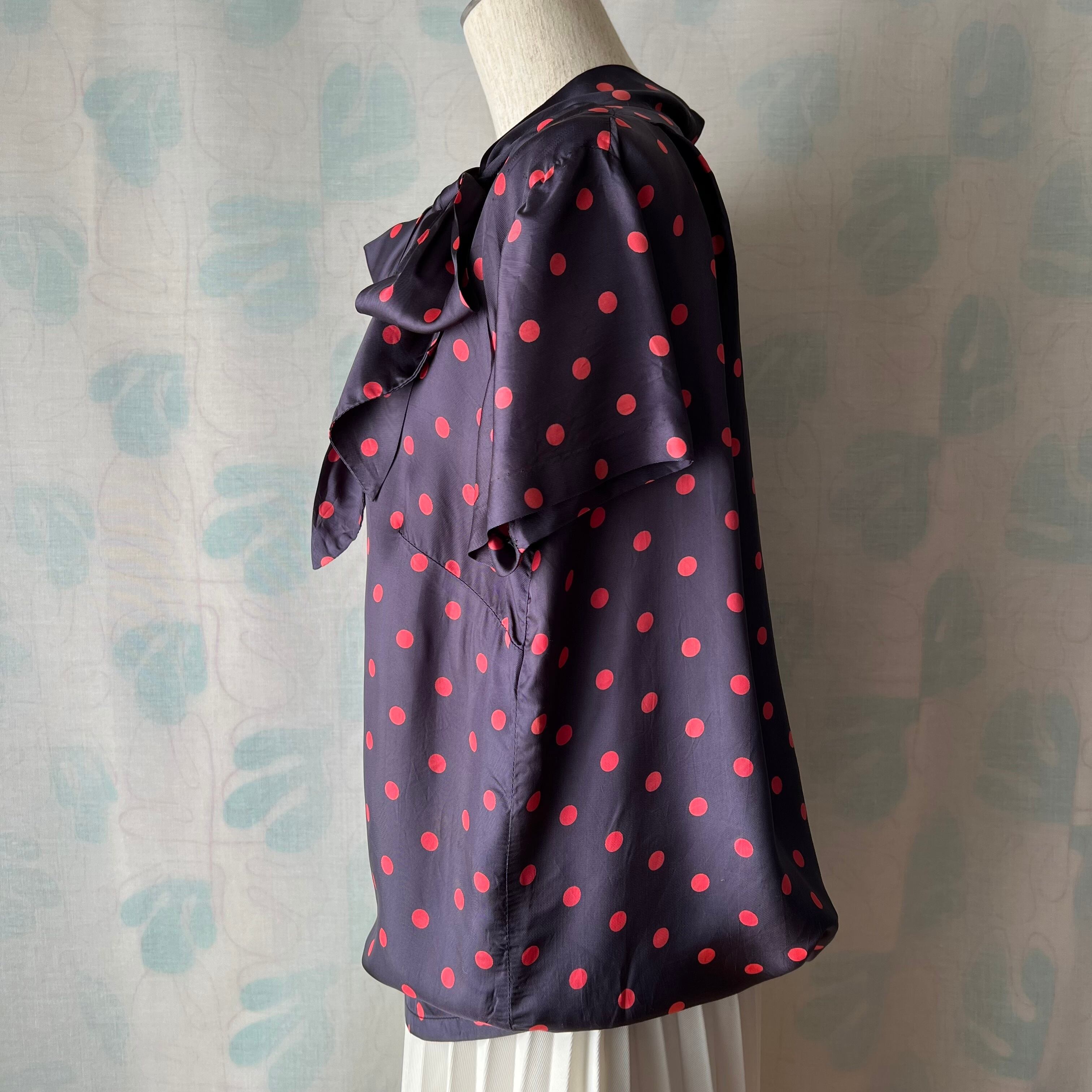 Vintage navy x red polka dots short sleeve pullover with ribbon