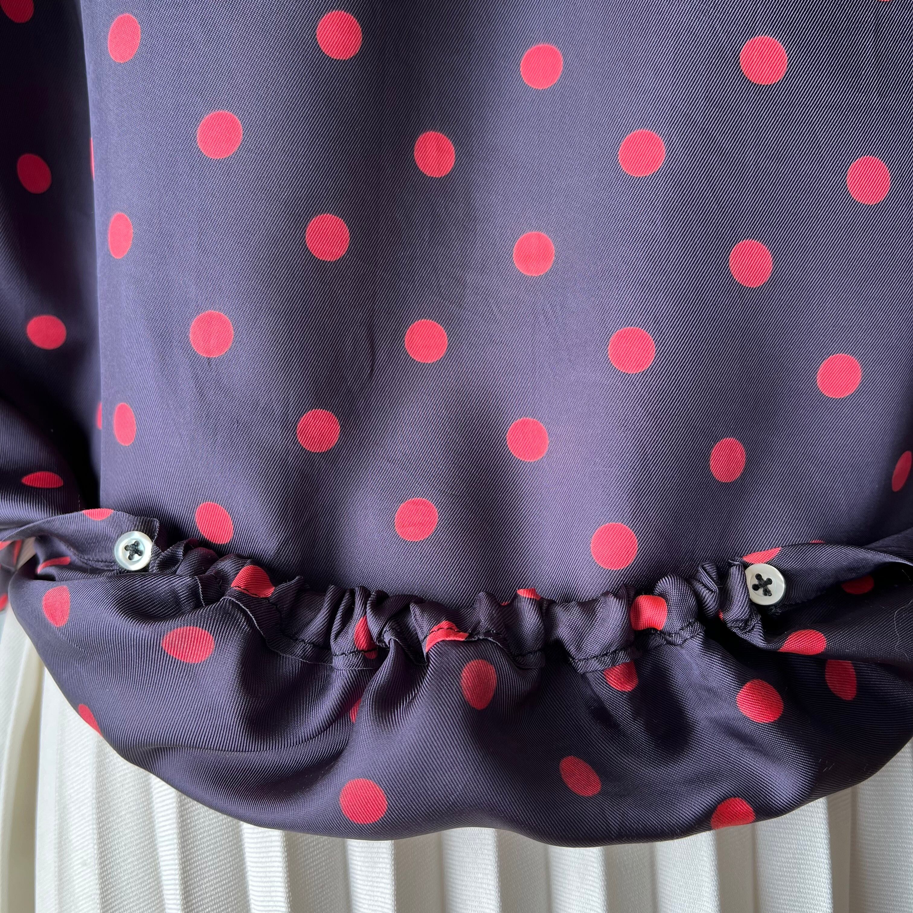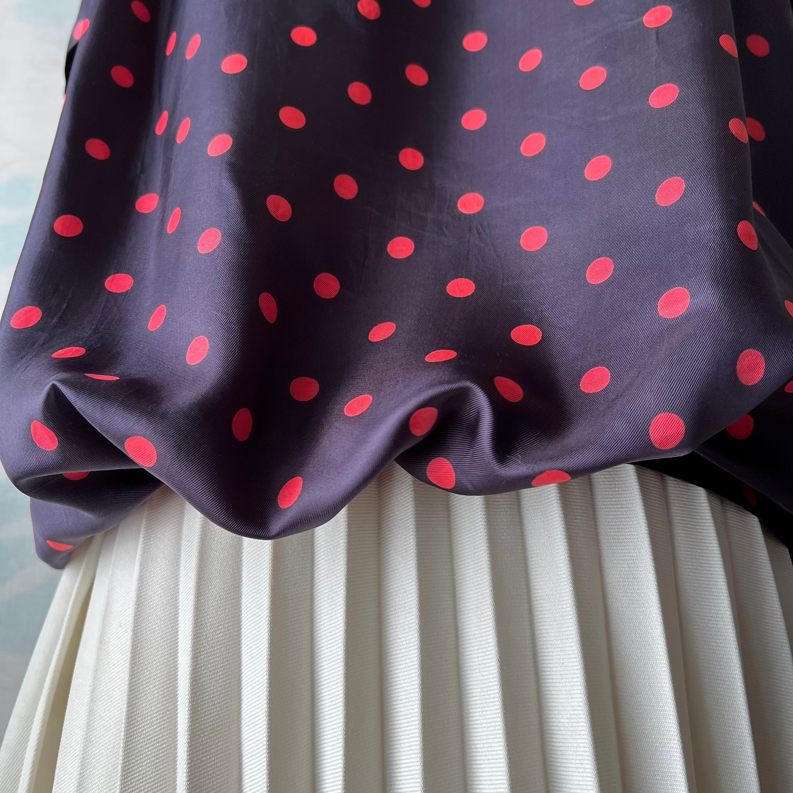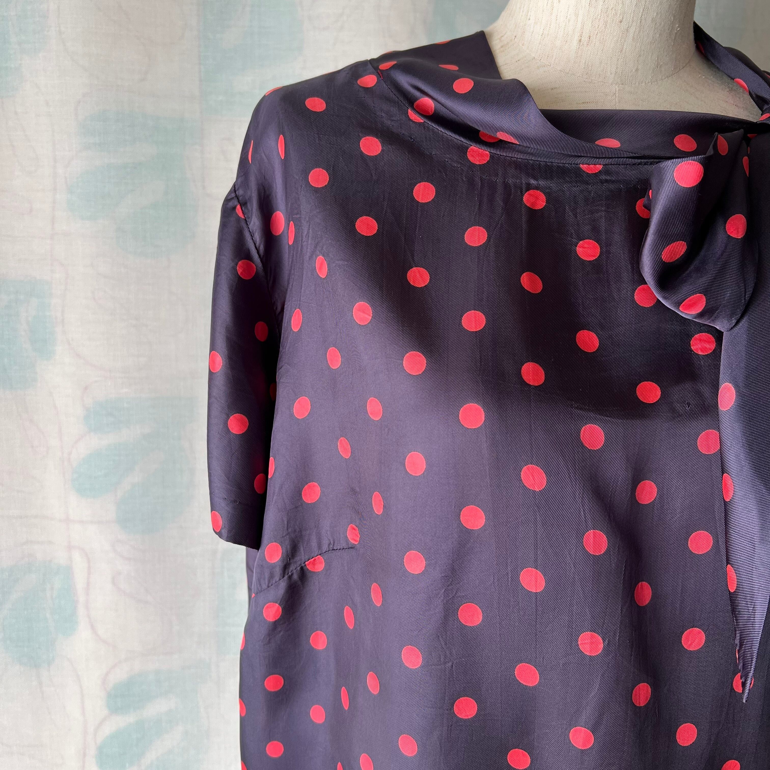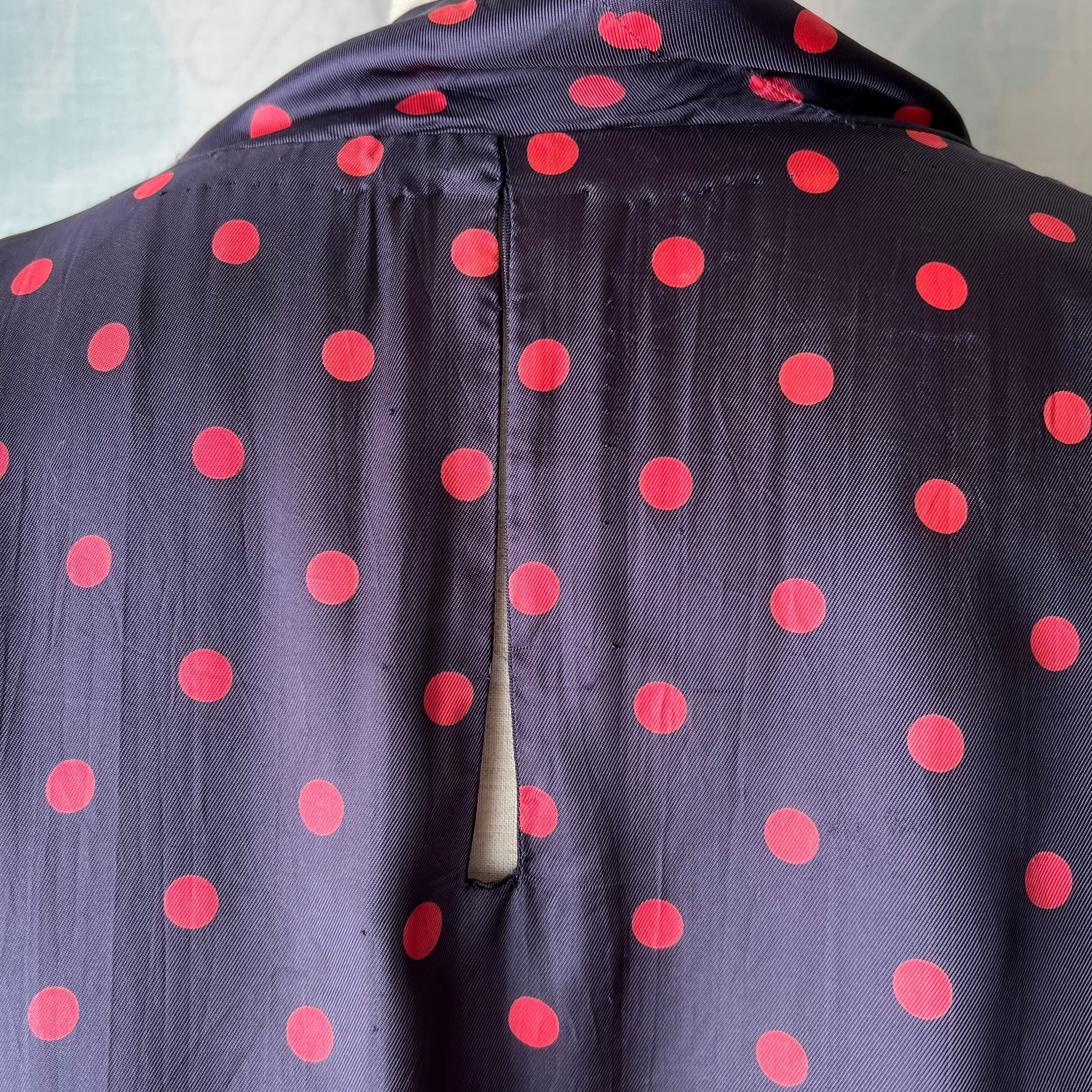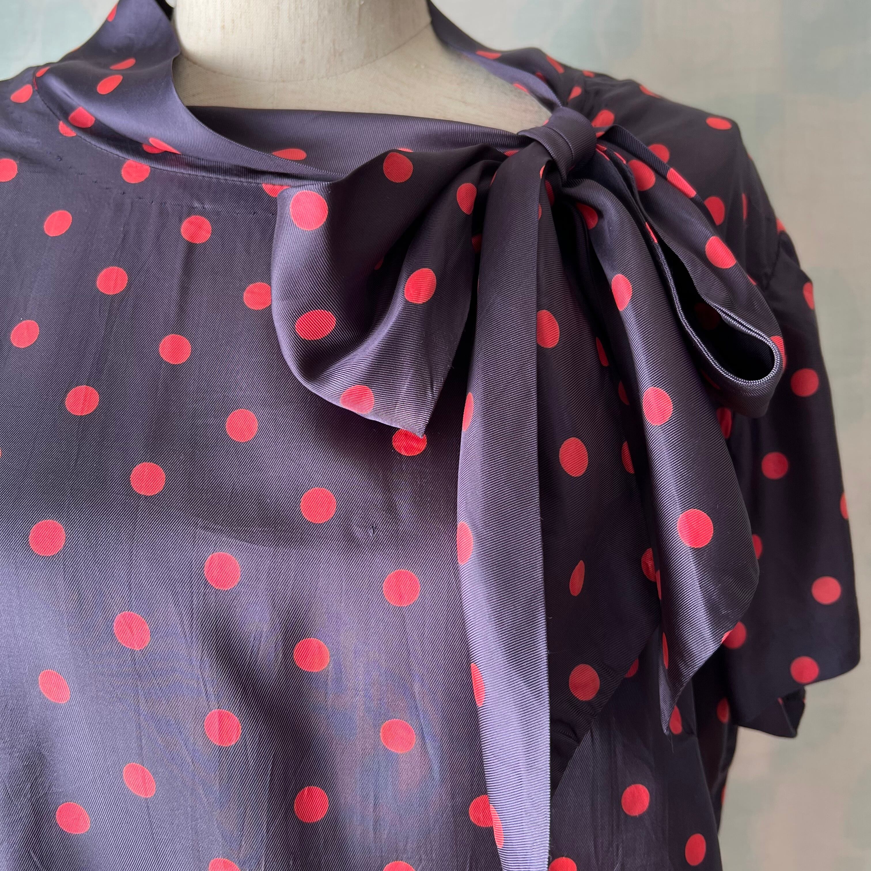 Vintage navy x red polka dots short sleeve pullover with ribbon