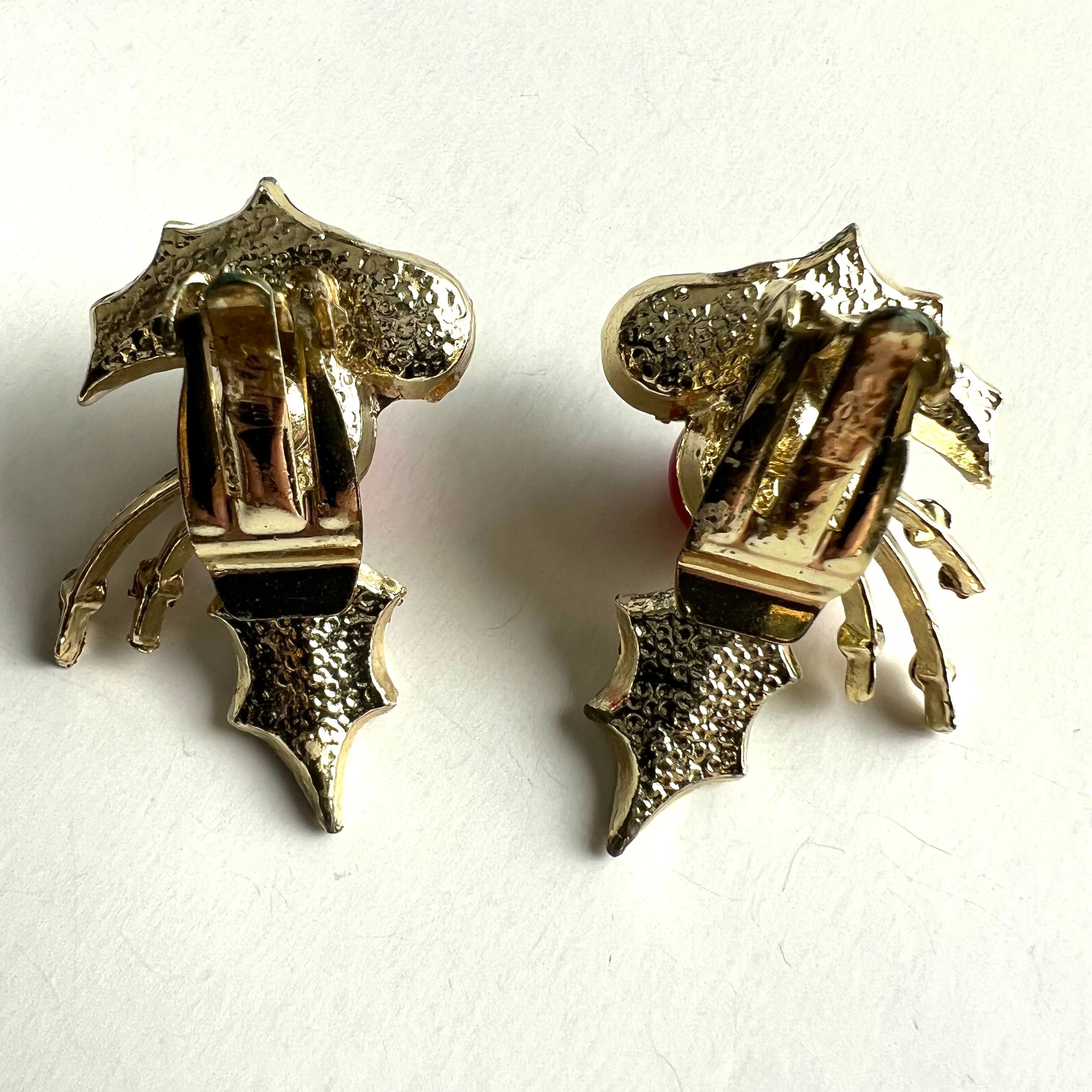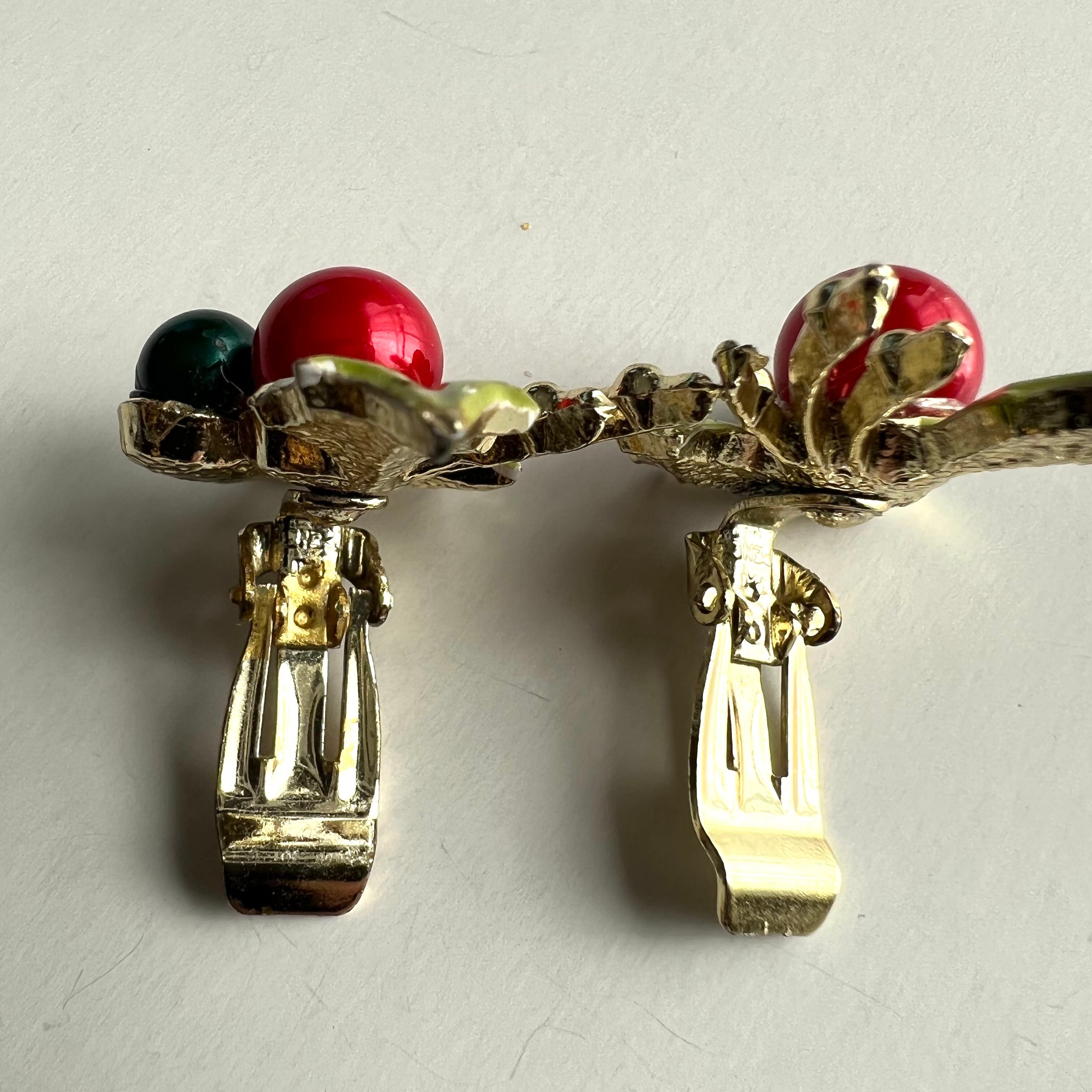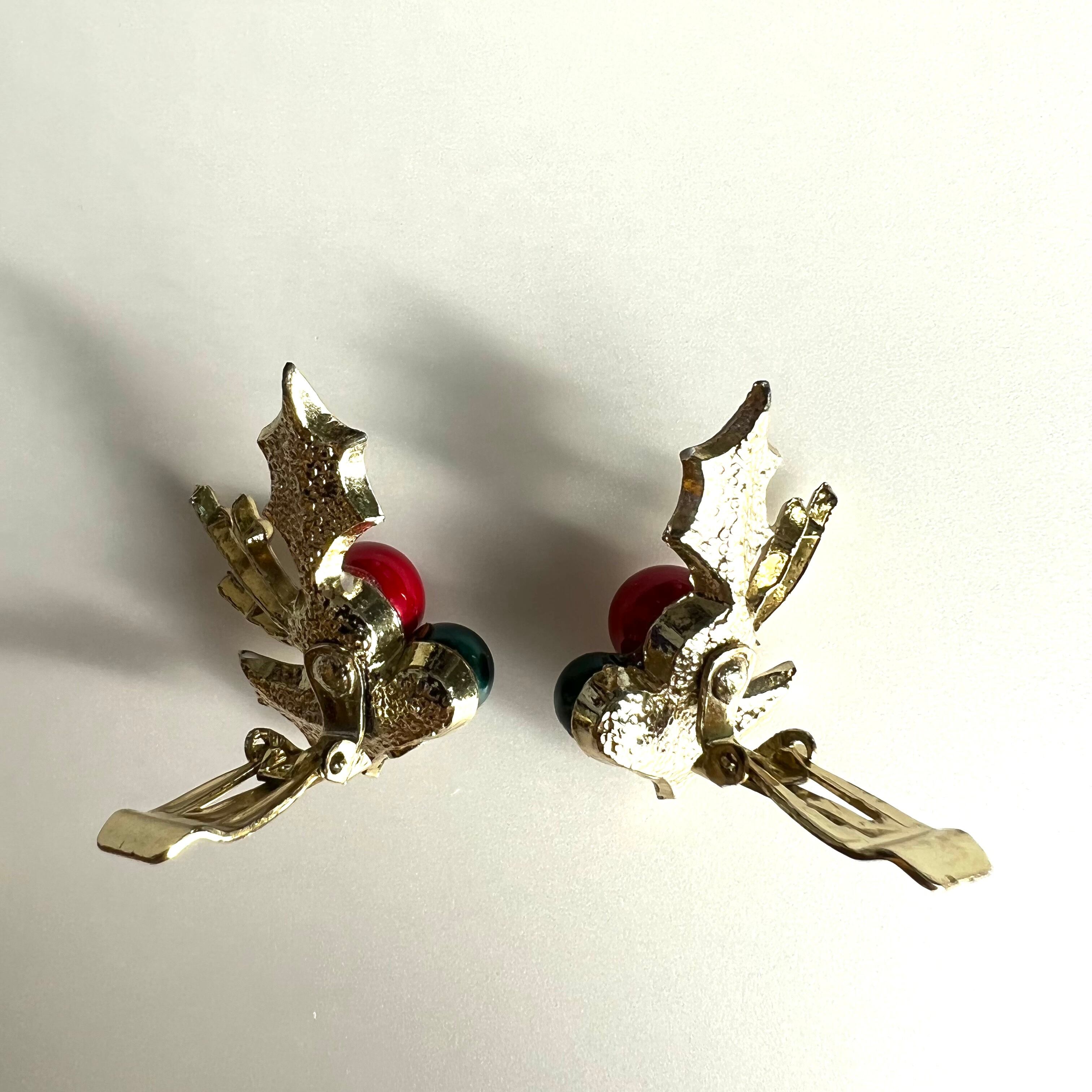 Used ヒイラギの葉×赤と緑の実のイヤリング。