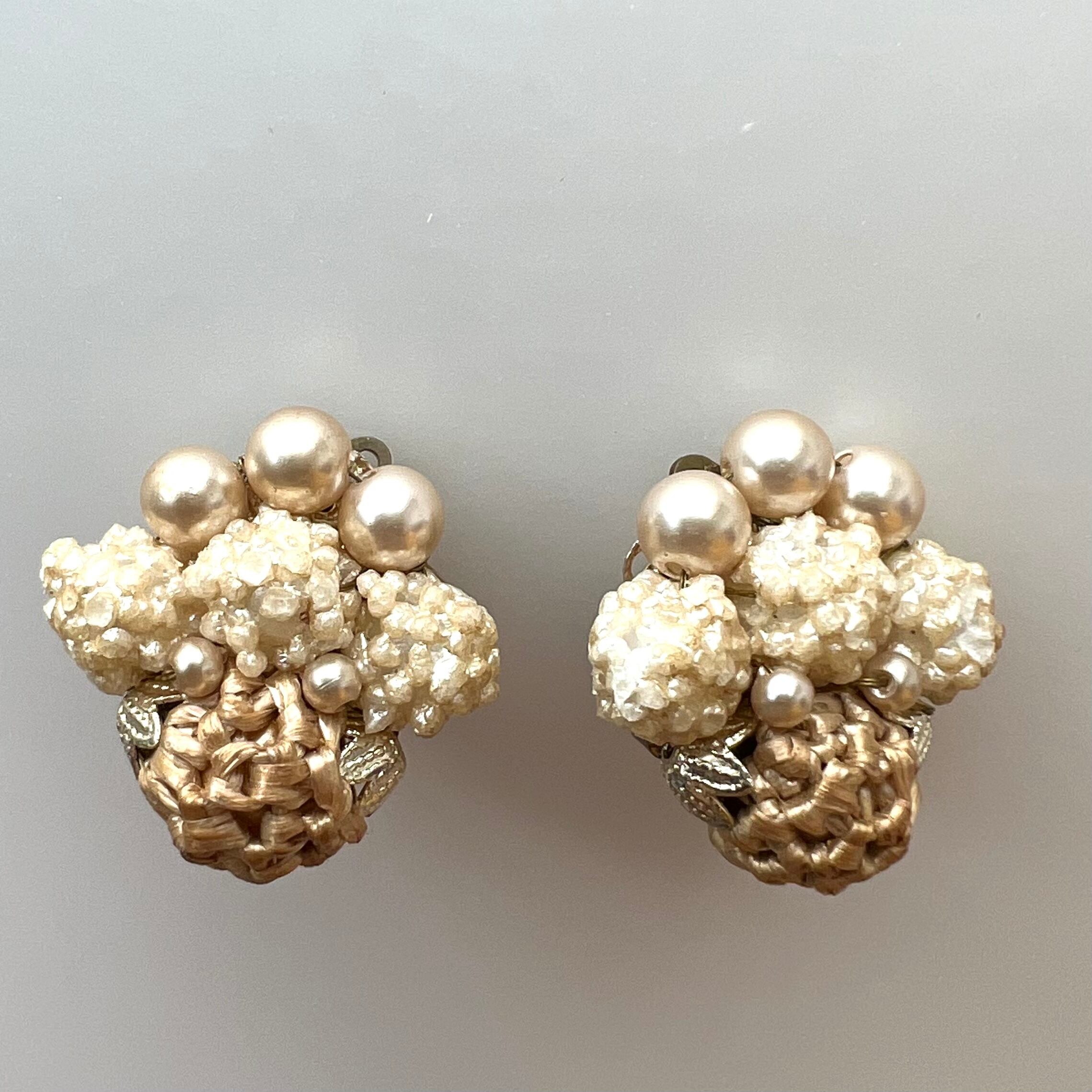 {コンディション}左右とも、大小のフェイクパールに挟まれた、ポップコーンのようなパーツに欠損があります。画像でご確認下さい。