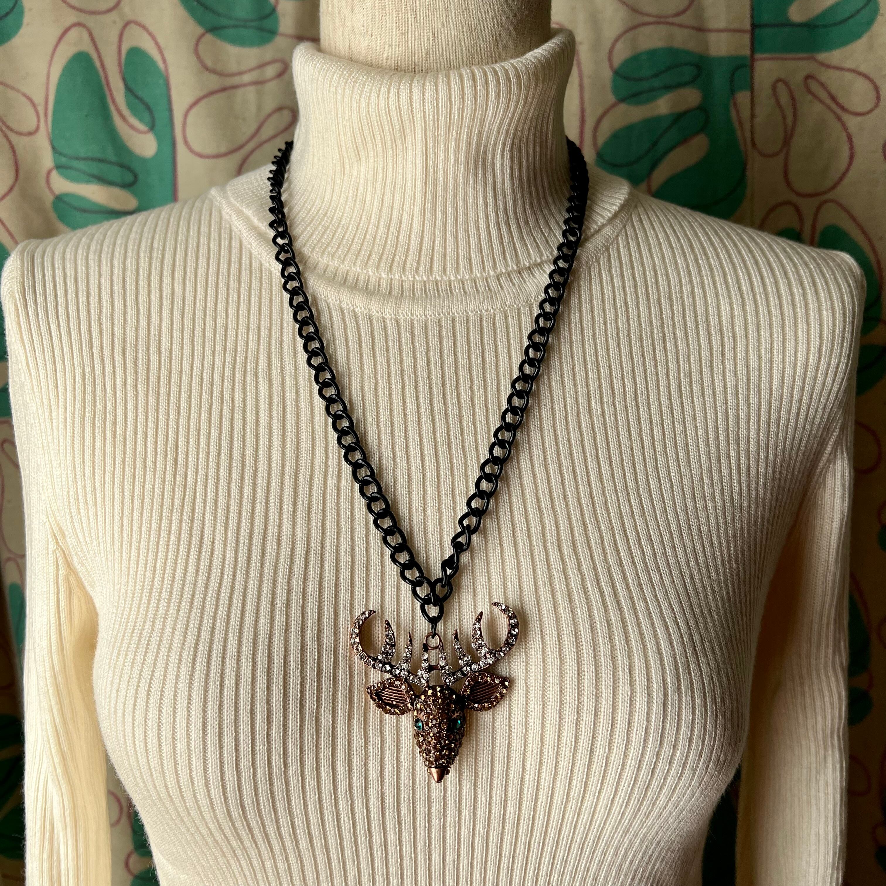 Used rhinestone stag necklace