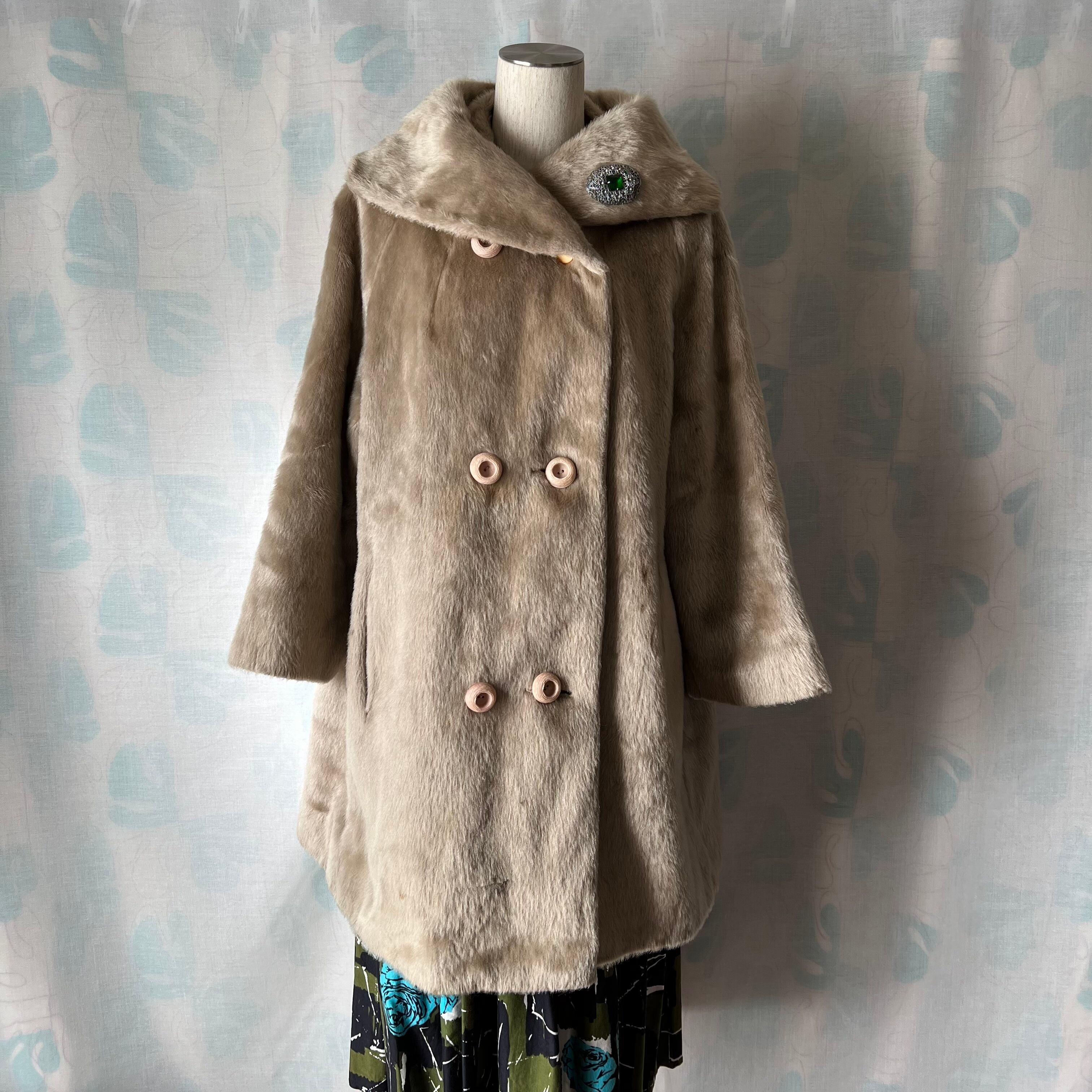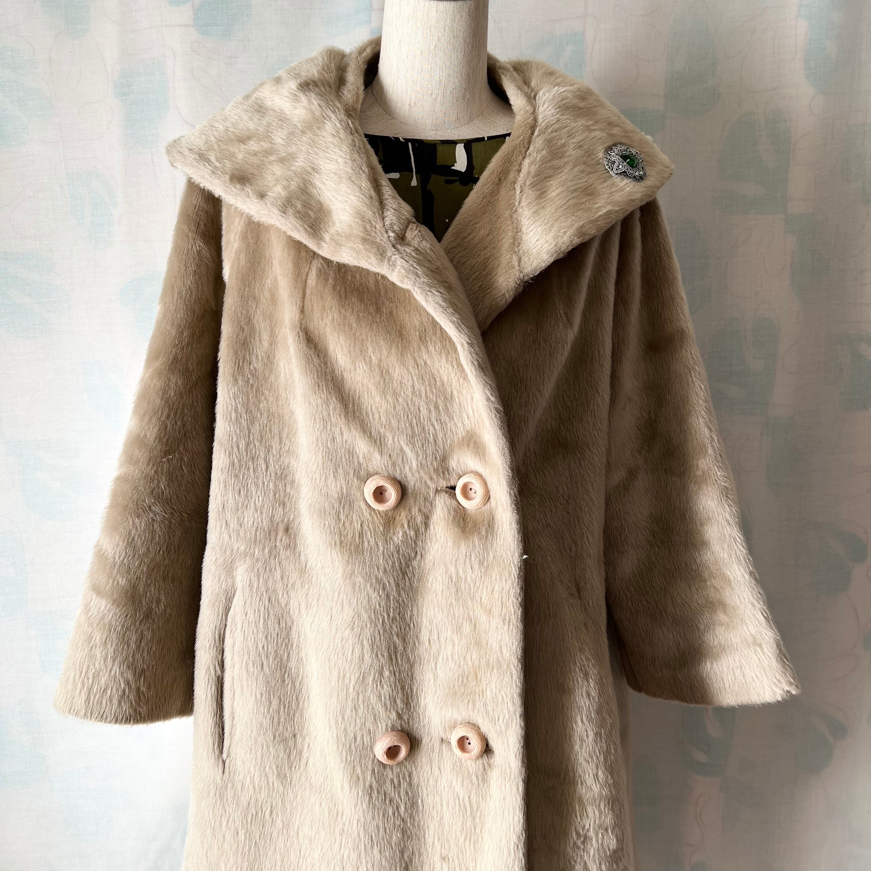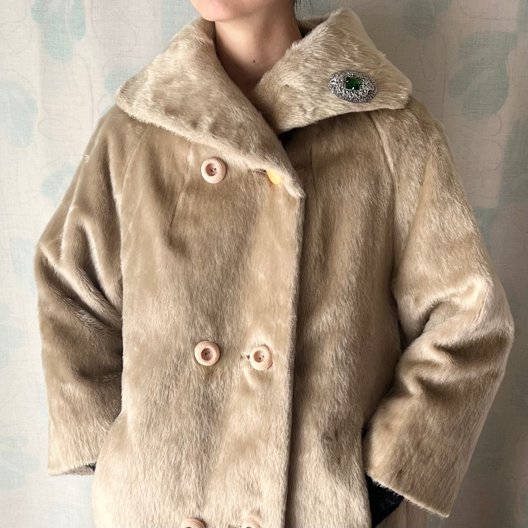 60's ベージュのフェイクファーハーフコート。