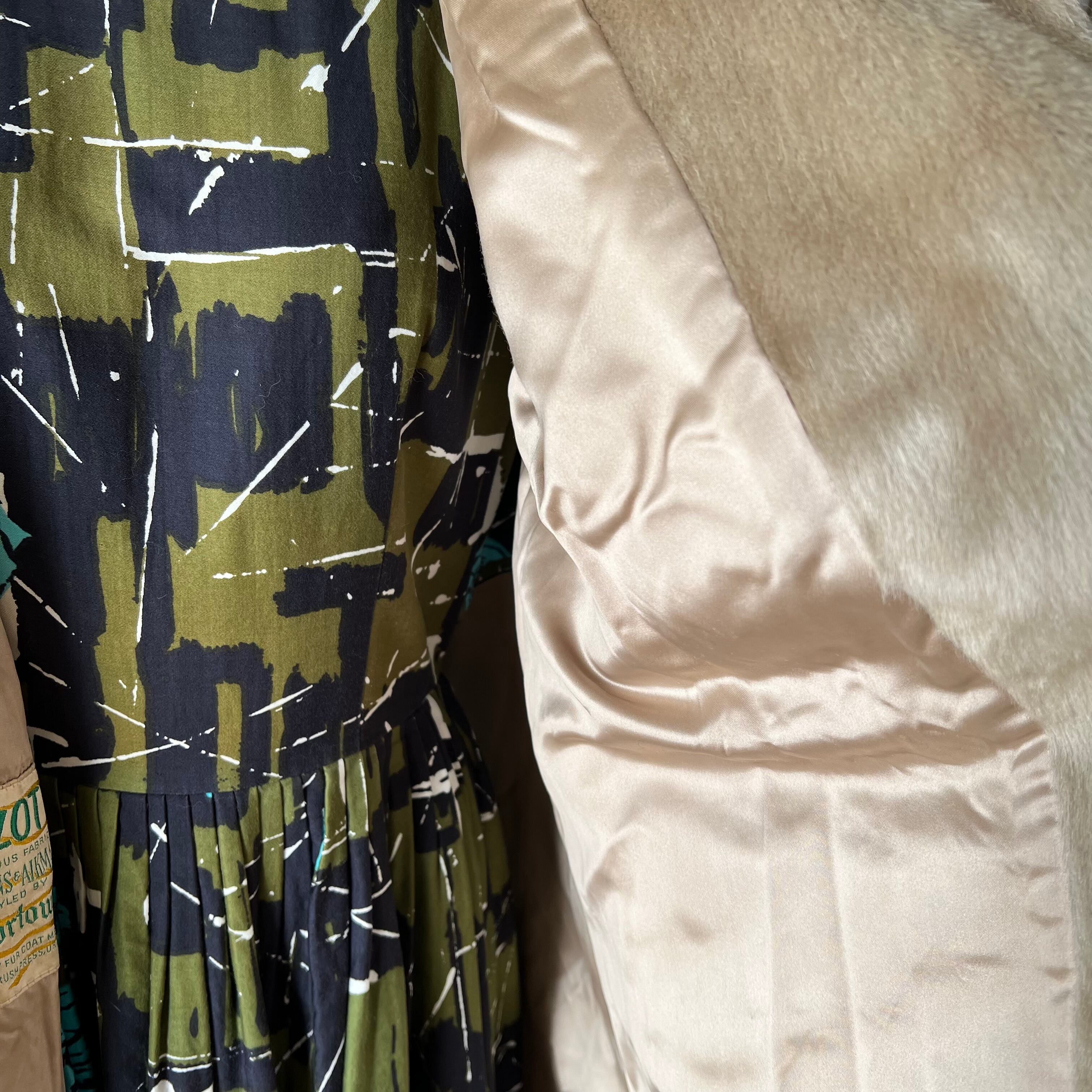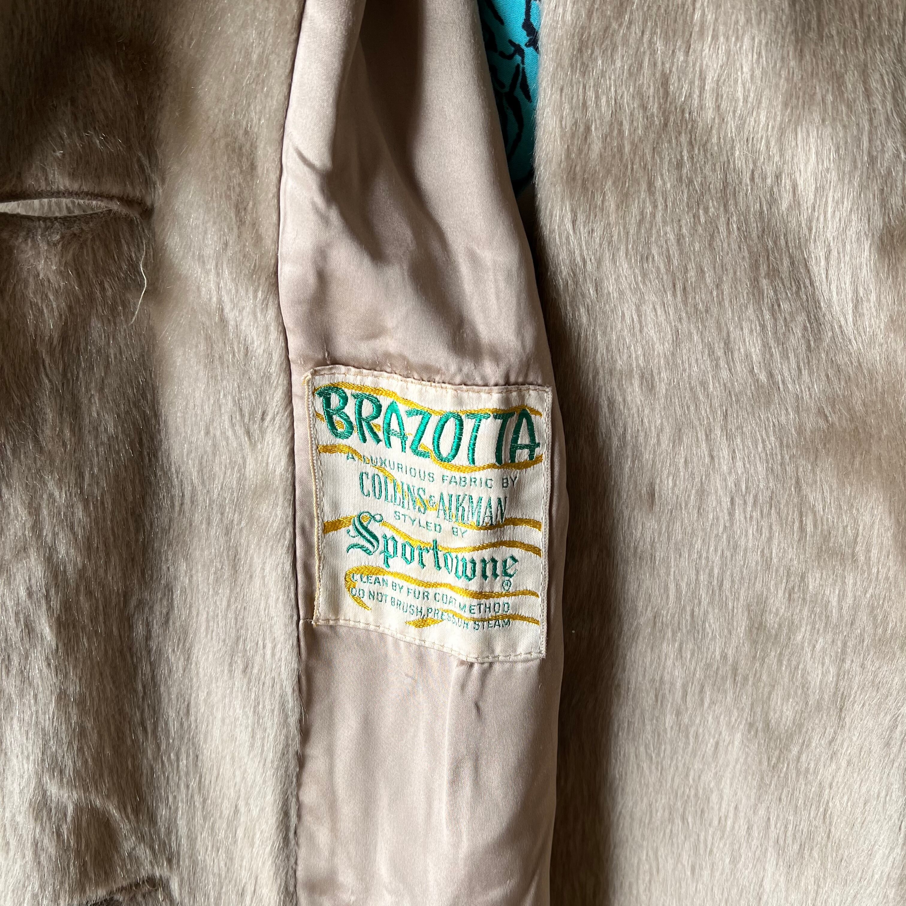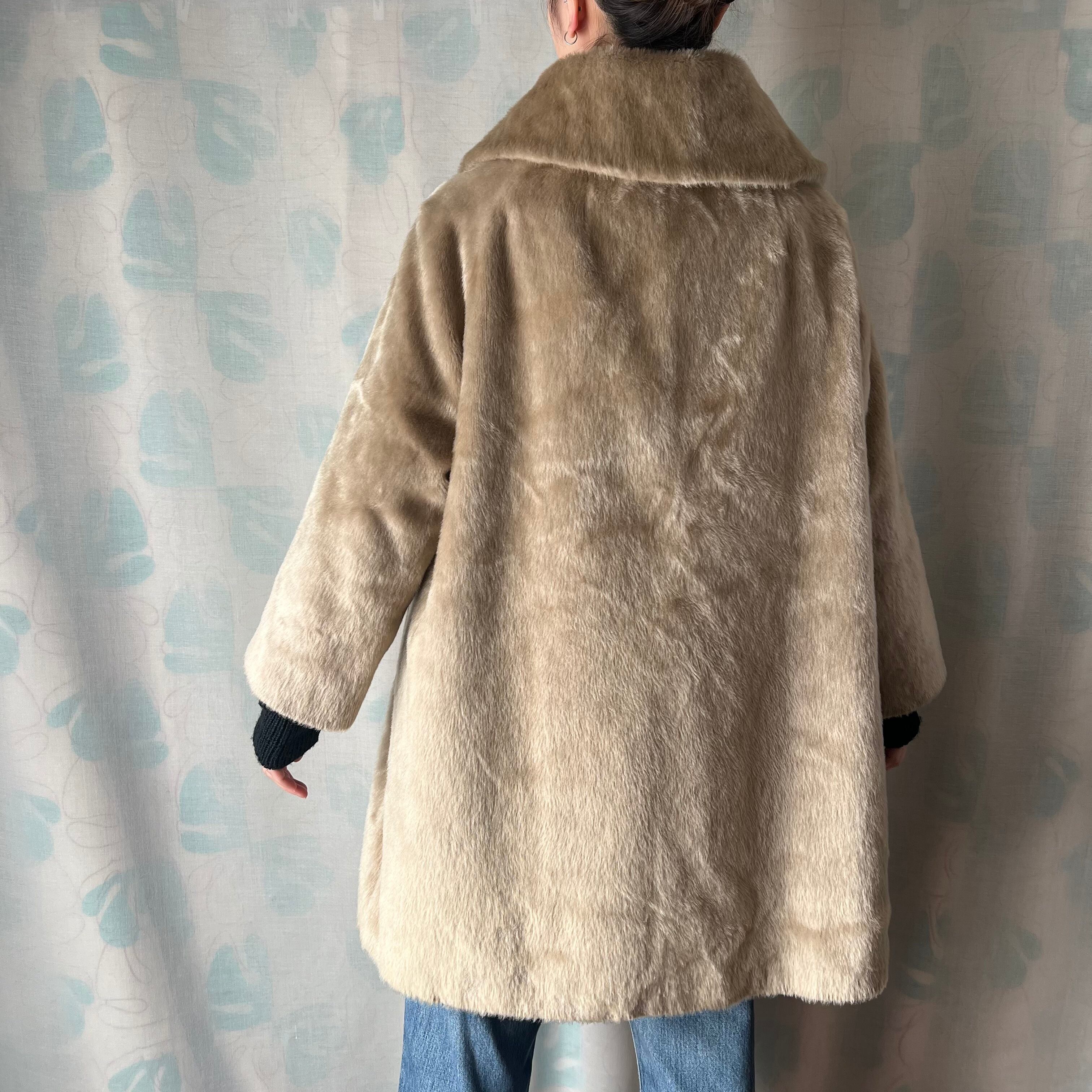 60's ベージュのフェイクファーハーフコート。