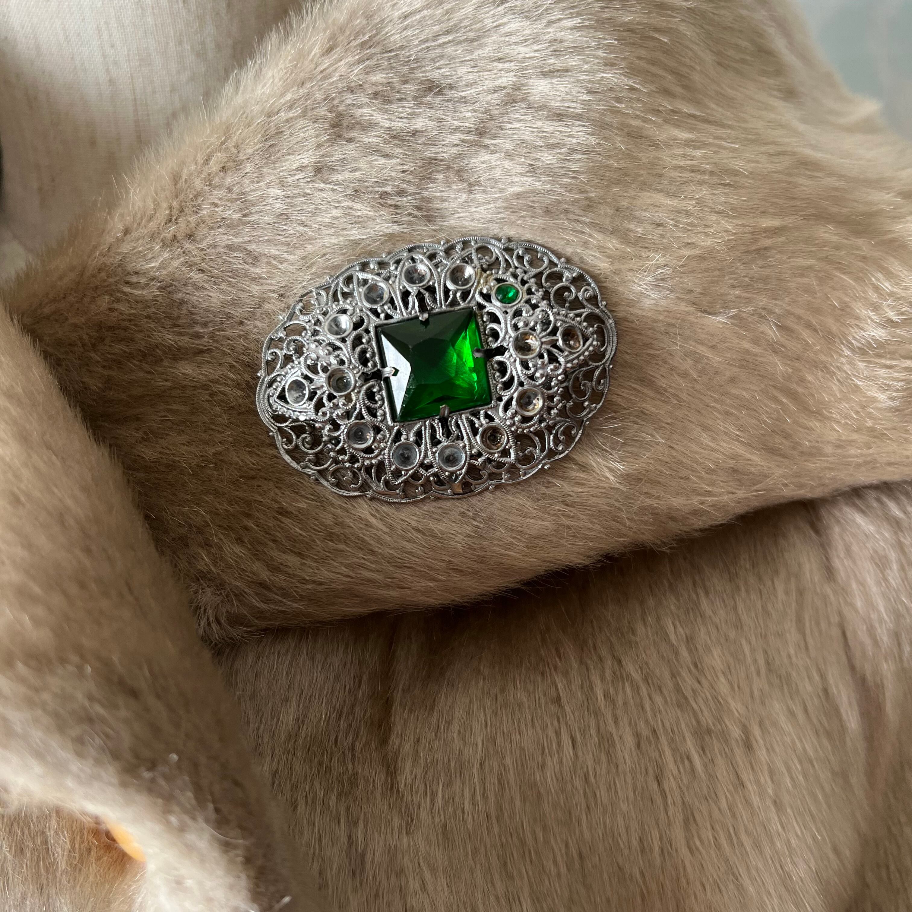 ブローチのおまけ付き。小さなラインストーンがほとんど欠損していますが、同じ時代のものかと思われます。