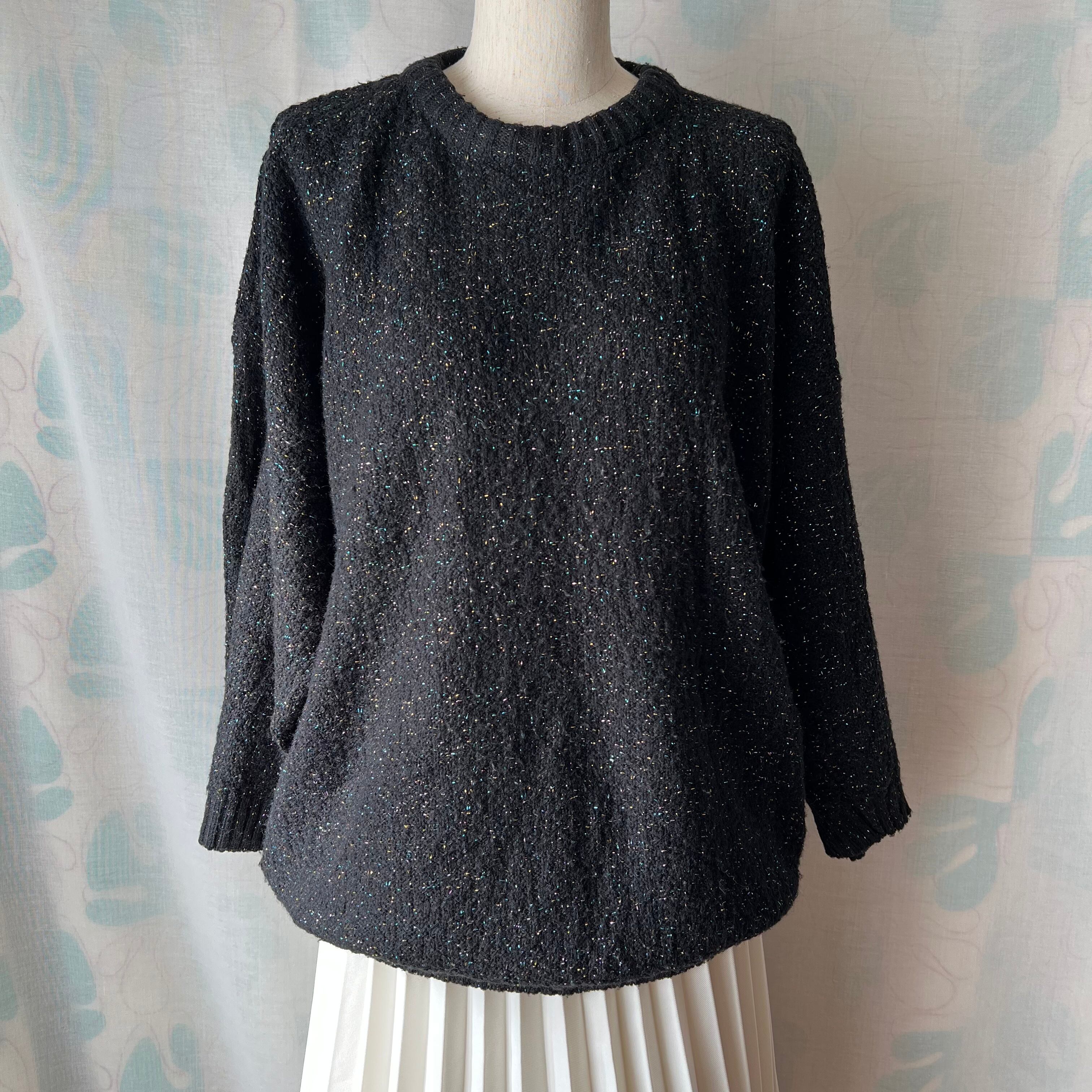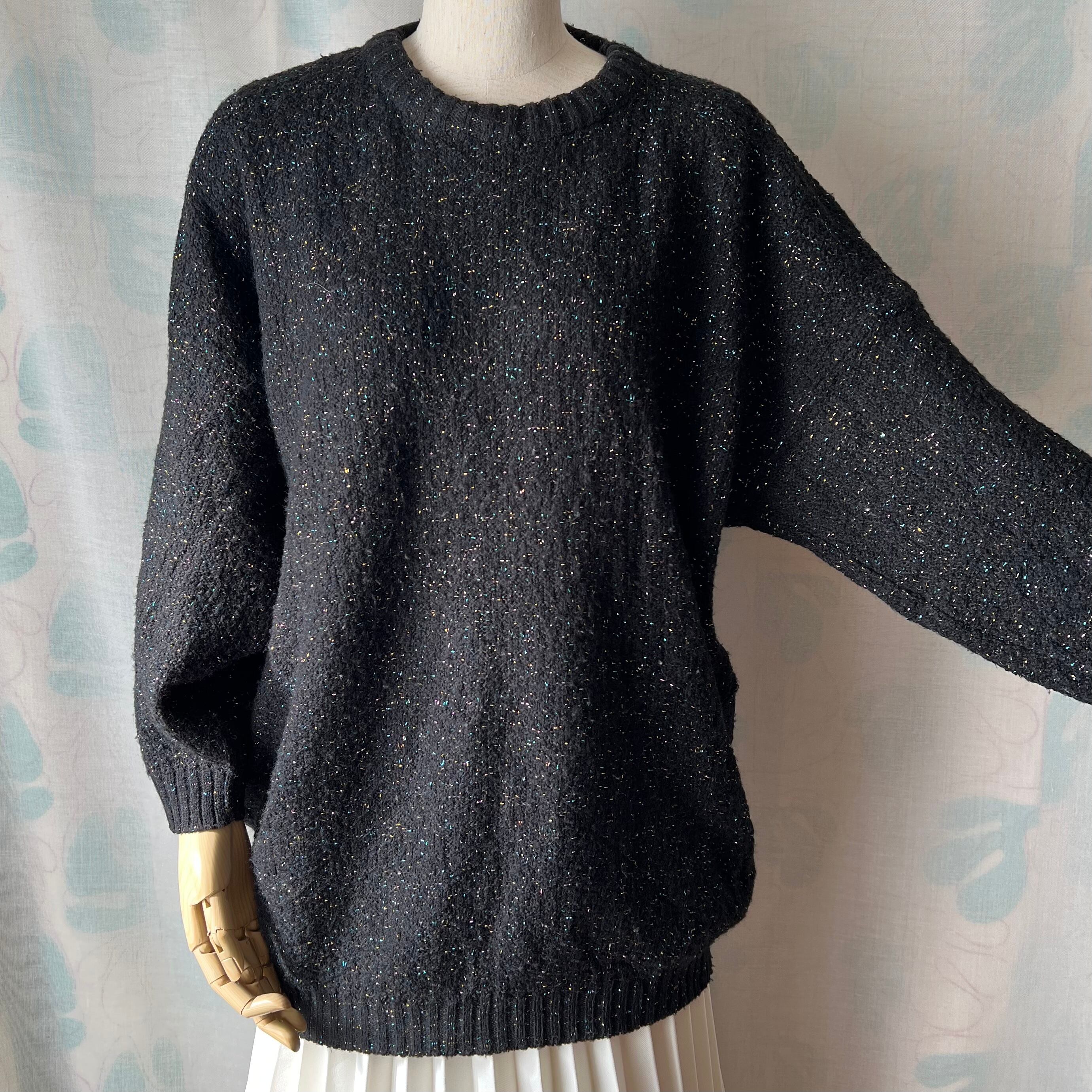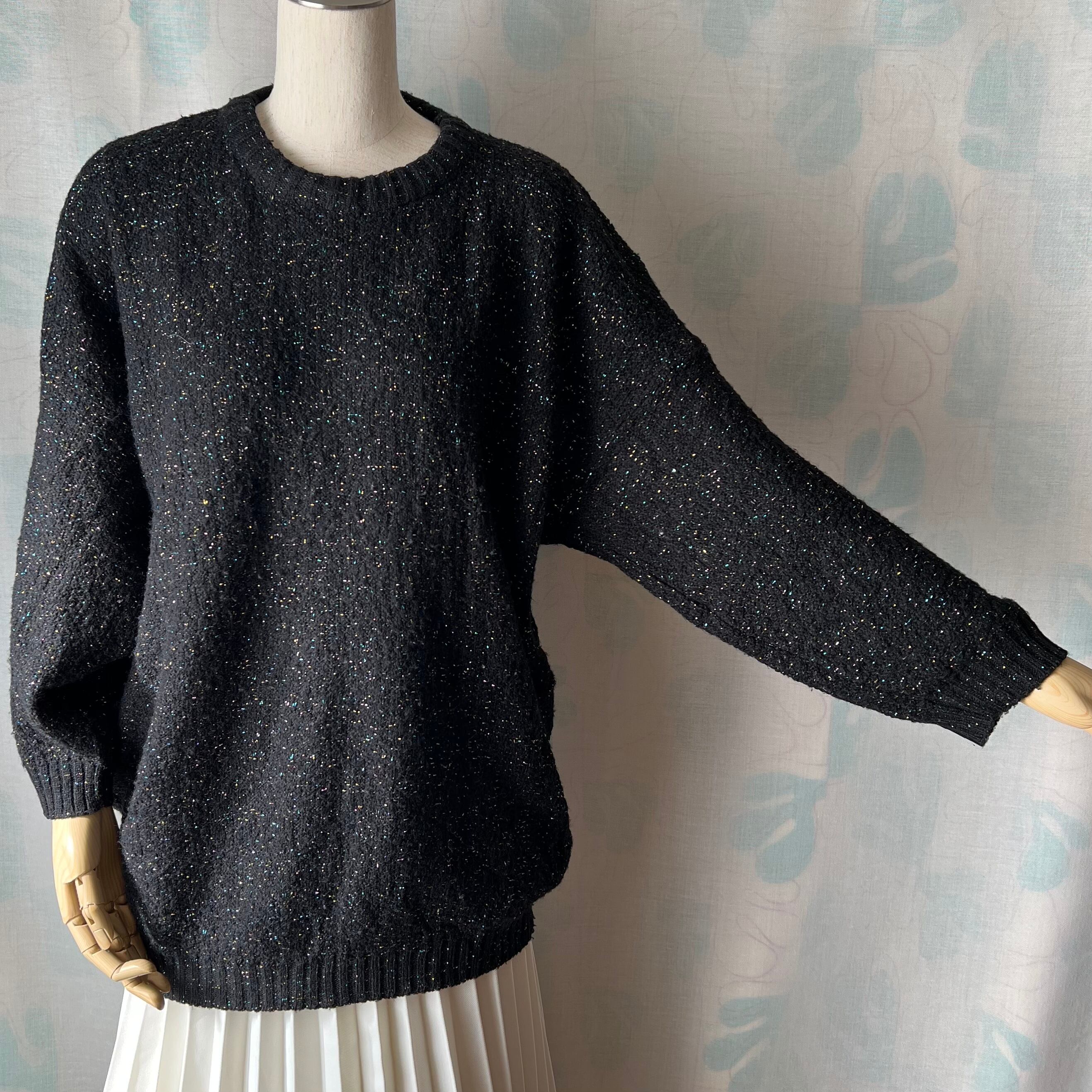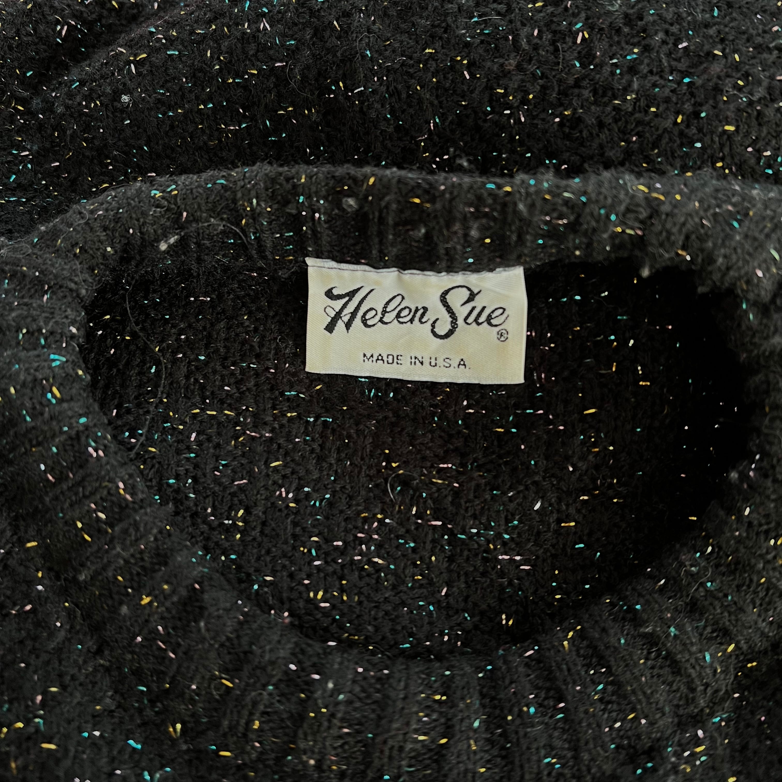 80's 「Helen sue」黒×マルチカラーラメ混のアクリルニットセーター。