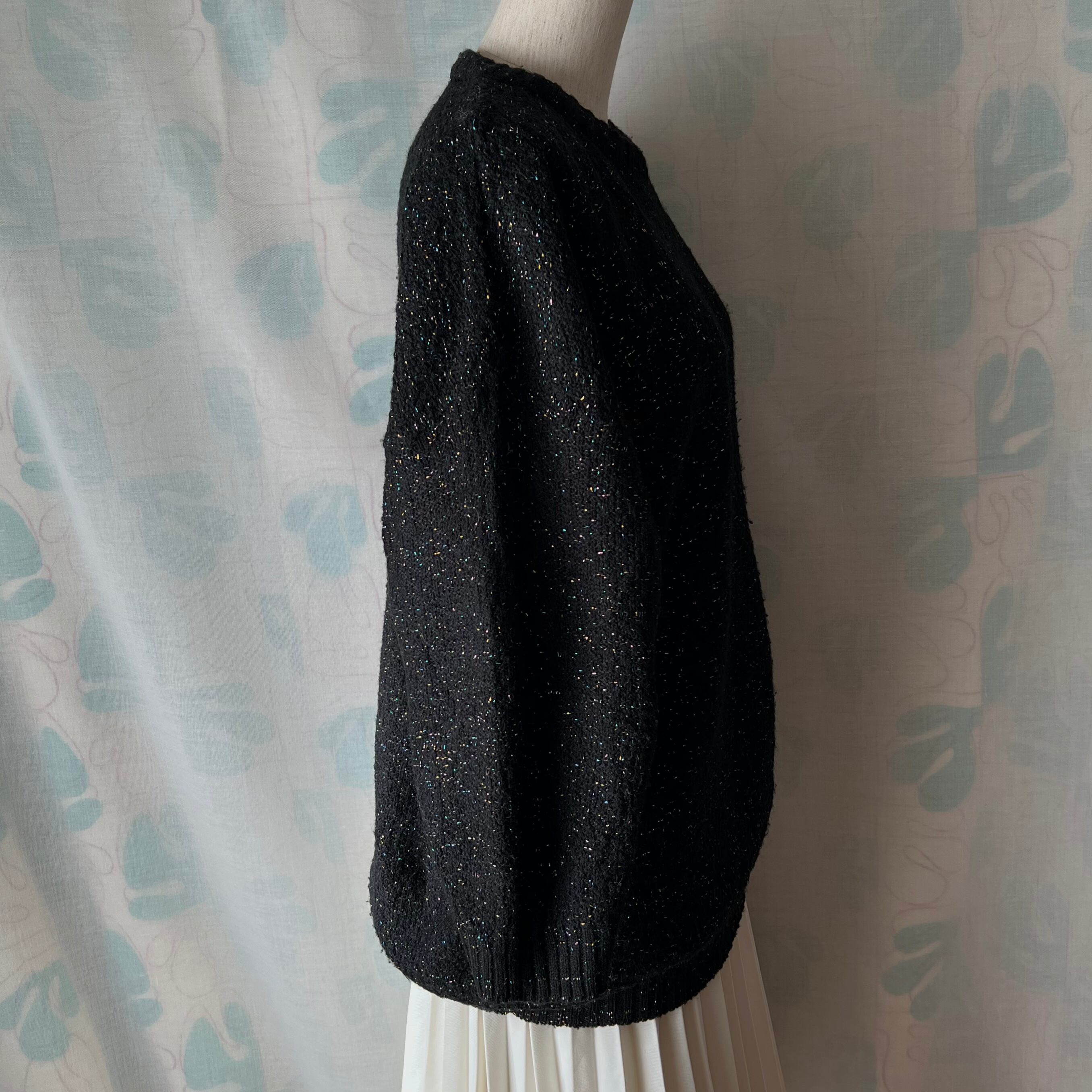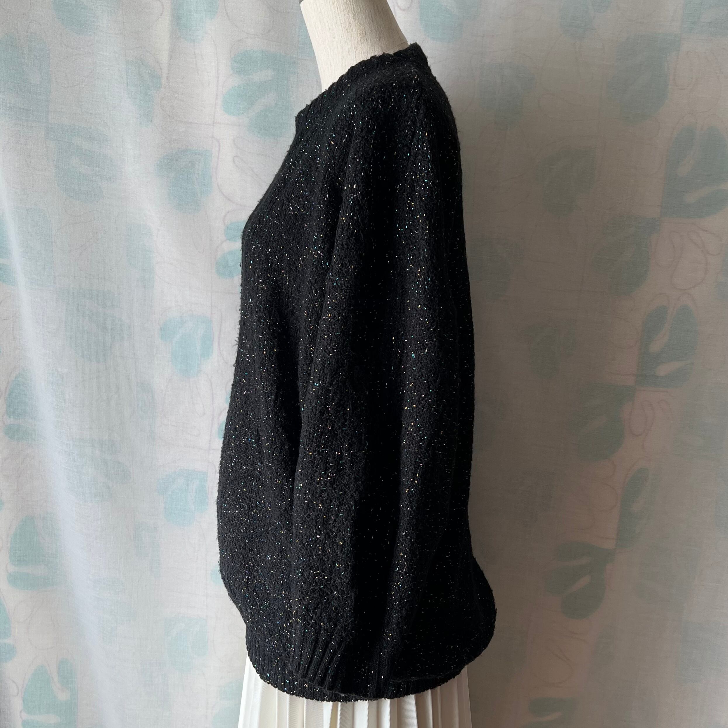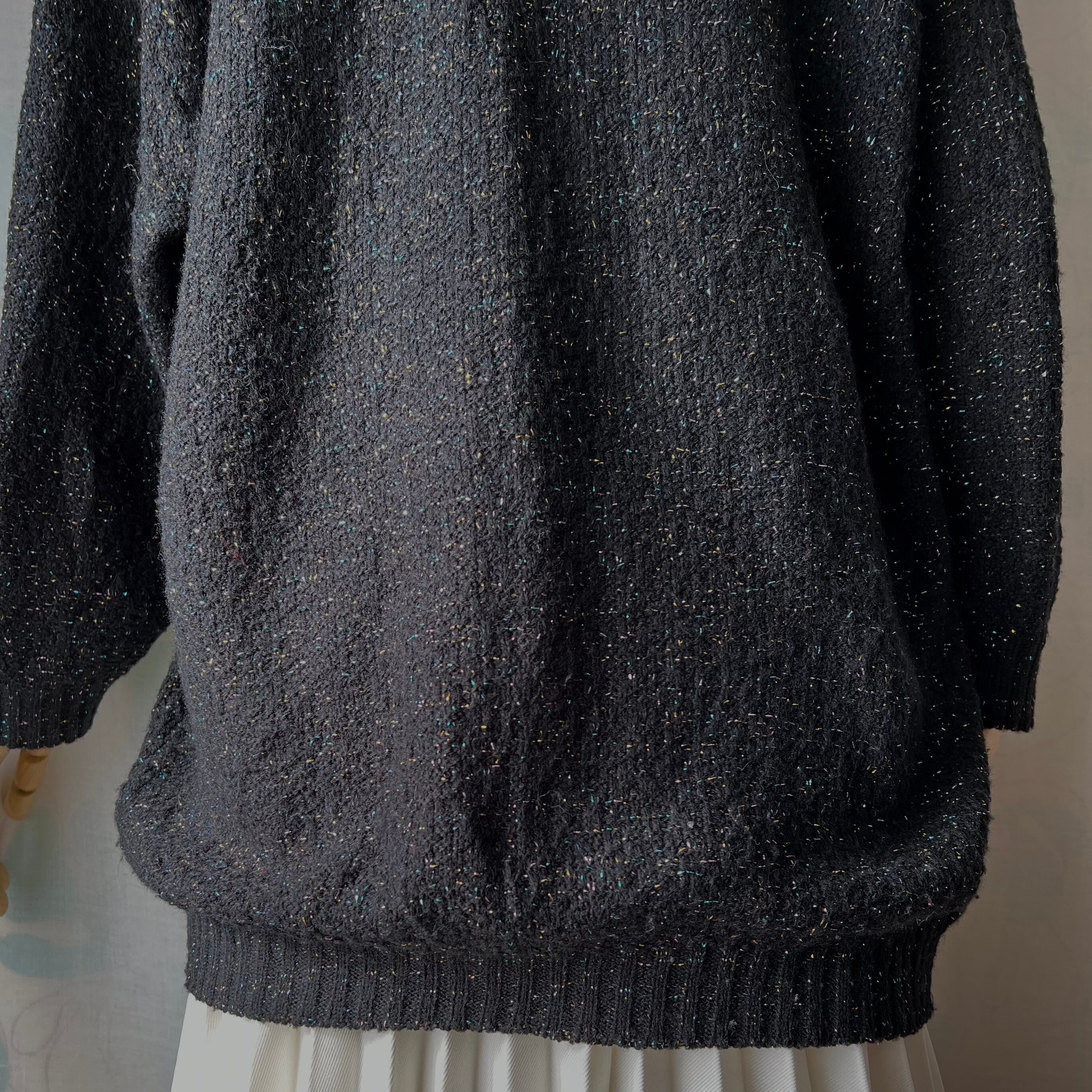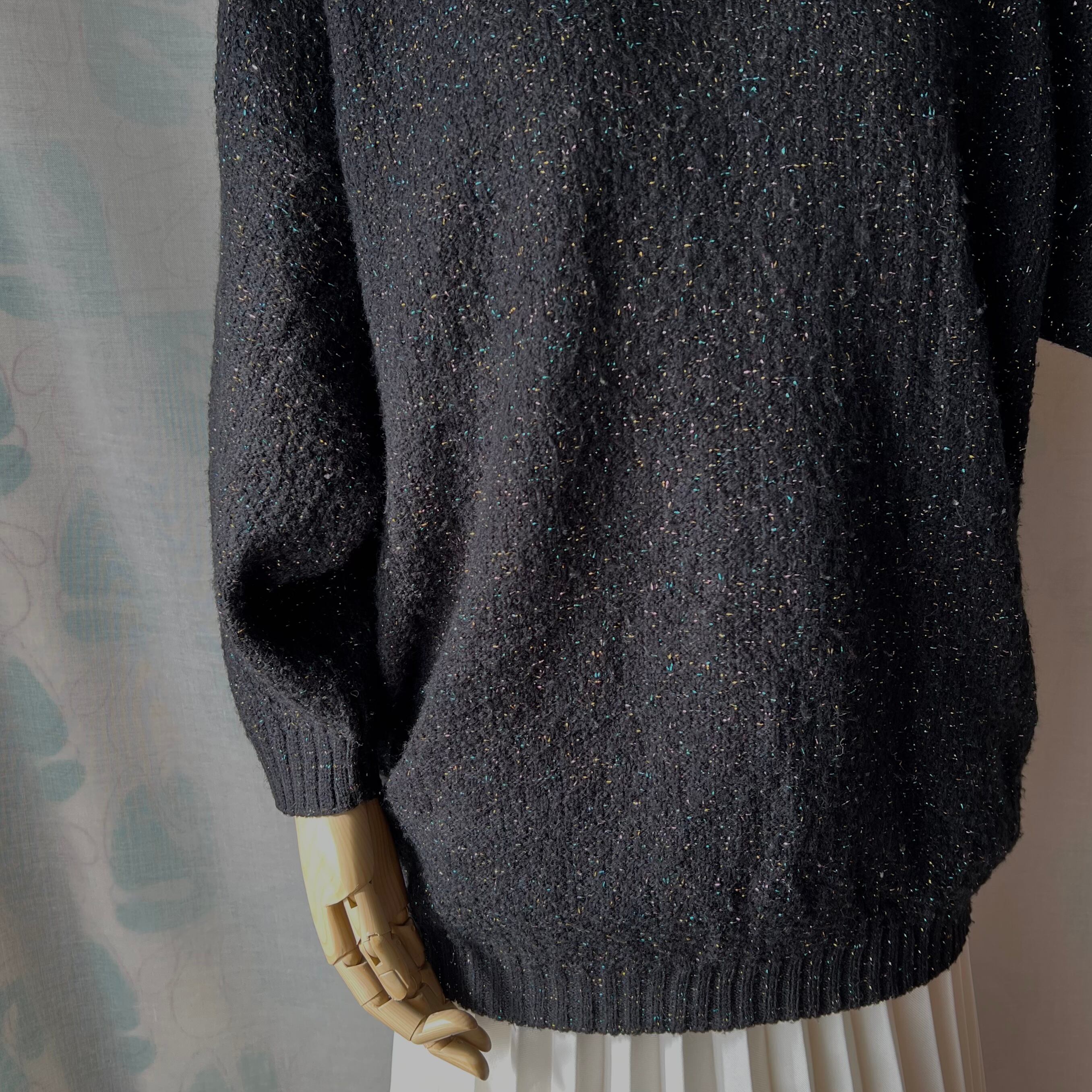 80's 「Helen sue」黒×マルチカラーラメ混のアクリルニットセーター。