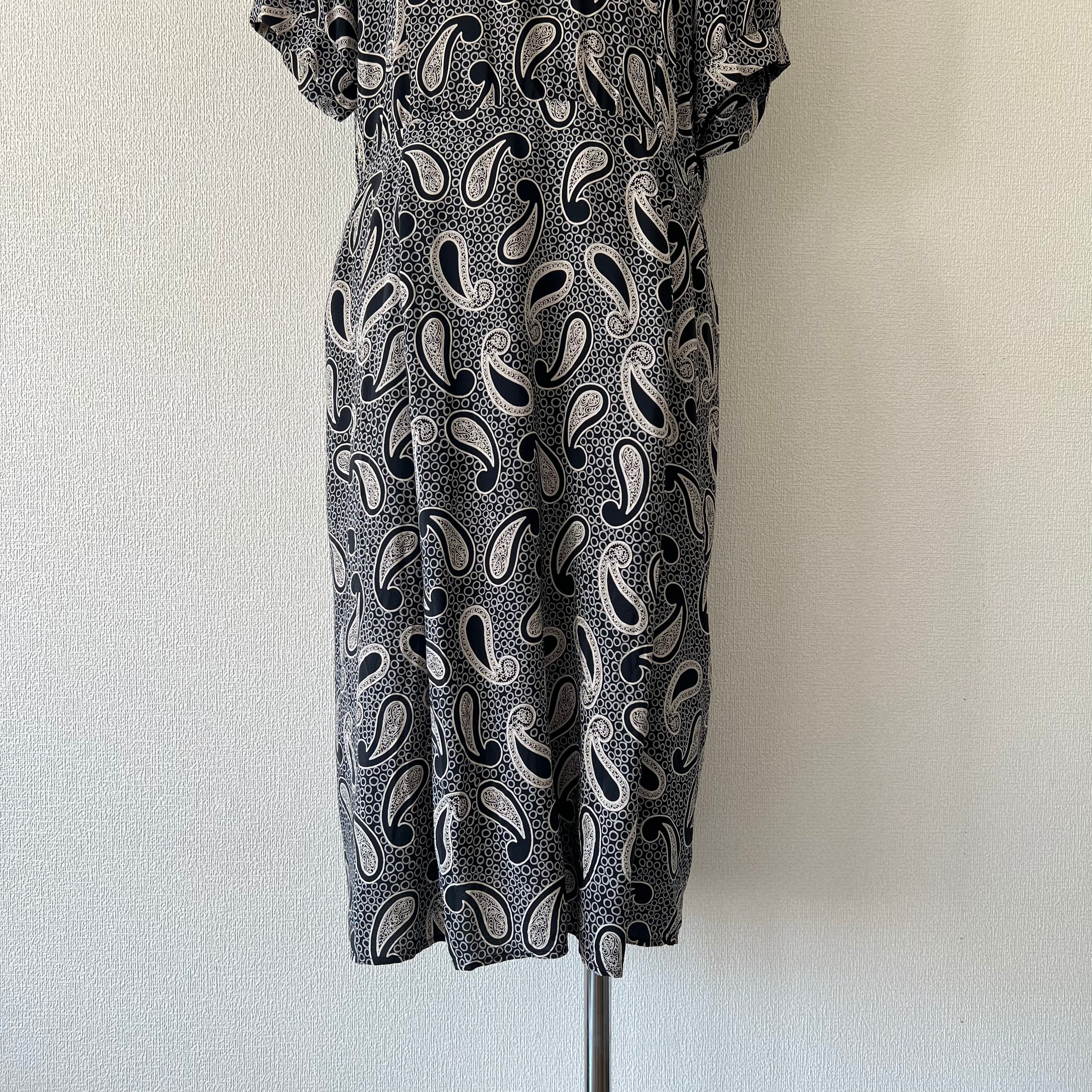 80's Black x beige large paisley pattern dress
