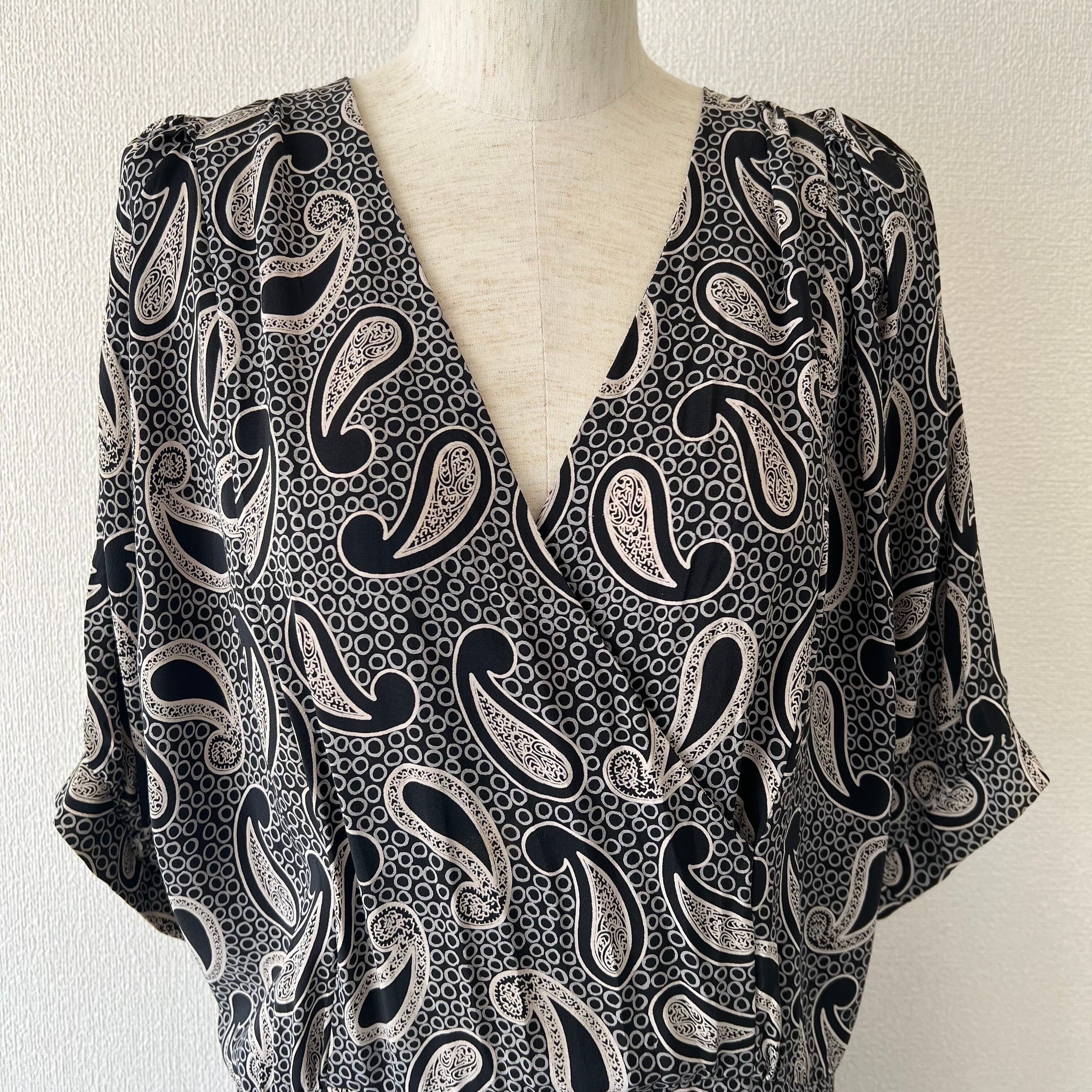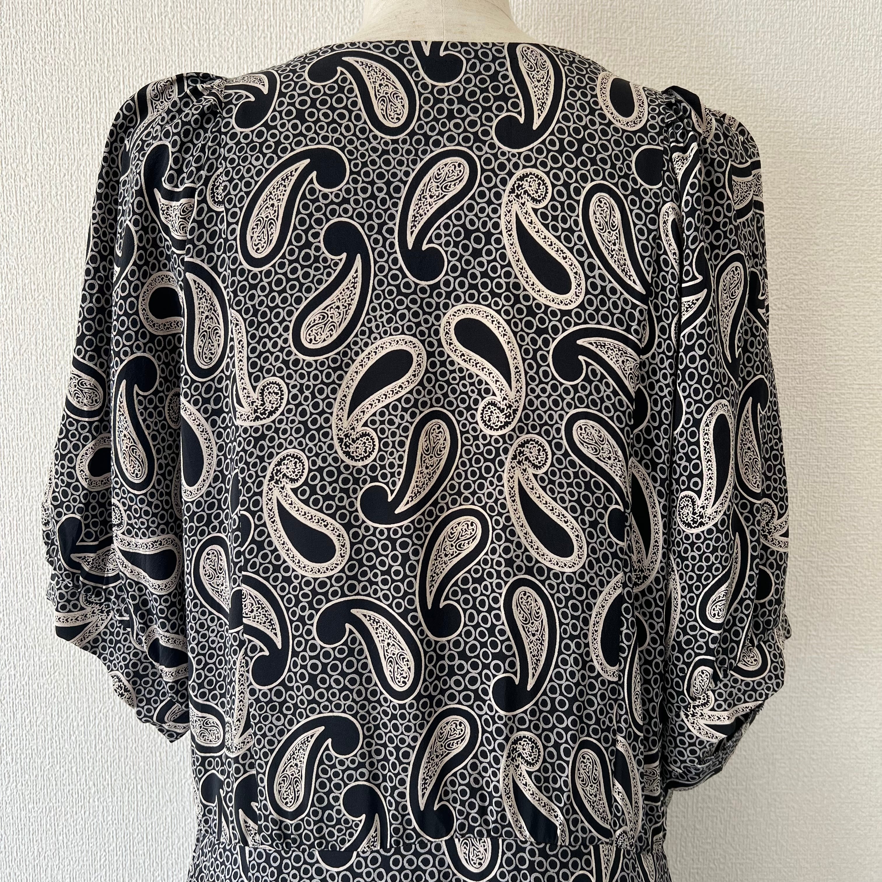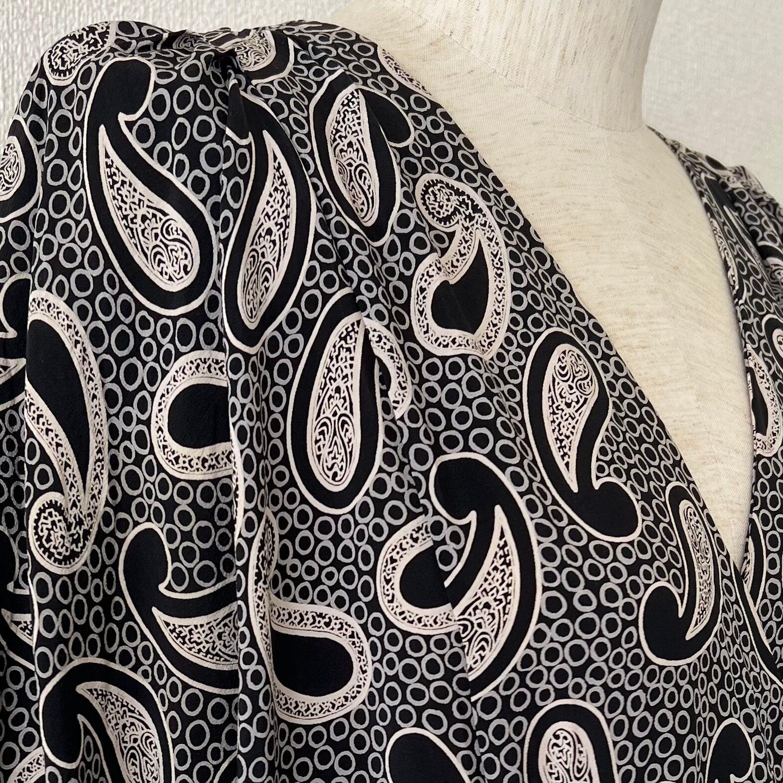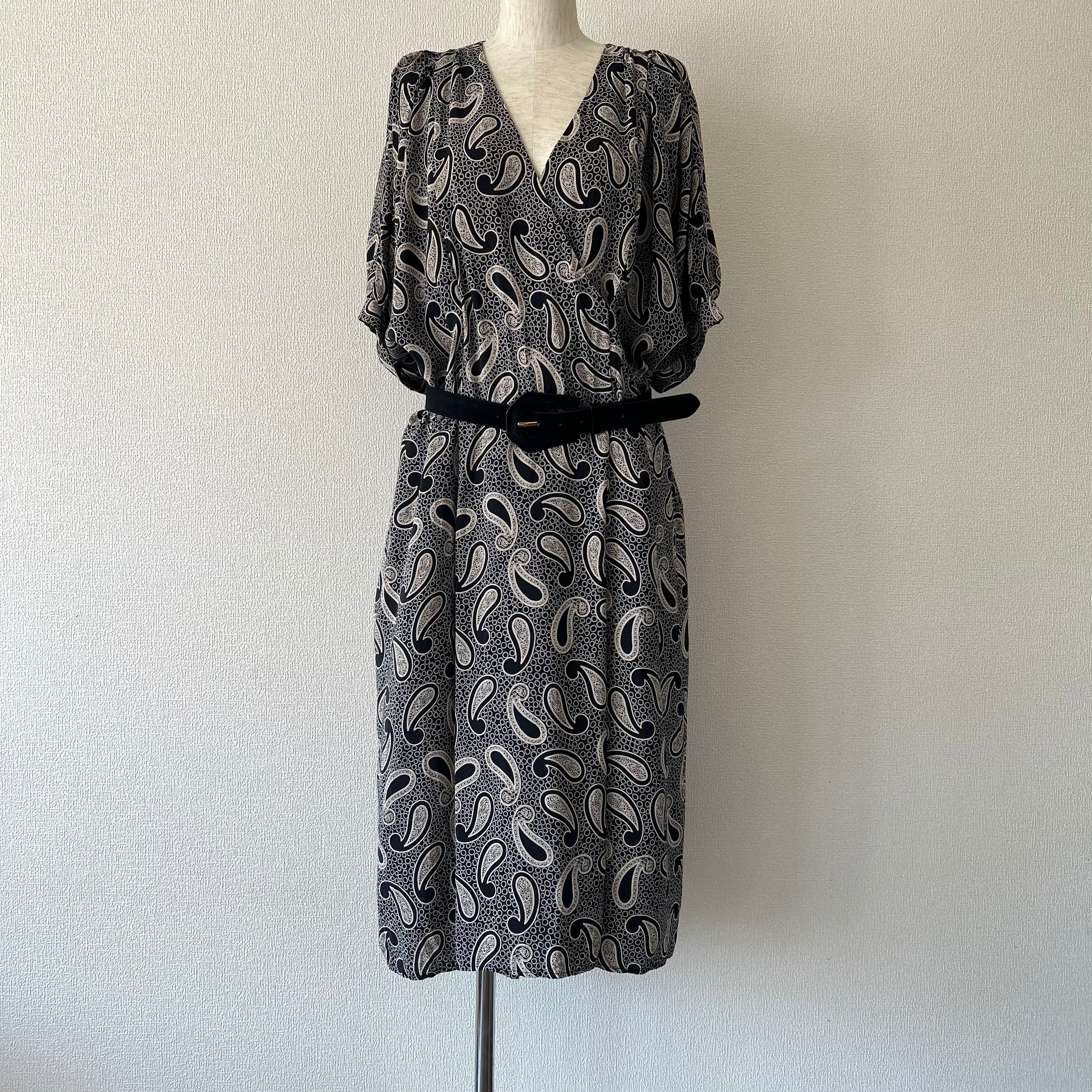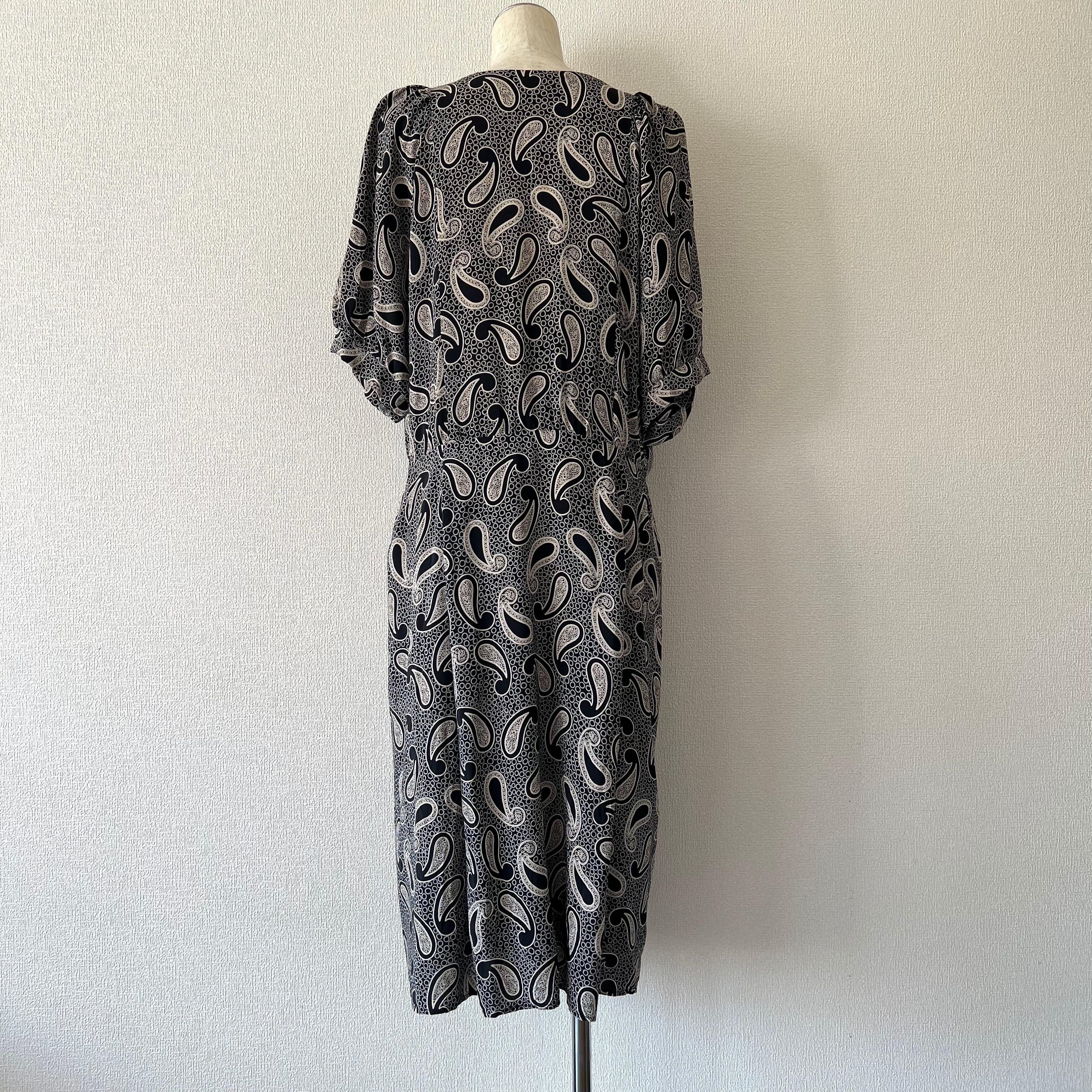 80's 大きなペイズリー柄ドルマンスリーブワンピース。