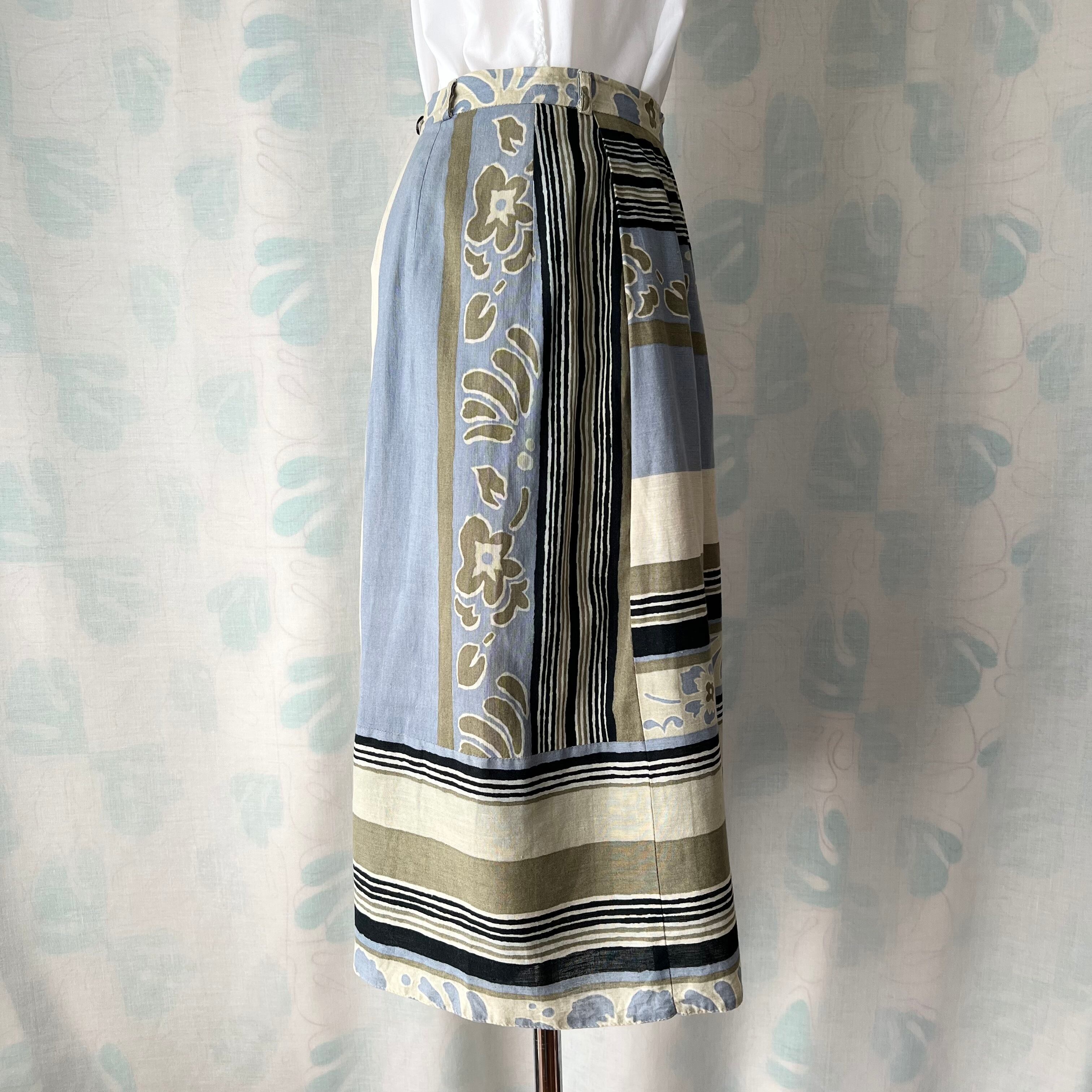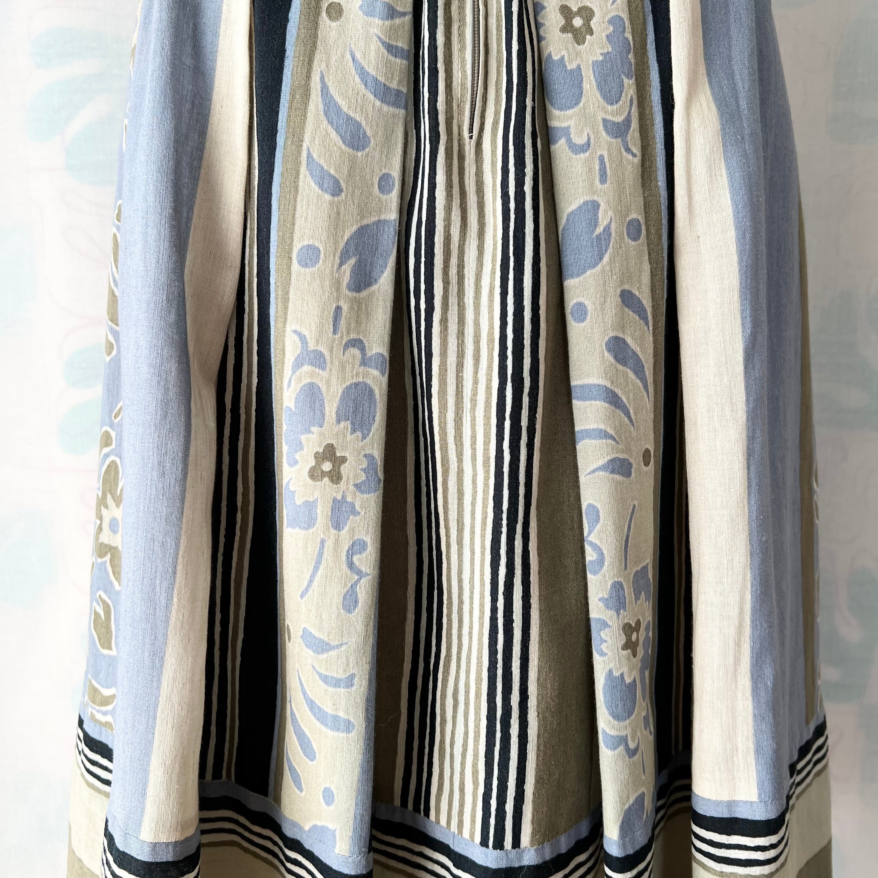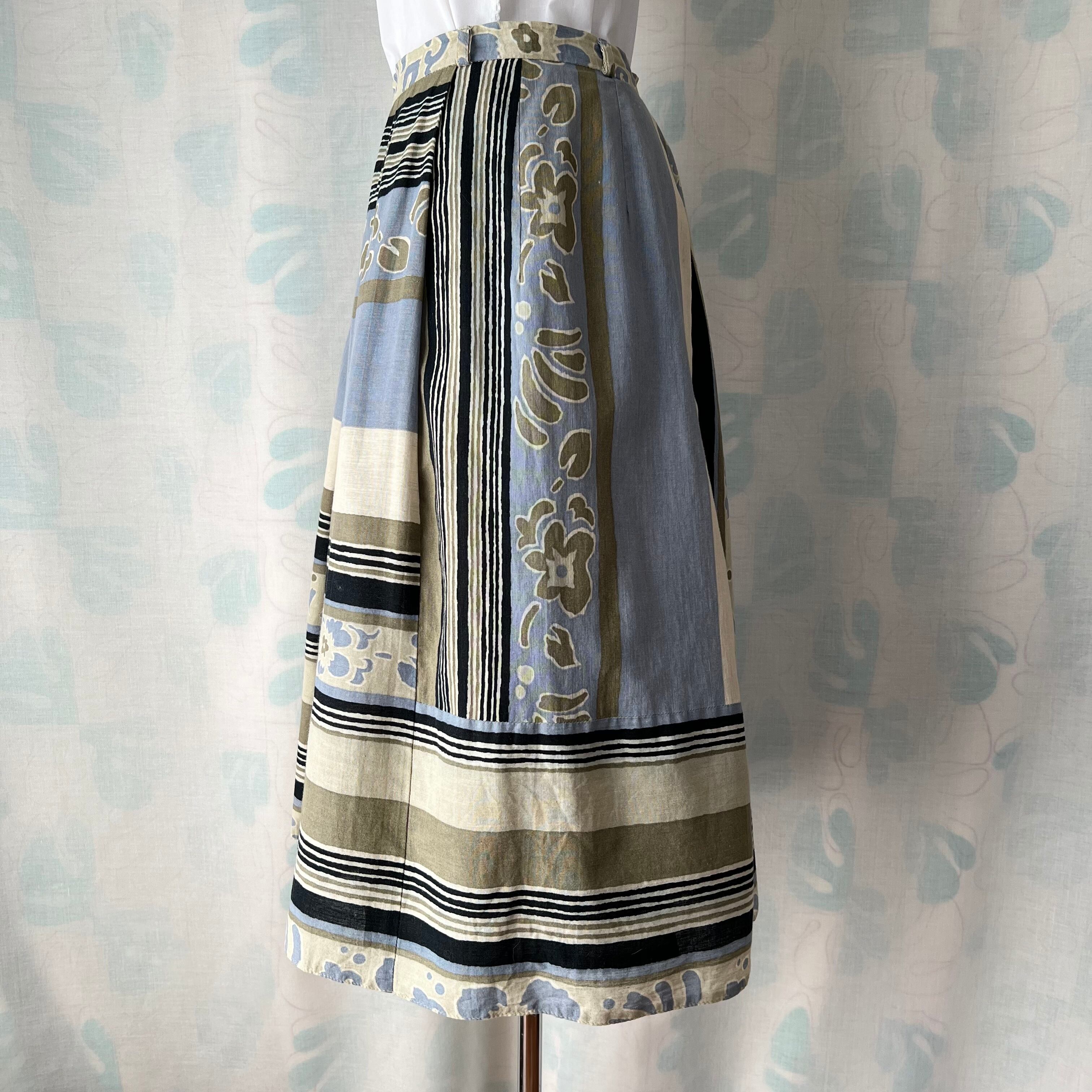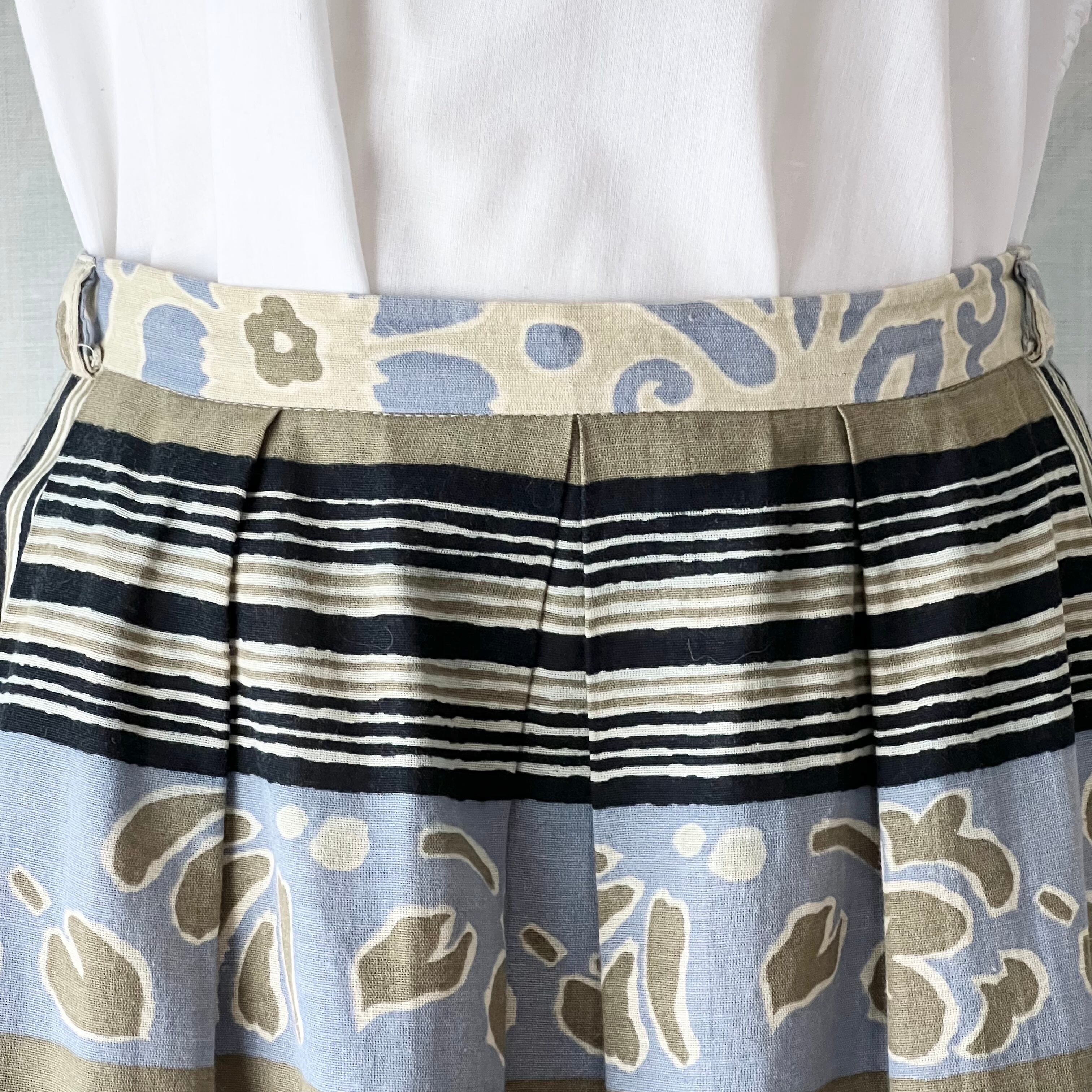 80's 西ドイツ製ボーダー×花柄タックフレアースカート。