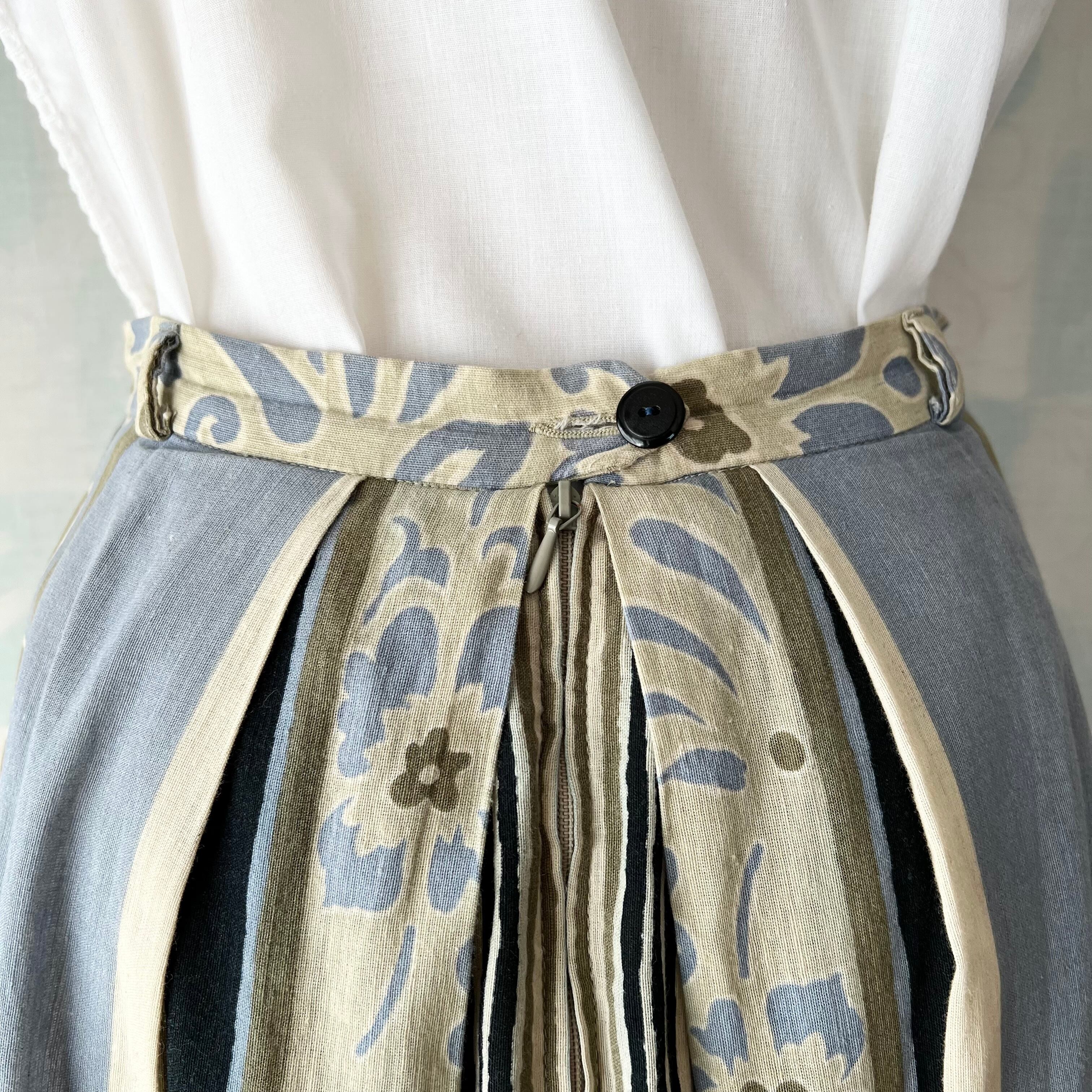 80's West Germany border × floral pattern tuck flare skirt