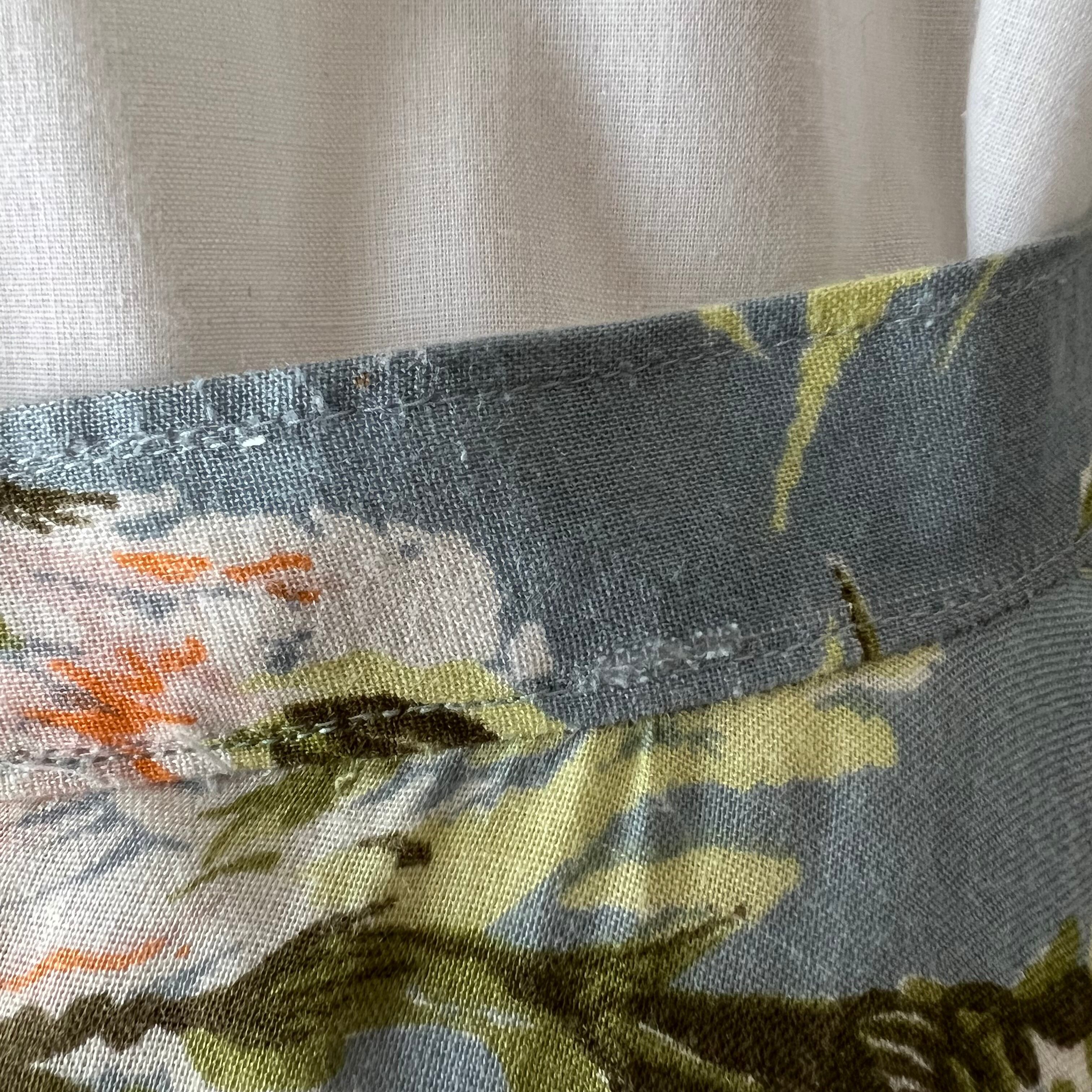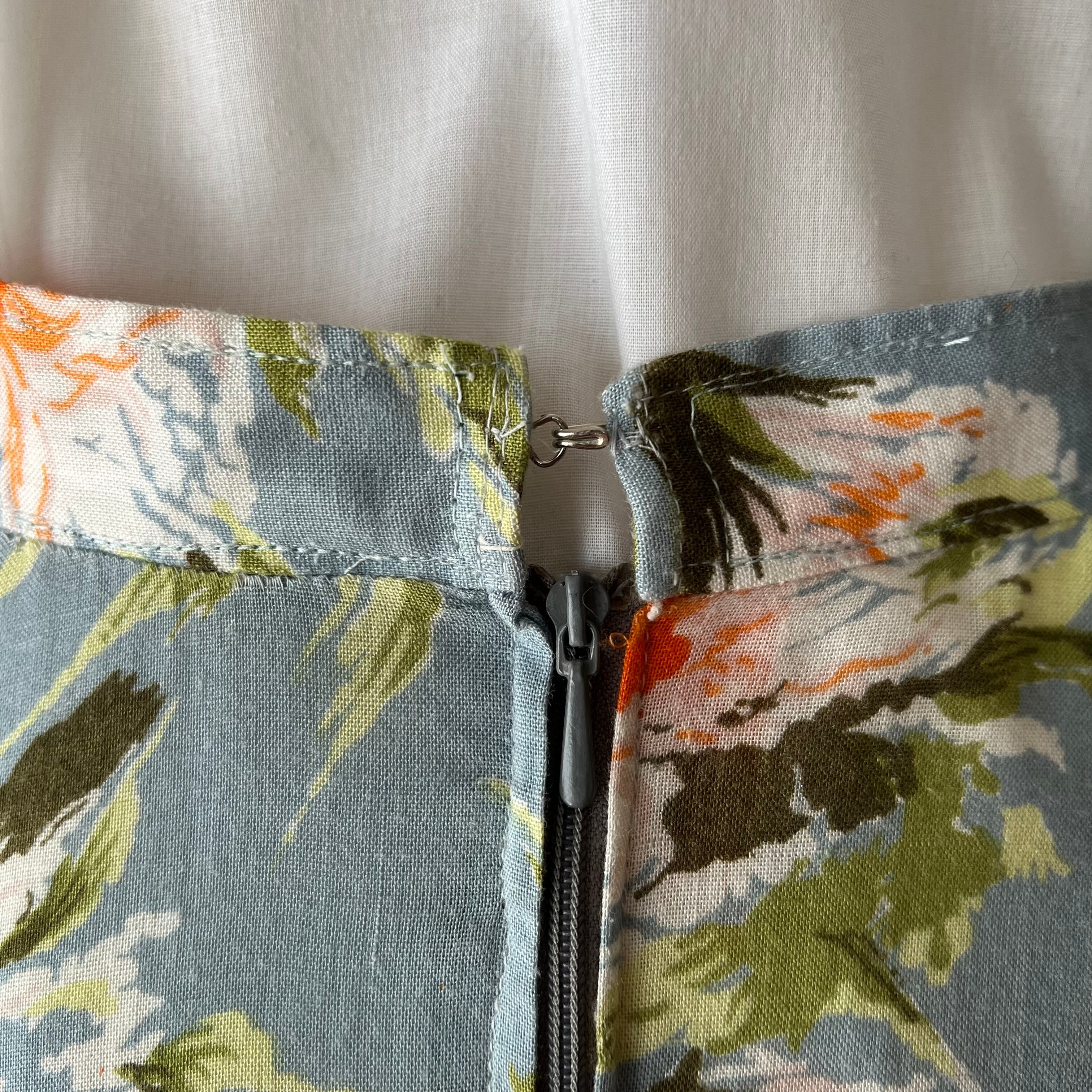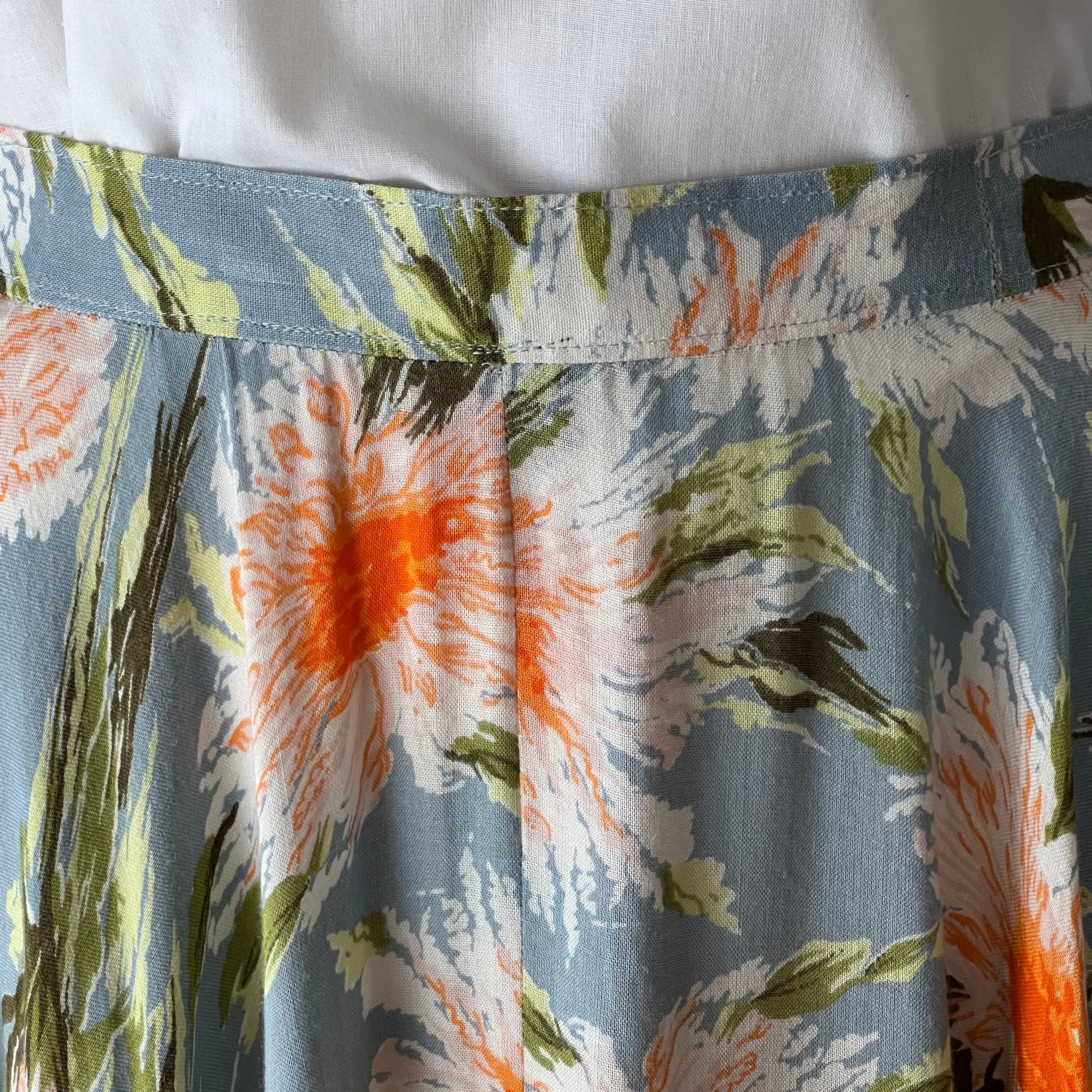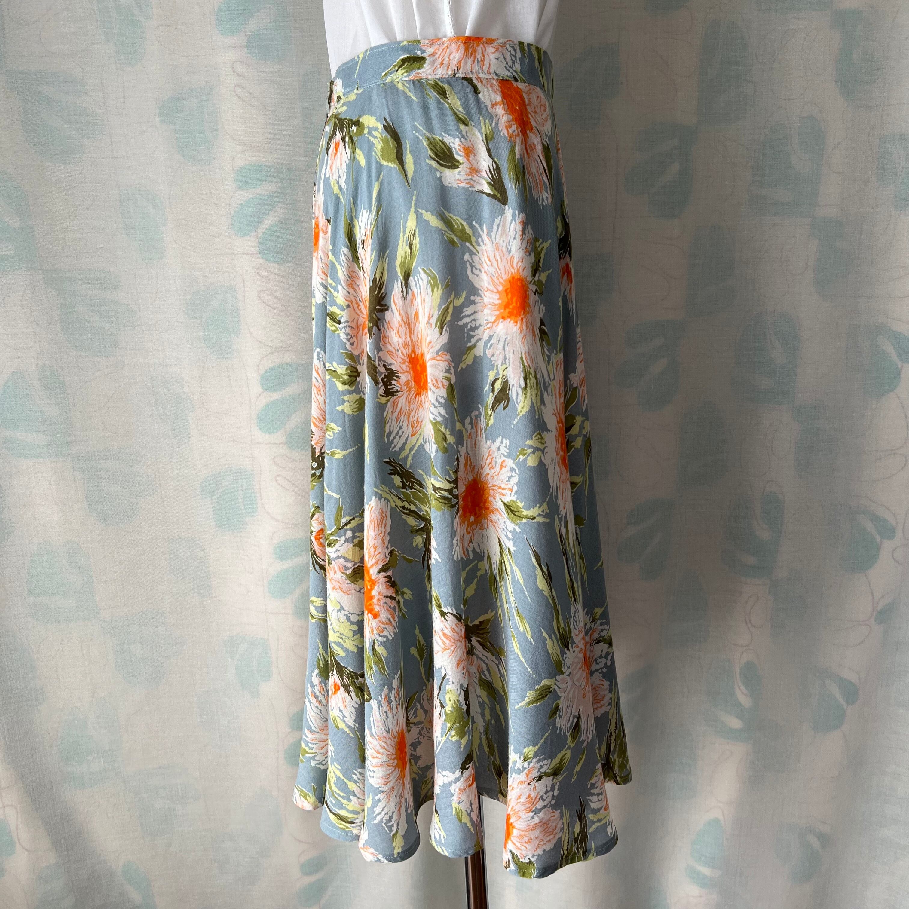 ヴィンテージ くすんだ水色と大きなオレンジの花柄スカート。