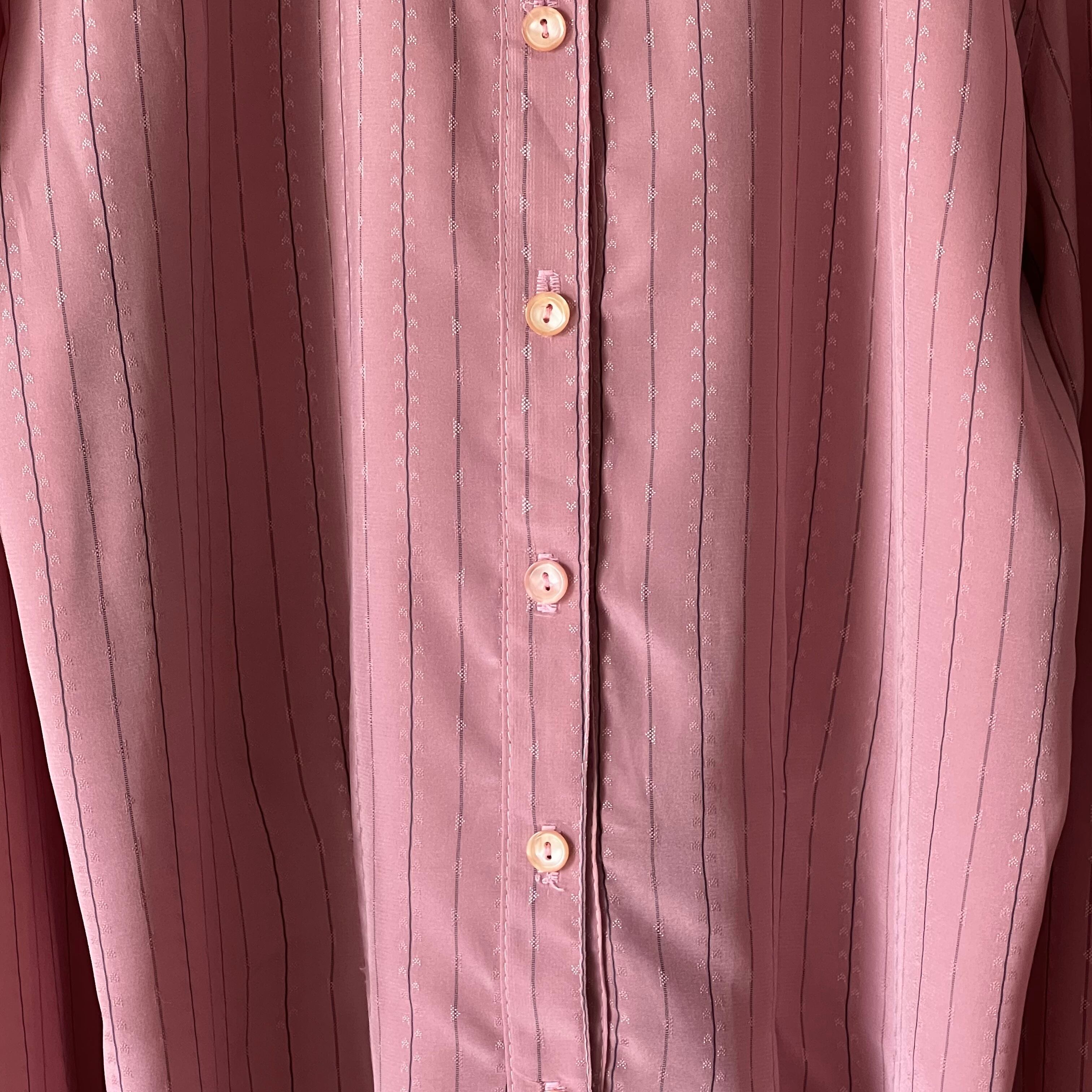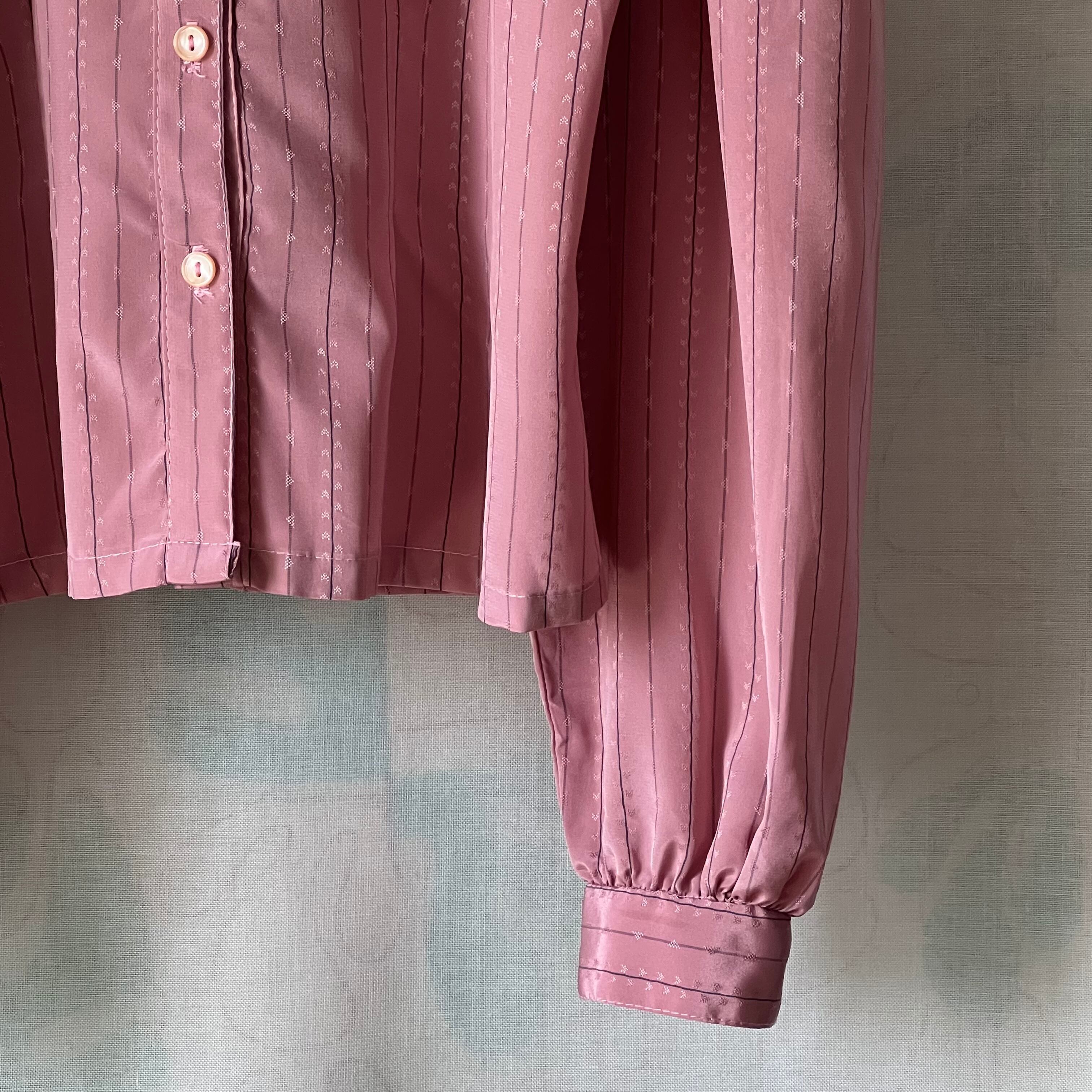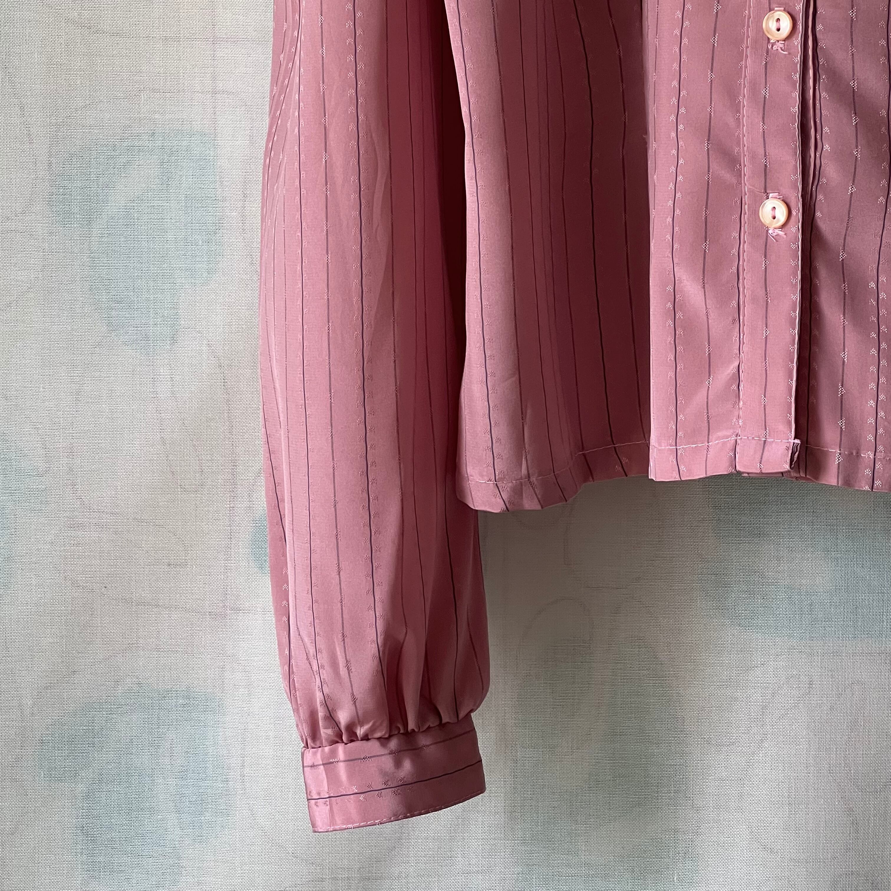 Used スモーキーピンク×グレーストライプ柄のブラウス。
