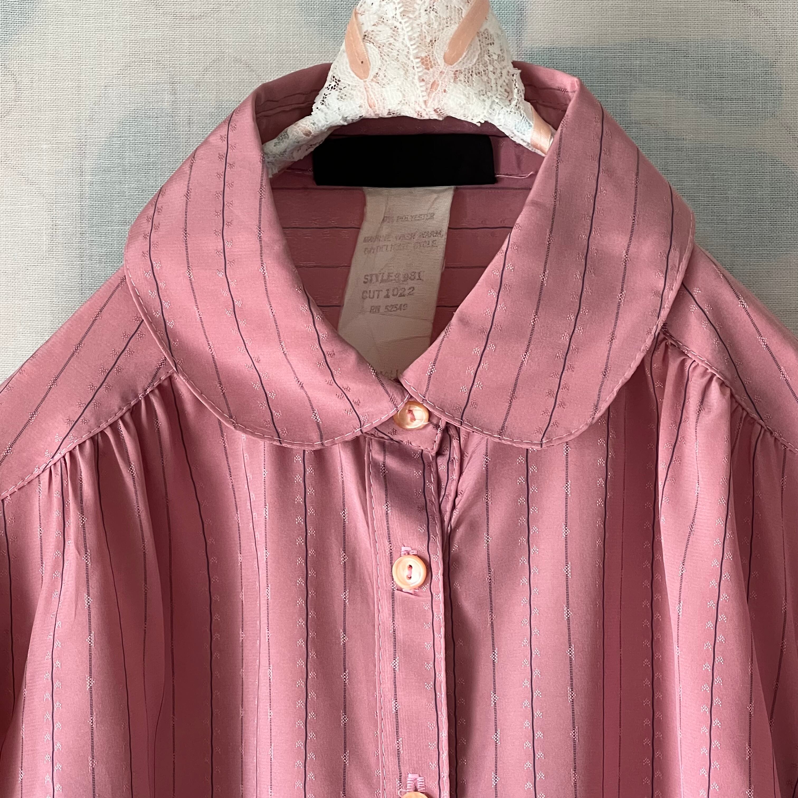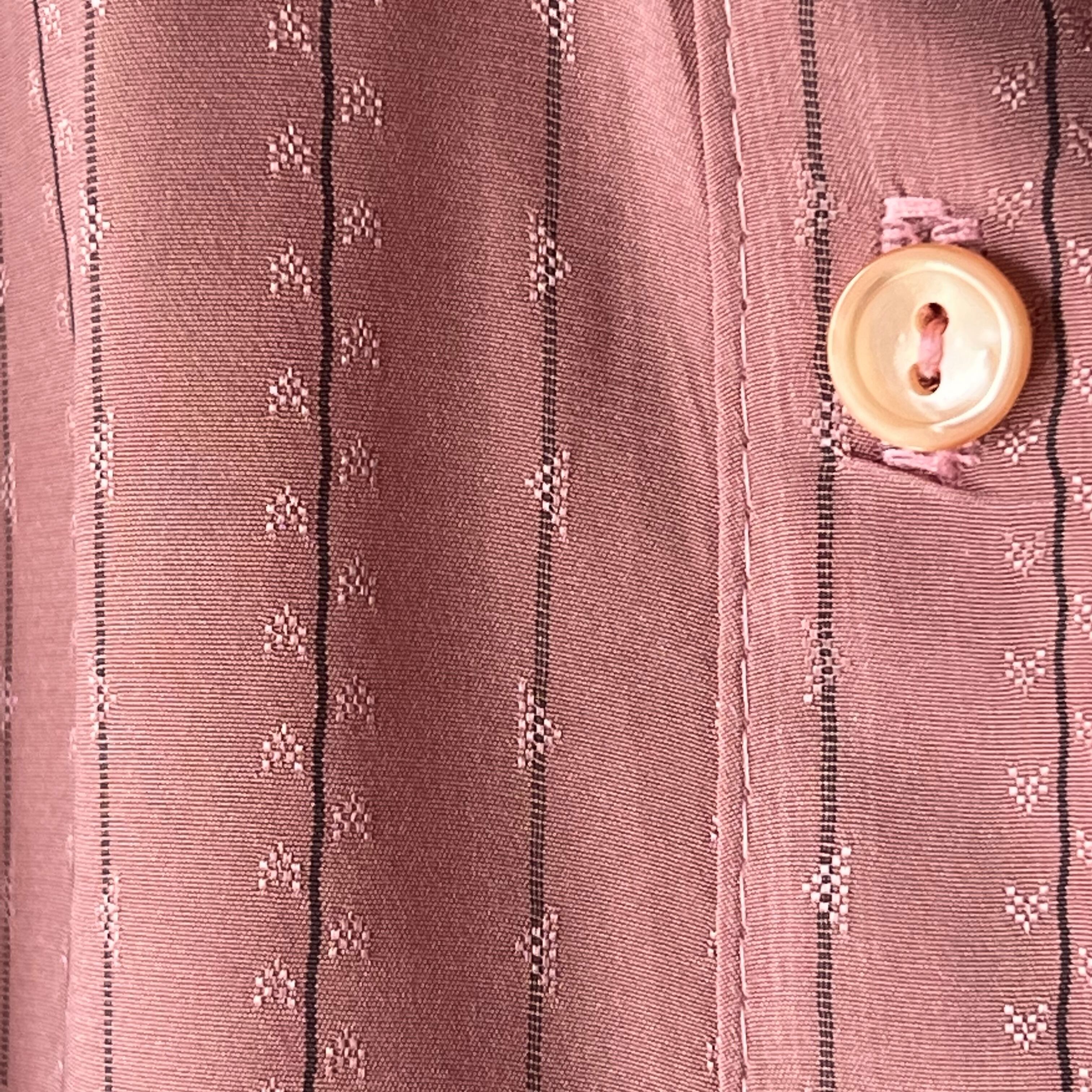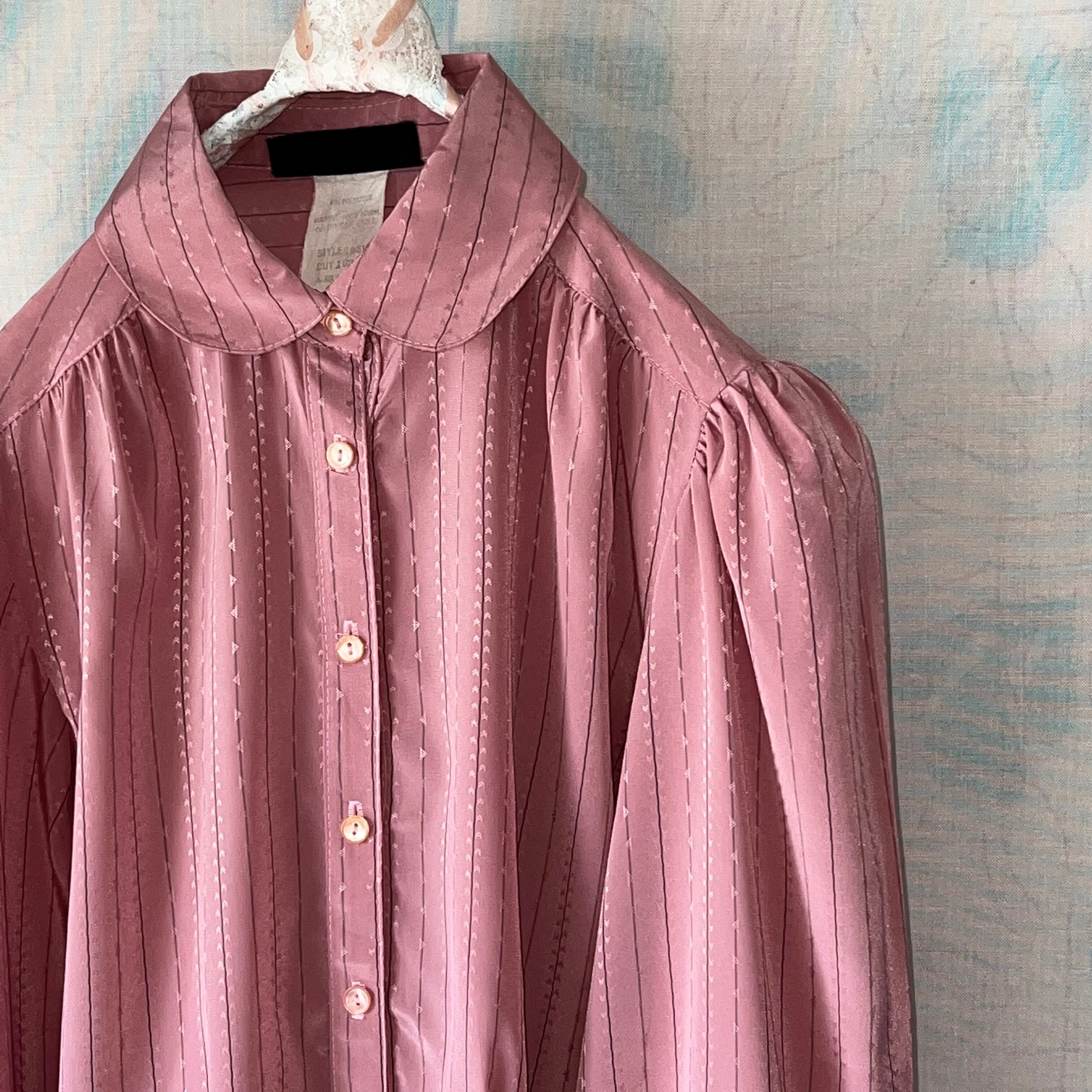 Used スモーキーピンク×グレーストライプ柄のブラウス。