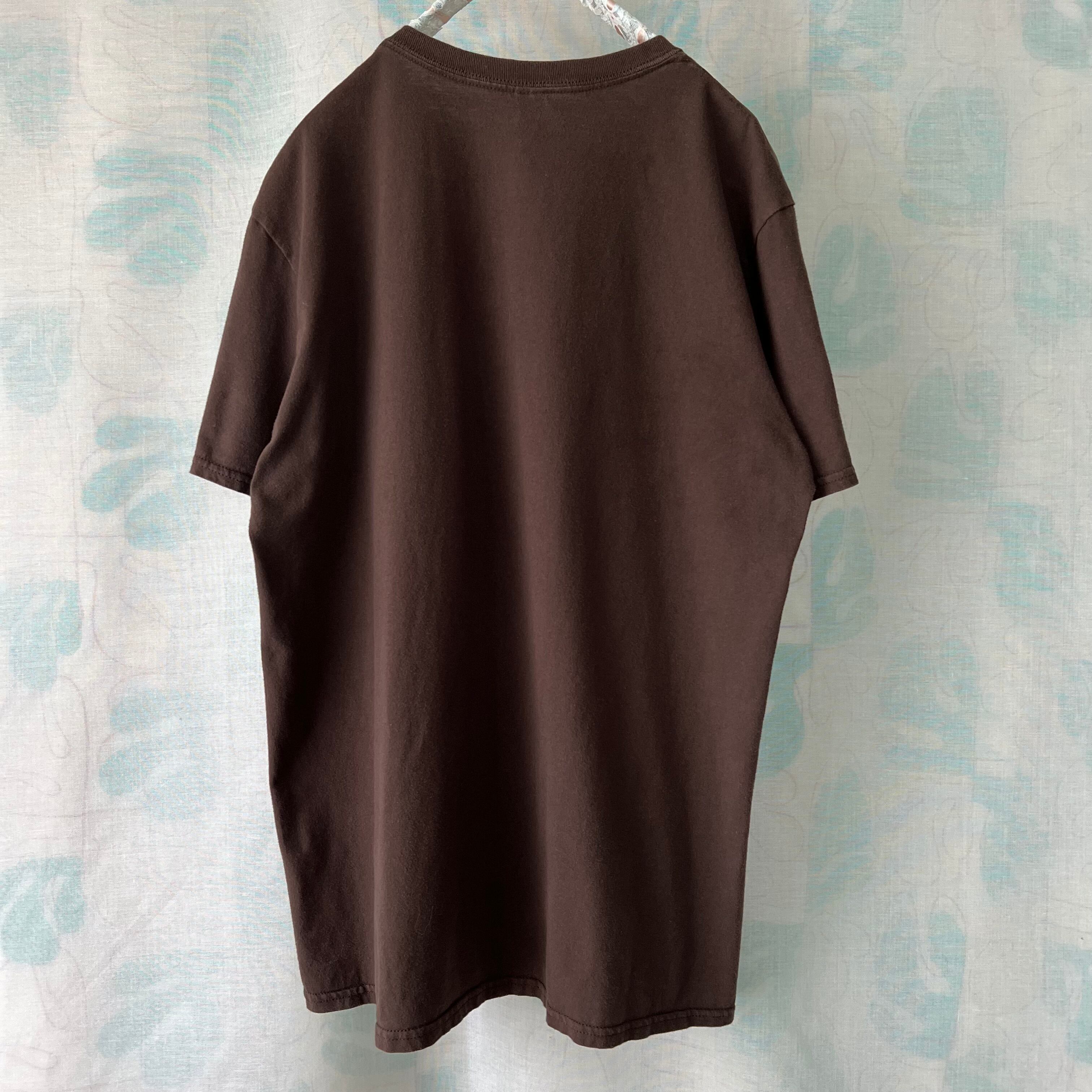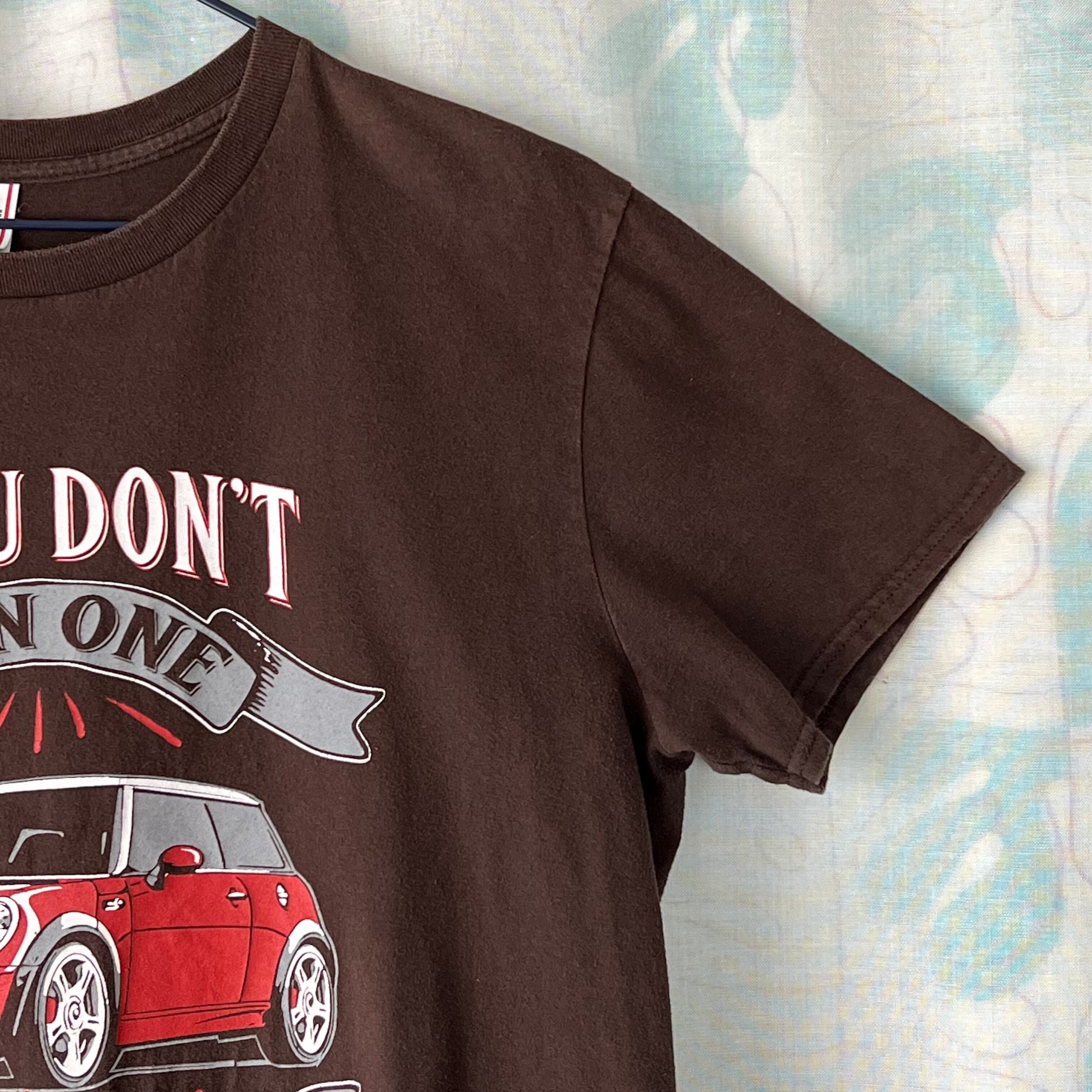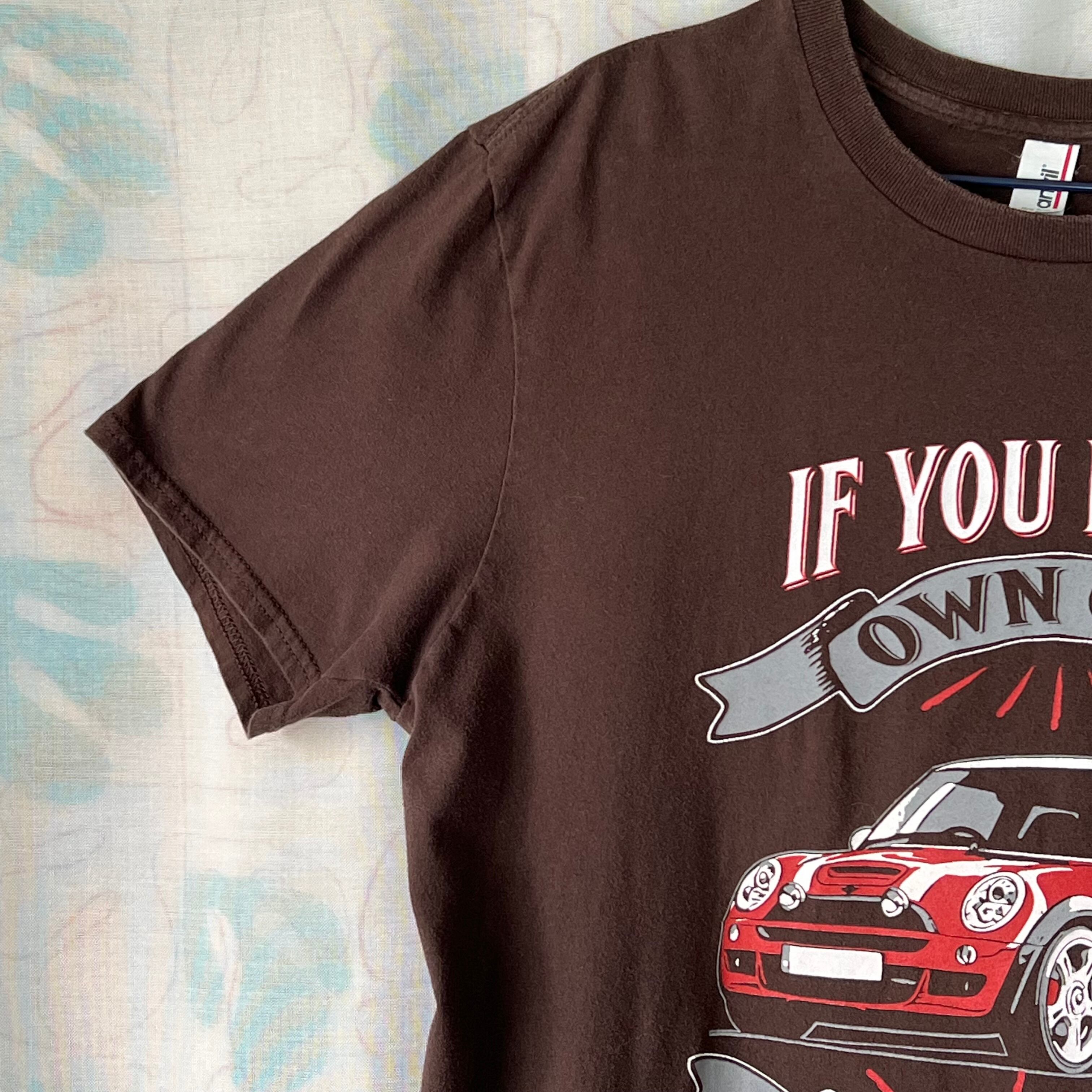 Used 赤い車プリントのチョコレート色Tシャツ。