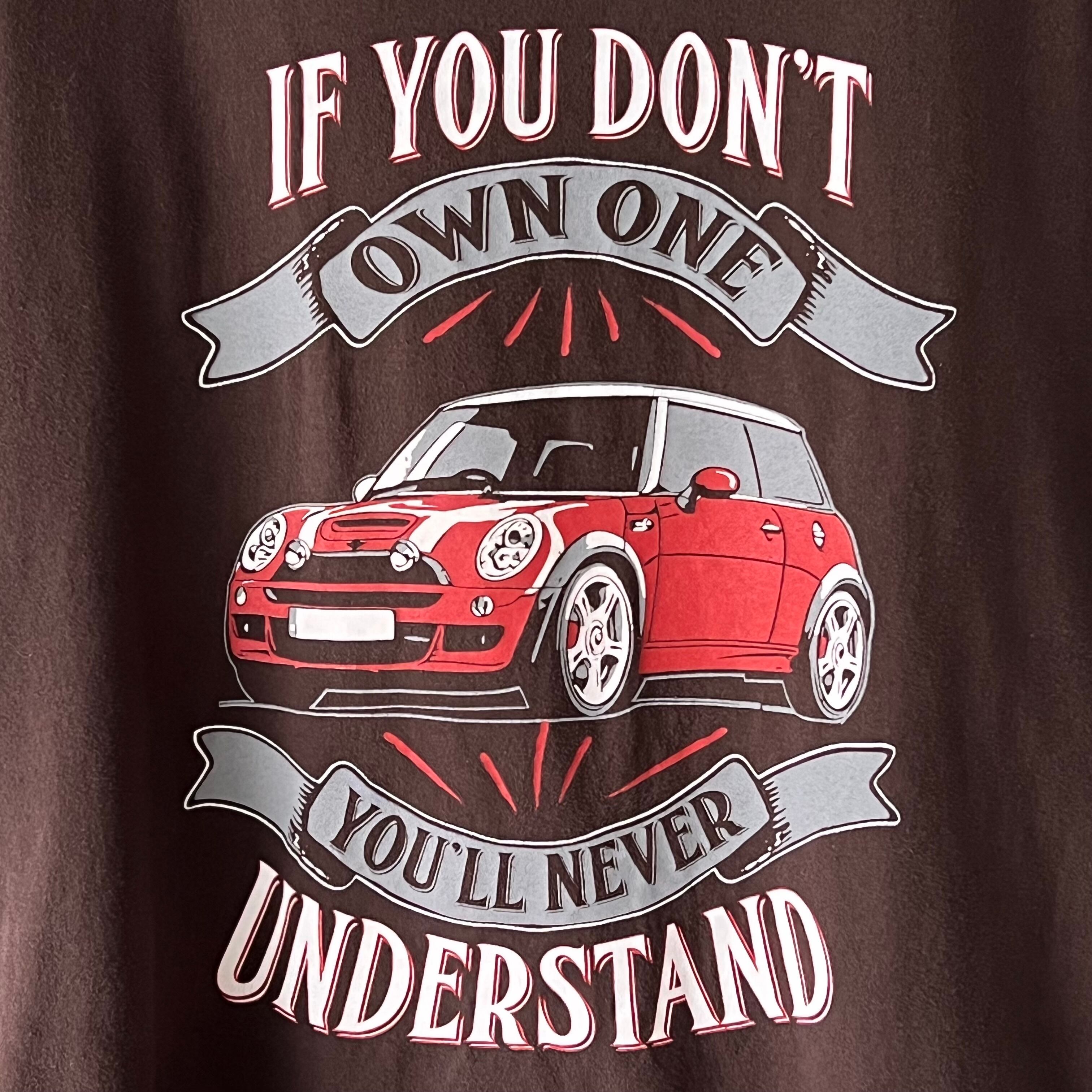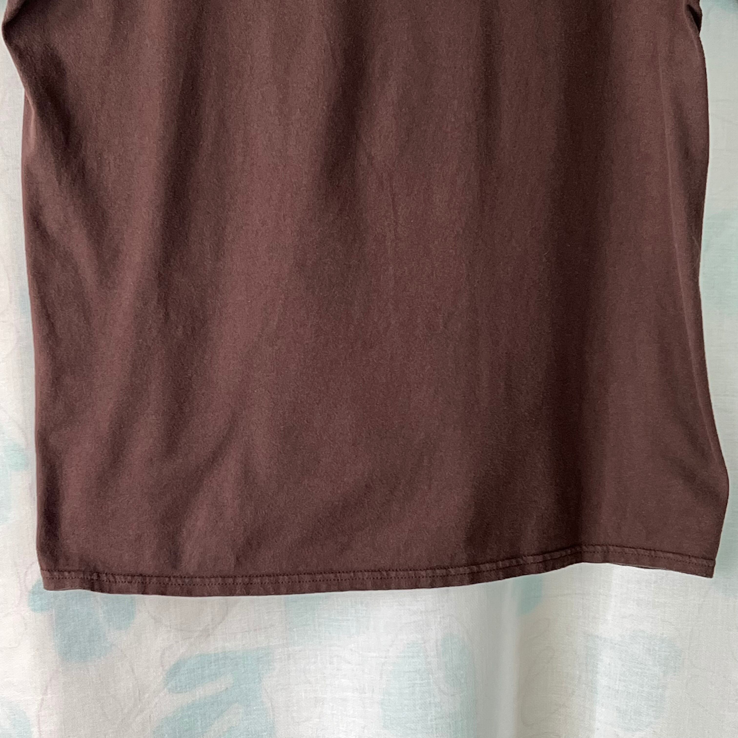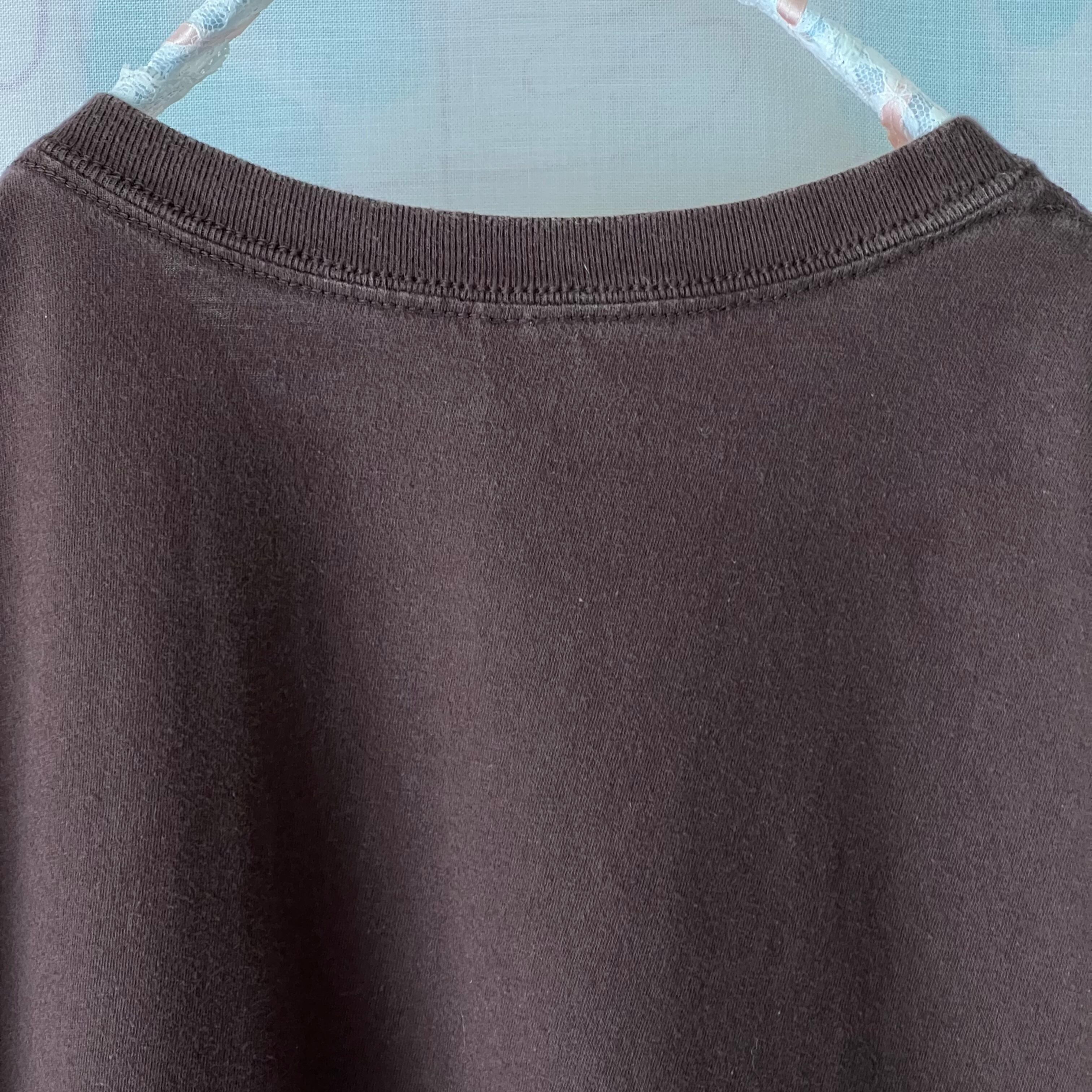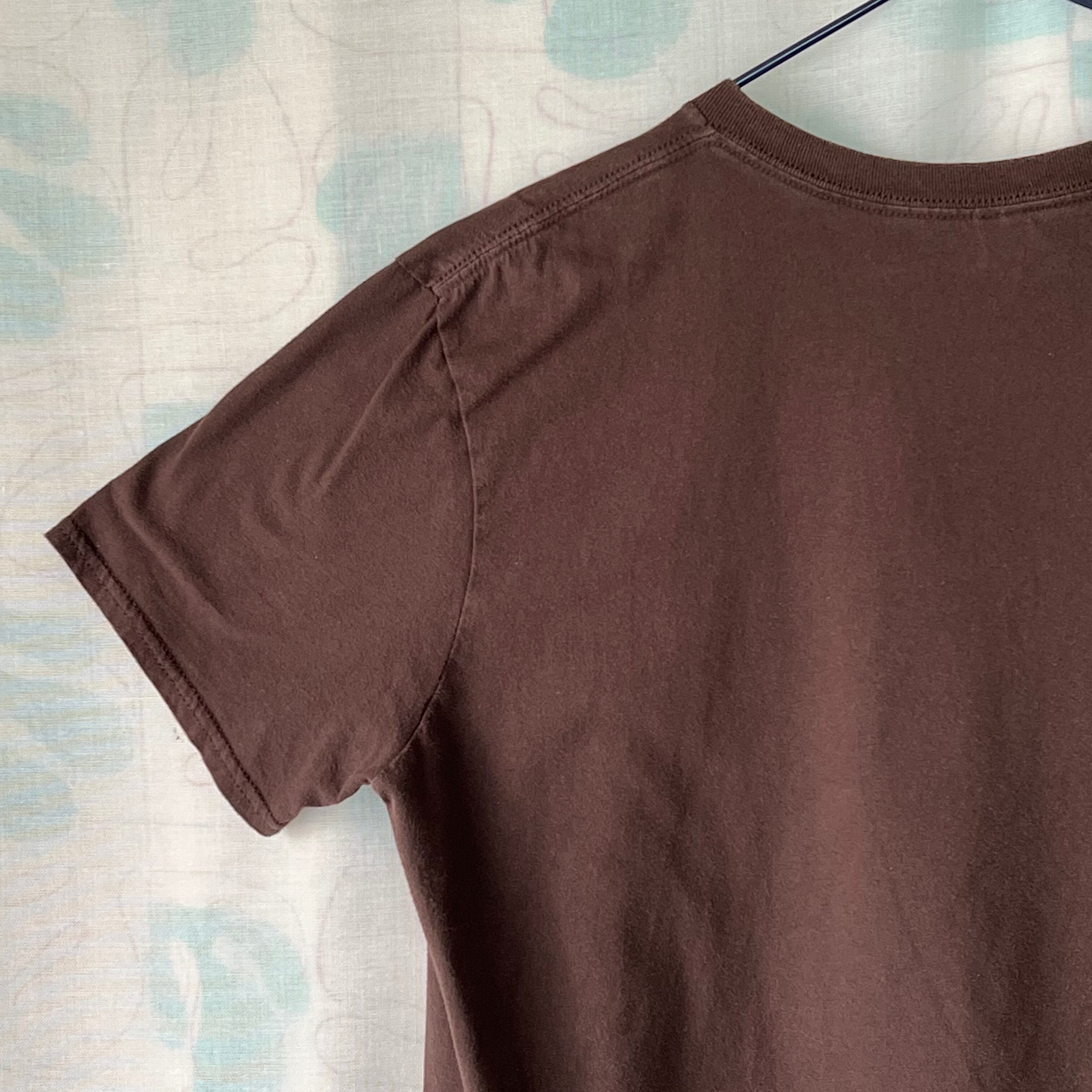 Used 赤い車プリントのチョコレート色Tシャツ。