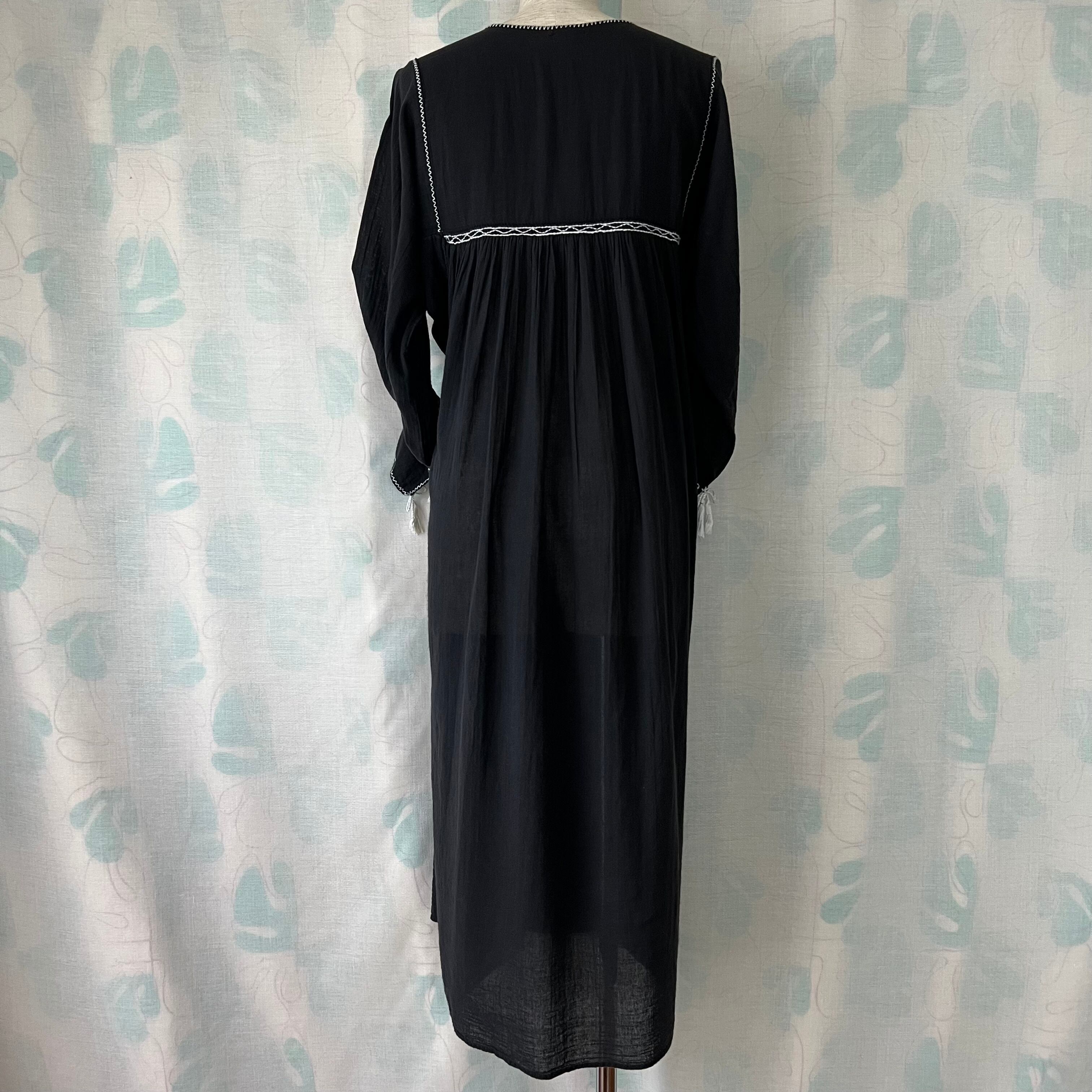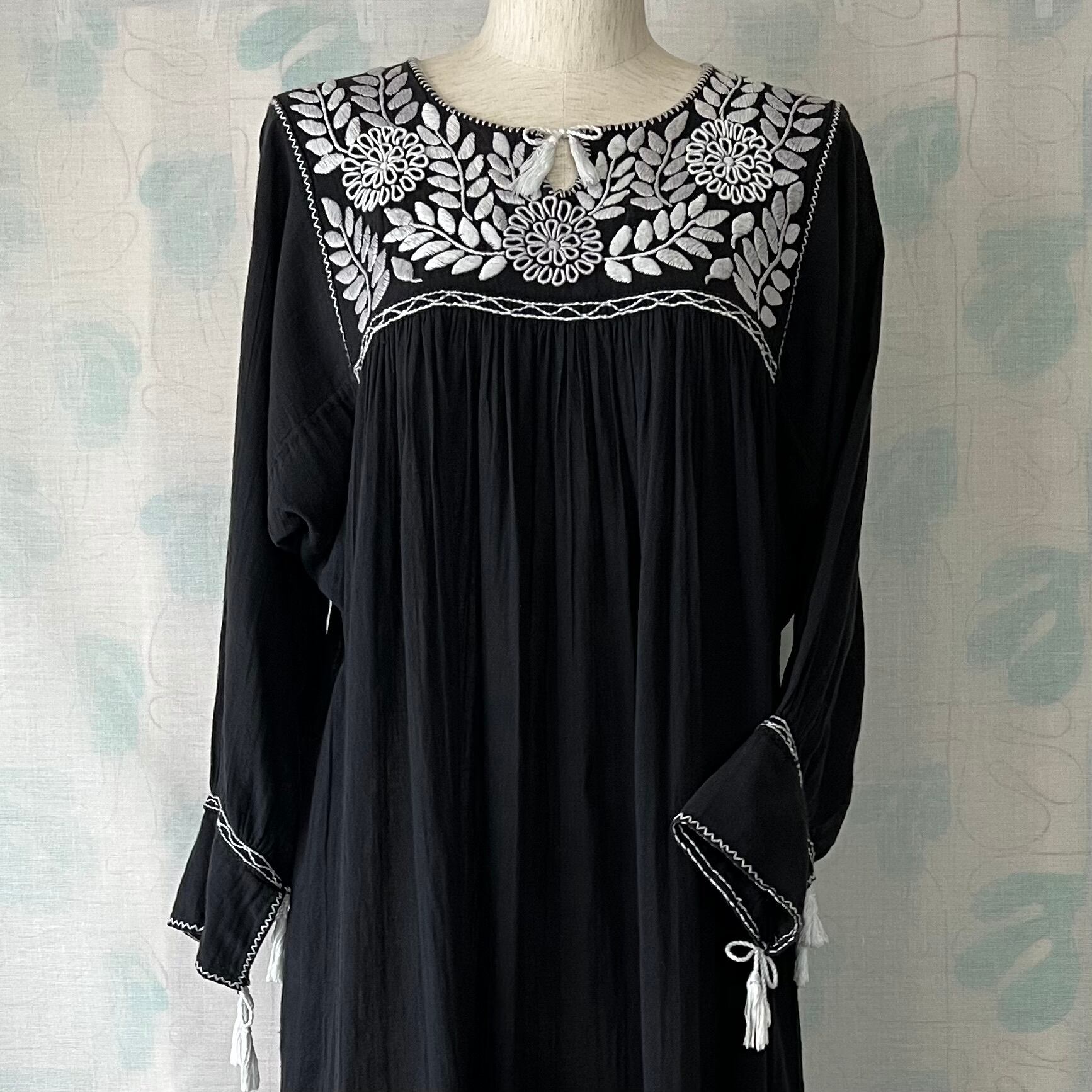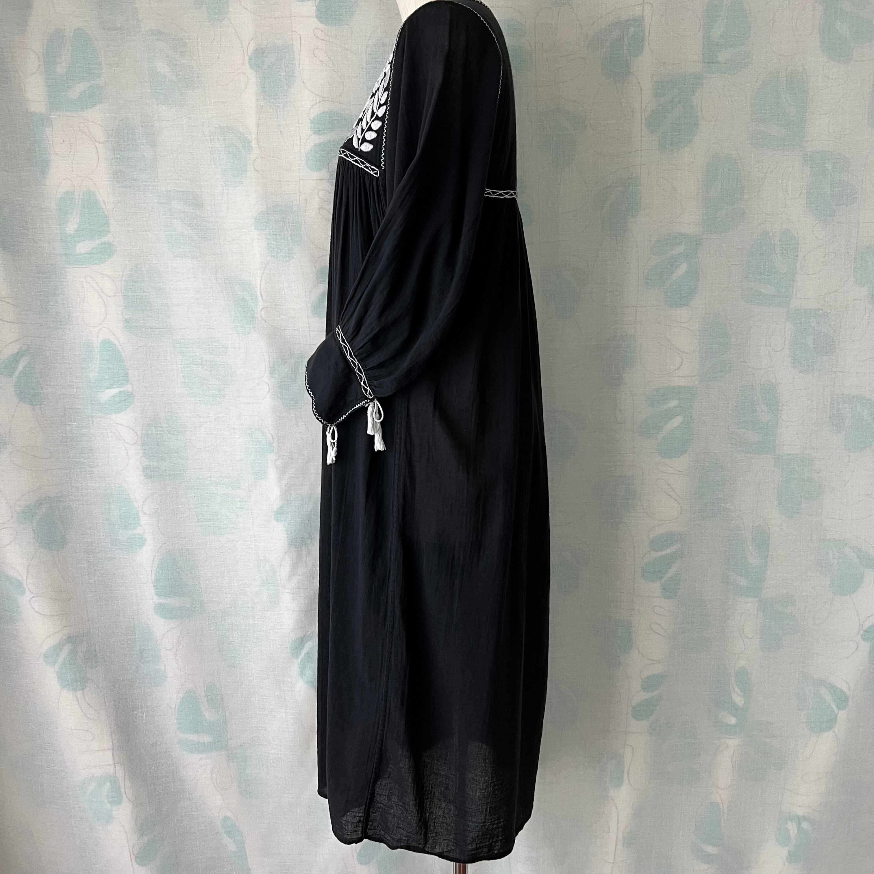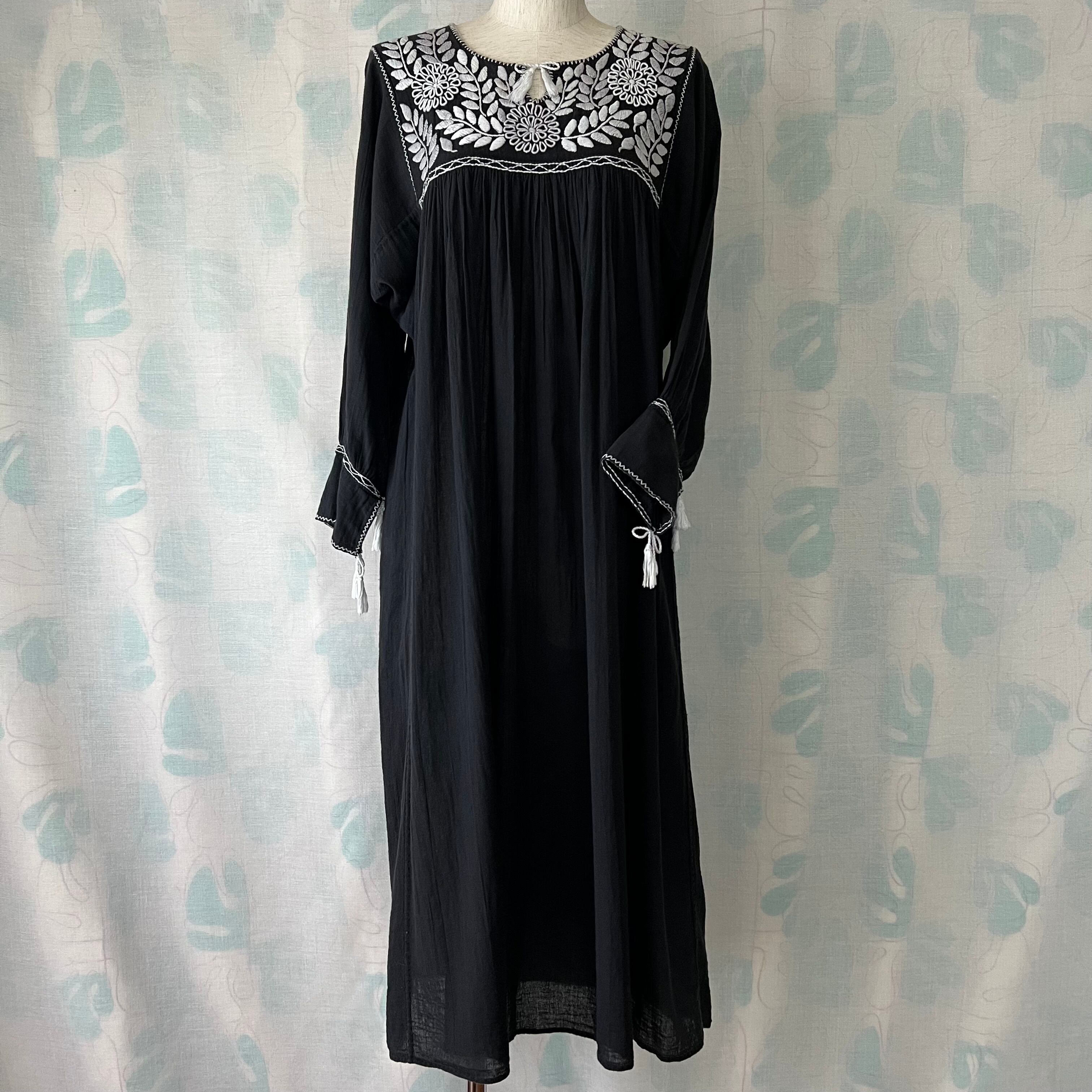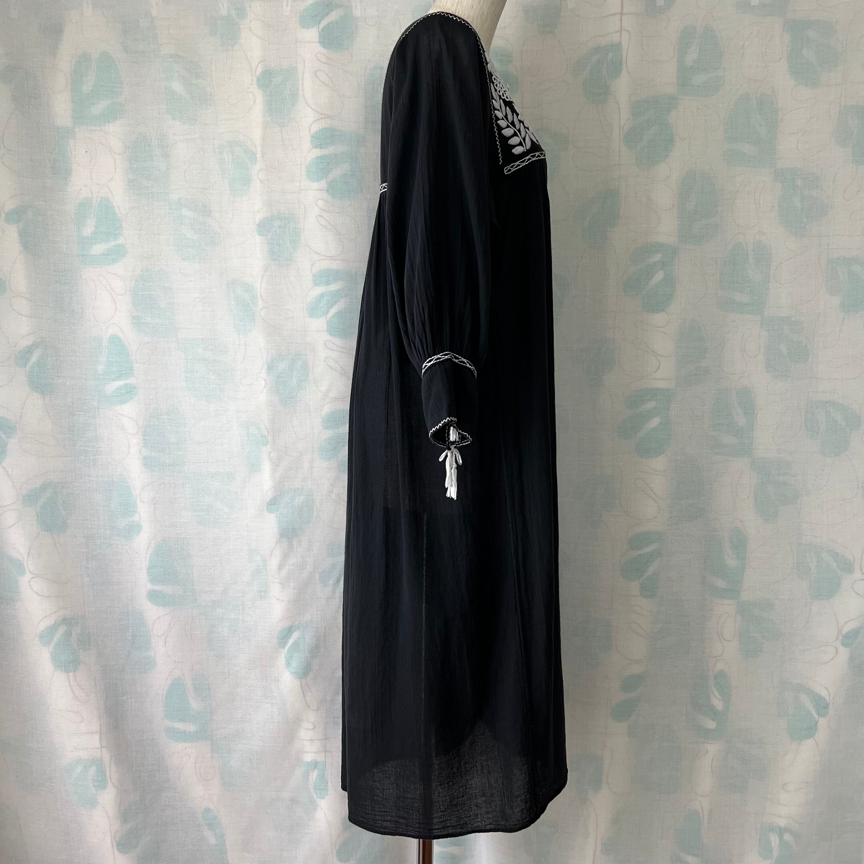 Used 黒地×白刺繍スモックワンピース。