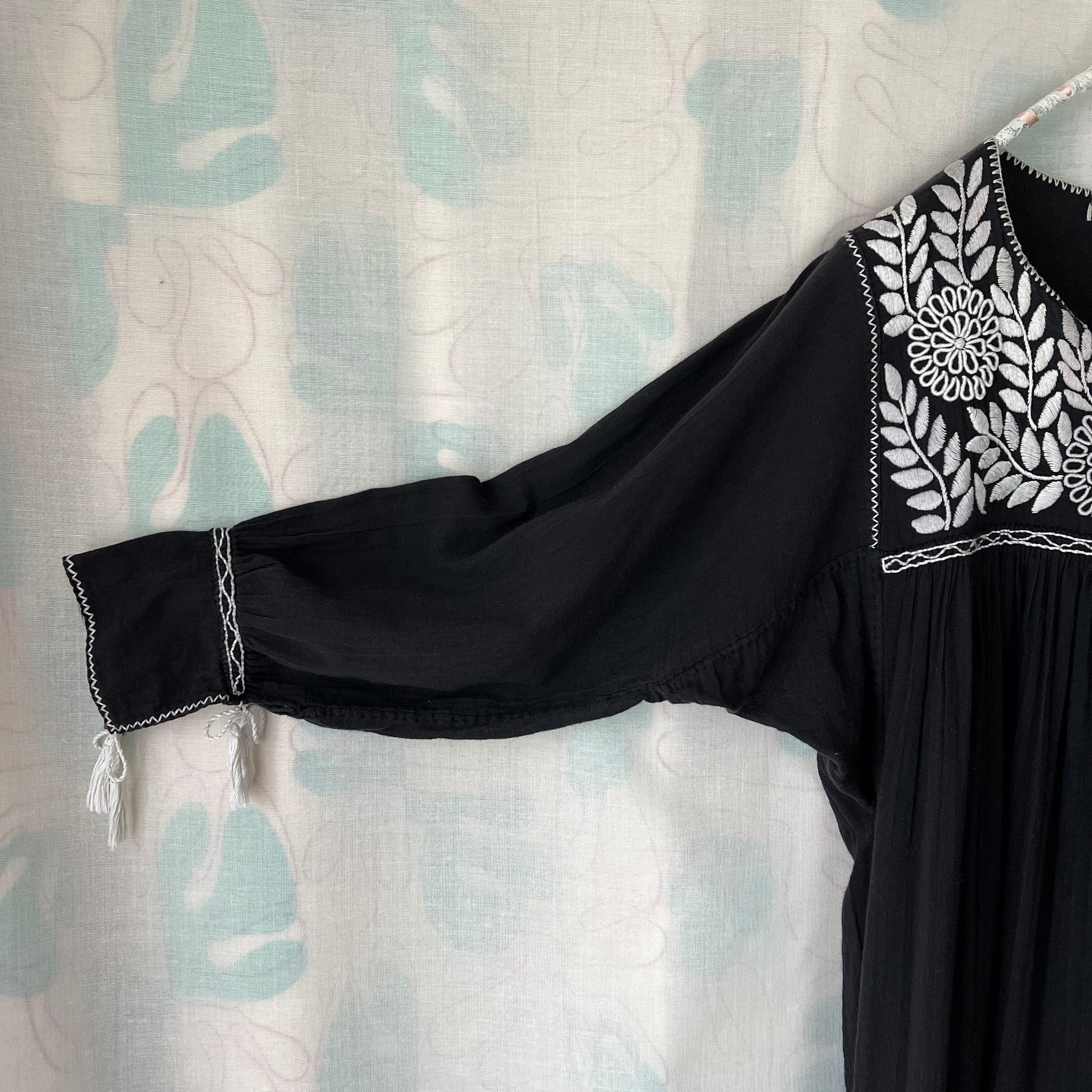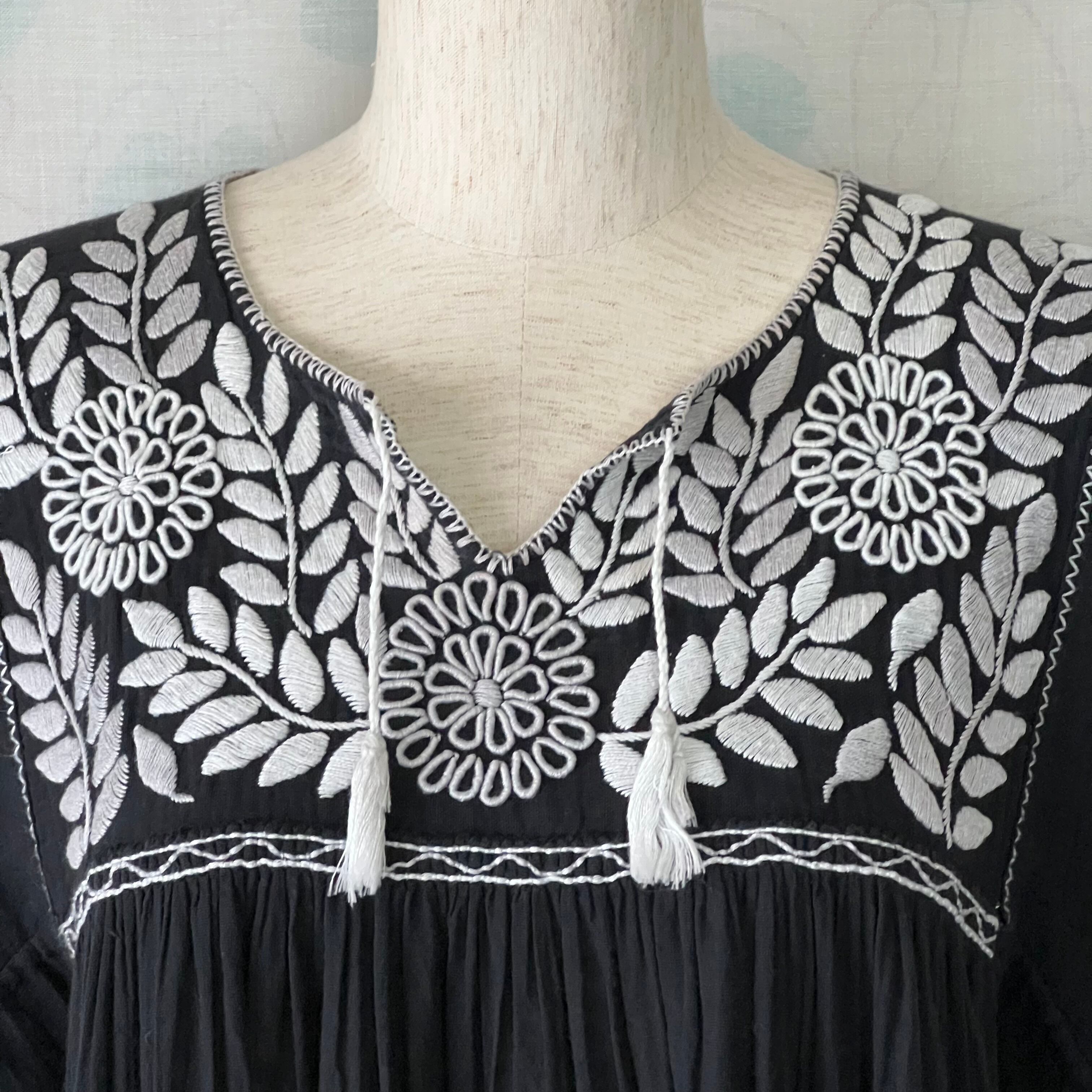 Used black x white embroidery smock dress