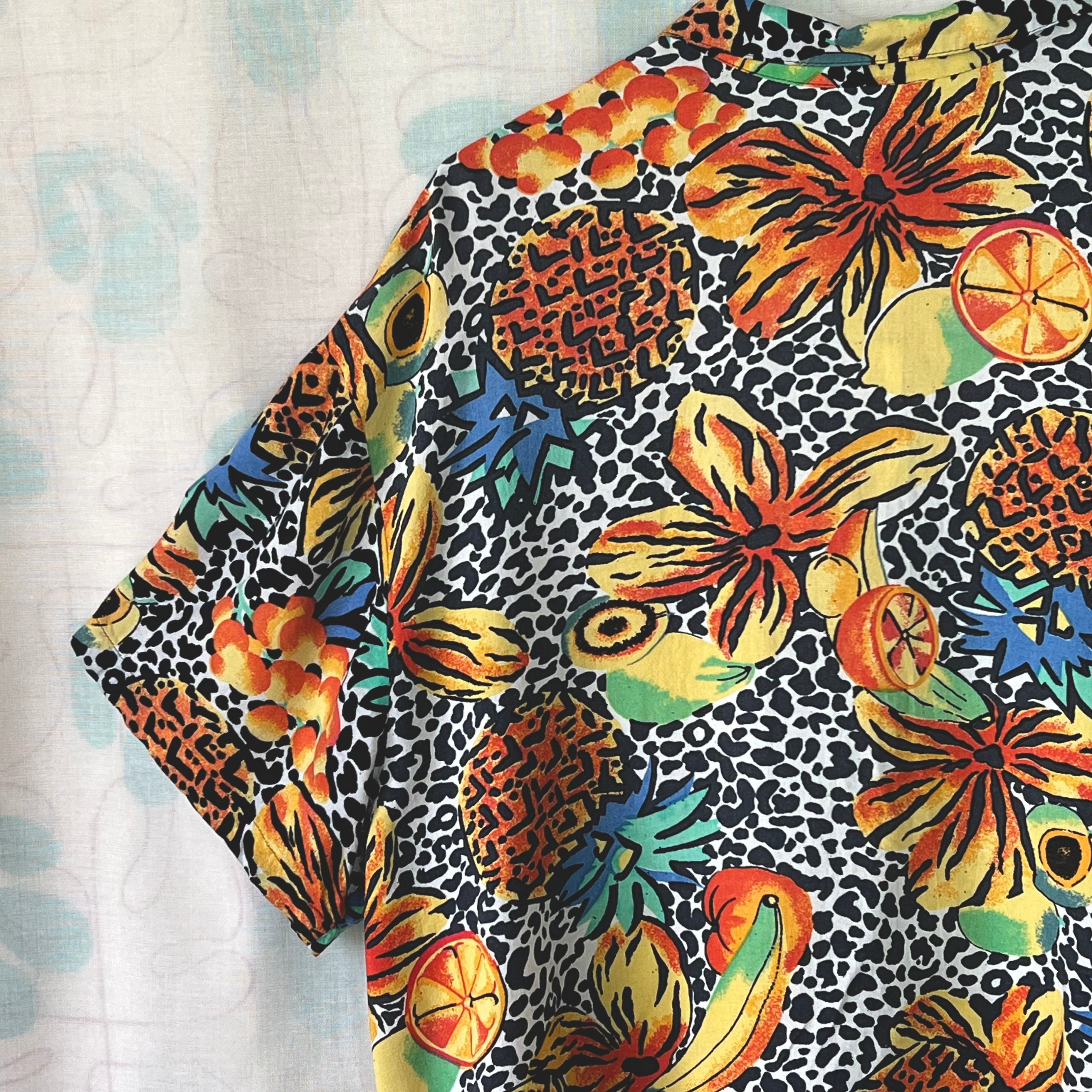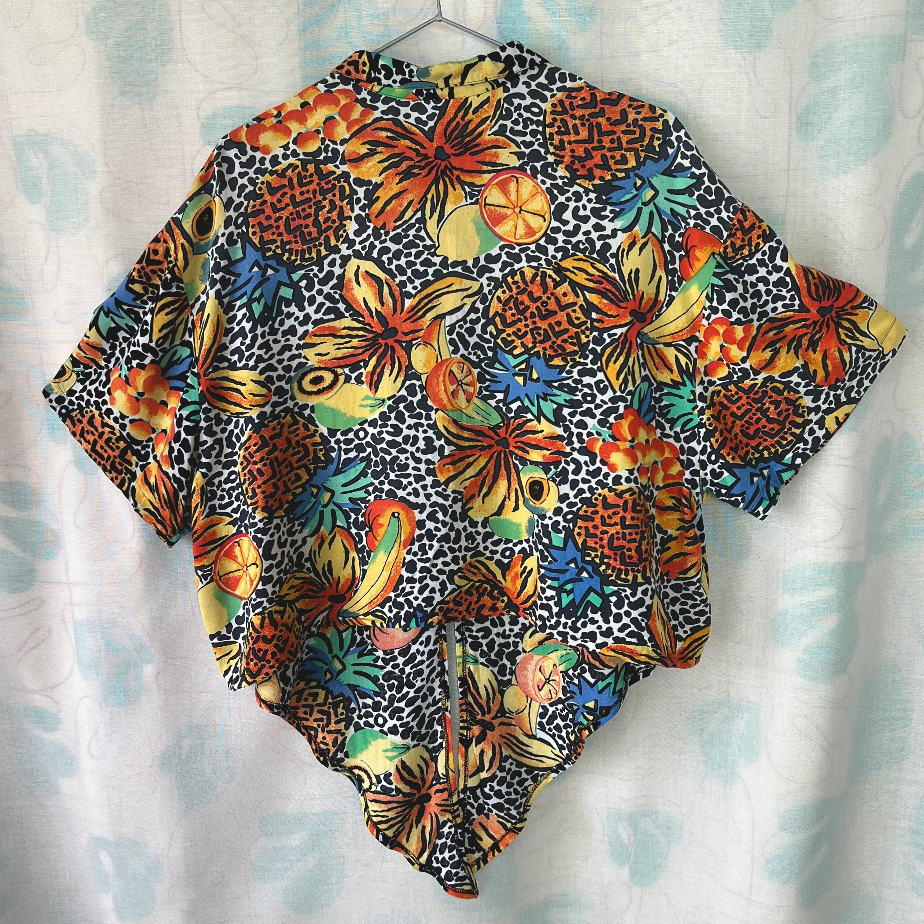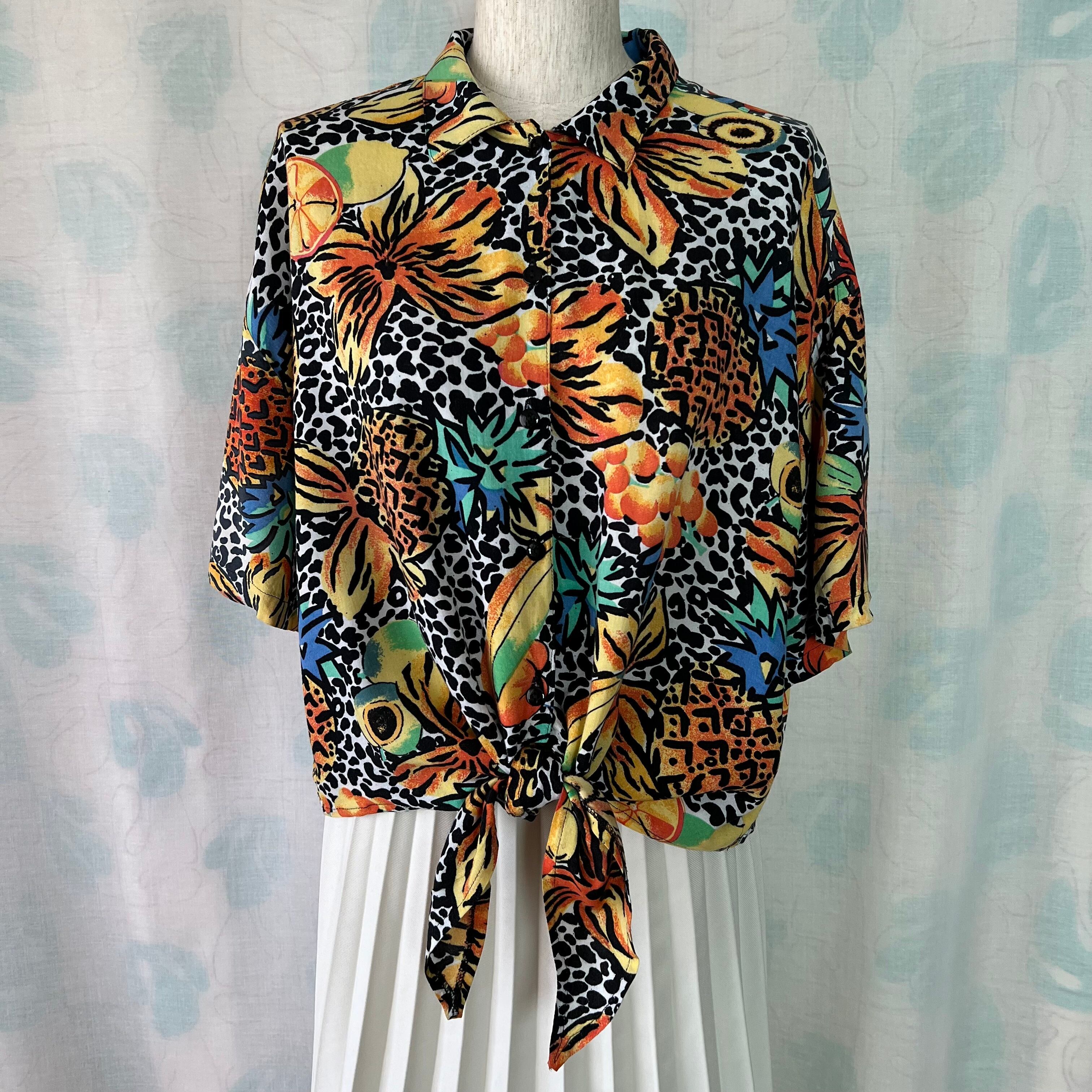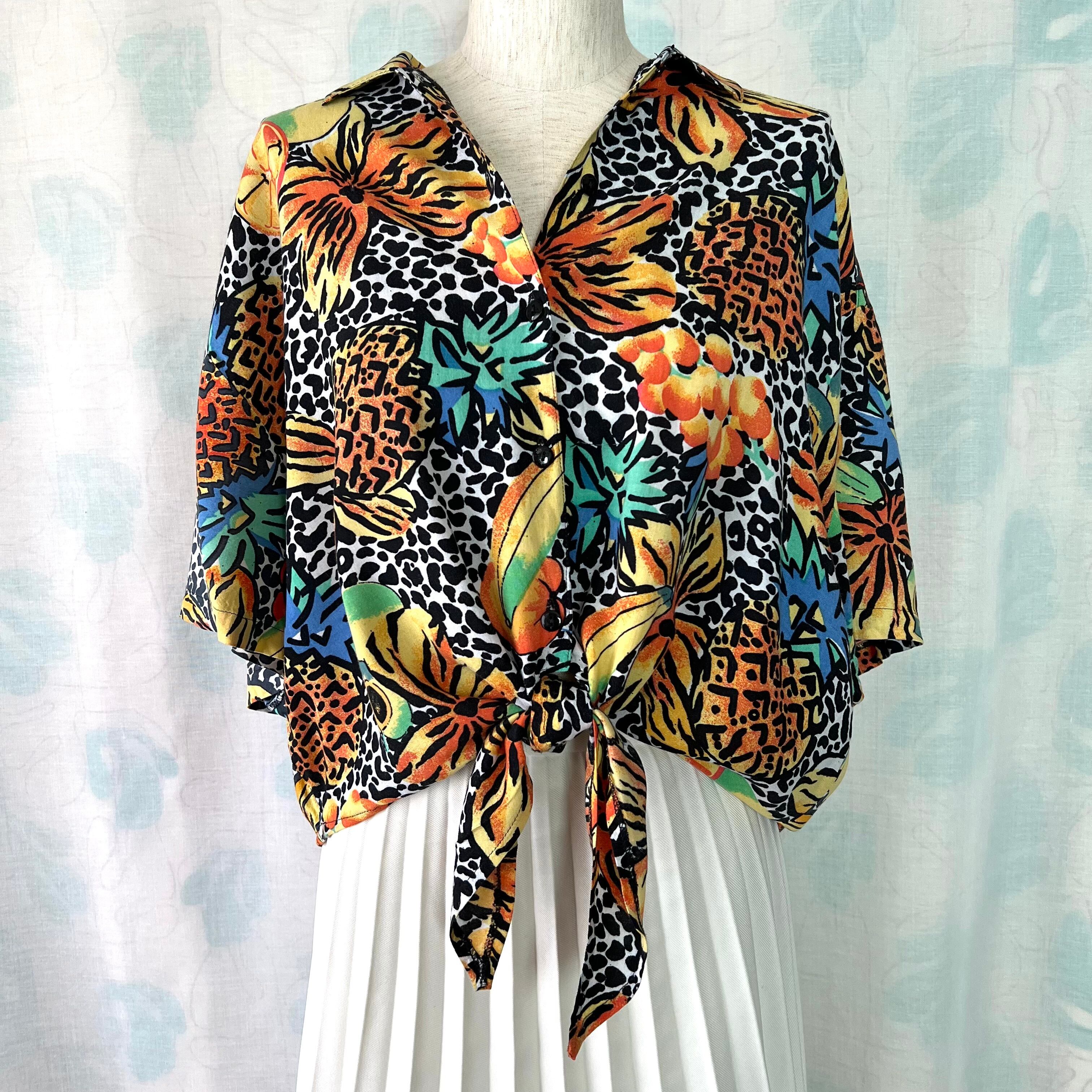 80's フルーツ×フラワー×レオパード柄ノットブラウス。