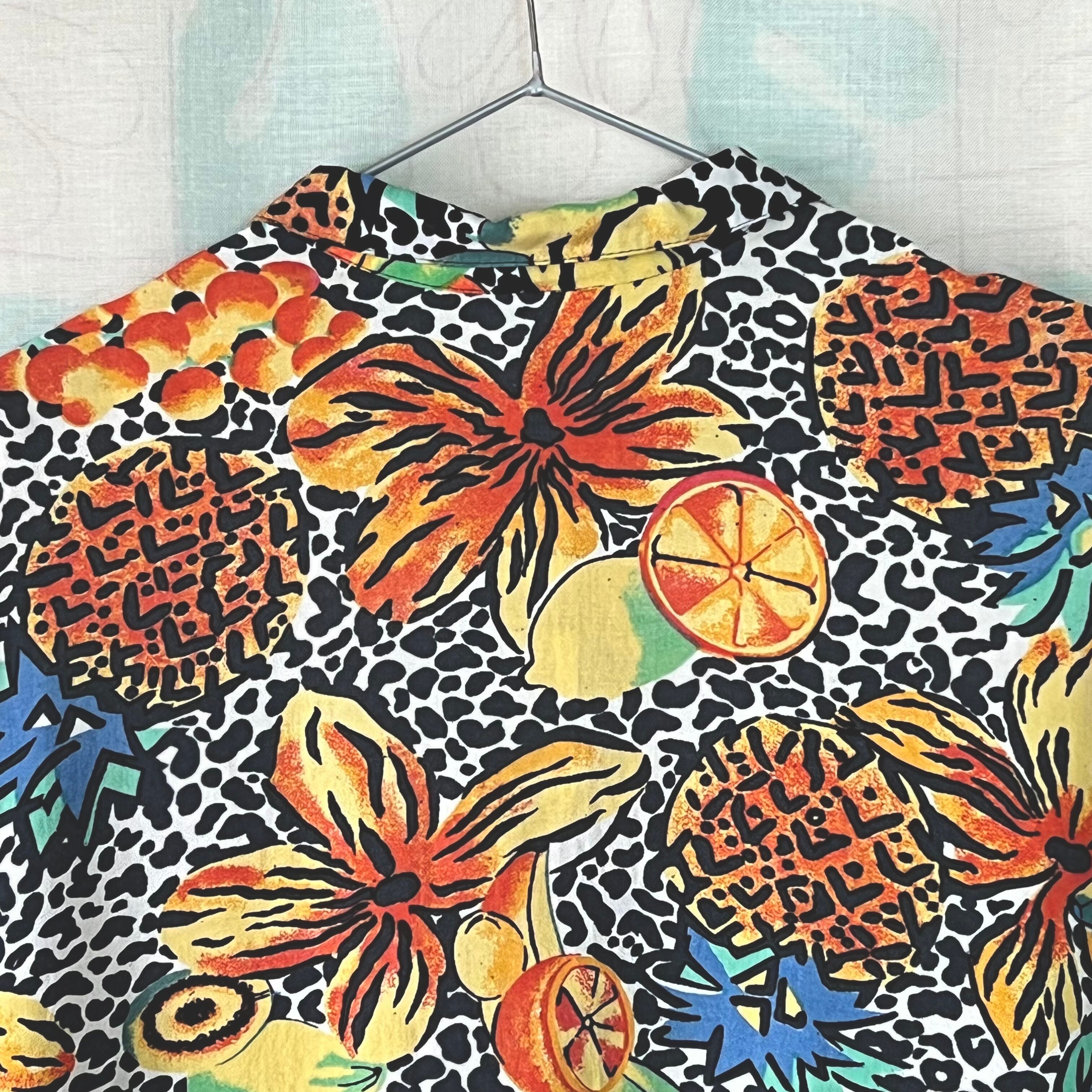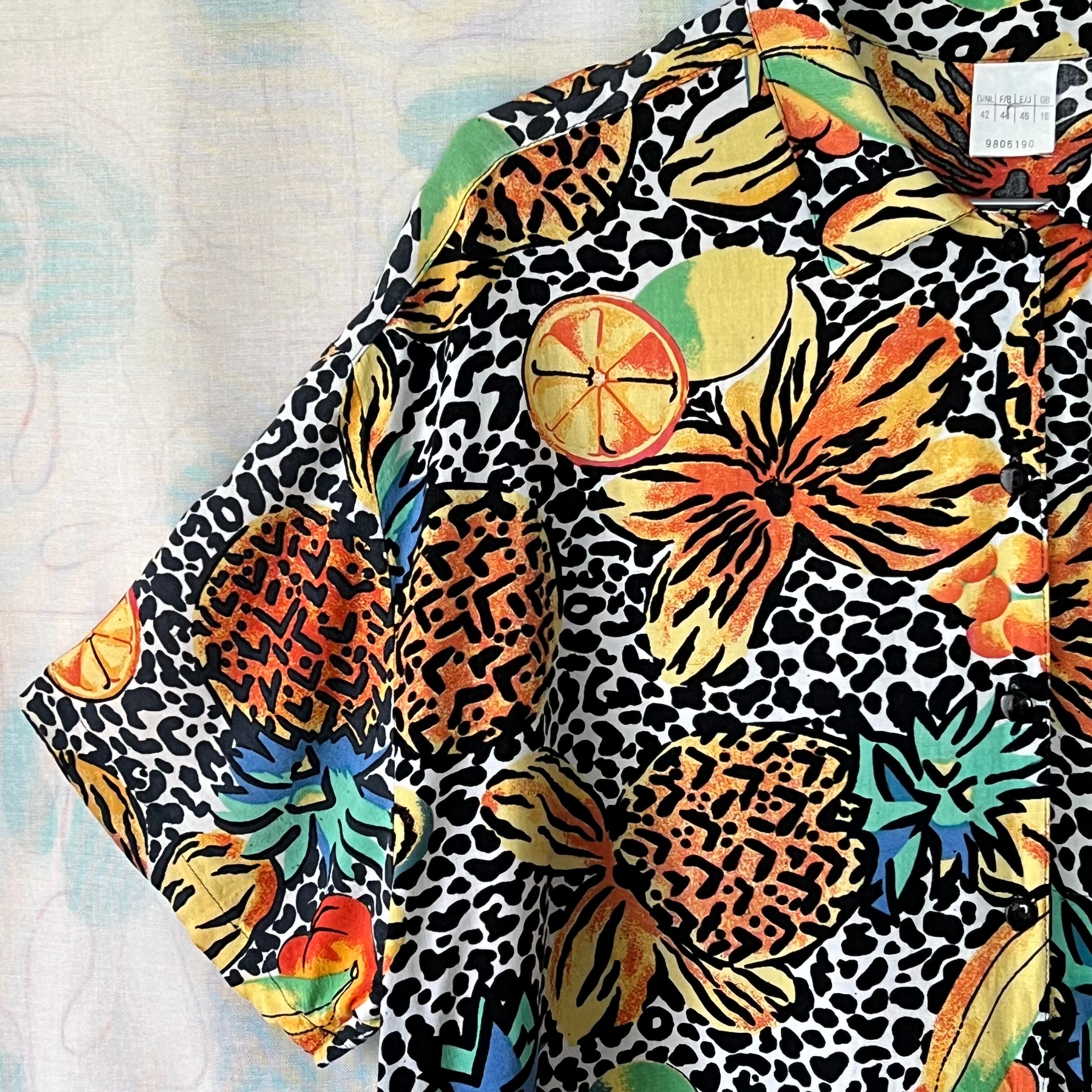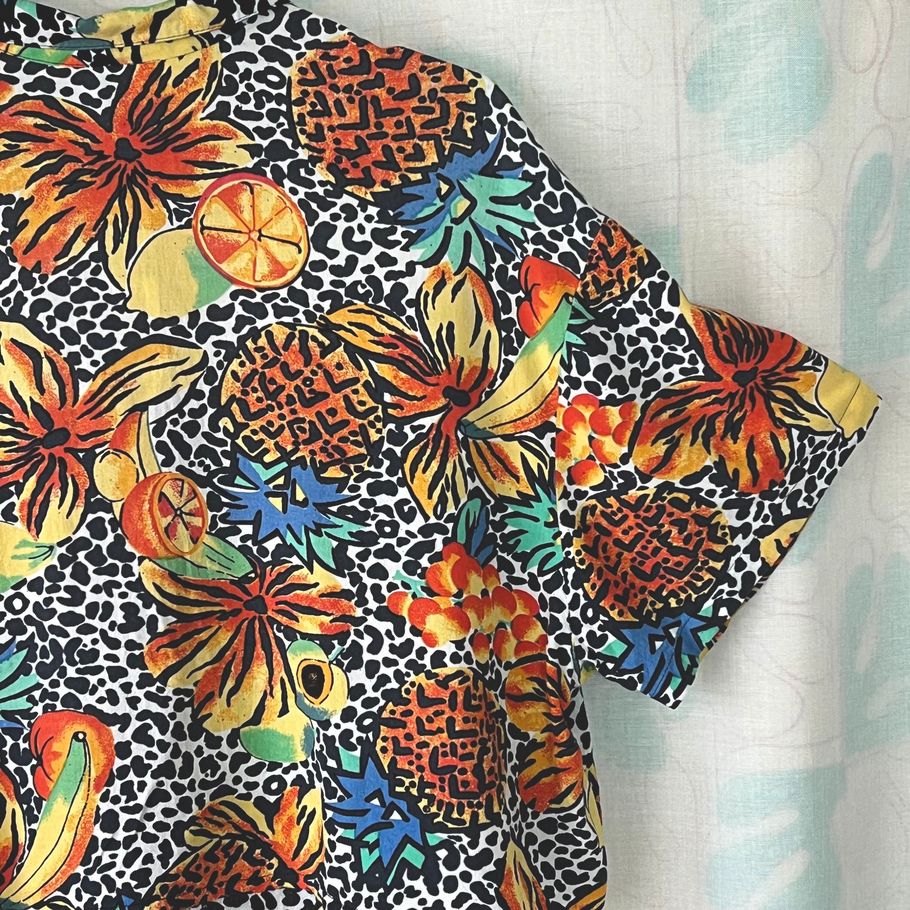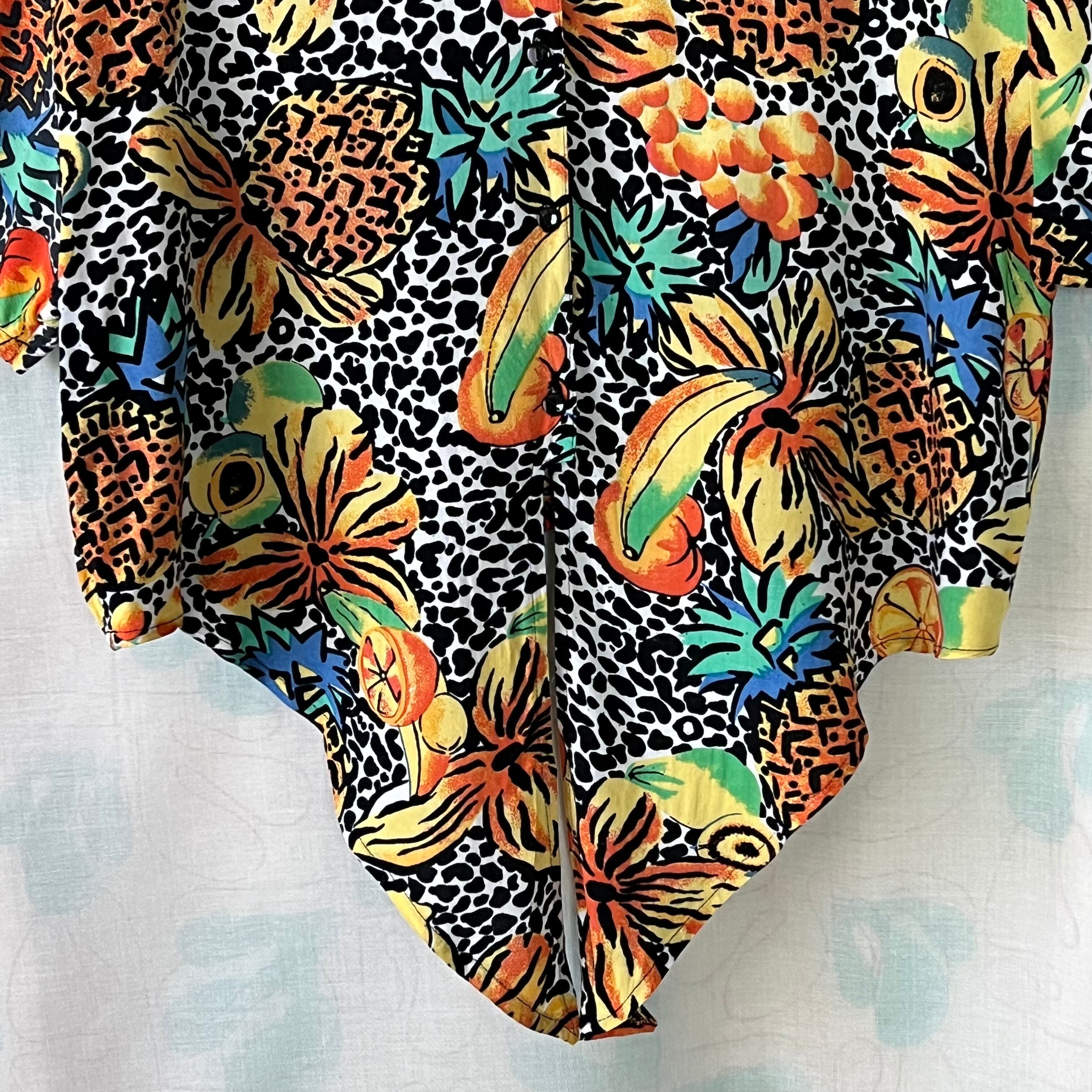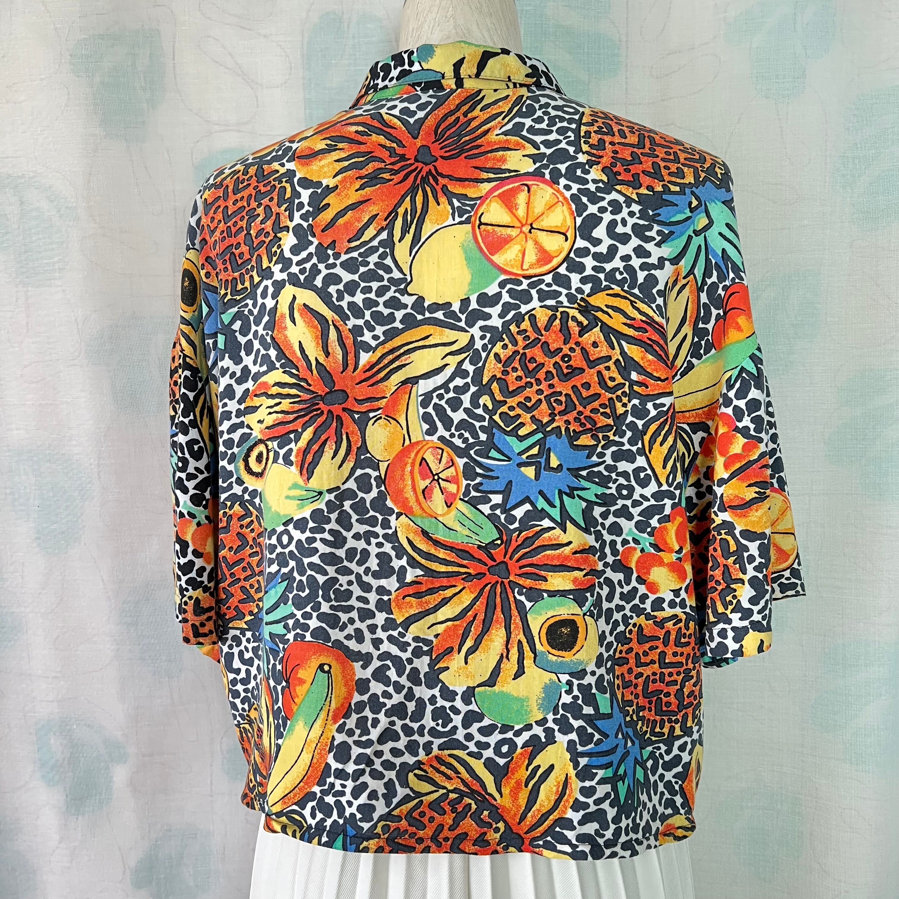 80's フルーツ×フラワー×レオパード柄ノットブラウス。