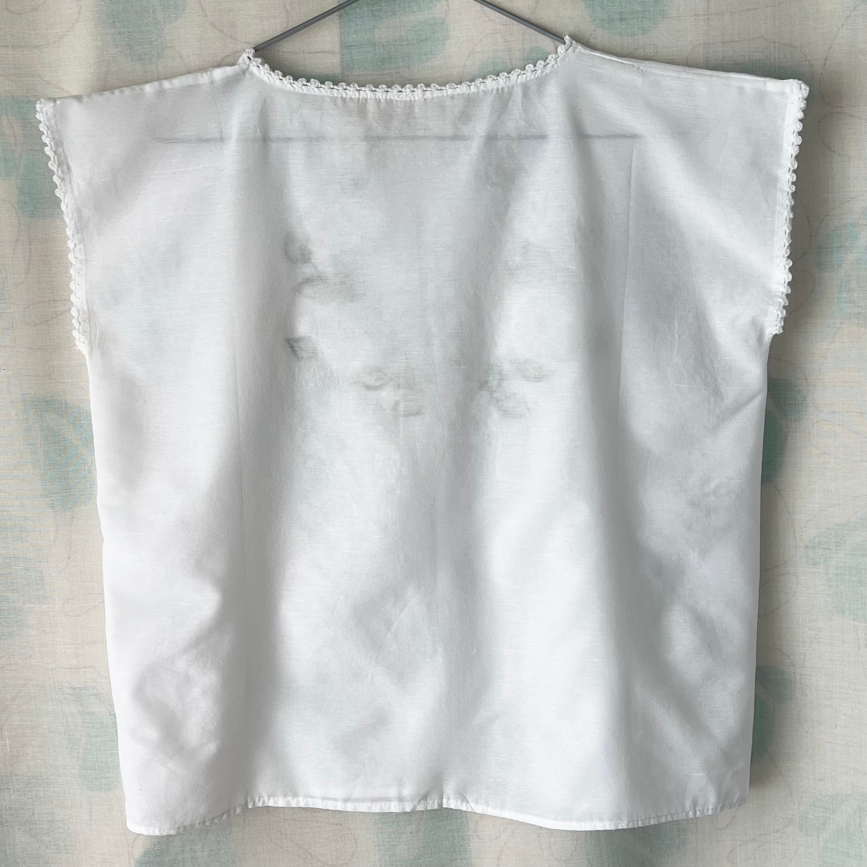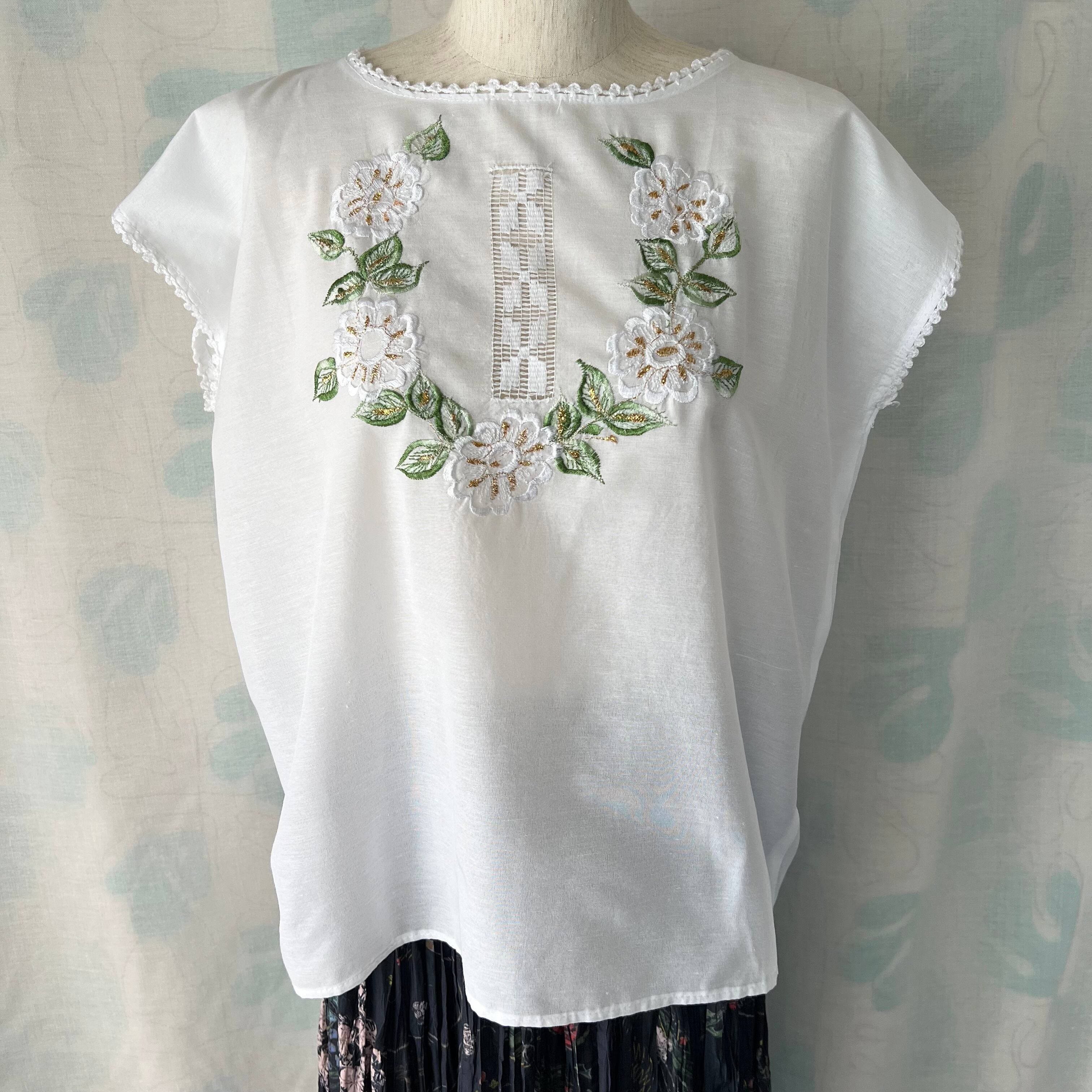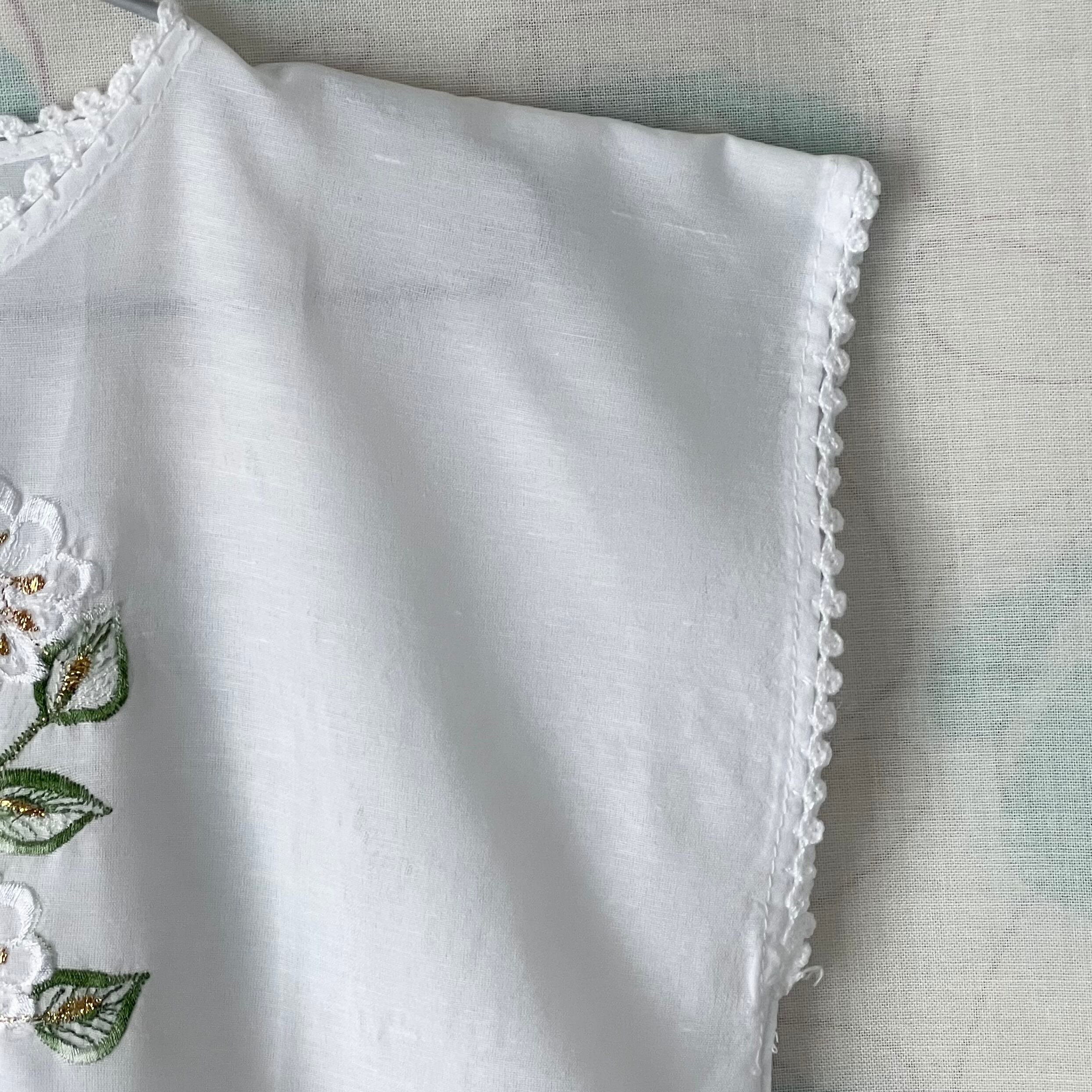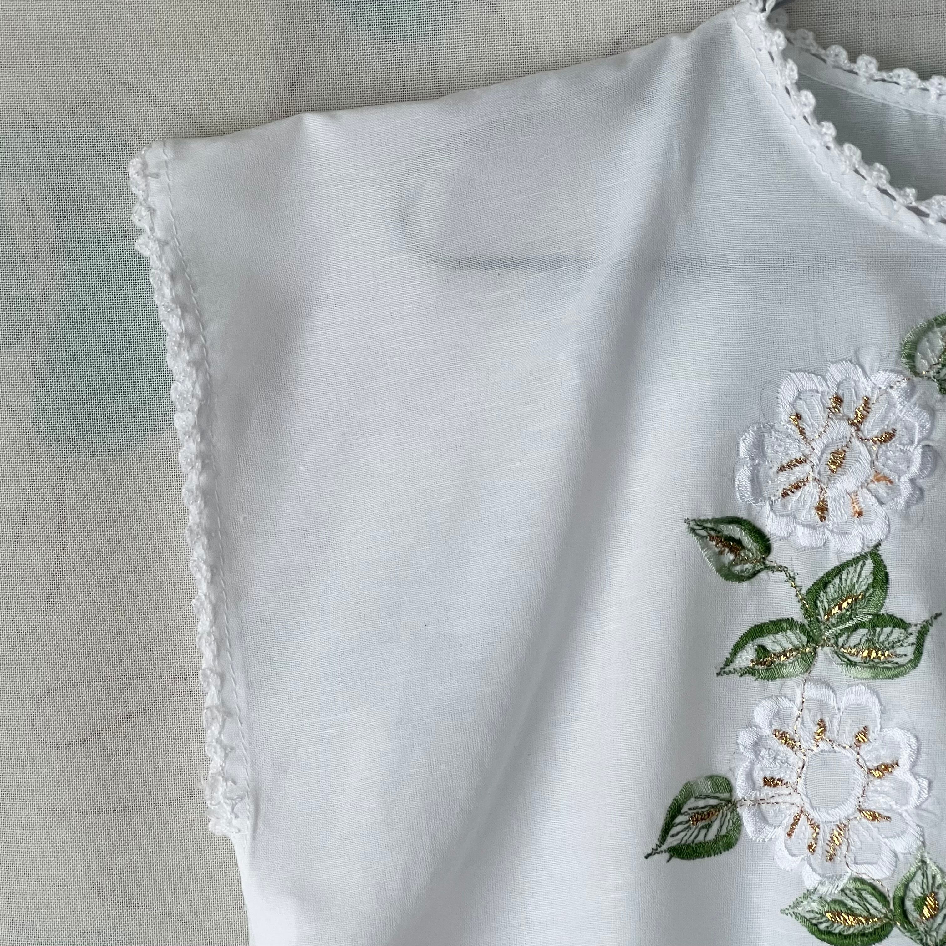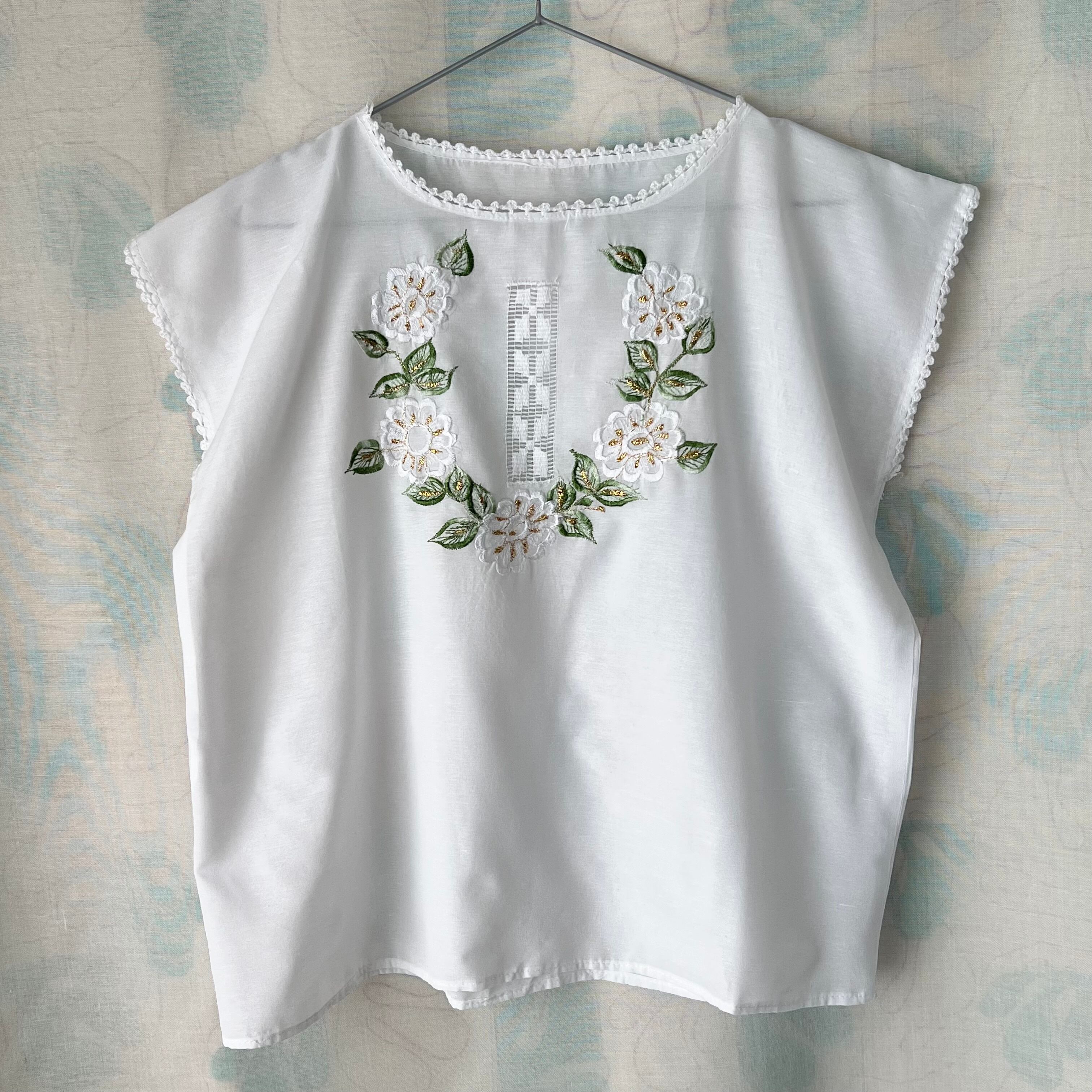 ヴィンテージ フラワー刺繍×レース使いフレンチスリーブブラウス。