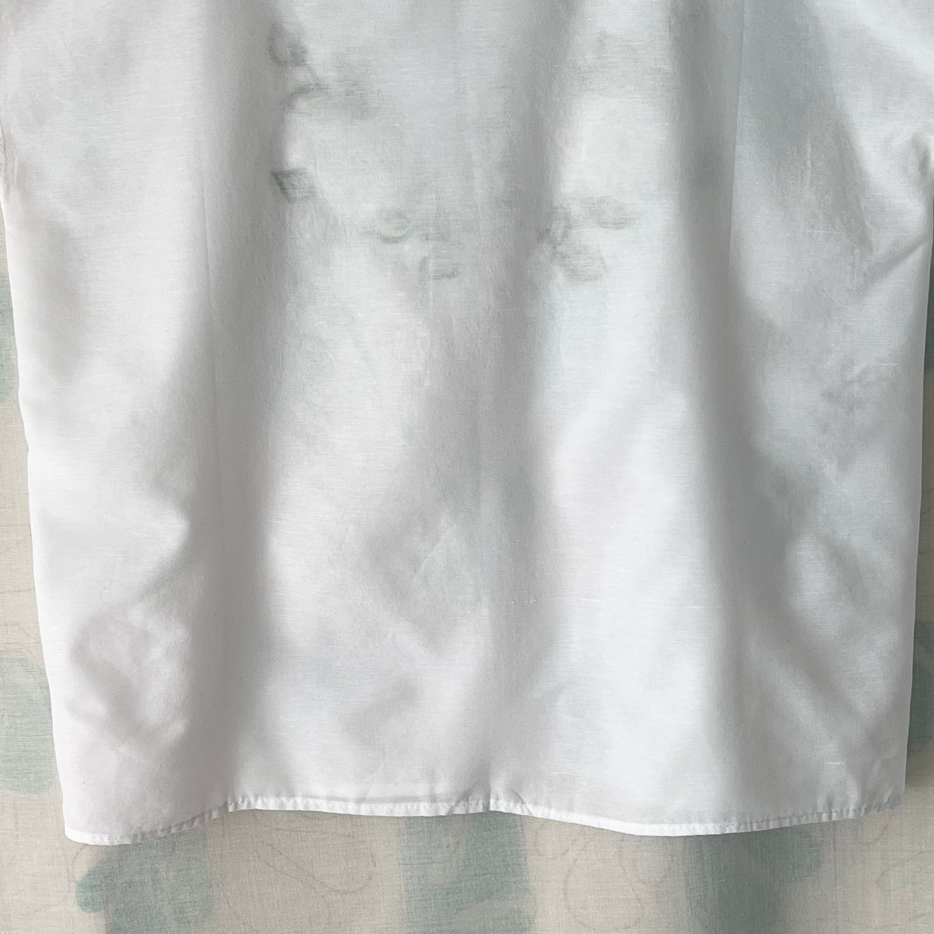 プルオーバーのフレンチスリーブ、ボックスシルエットなので風が抜けて着心地抜群の素敵なお品です。