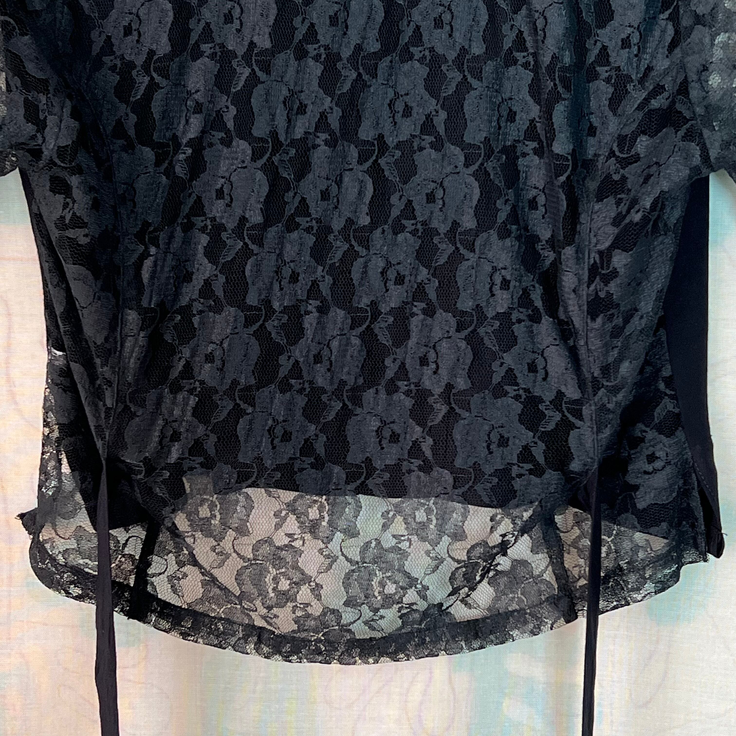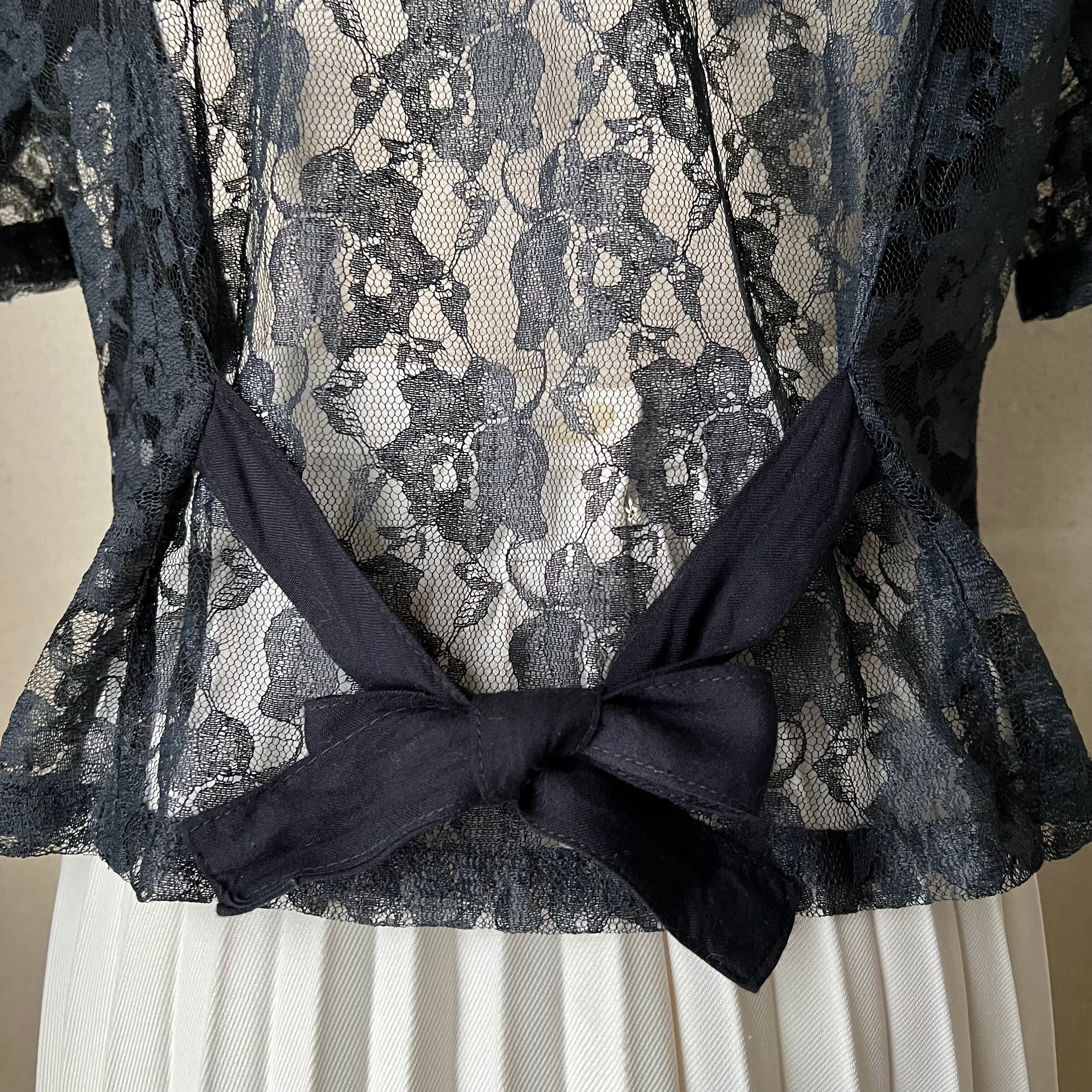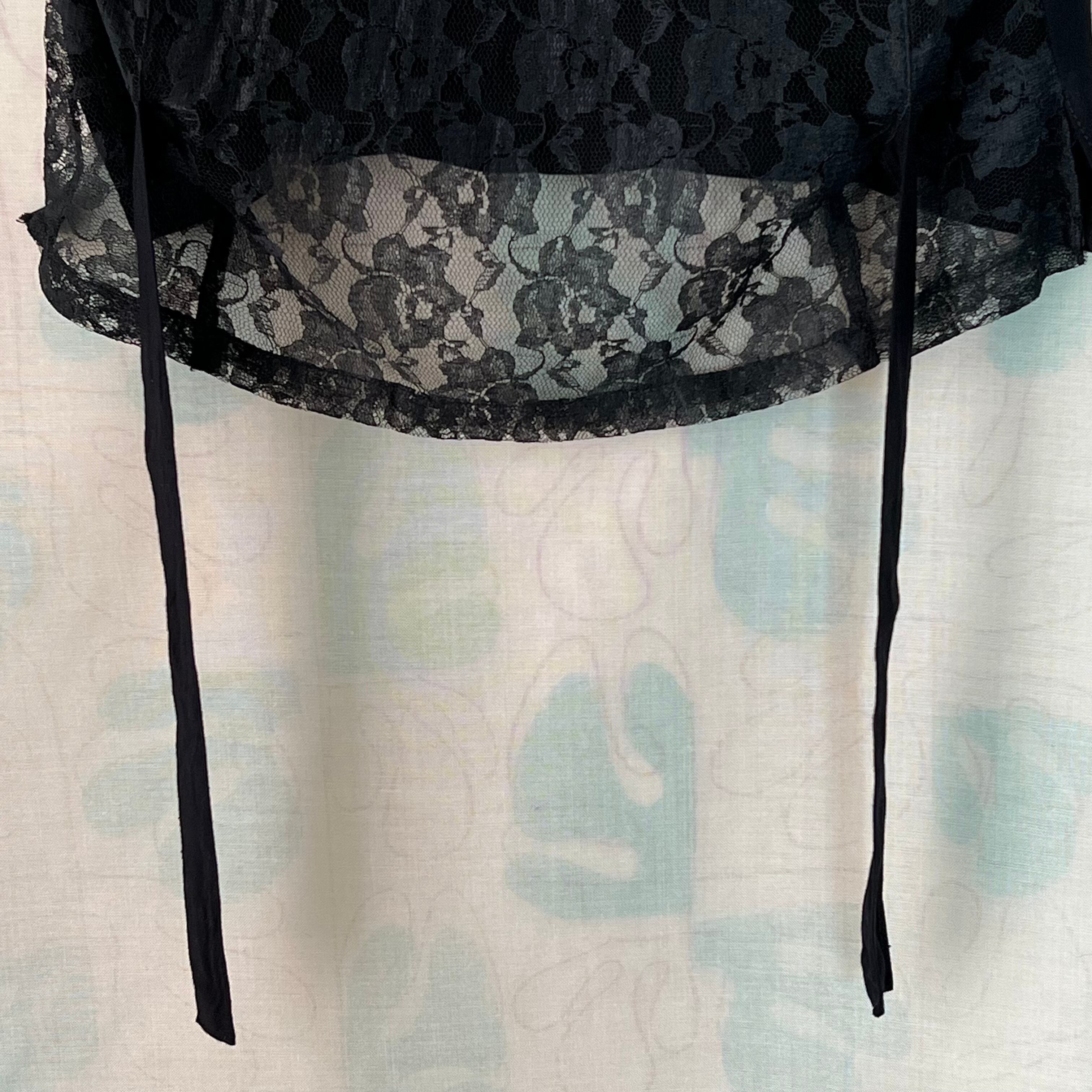 バックはヨーク切り替え下がレースで、フロントと同素材のリボンを結ぶ仕様です。
