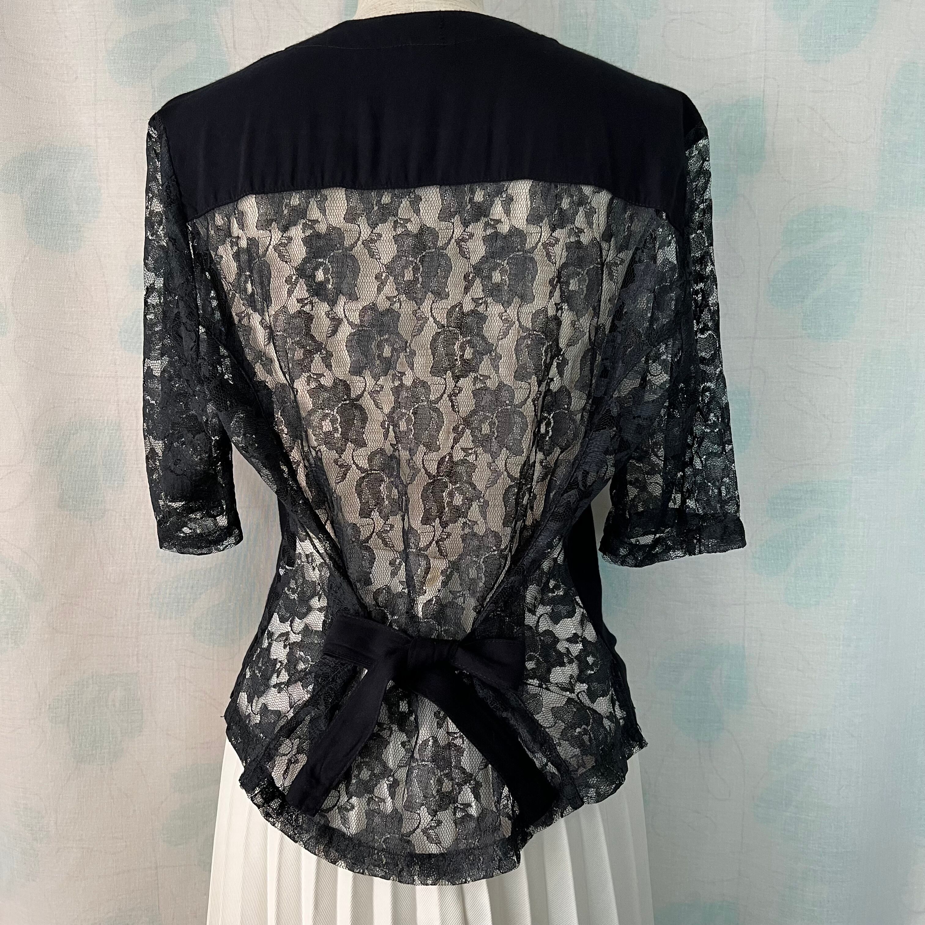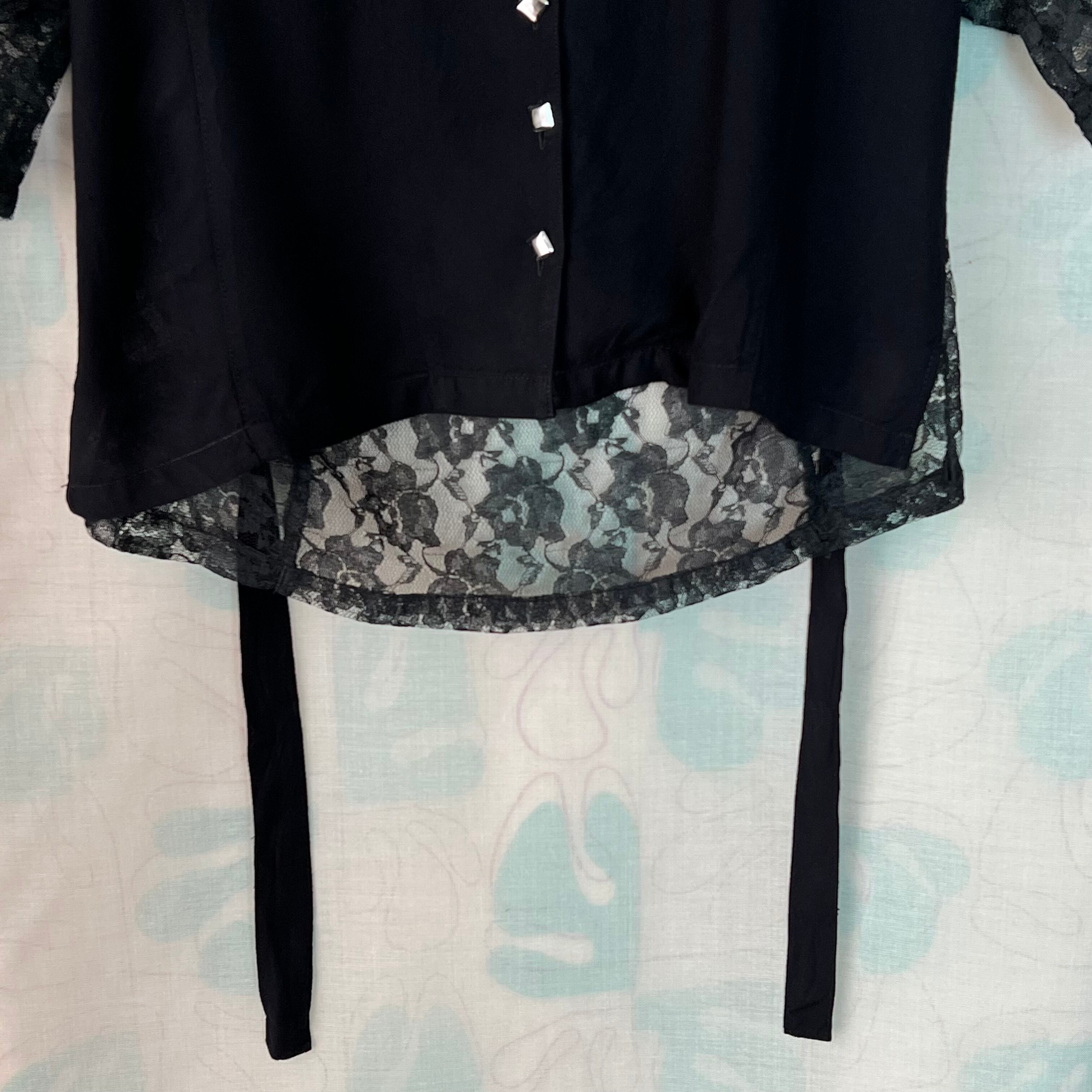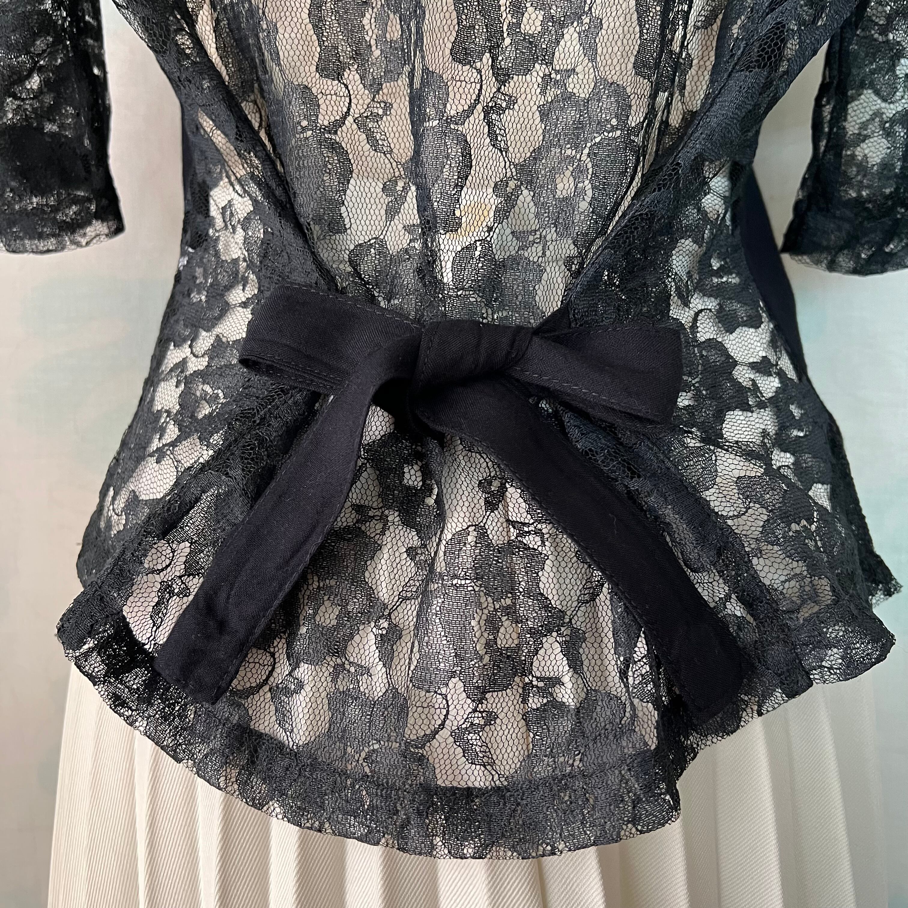バックはヨーク切り替え下がレースで、フロントと同素材のリボンを結ぶ仕様です。