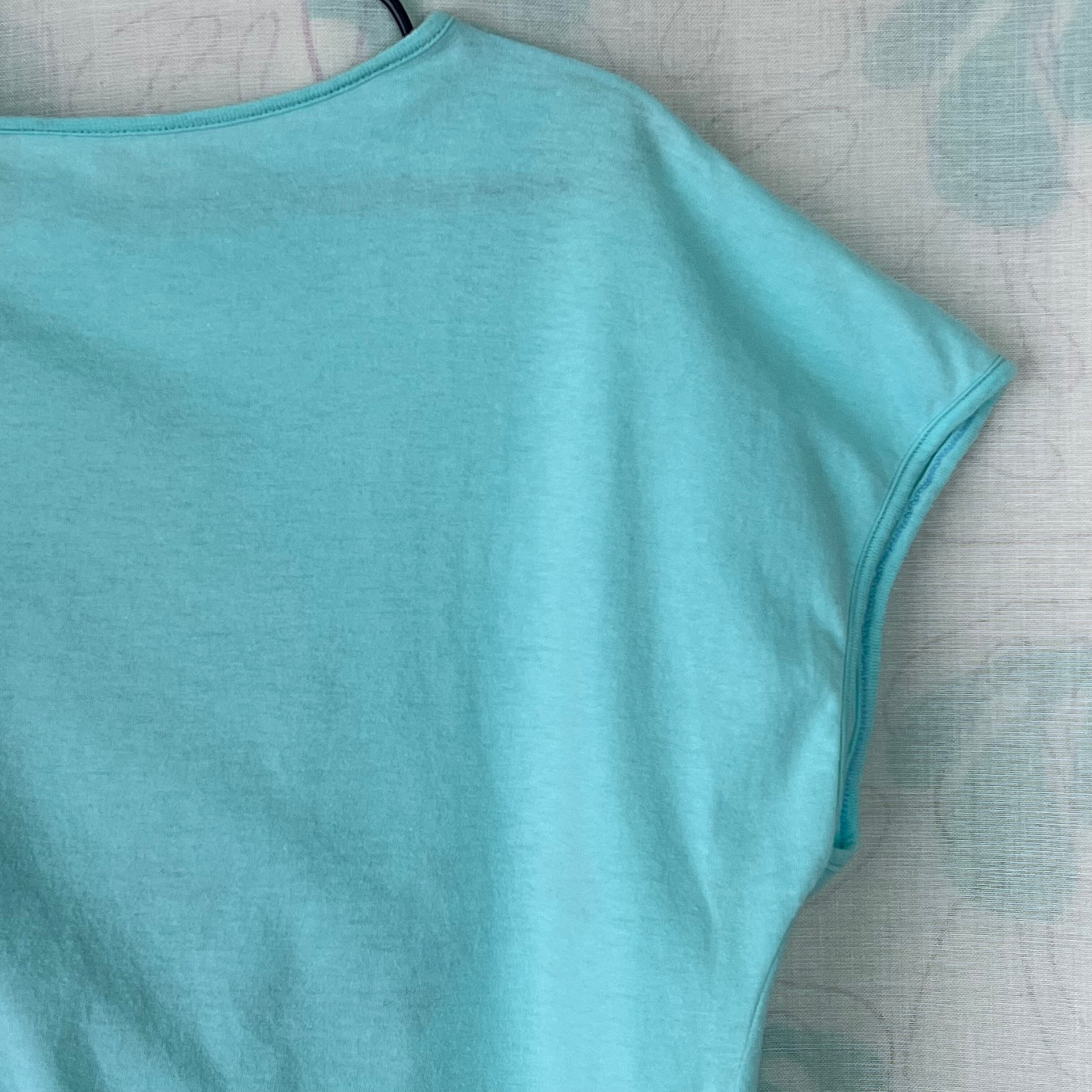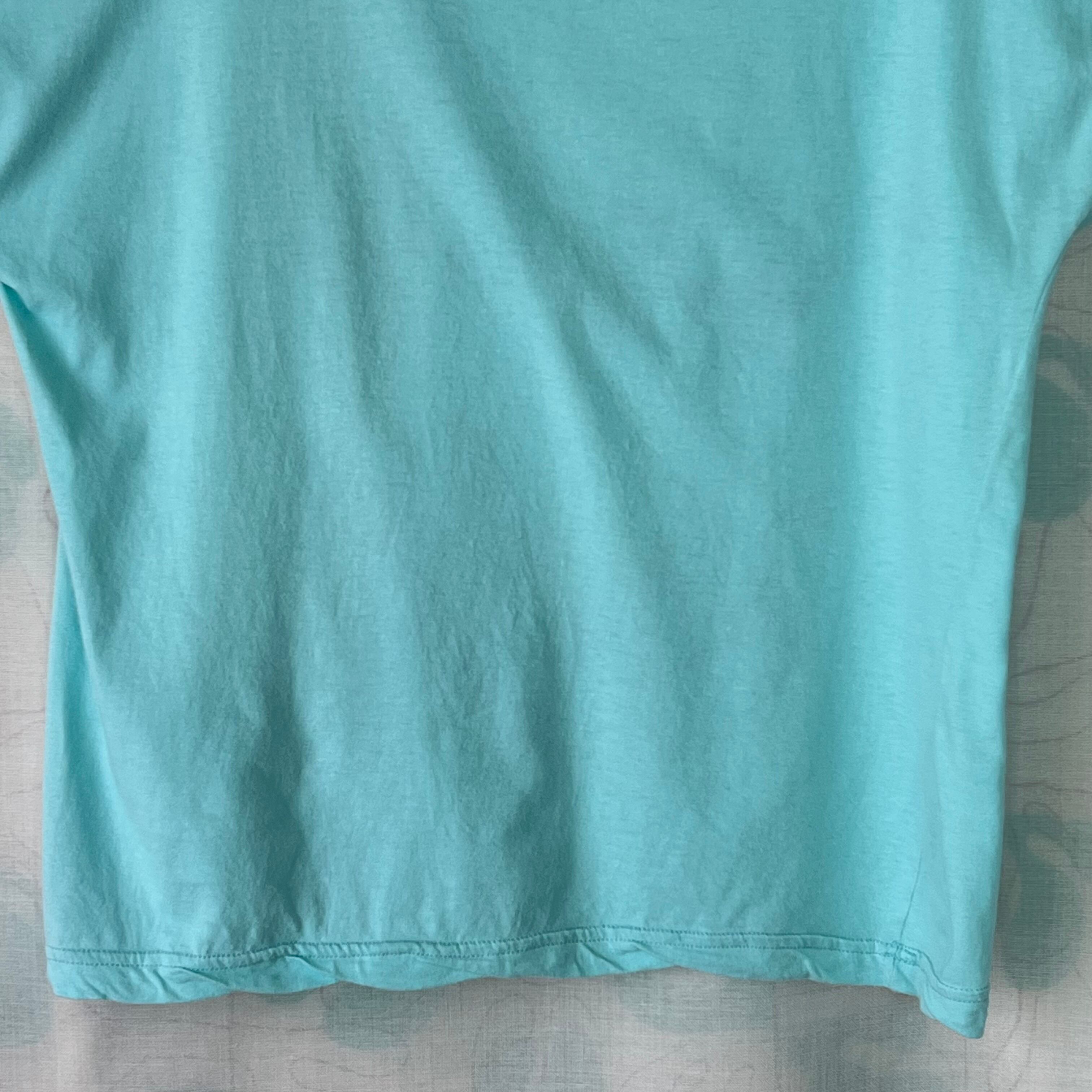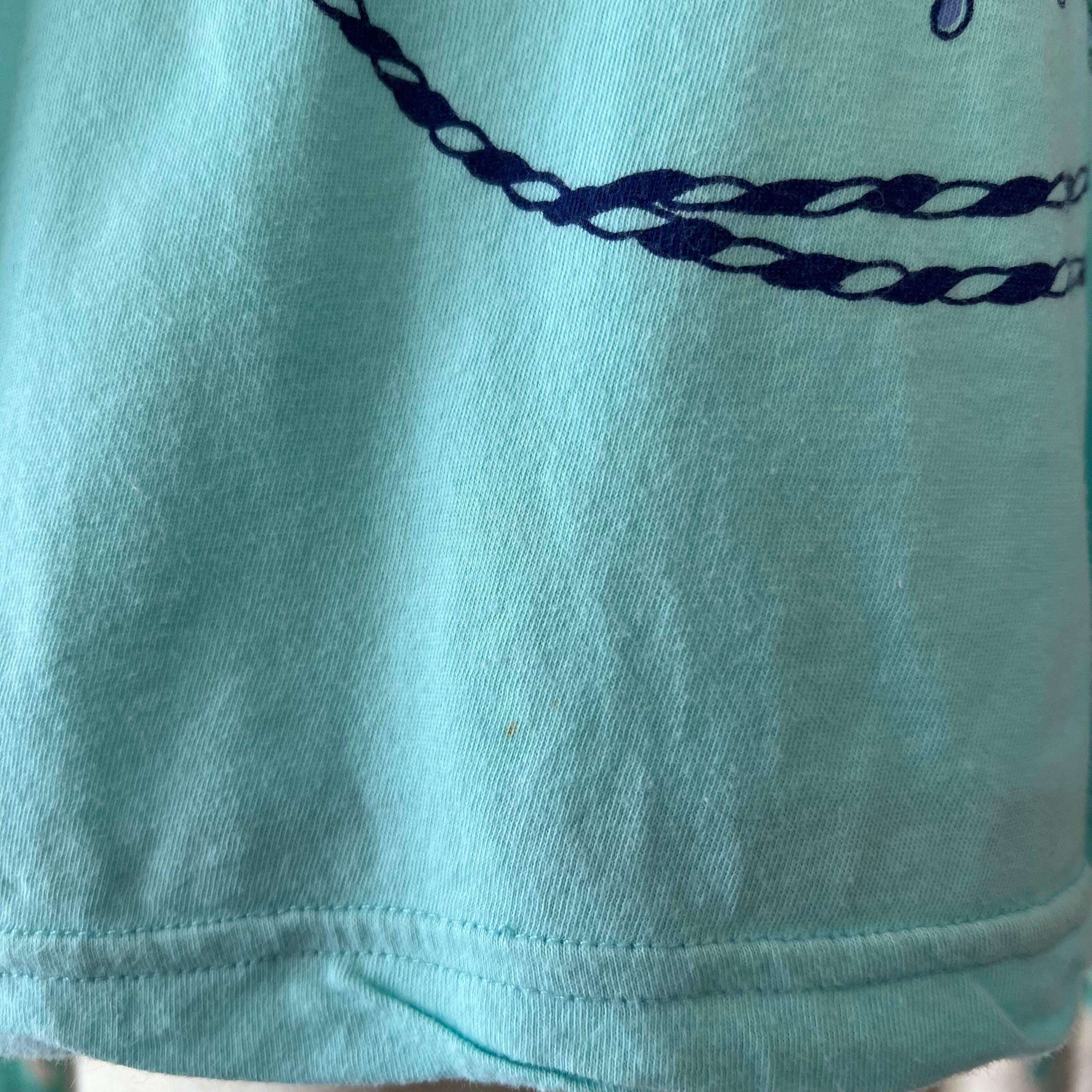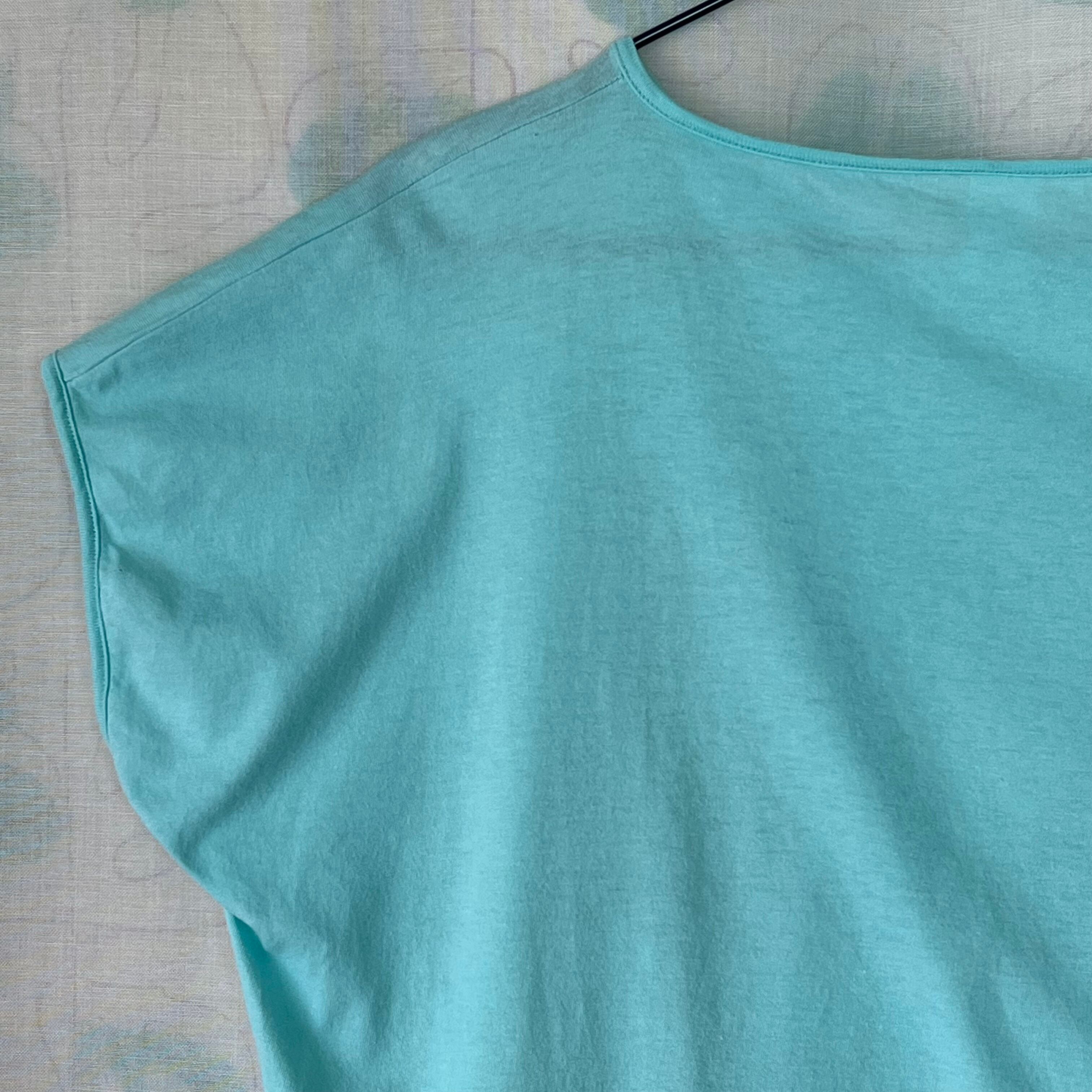 80's 水色×スパンコール×マリンプリント フレンチスリーブトップス。