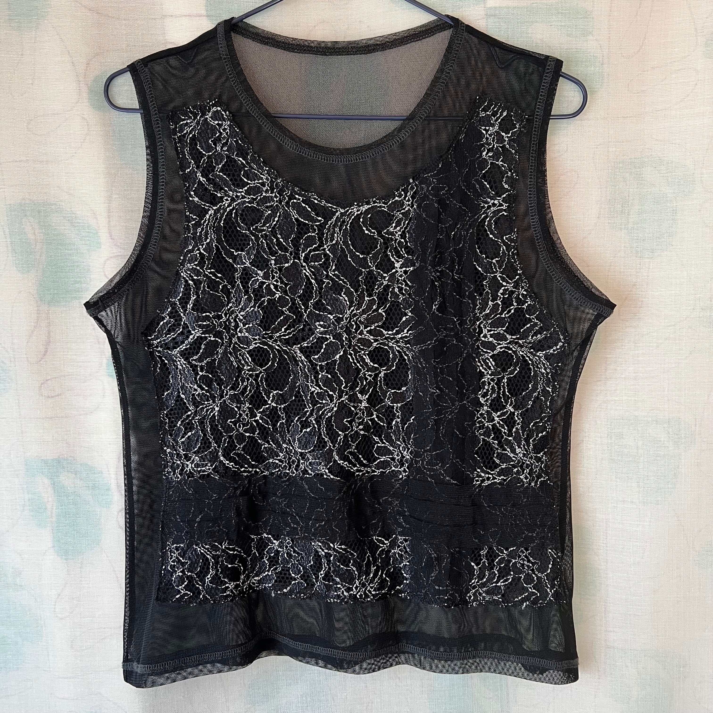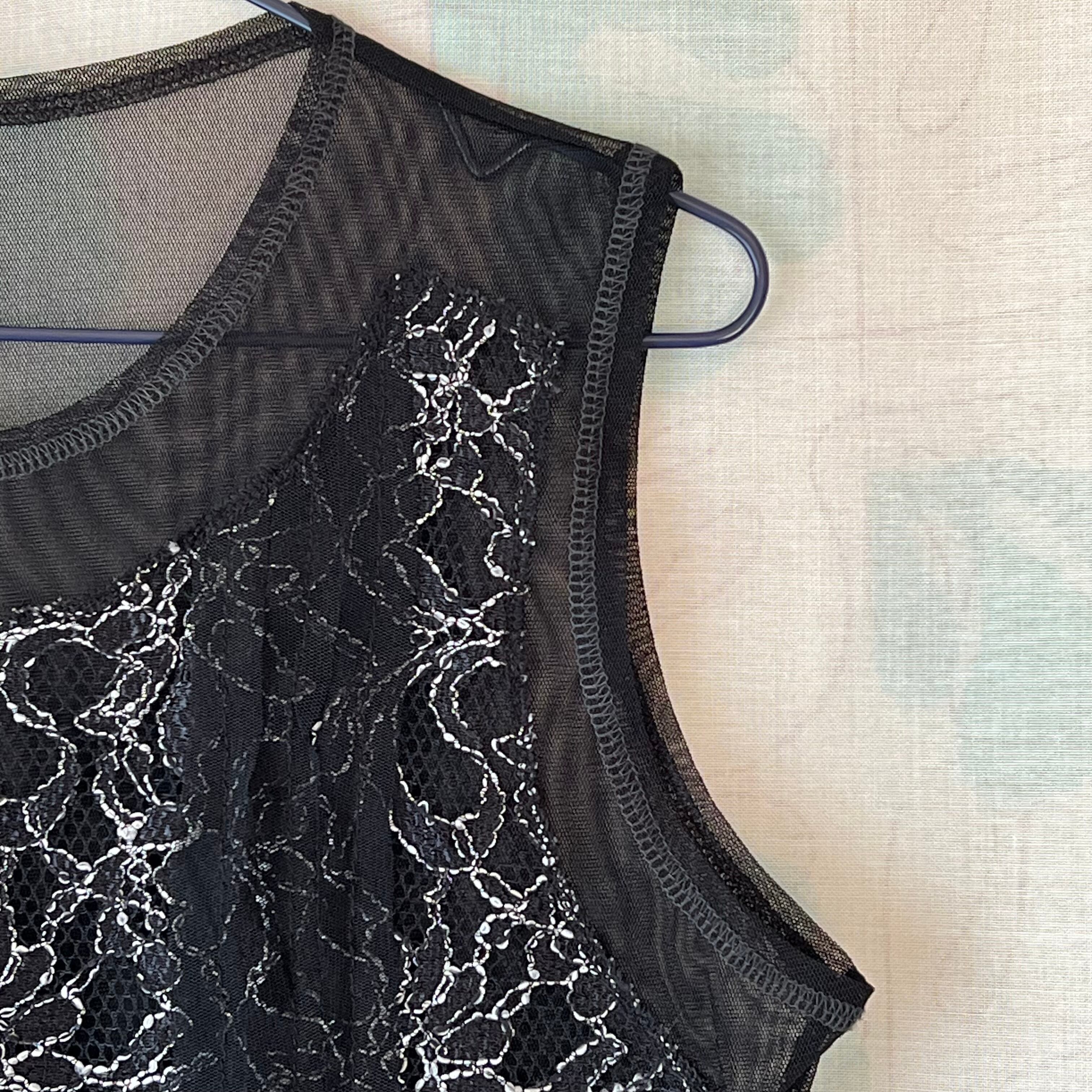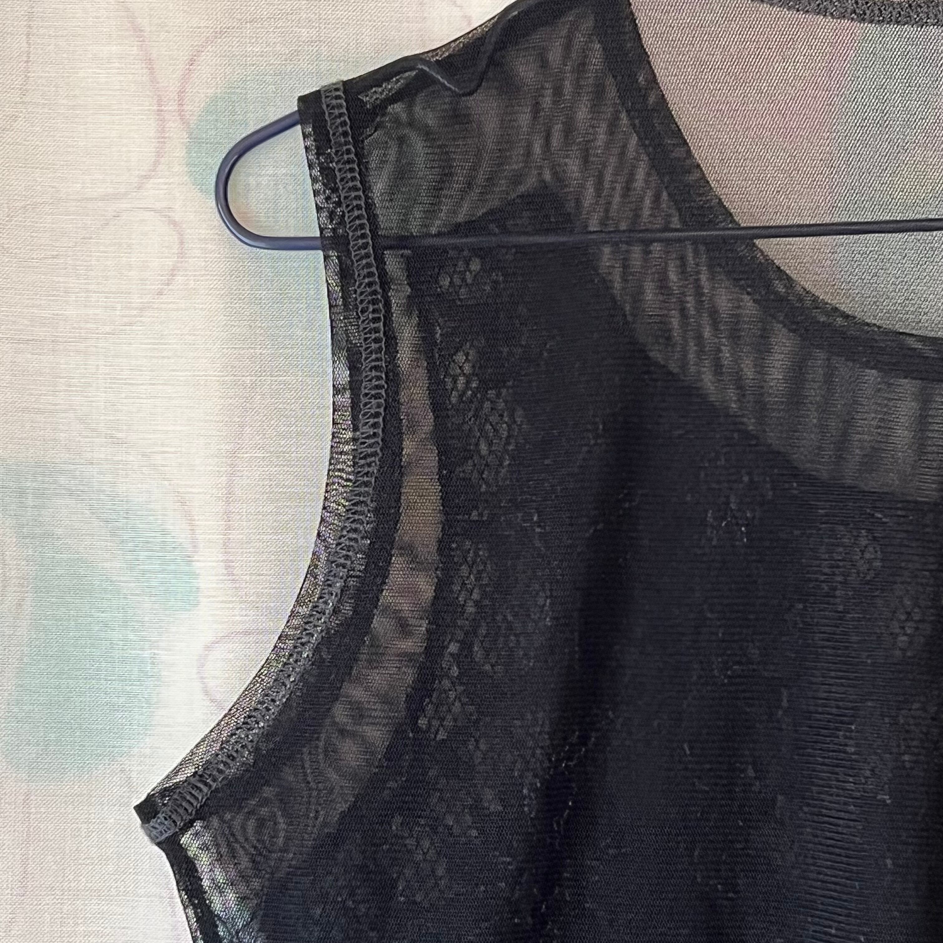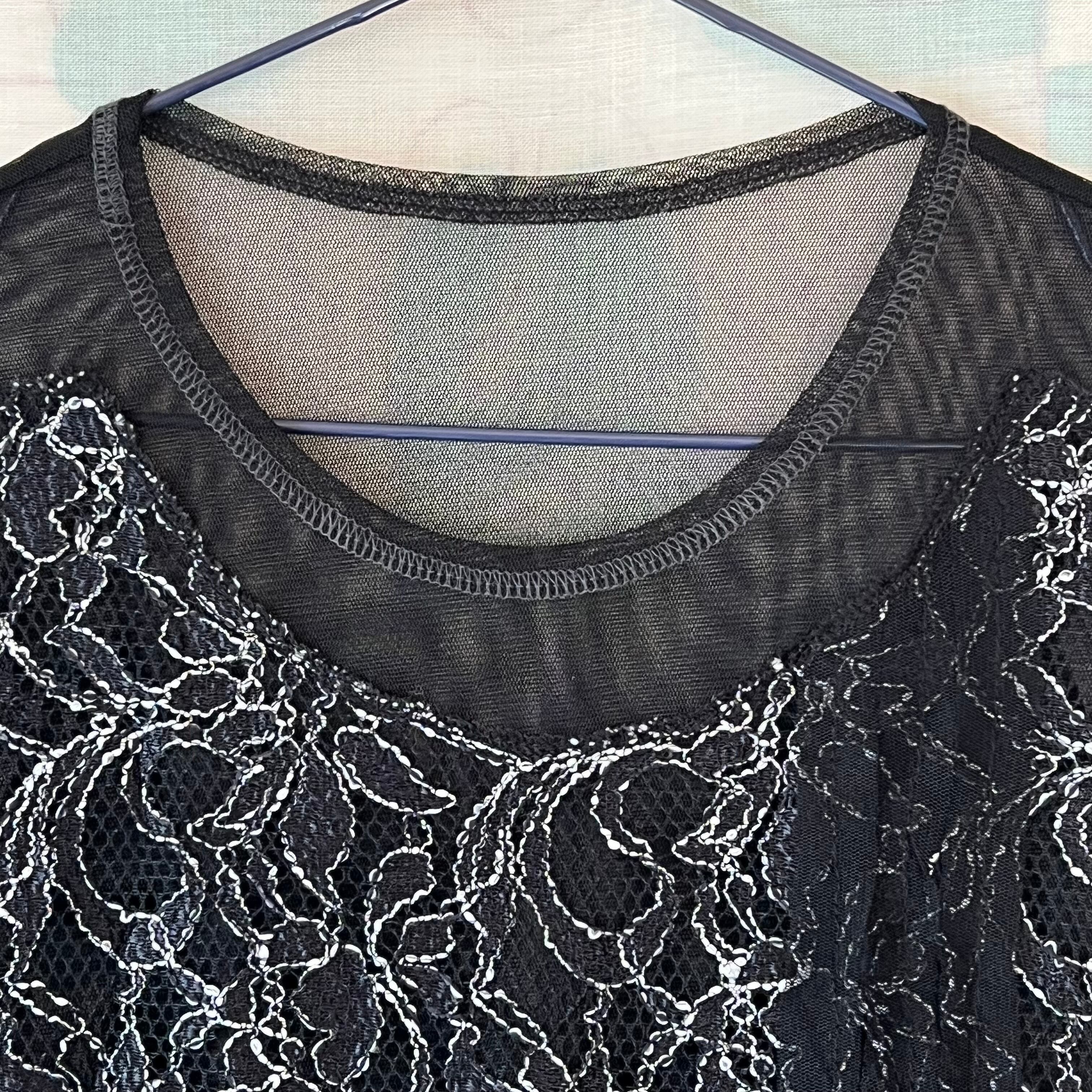 チュールボディにブラック&ホワイトレースが重ねられ、更にチュールリボンがクロスにあしらわれた凝ったデザインのフロント。