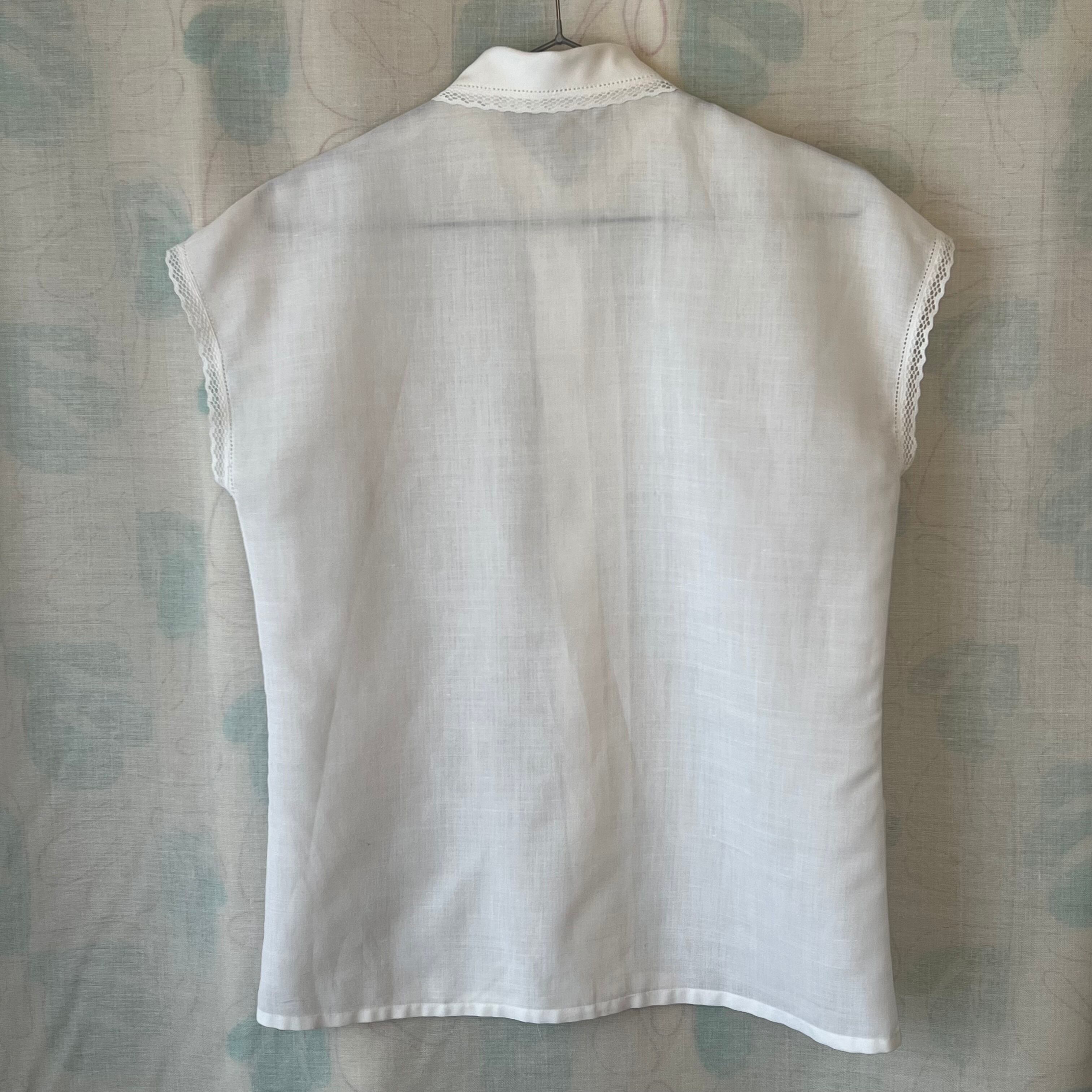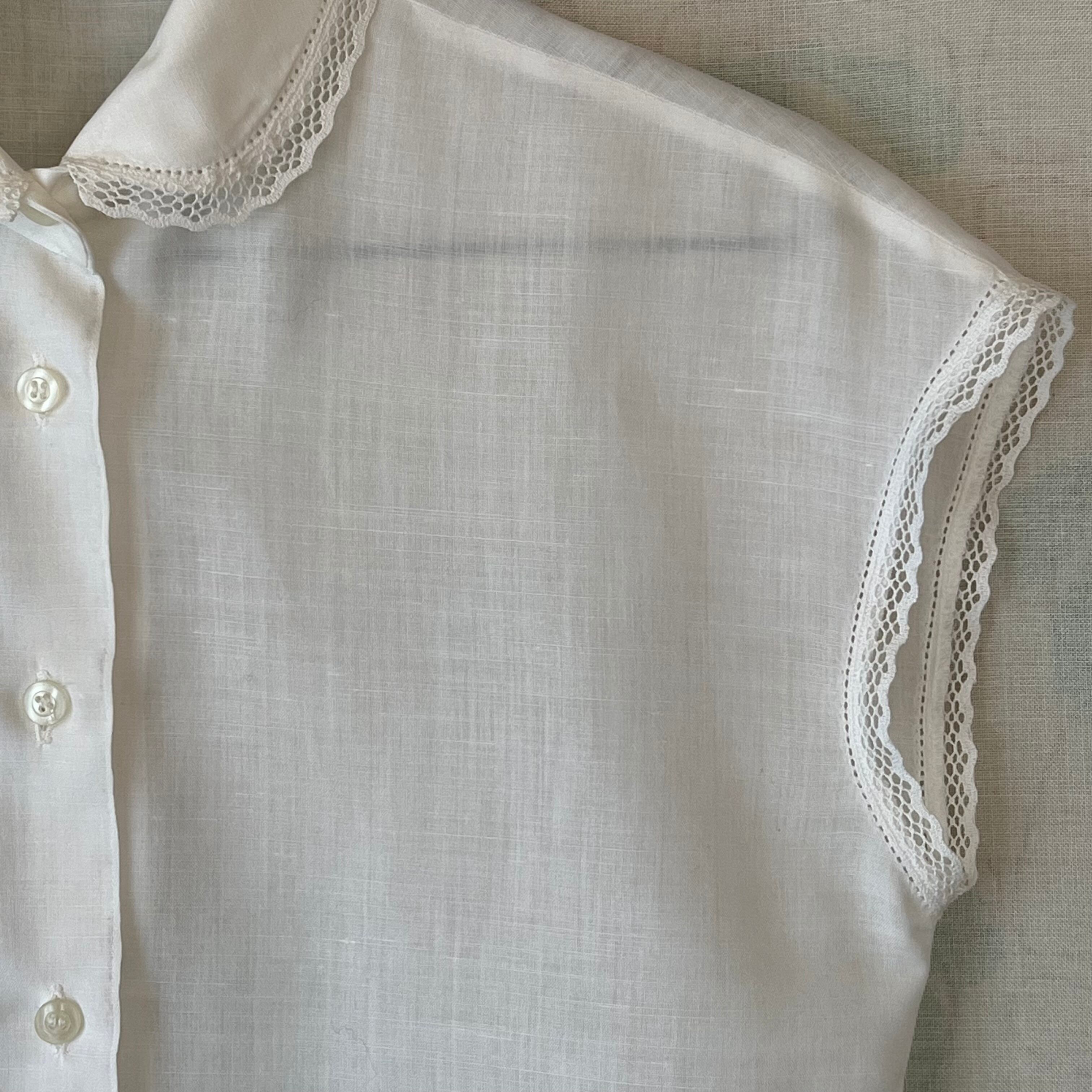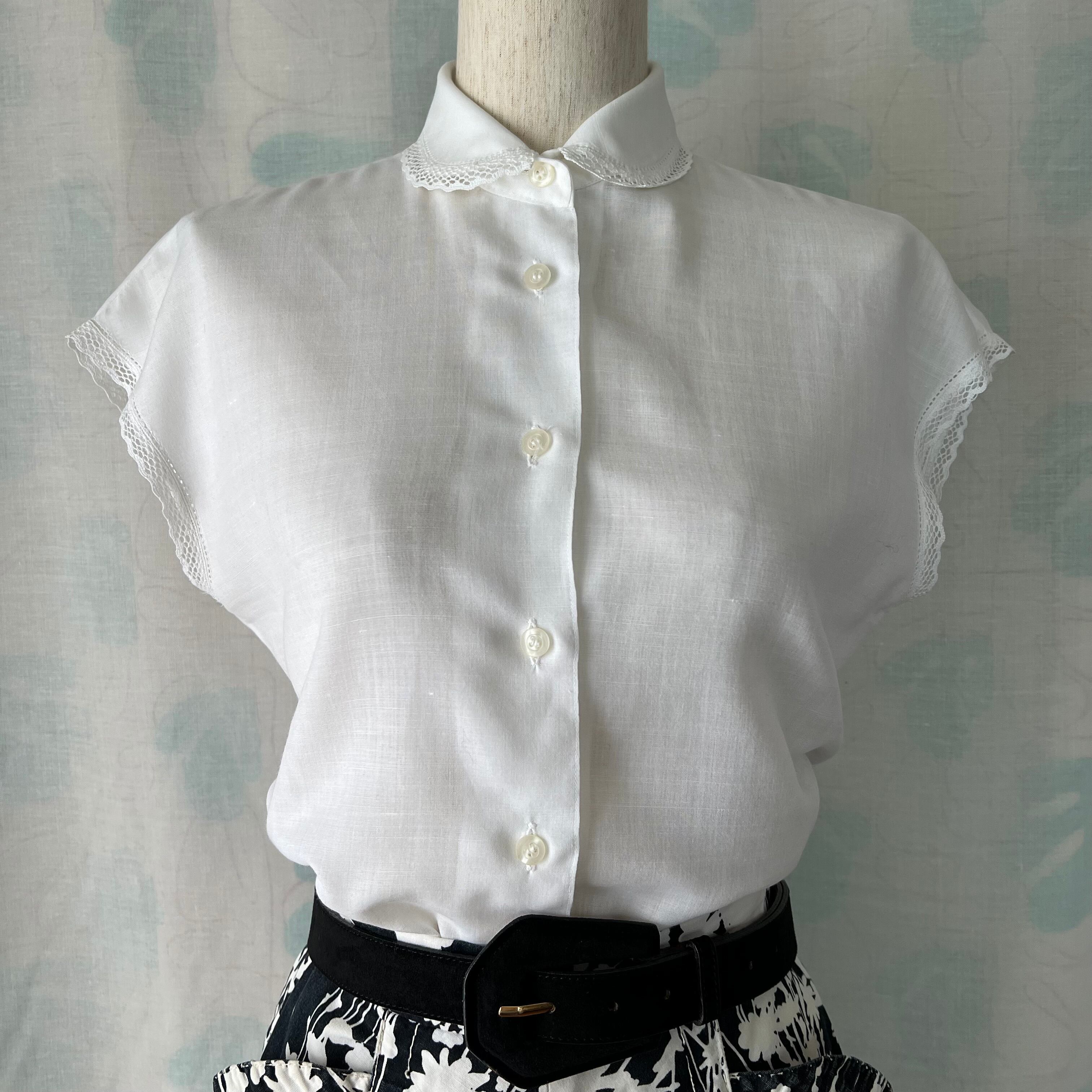 ヴィンテージ ホワイトフレンチスリーブブラウス。