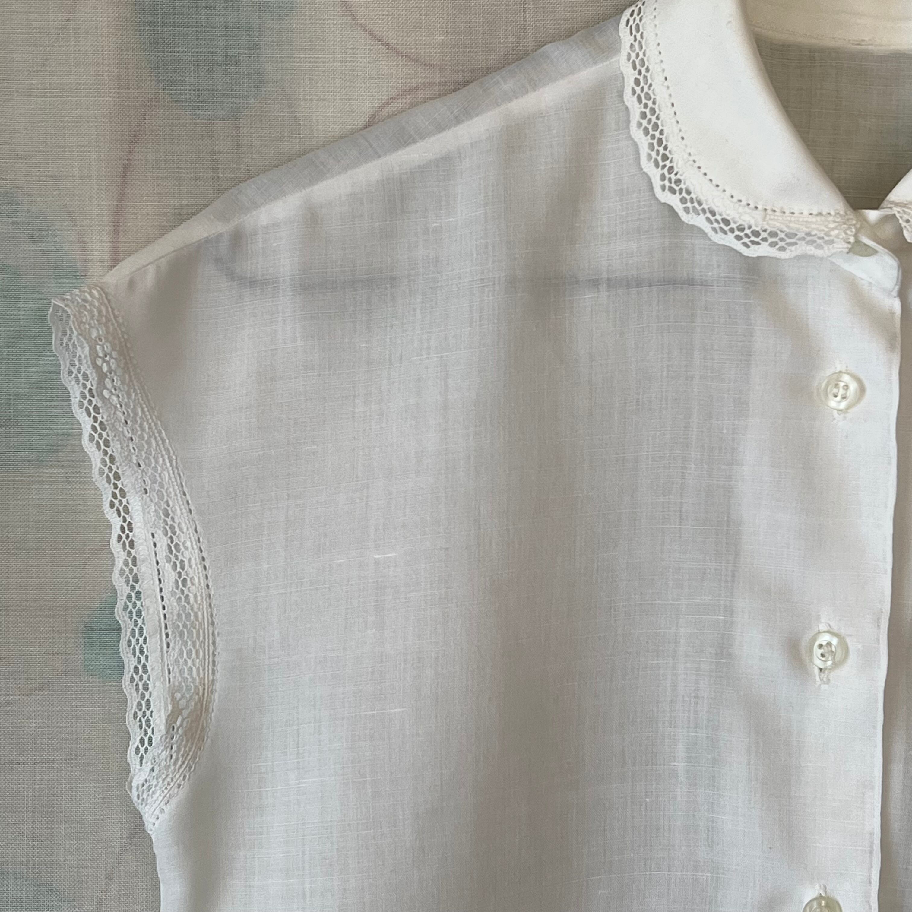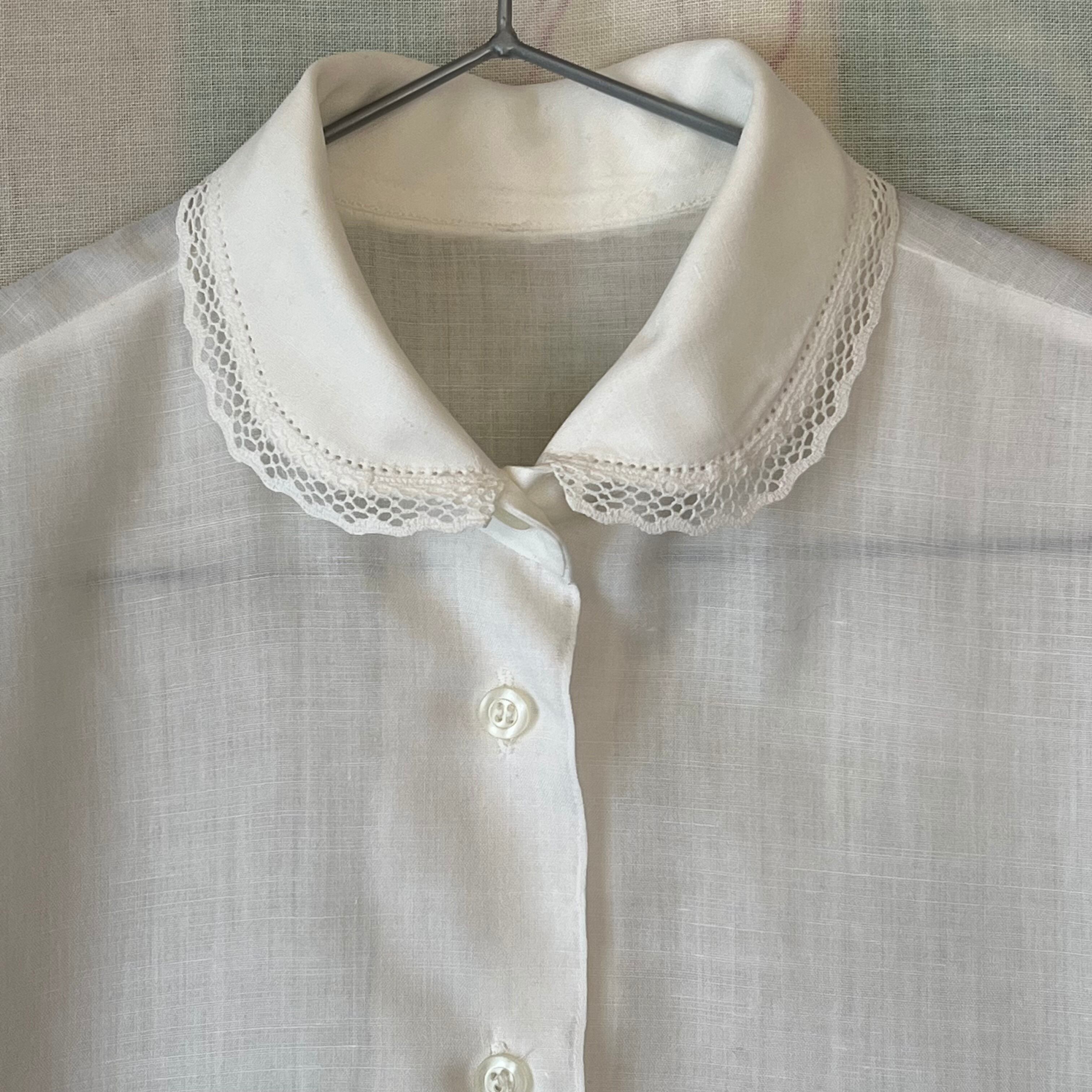 Vintage round collar french sleeve white blouse with lace
