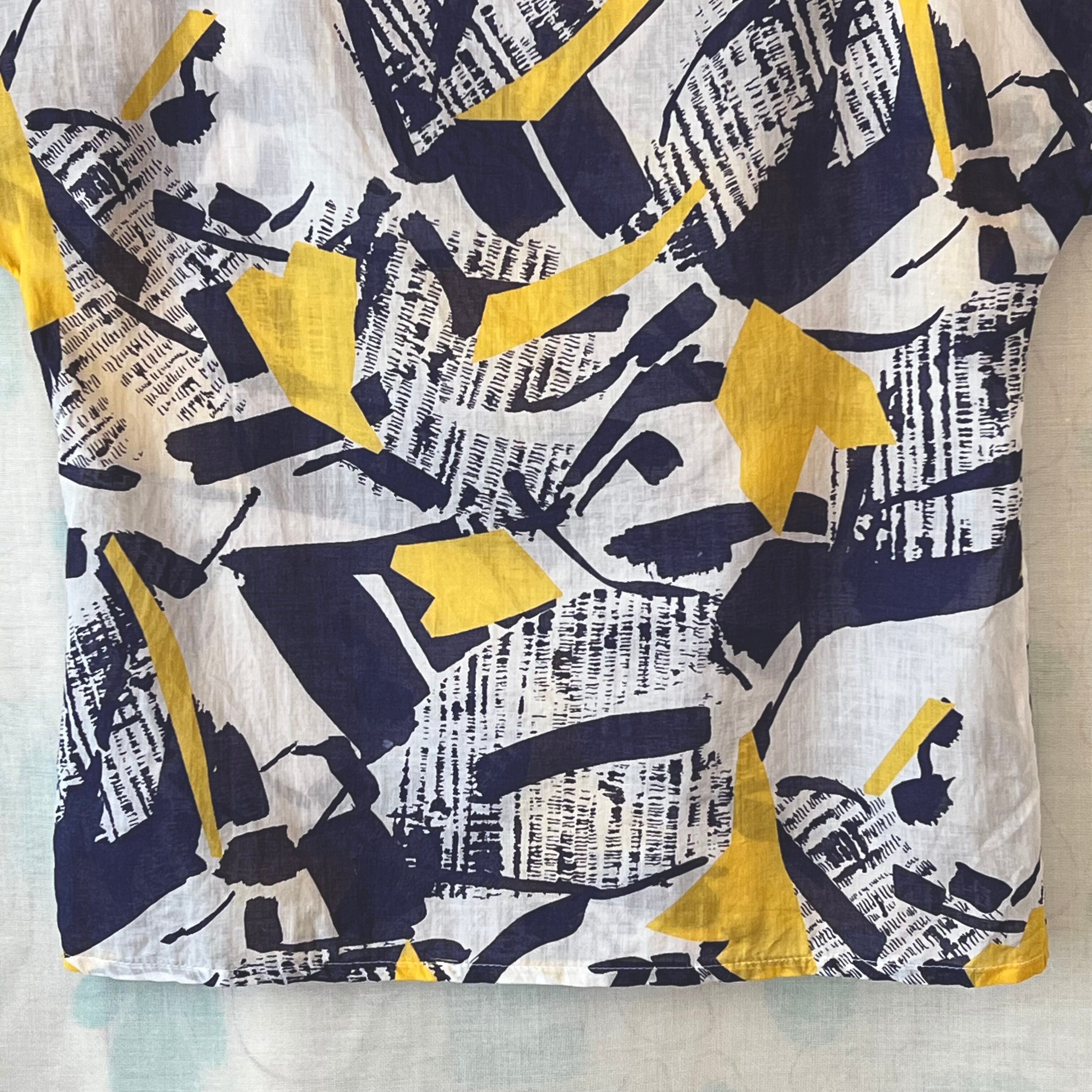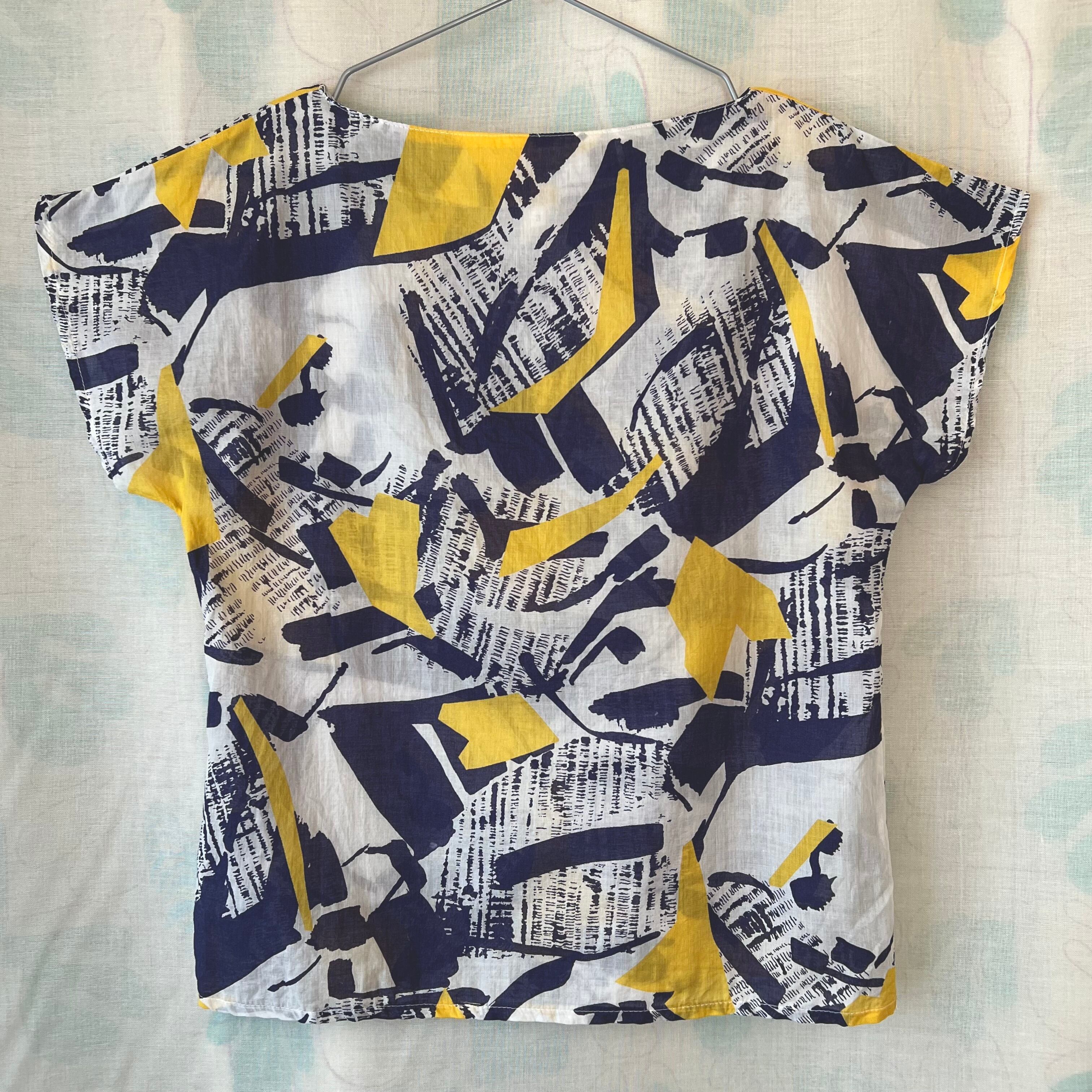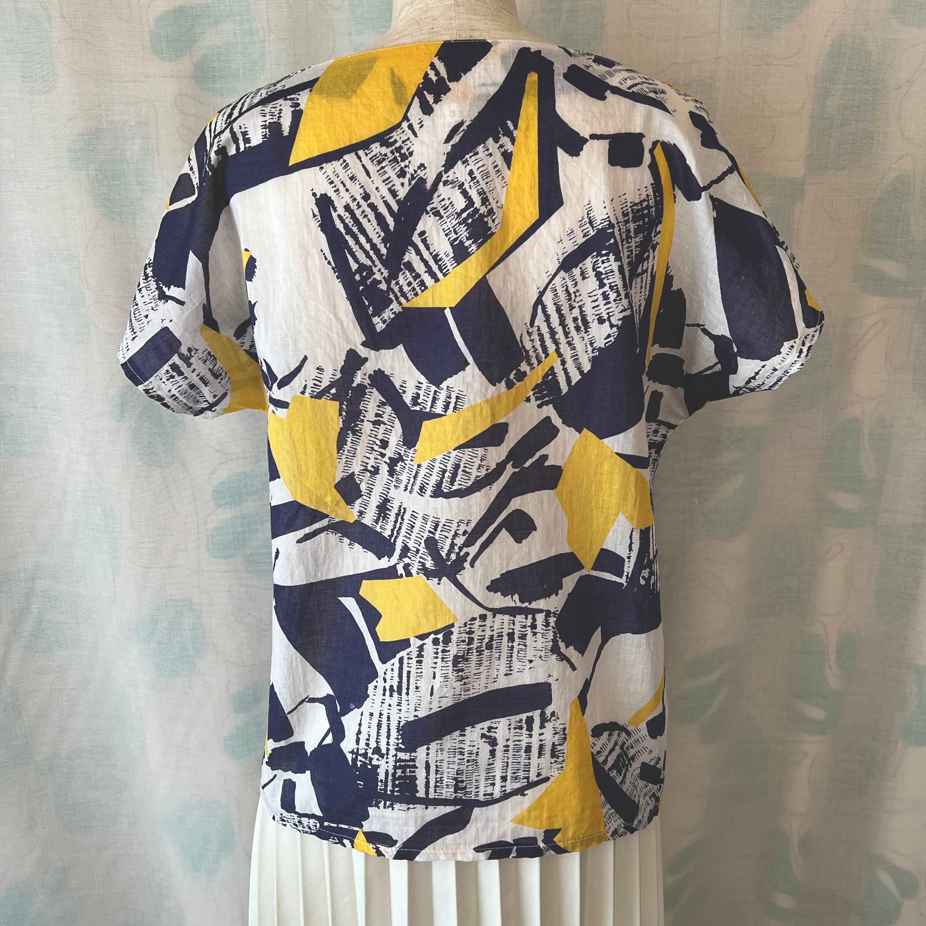 80's イエロー×ネイビー モダン柄プルオーバー。