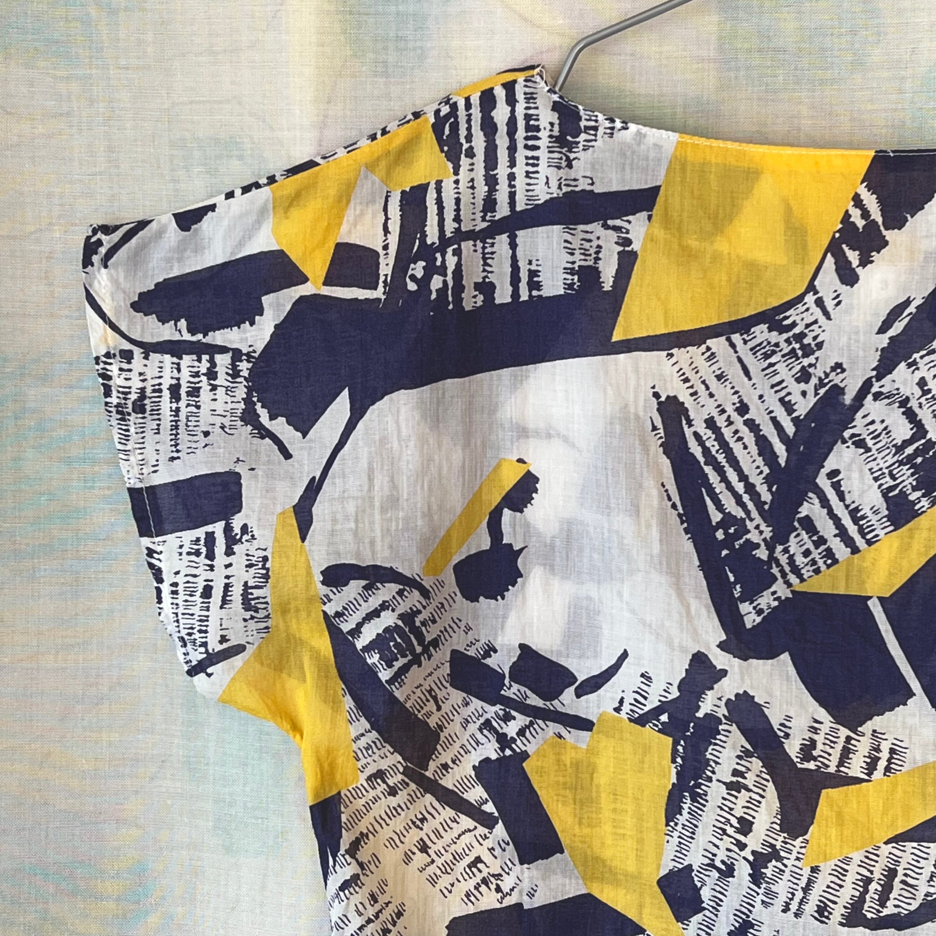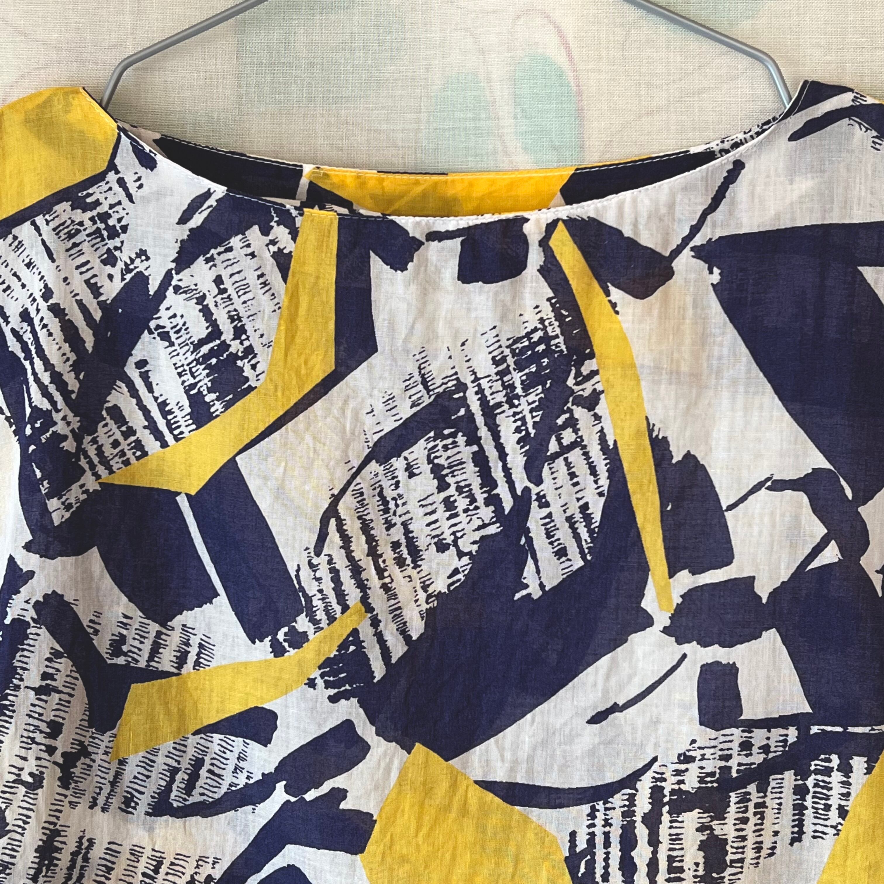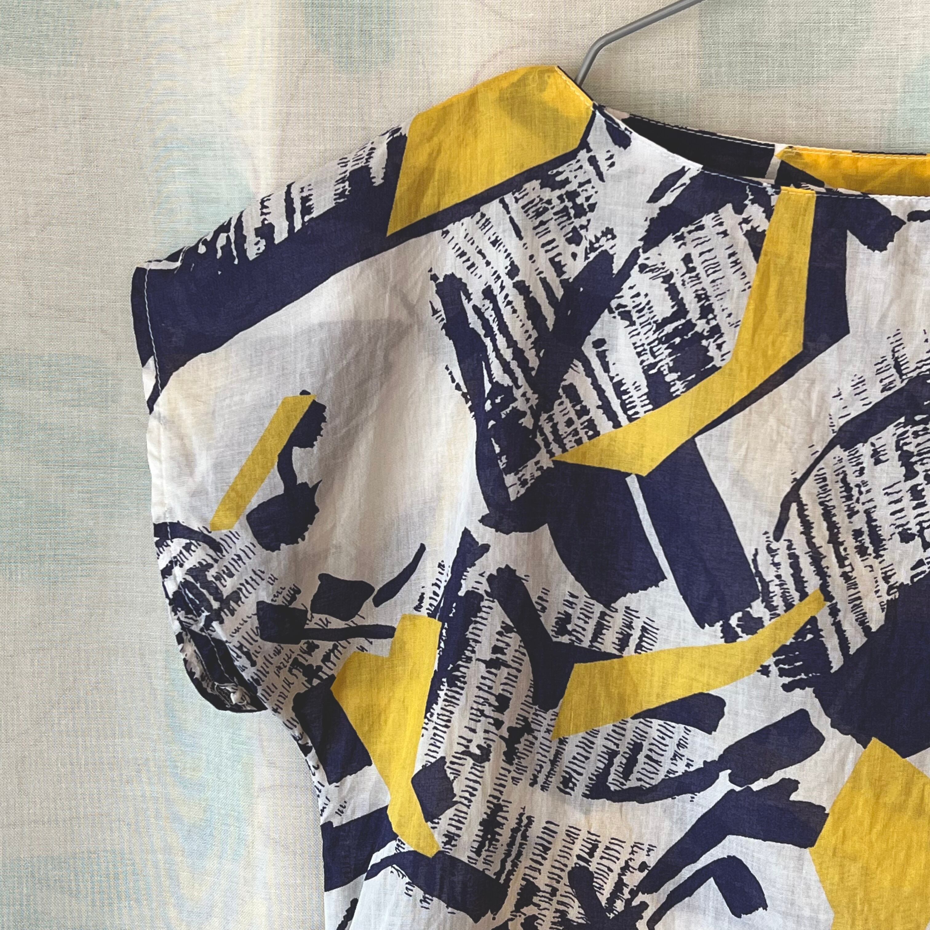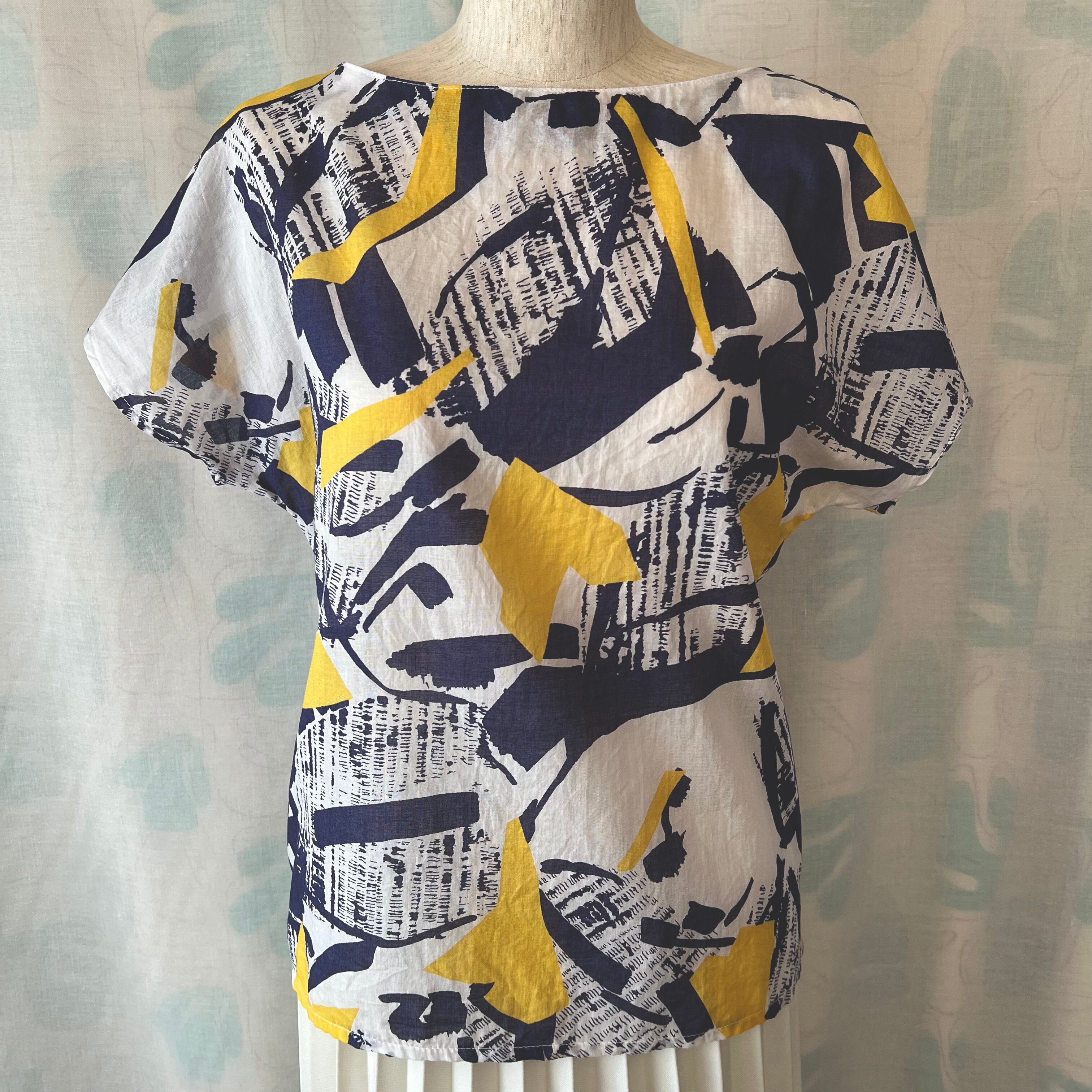 少し透け感のあるコットン素材にインパクトのあるモダン柄プリント。