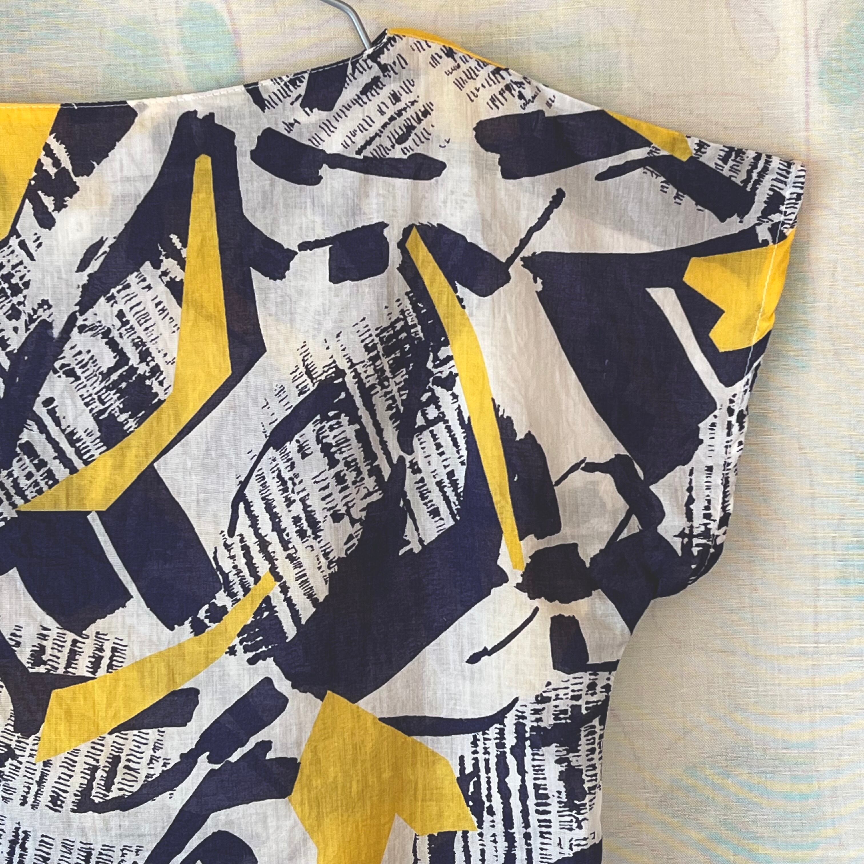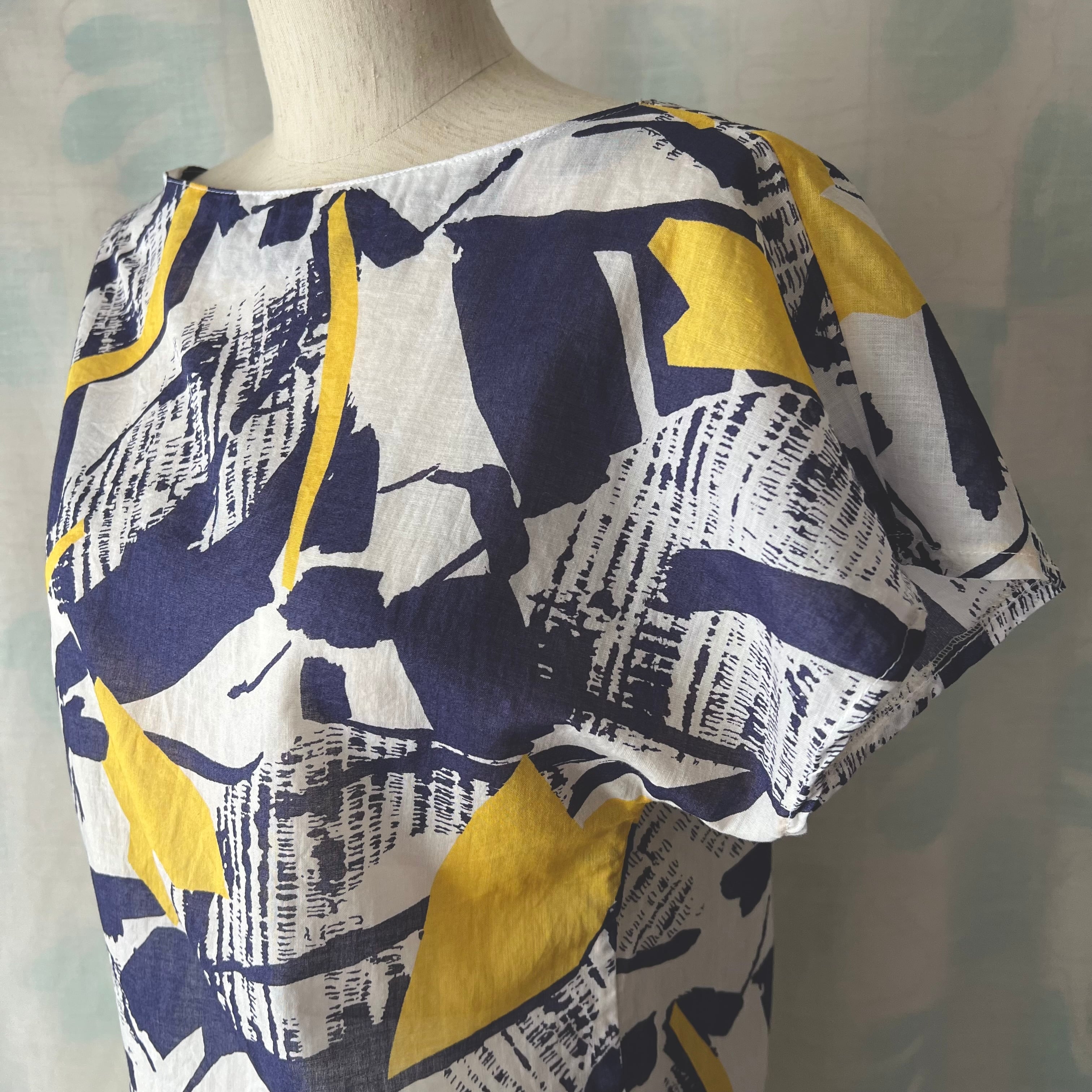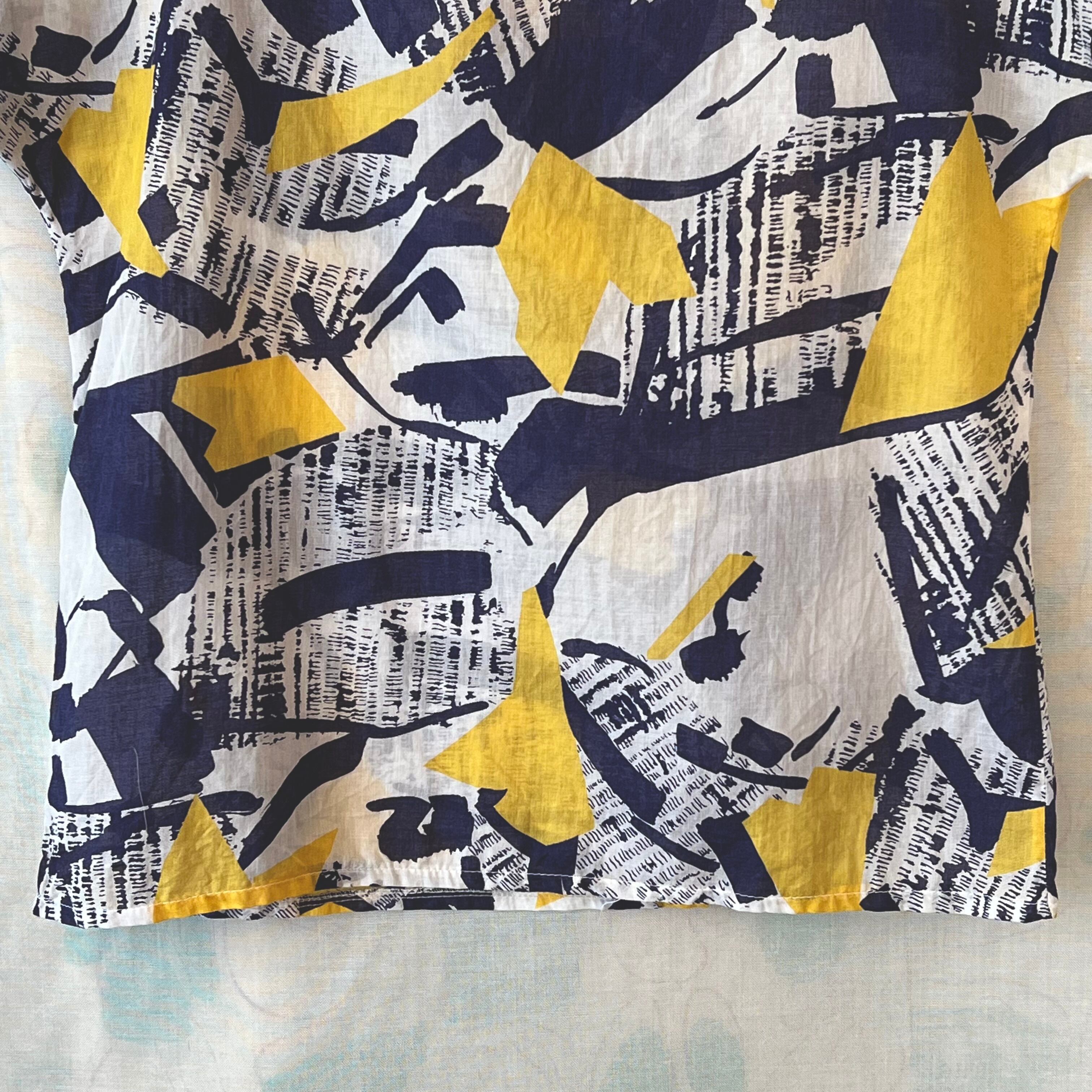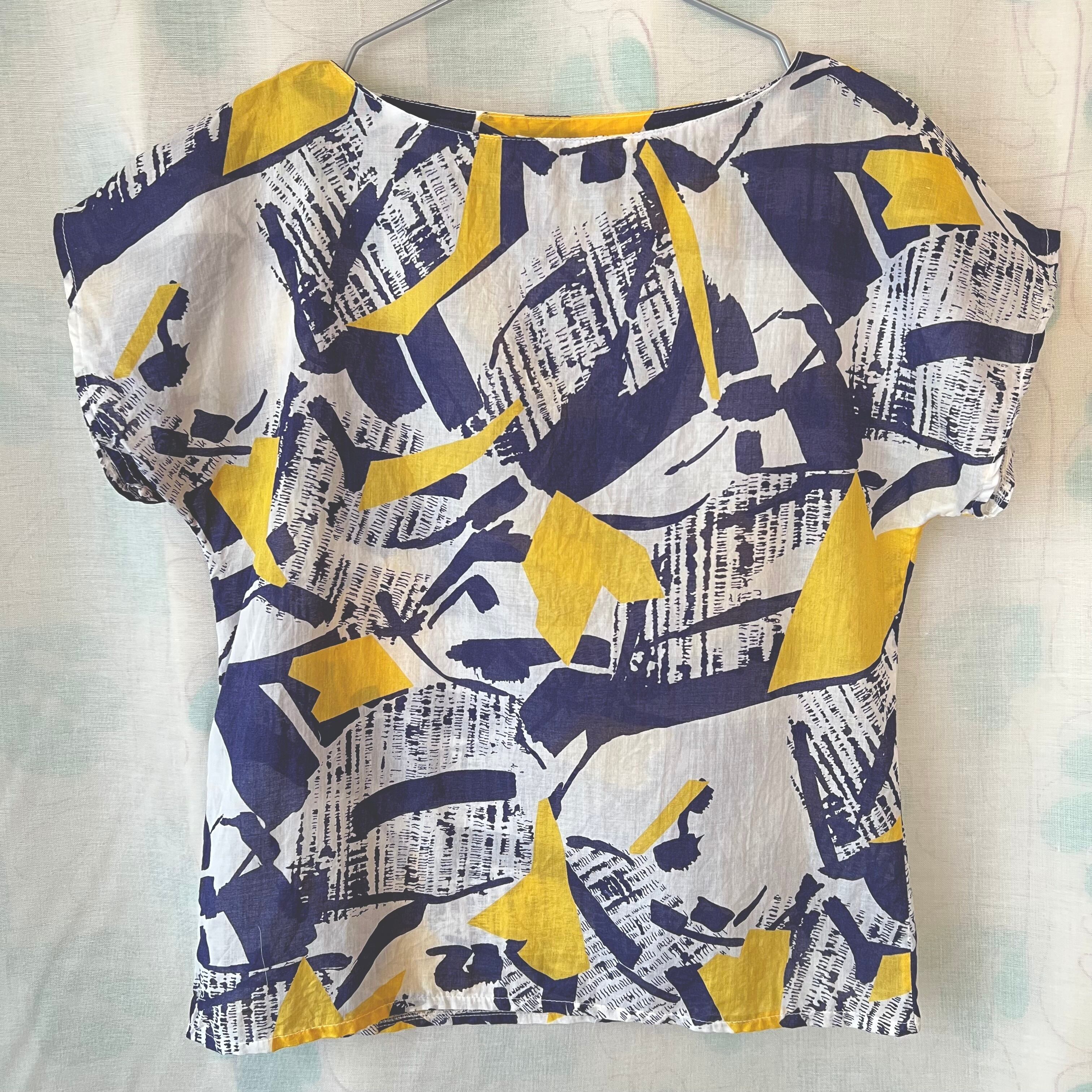 少し透け感のあるコットン素材にインパクトのあるモダン柄プリント。