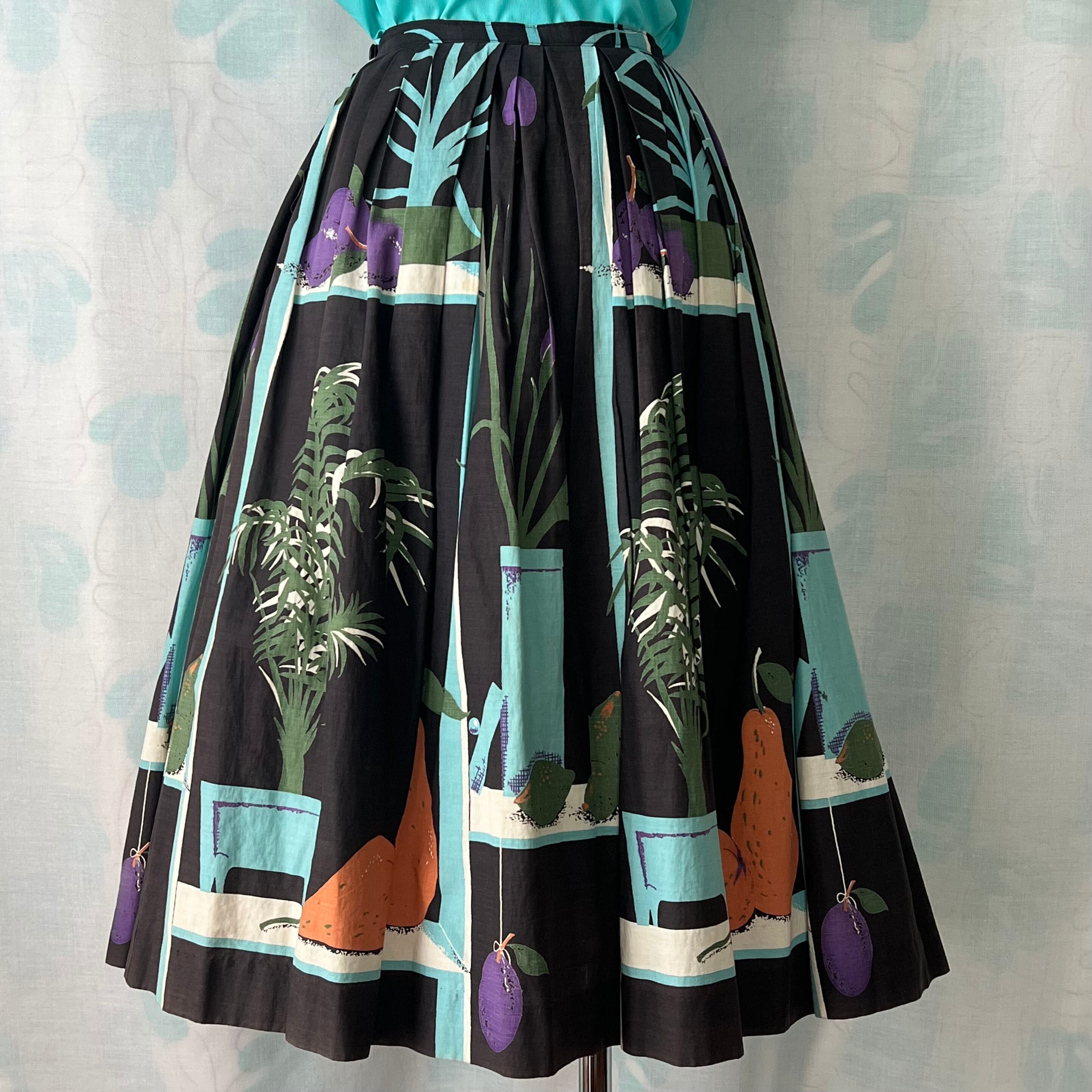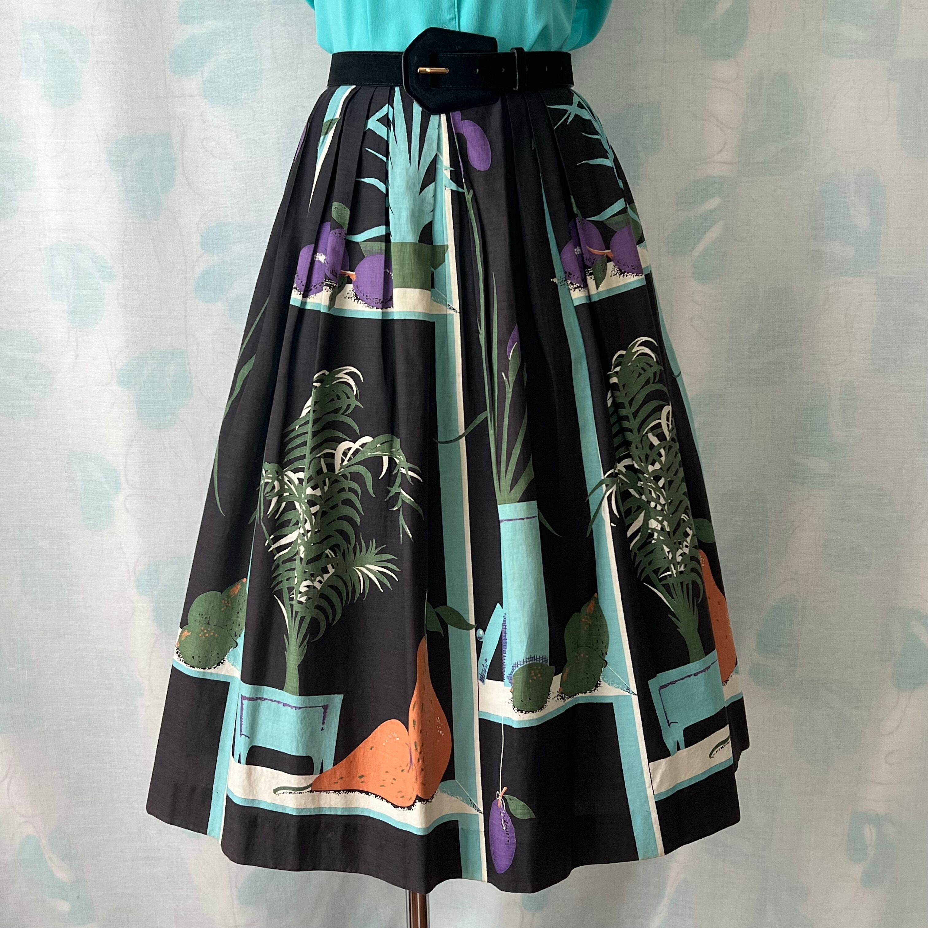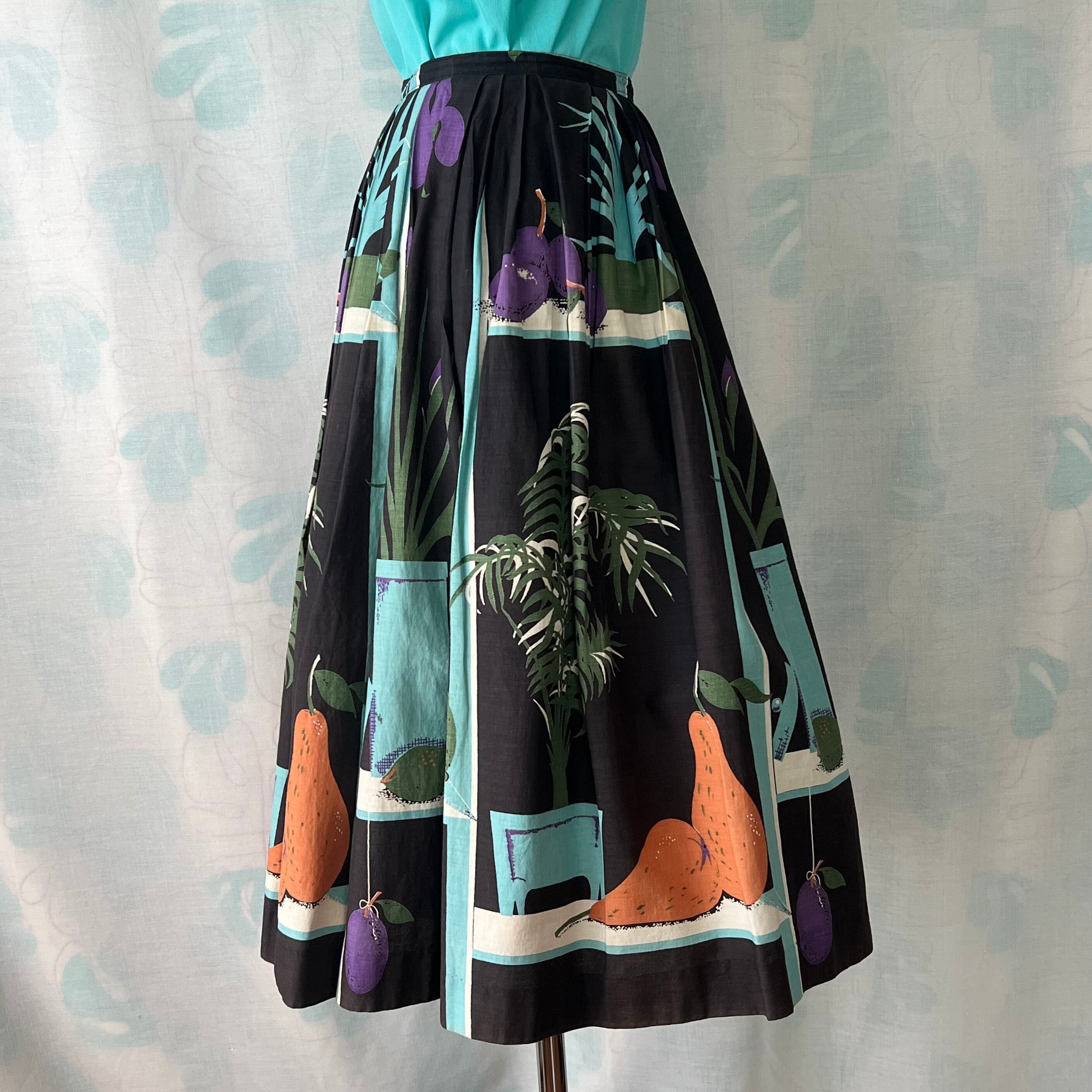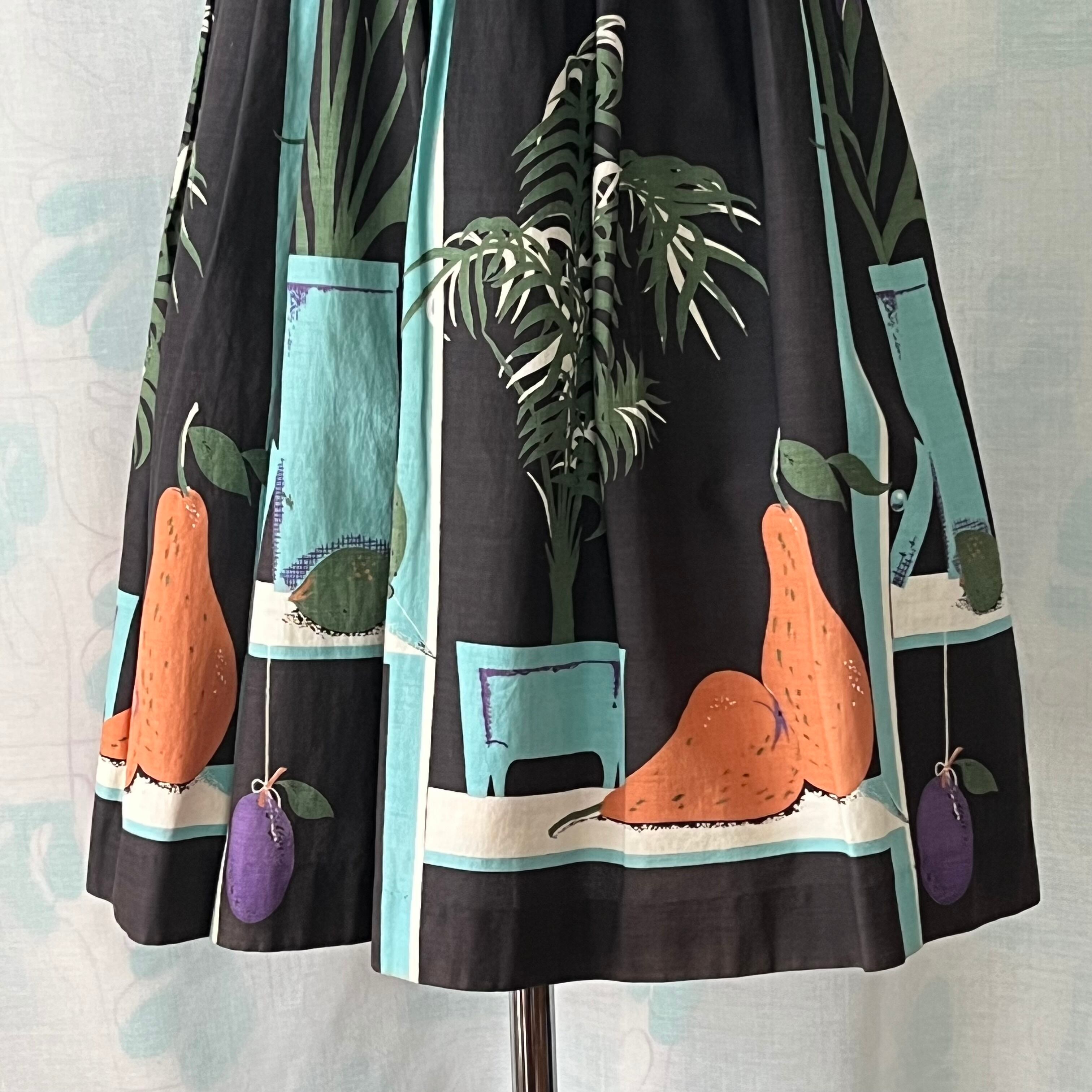 50's 「鉢植え×フルーツ 」ノベルティプリントフレアースカート。
