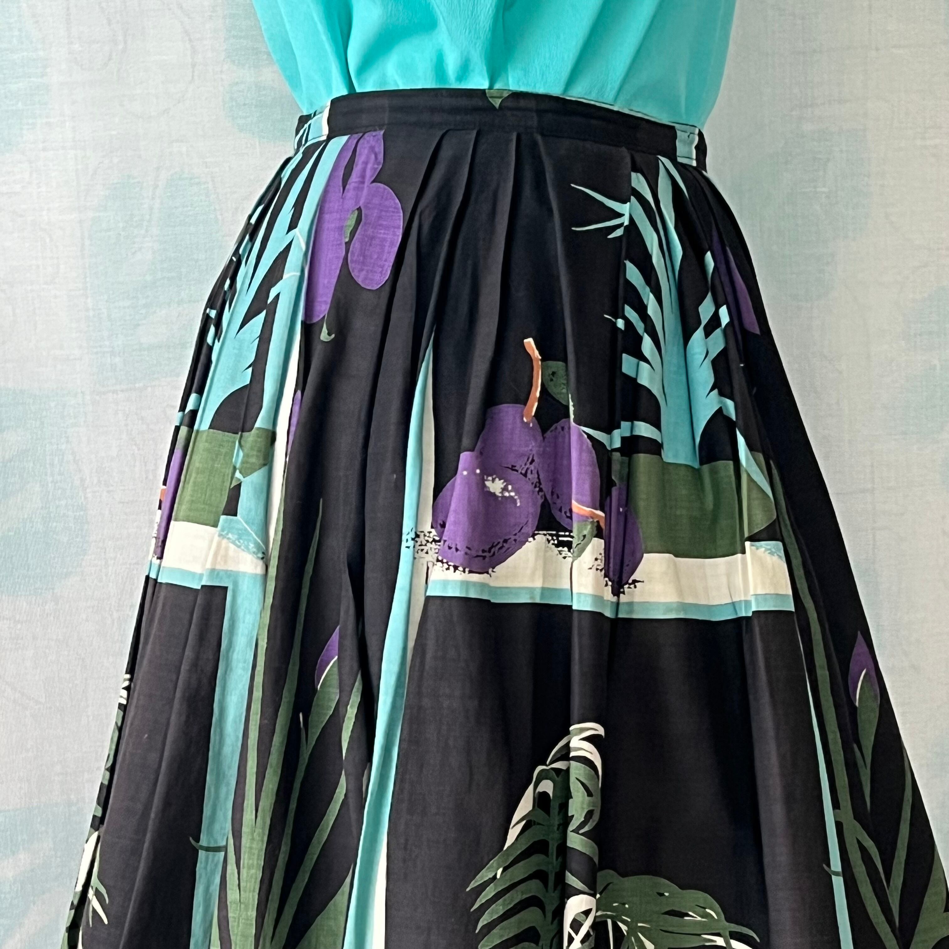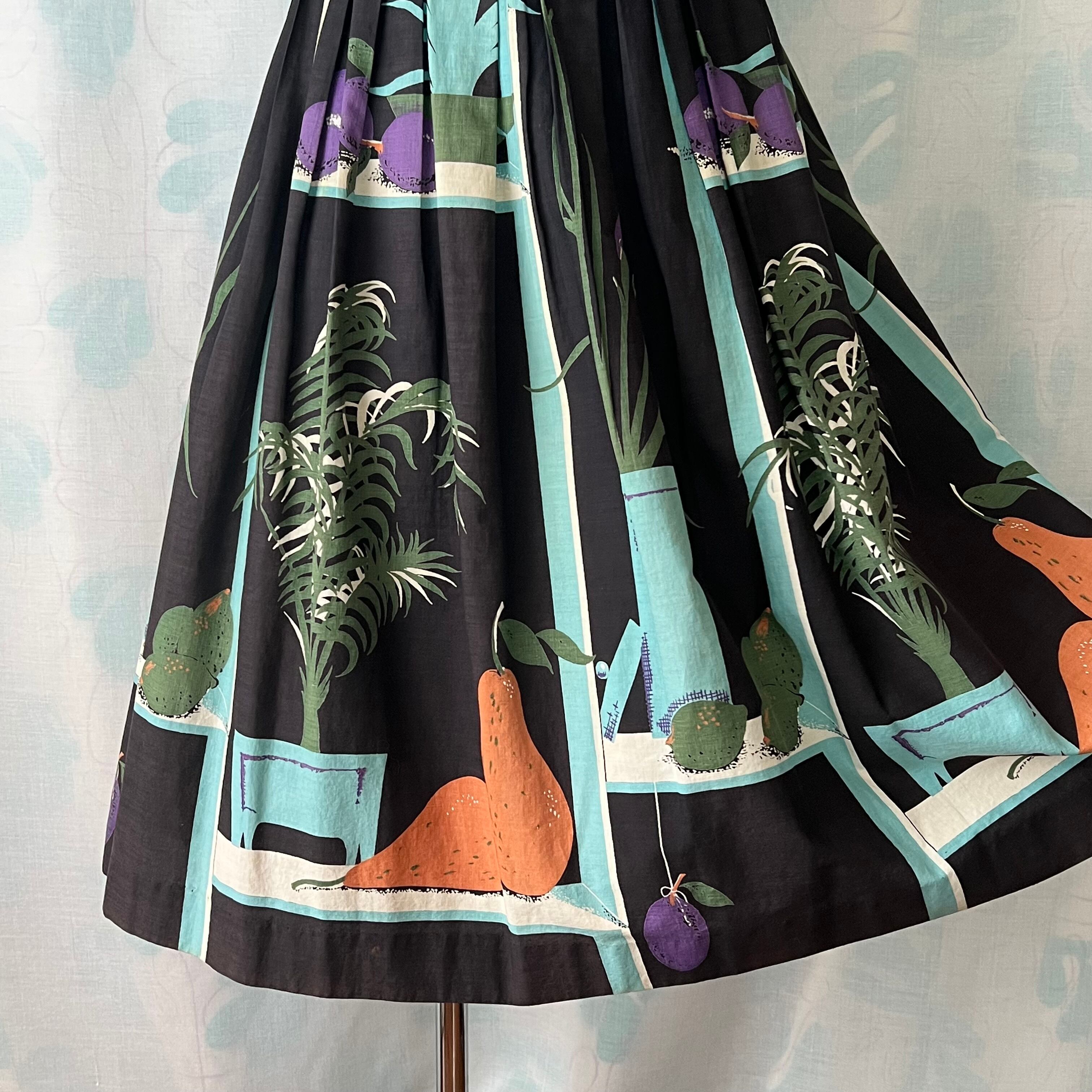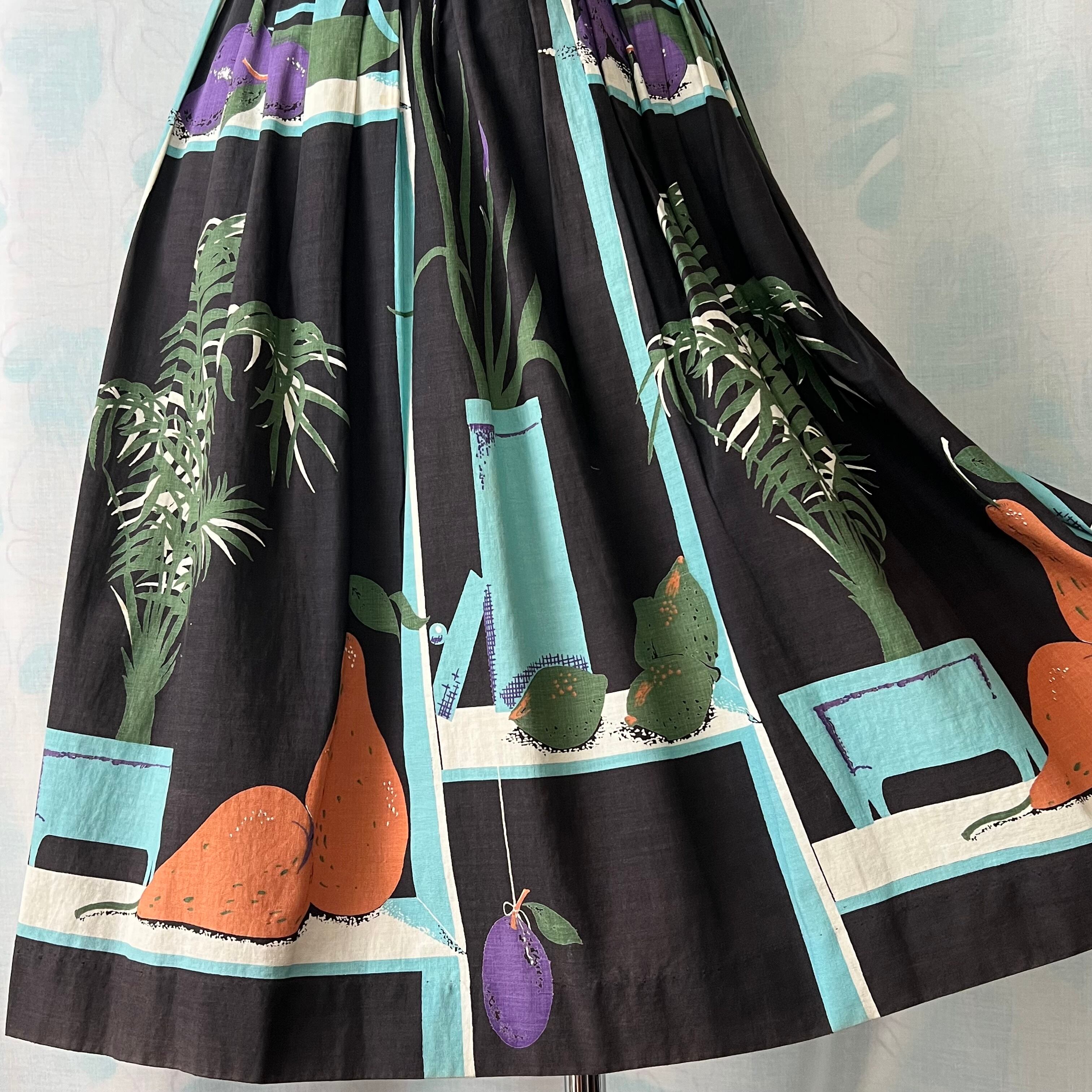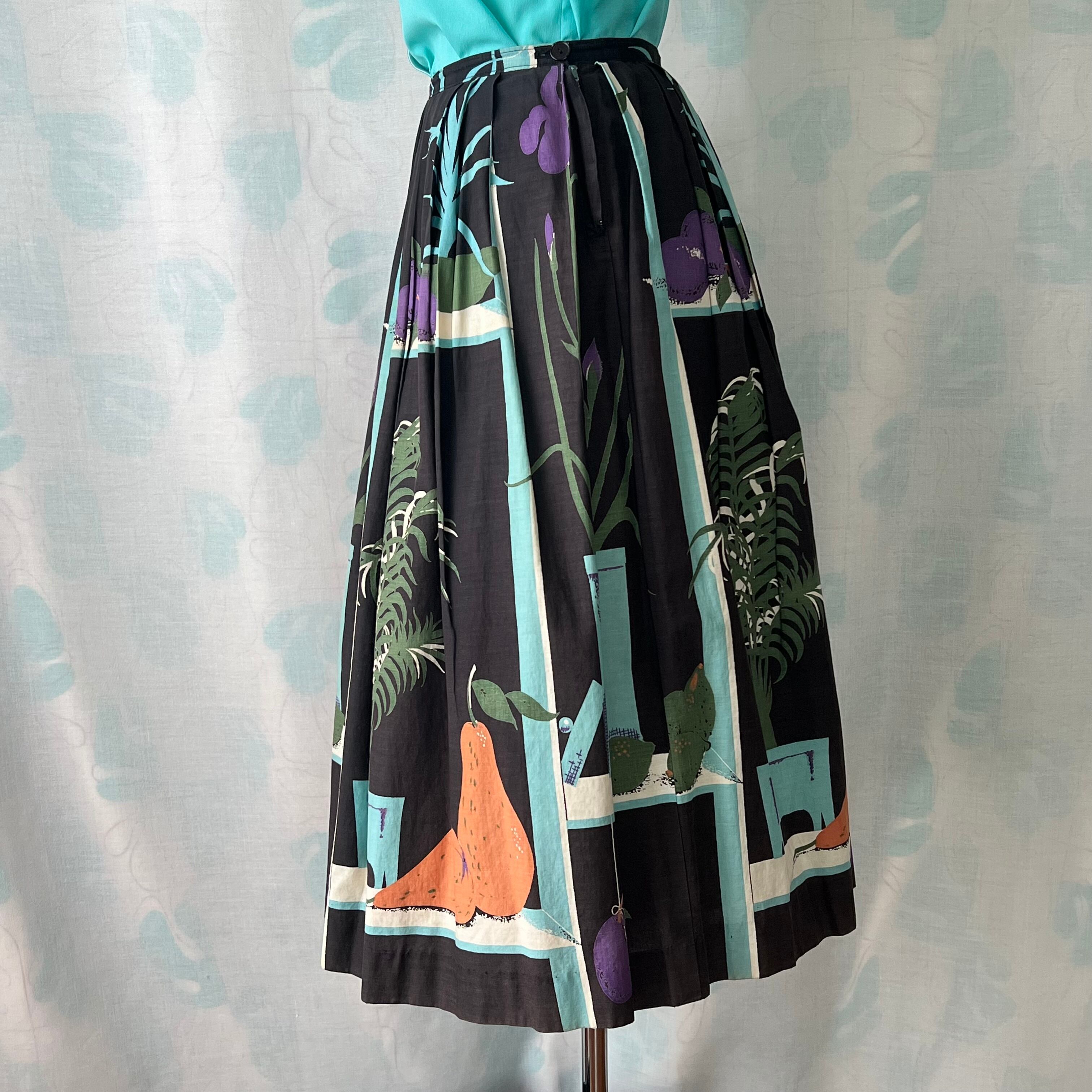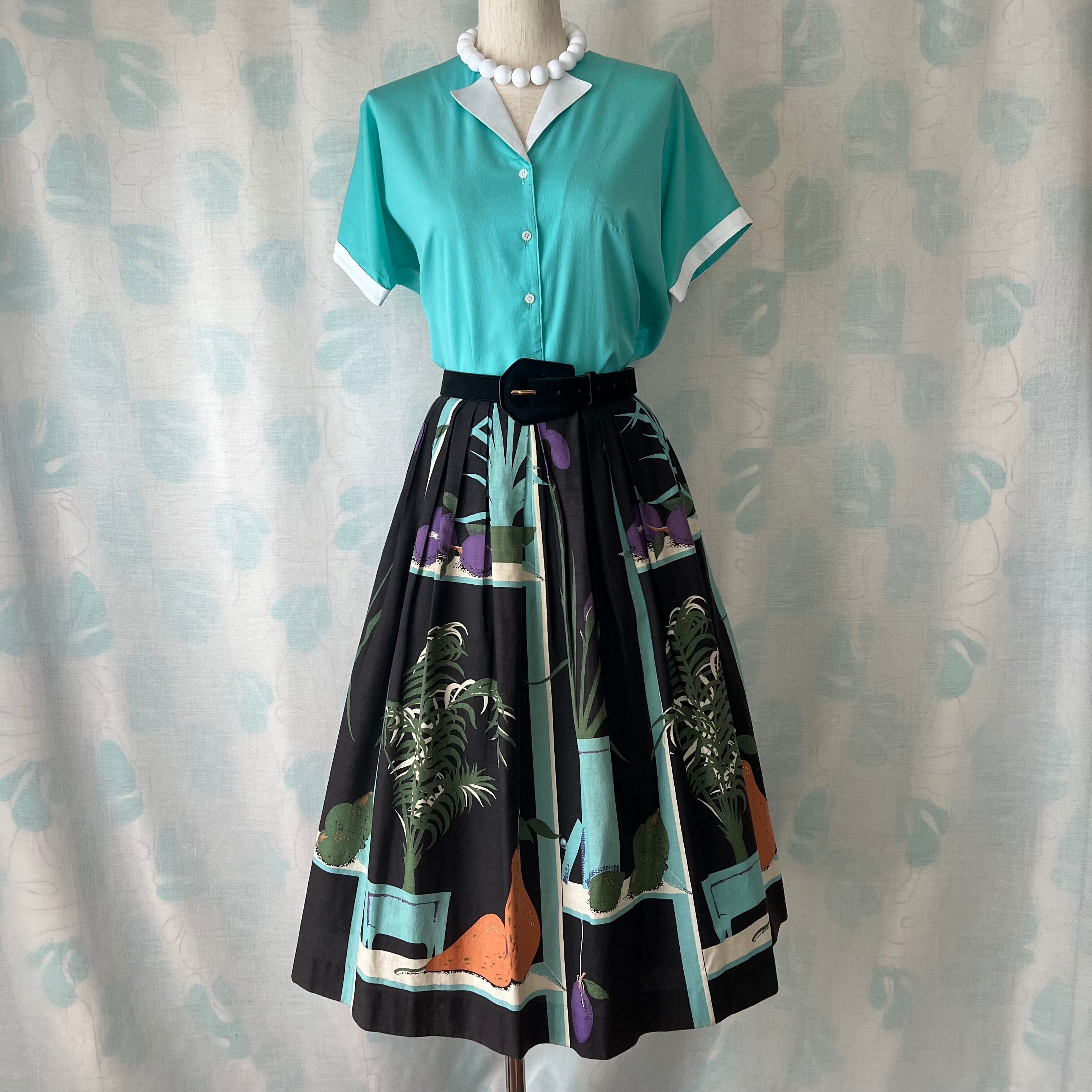 50's 「鉢植え×フルーツ 」ノベルティプリントフレアースカート。