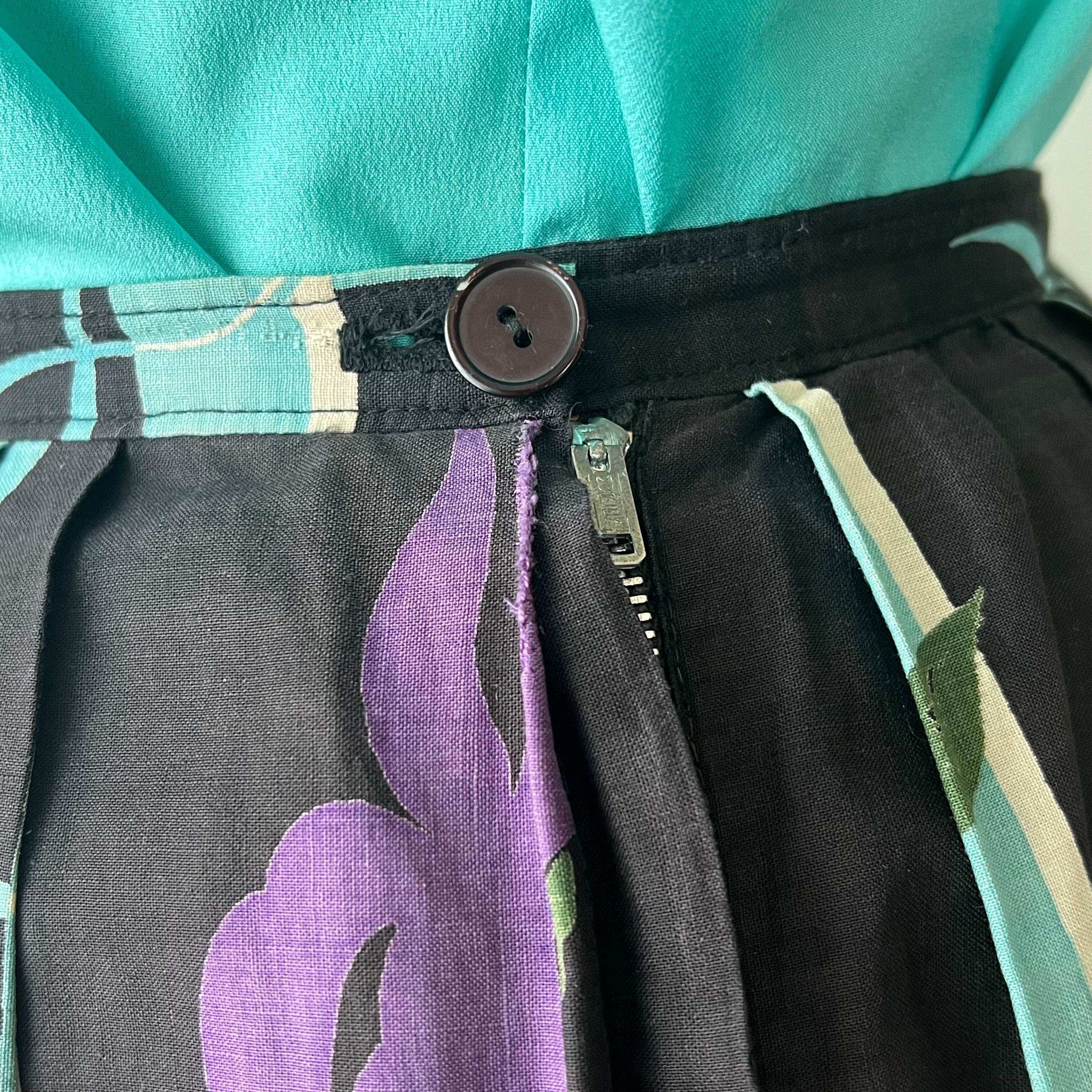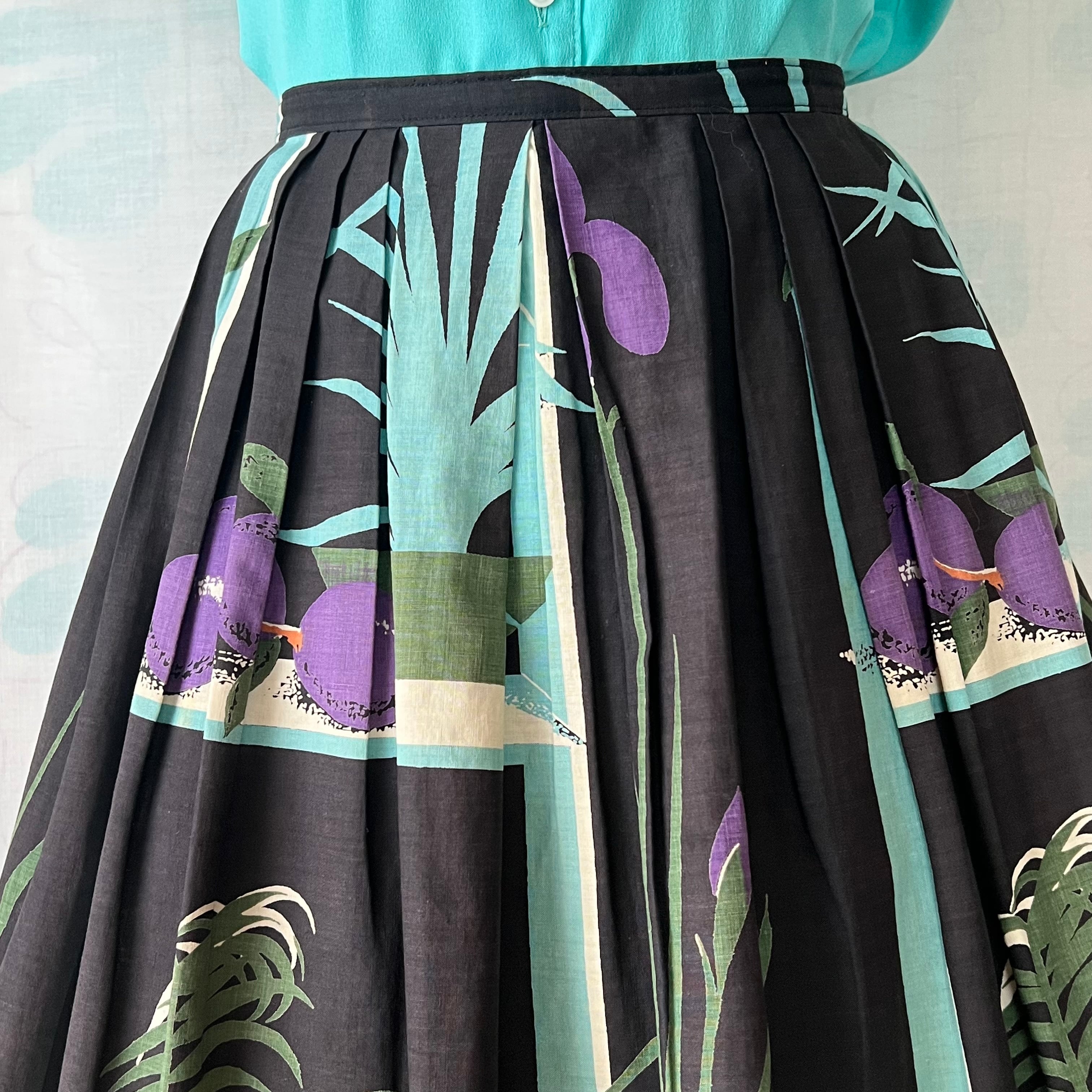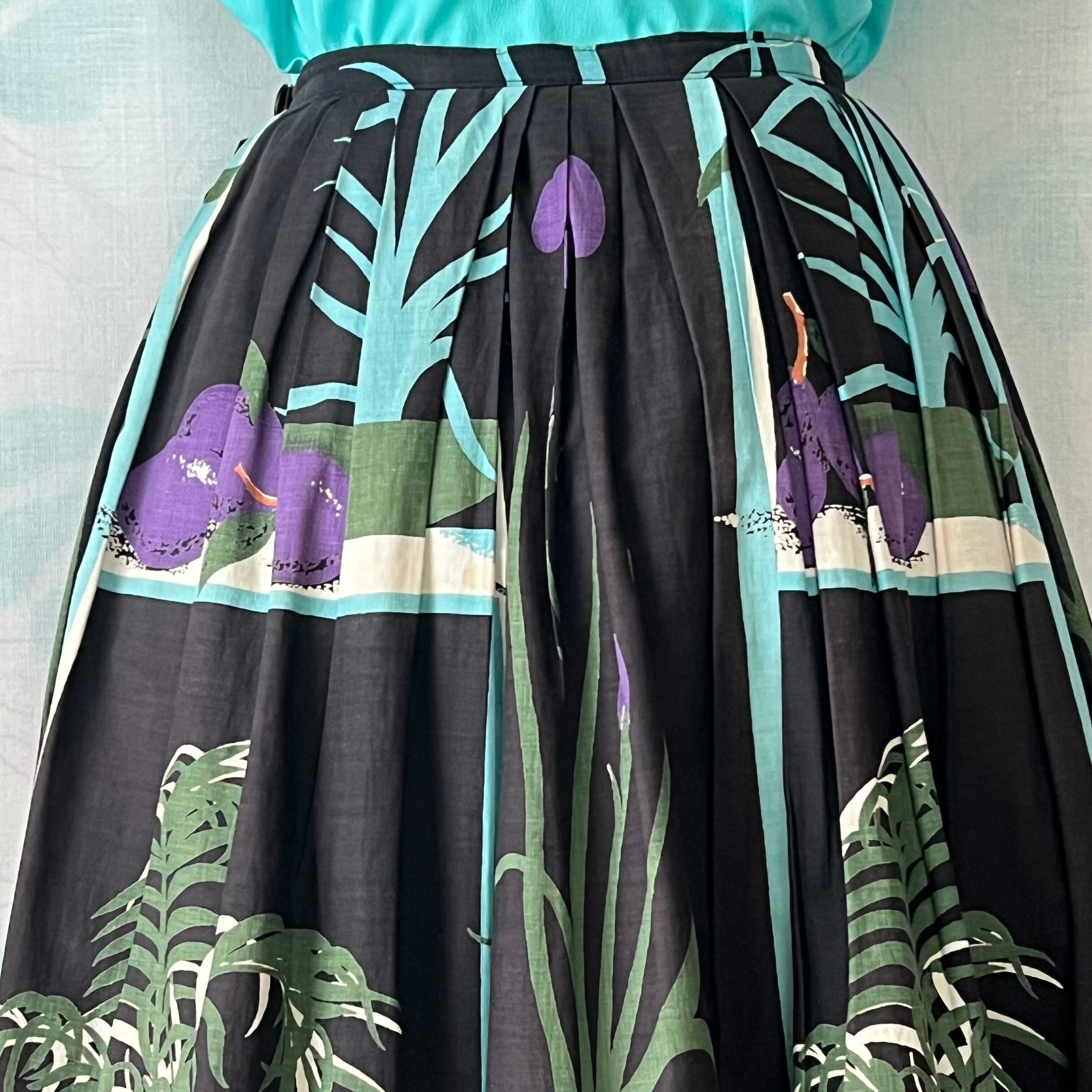 50's Potted plant x fruit novelty print flared skirt