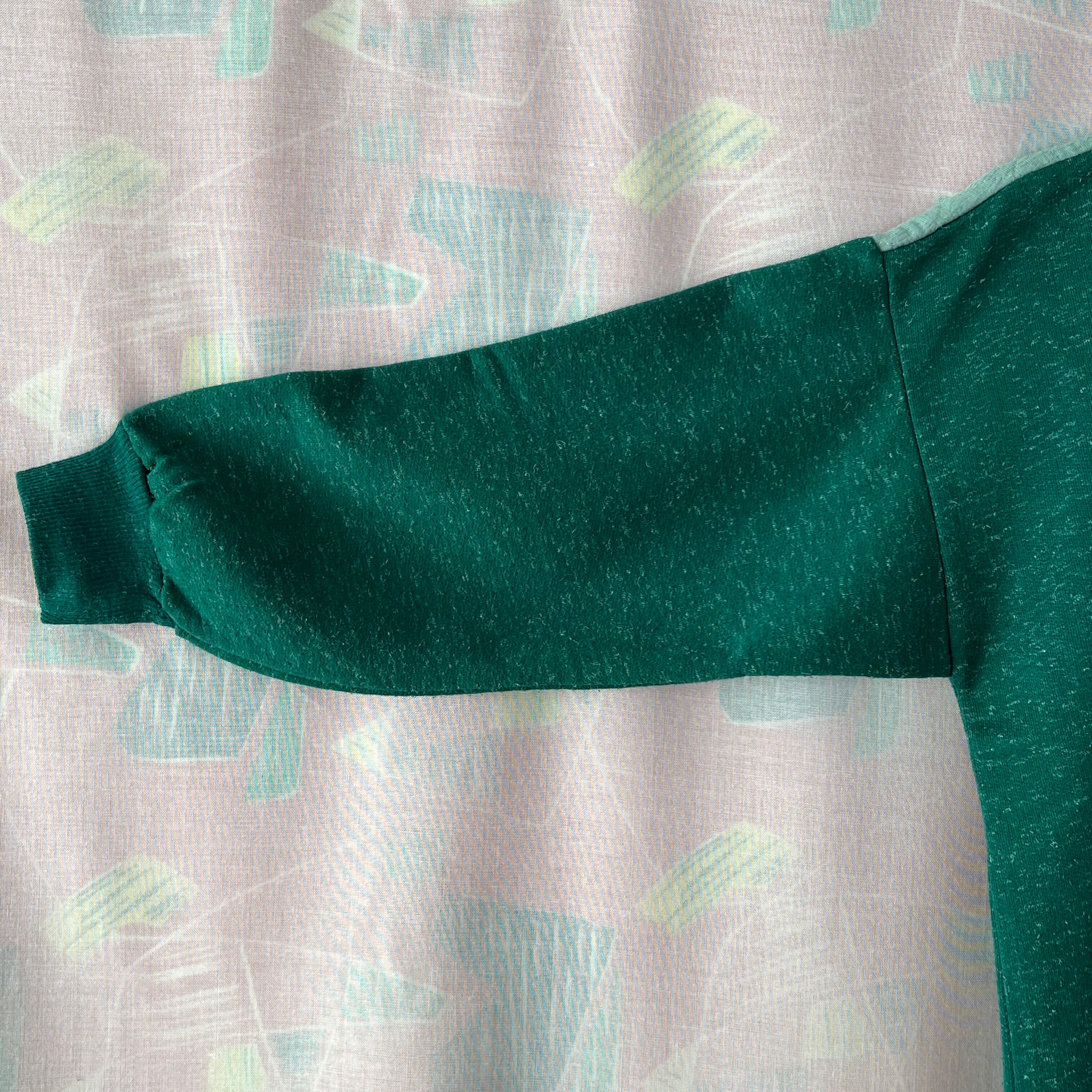 ボディは毛羽立ちのある深いグリーン地。