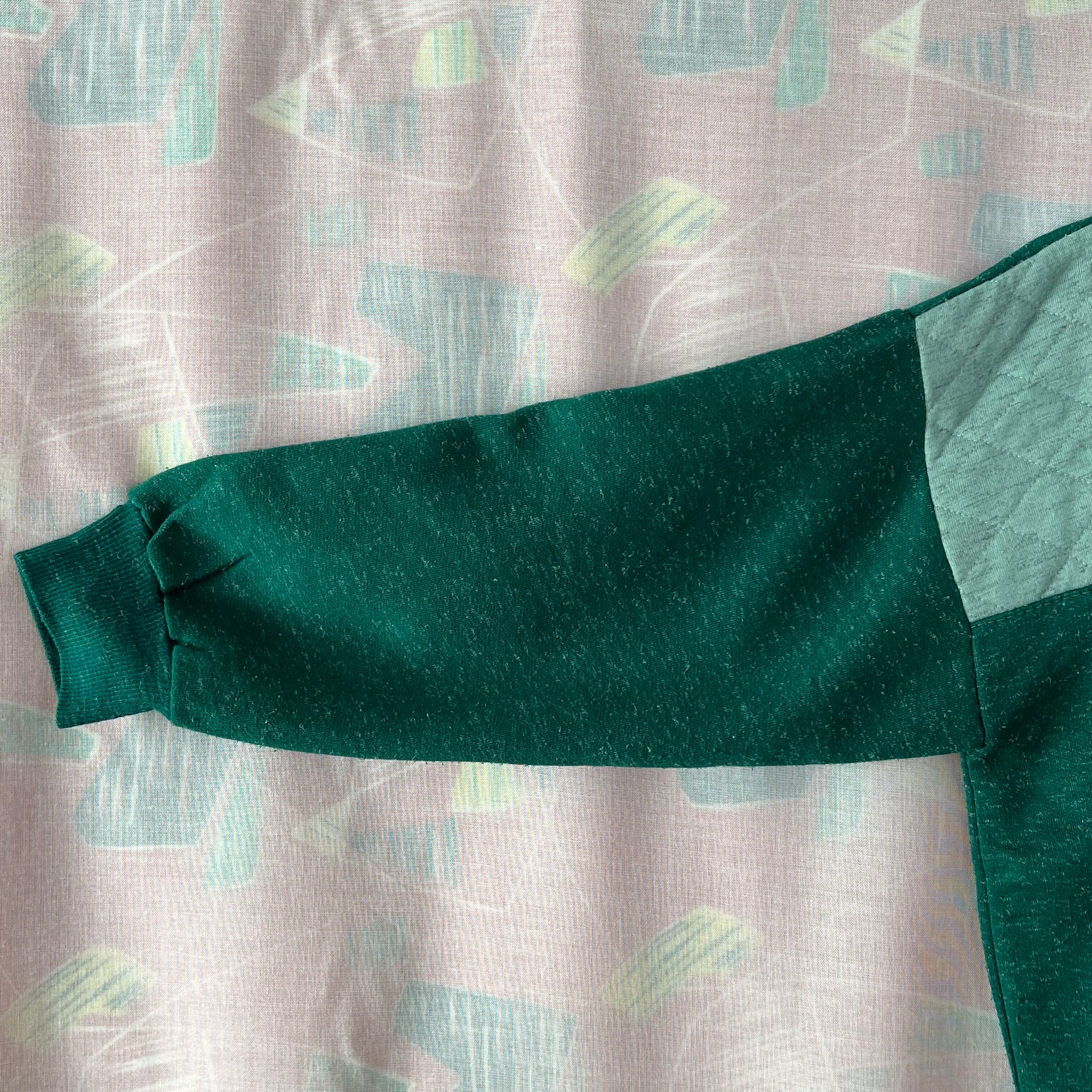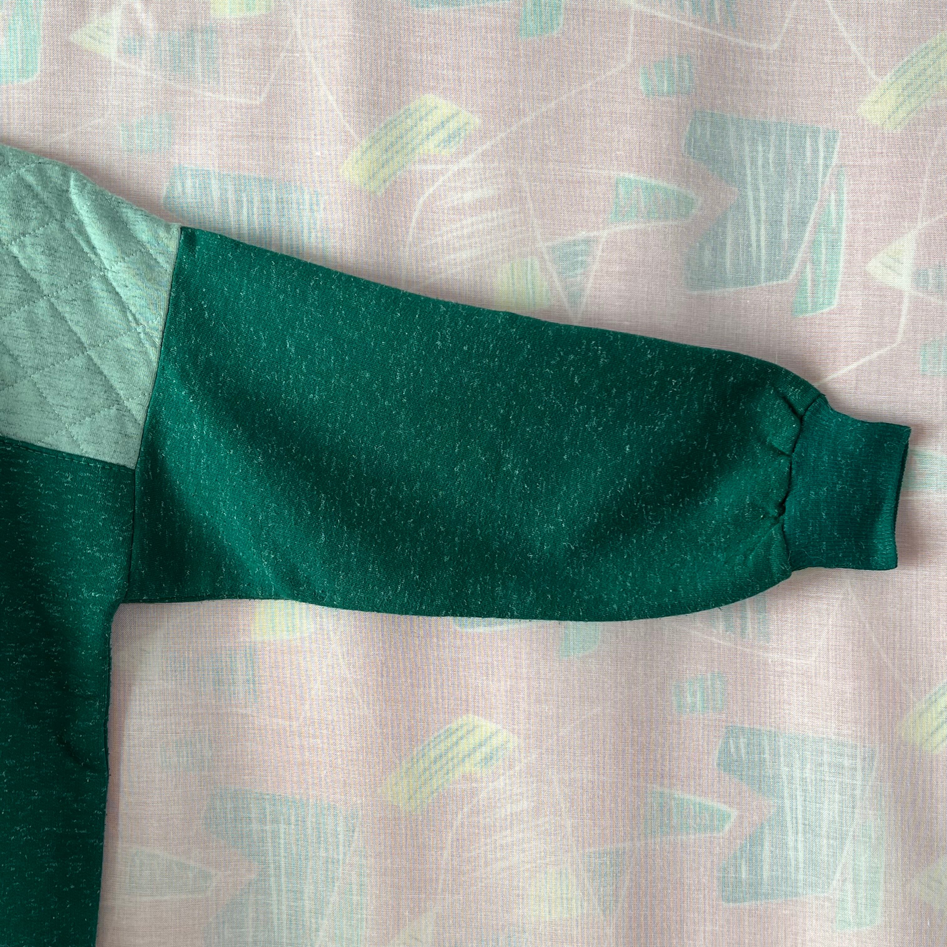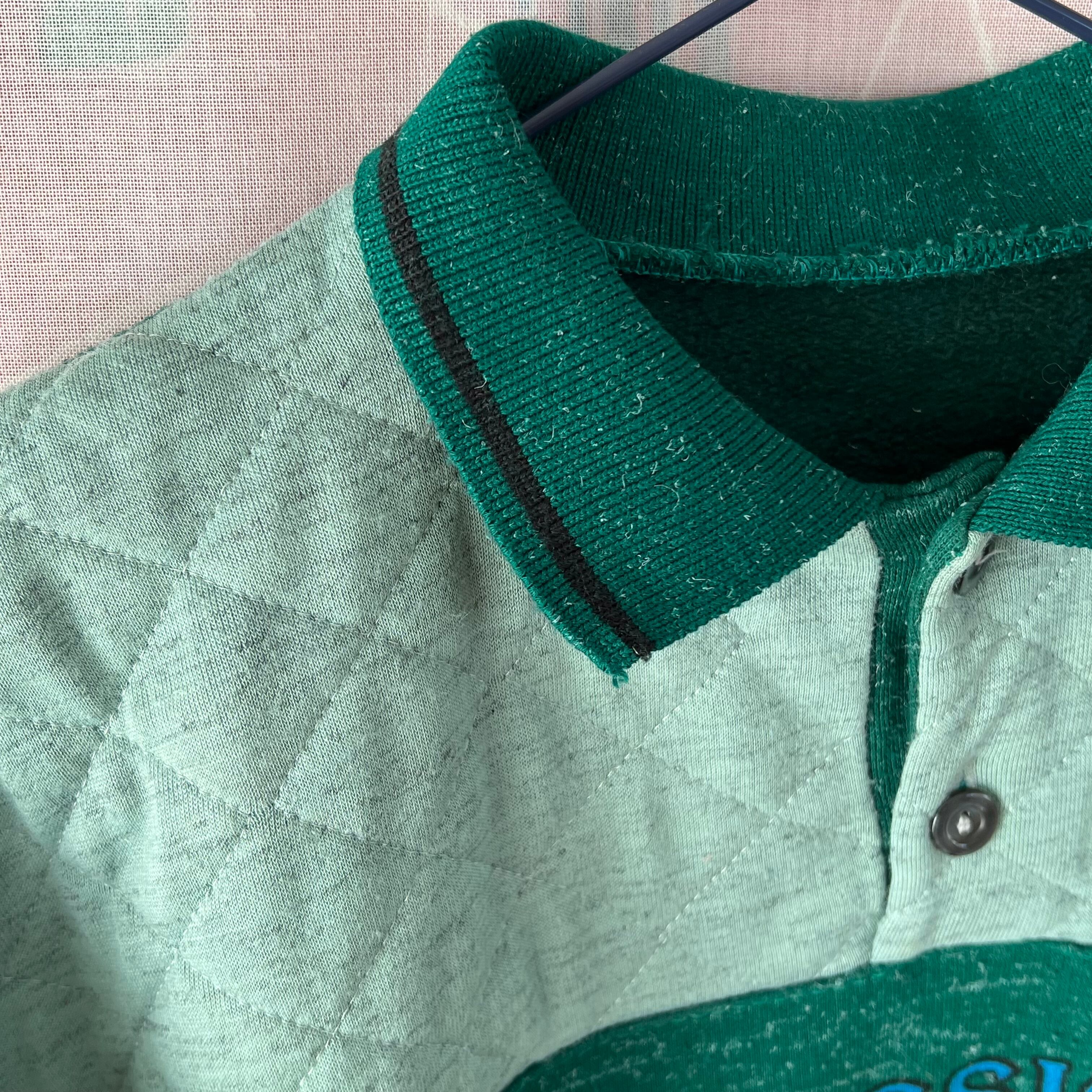 ライン入りの襟付き、フロントヨーク切り替え部分はライトグリーンのキルティング素材です。
