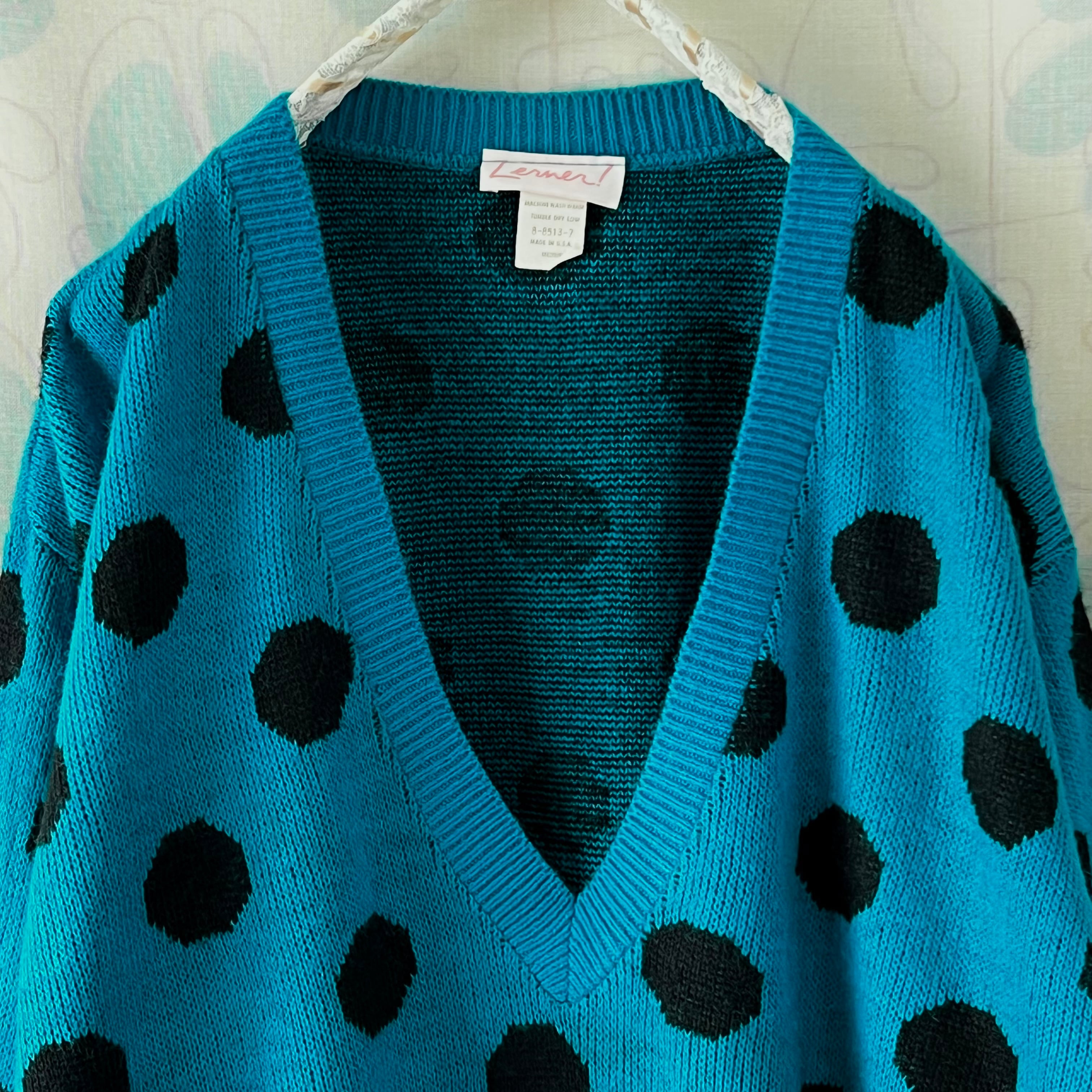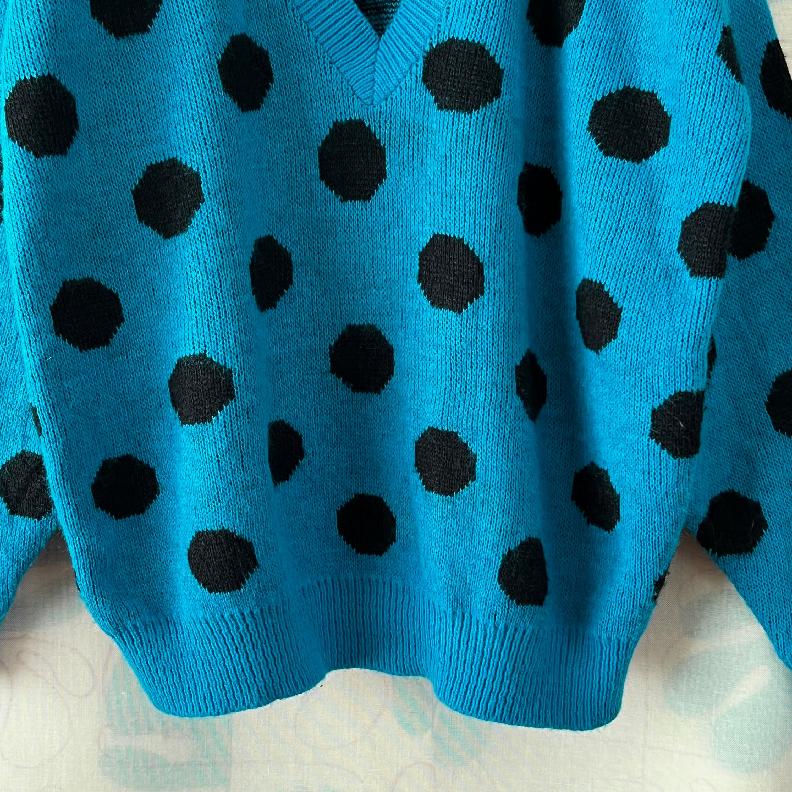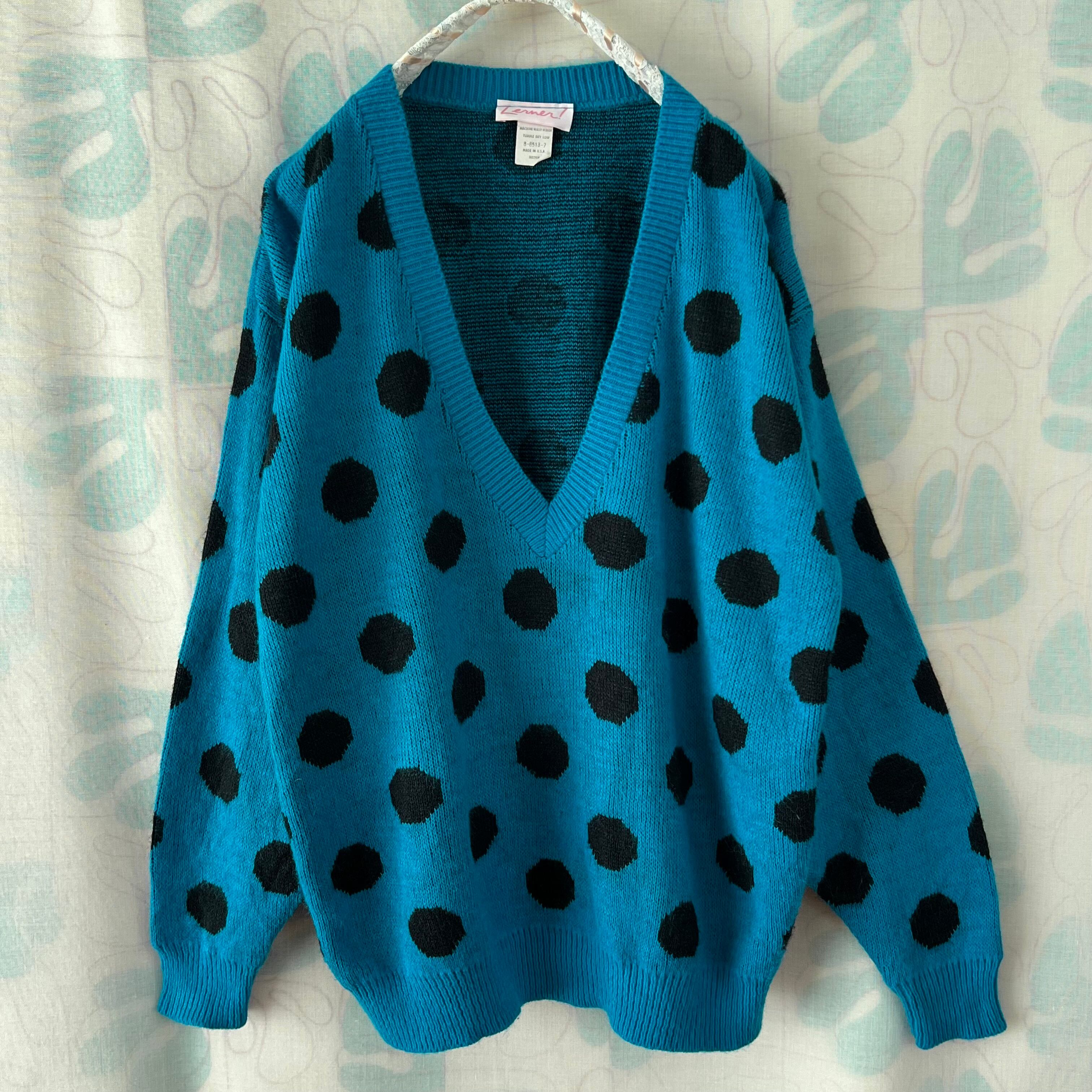 80's ドットのVネックセーター。
